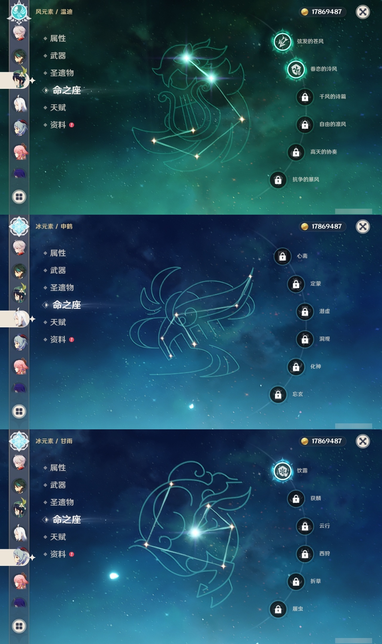 【原神】【lyys8966】冒险等级:60,五星数量:35,五星角色:魈 6命刻晴 4命雷电将军 3命莫娜 3命琴 3命迪卢克 2命胡桃 2命温迪 2命夜兰 2命甘雨 1命七七 1命钟离 1命流浪者 1命珊瑚宫心海迪希雅申鹤八重神子芙宁娜提纳里纳西妲枫原万叶__五星武器:和璞鸢 3精天空之卷 2精天空之翼 2精阿莫斯之弓护摩之杖四风原典天空之脊天空之刃薙草之稻光息灾神乐之真意波乱月白经津若水__四星角色:班尼特 6命行秋 6命九条裟罗 6命香菱 6命久岐忍 6命珐露珊 6命凝光 6命迪奥娜 6命砂糖 6命芭芭拉 6命云堇 6命早柚 6命烟绯 6命重云 6命诺艾尔 6命罗莎莉亚 6命雷泽 6命菲谢尔 6命北斗 6命五郎 5命鹿野院平藏 4命辛焱 4命柯莱 3命夏洛蒂 3命绮良良 2命瑶瑶 2命米卡 2命坎蒂丝 2命多莉 2命托马 2命琳妮特 2命夏沃蕾 2命莱依拉 1命菲米尼 1命嘉明 1命埃洛伊卡维