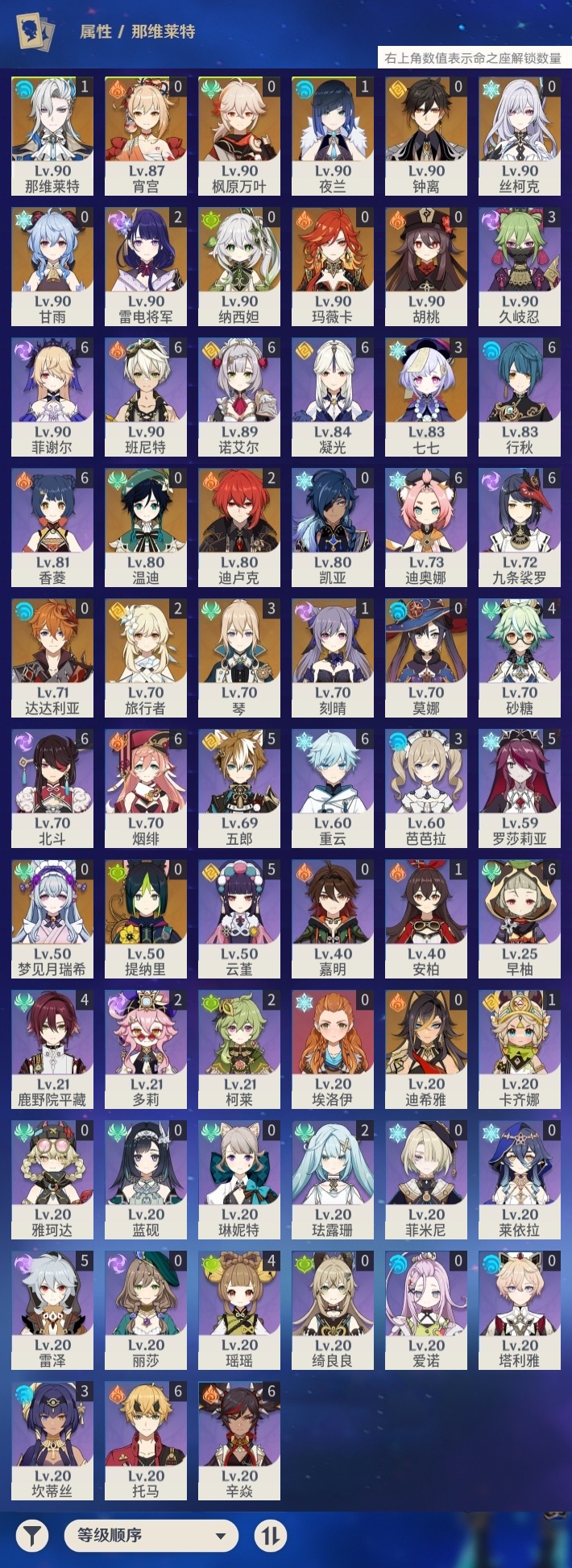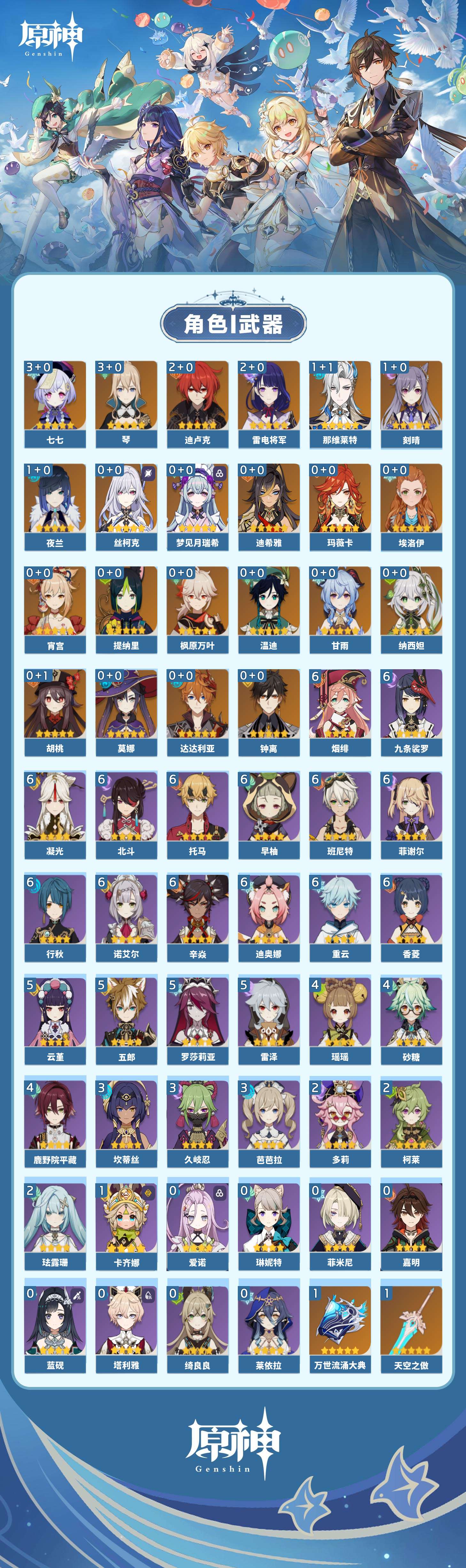 【原神】【lyys8963】冒险等级:60,五星数量:28,五星角色:七七 3命琴 3命迪卢克 2命雷电将军 2命那维莱特 1命刻晴 1命夜兰 1命莫娜温迪玛薇卡宵宫迪希雅钟离达达利亚梦见月瑞希提纳里丝柯克纳西妲枫原万叶甘雨胡桃__五星武器:万世流涌大典护摩之杖天空之傲天空之卷天空之刃天空之翼__四星角色:班尼特 6命行秋 6命九条裟罗 6命香菱 6命凝光 6命迪奥娜 6命早柚 6命托马 6命烟绯 6命重云 6命辛焱 6命诺艾尔 6命菲谢尔 6命北斗 6命云堇 5命五郎 5命罗莎莉亚 5命雷泽 5命鹿野院平藏 4命砂糖 4命瑶瑶 4命久岐忍 3命坎蒂丝 3命芭芭拉 3命珐露珊 2命多莉 2命柯莱 2命卡齐娜 1命埃洛伊绮良良莱依拉蓝砚菲米尼琳妮特嘉明塔利雅爱诺1200抽