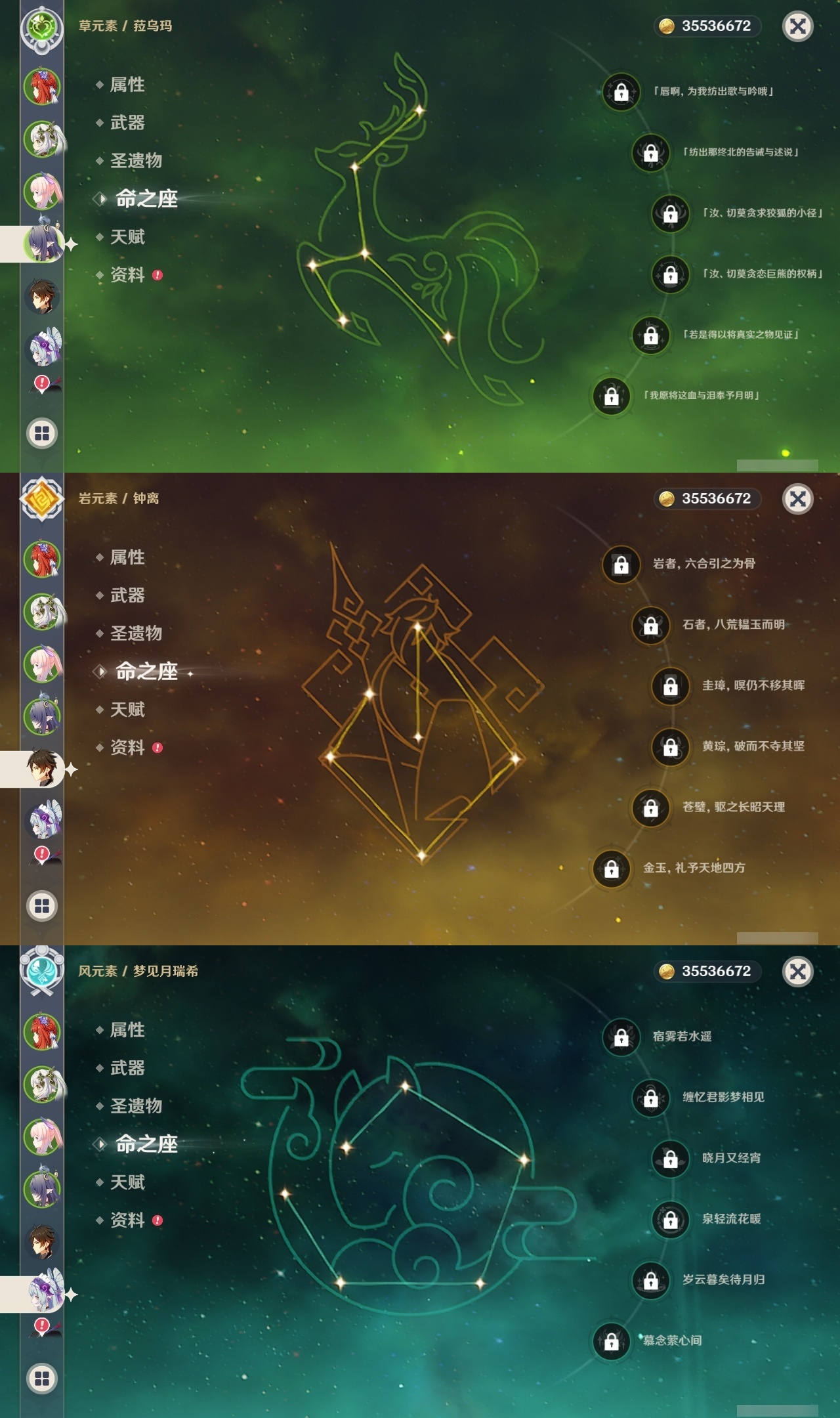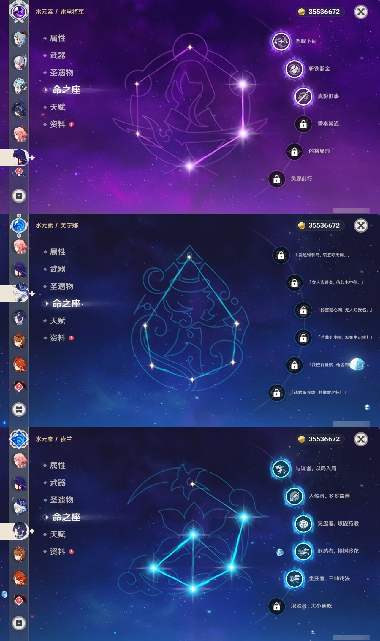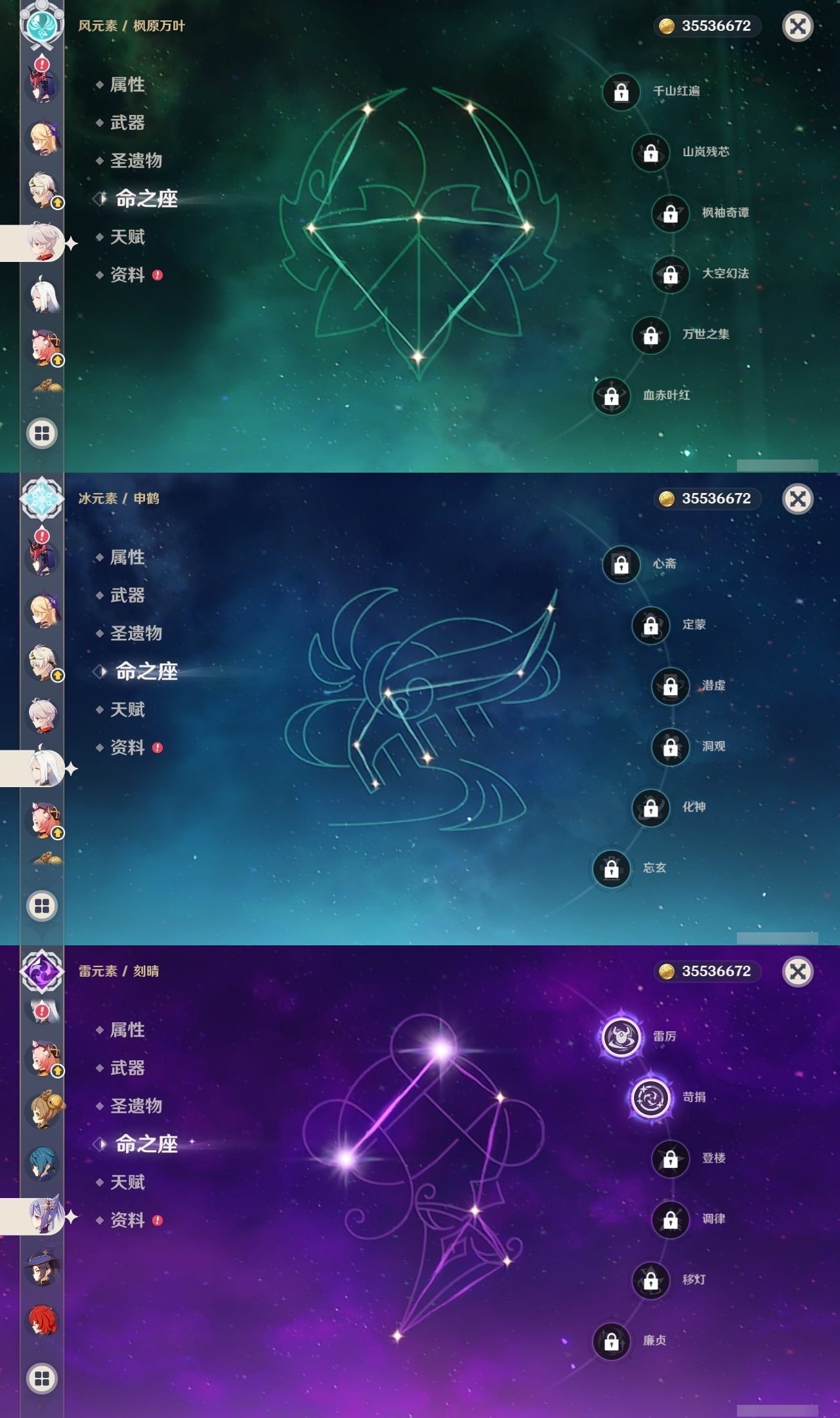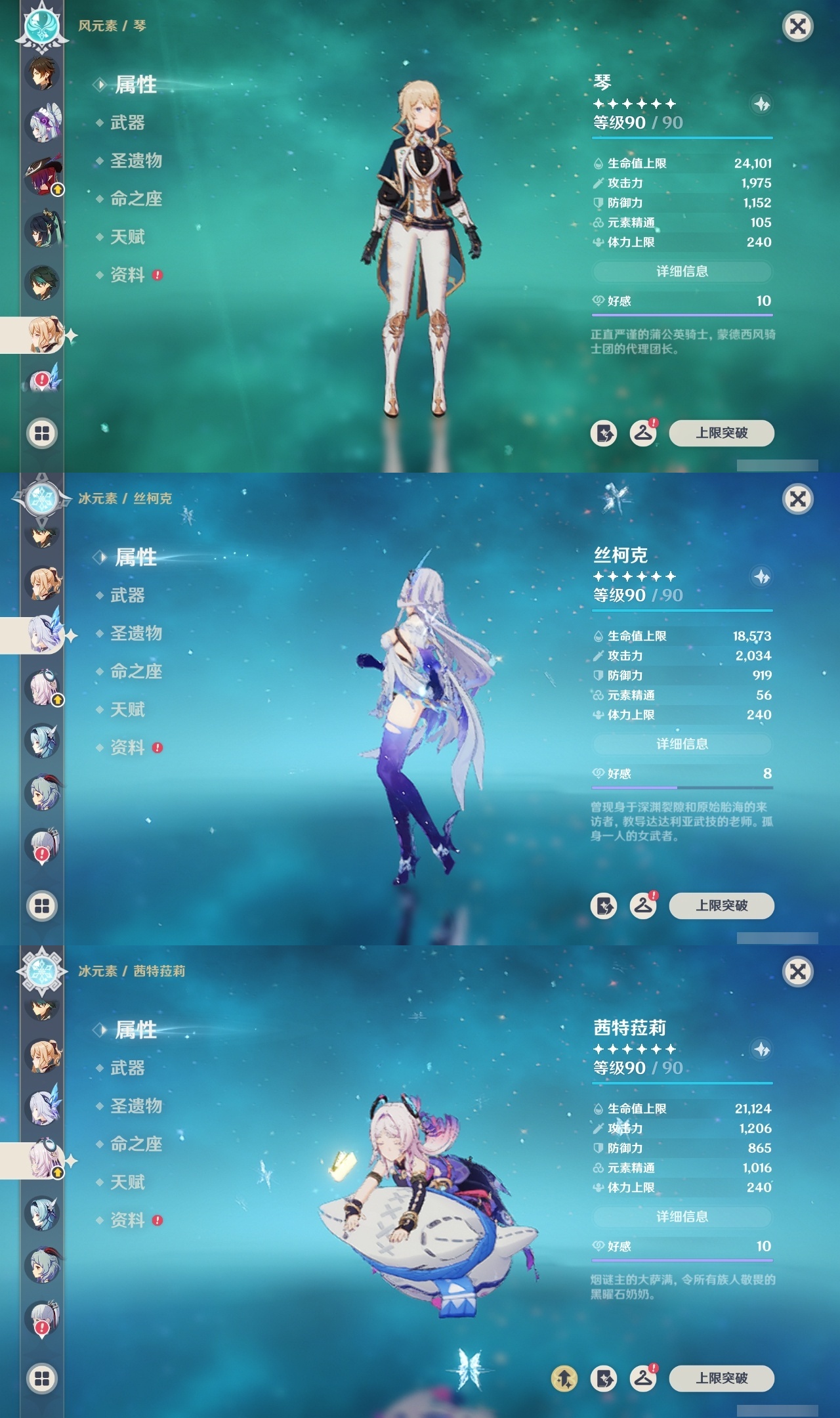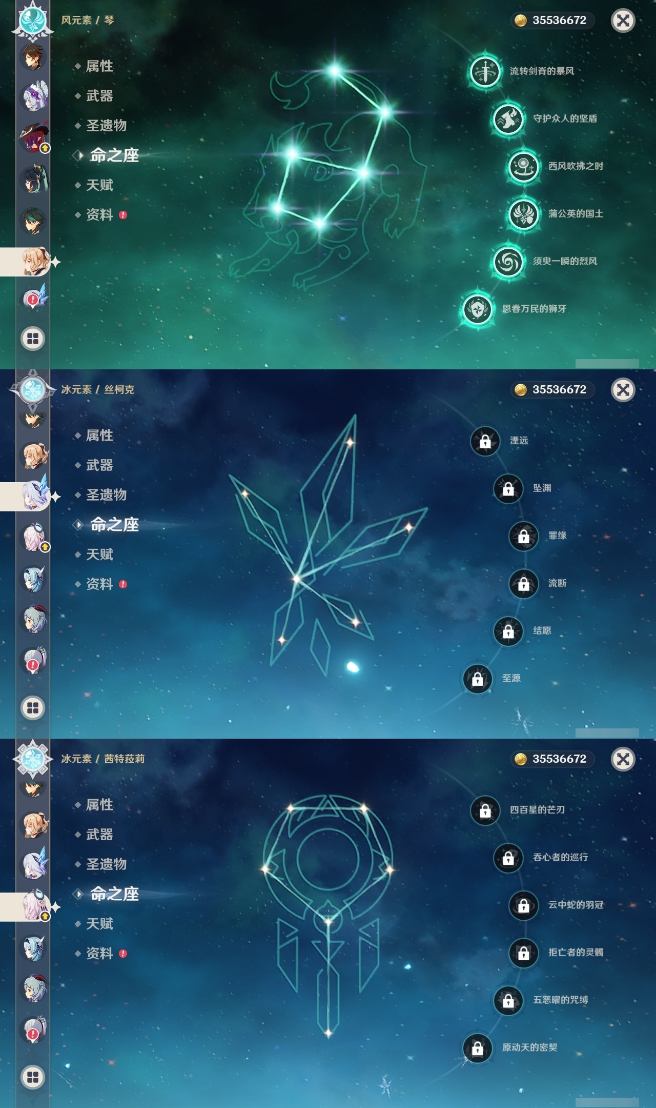 【原神】满命,冒险等级:60,五星数量:50,五星角色:迪卢克 6命莫娜 6命琴 6命夜兰 5命雷电将军 3命刻晴 2命妮露 2命恰斯卡 1命胡桃 1命七七 1命优菈 1命珊瑚宫心海神里绫华玛薇卡茜特菈莉钟离达达利亚梦见月瑞希申鹤八重神子芙宁娜提纳里闲云丝柯克伊涅芙纳西妲菈乌玛枫原万叶甘雨魈克洛琳德__五星武器:阿莫斯之弓 2精和璞鸢 2精星鹫赤羽鹤鸣余音护摩之杖狼的末路四风原典松籁响起之时天空之脊天空之卷天空之翼无工之剑雾切之回光薙草之稻光息灾若水圣显之钥赦罪__四星角色:班尼特 6命行秋 6命九条裟罗 6命香菱 6命久岐忍 6命凝光 6命迪奥娜 6命砂糖 6命莱依拉 6命柯莱 6命卡维 6命芭芭拉 6命早柚 6命托马 6命五郎 6命烟绯 6命重云 6命辛焱 6命诺艾尔 6命罗莎莉亚 6命雷泽 6命菲谢尔 6命北斗 6命珐露珊 5命多莉 5命云堇 5命琳妮特 5命卡齐娜 4命欧洛伦 4命赛索斯 4命鹿野院平藏 3命坎蒂丝 3命嘉明 3命瑶瑶 2命蓝砚 2命夏沃蕾 2命塔利雅 2命绮良良 1命菲米尼 1命爱诺 1命埃洛伊