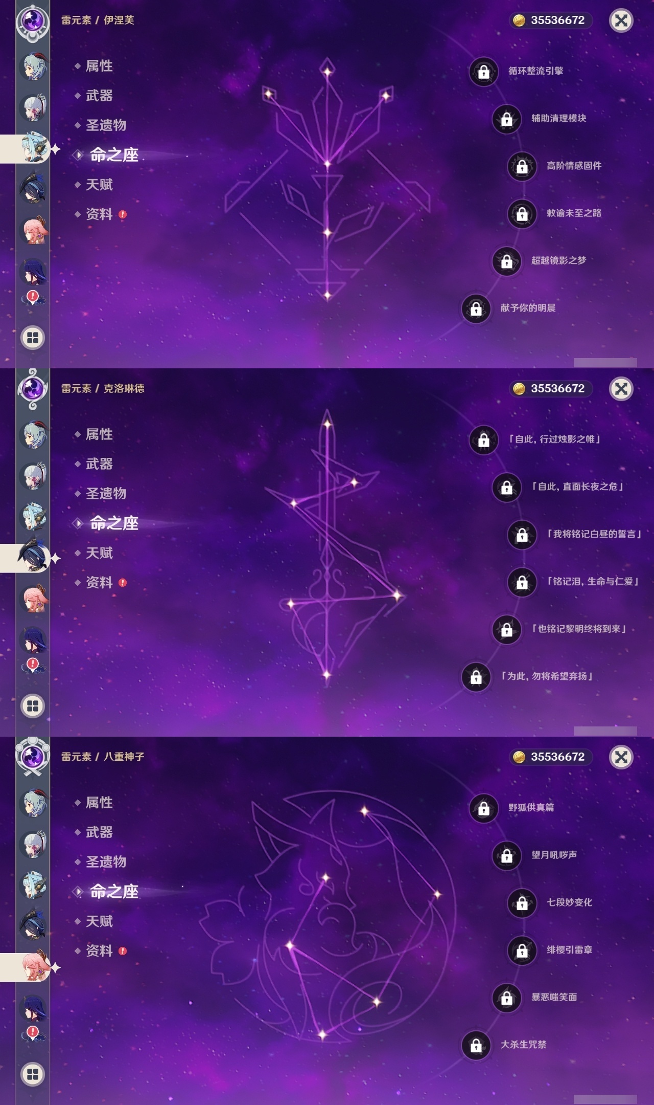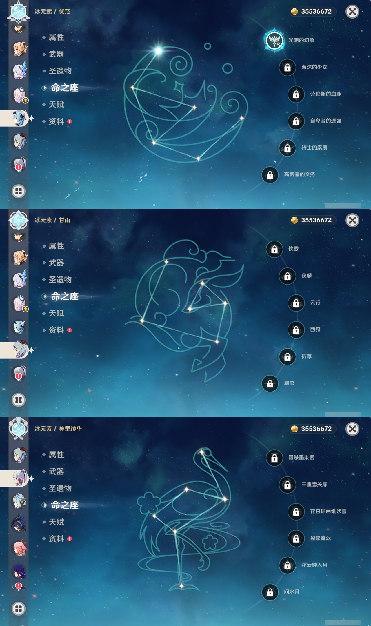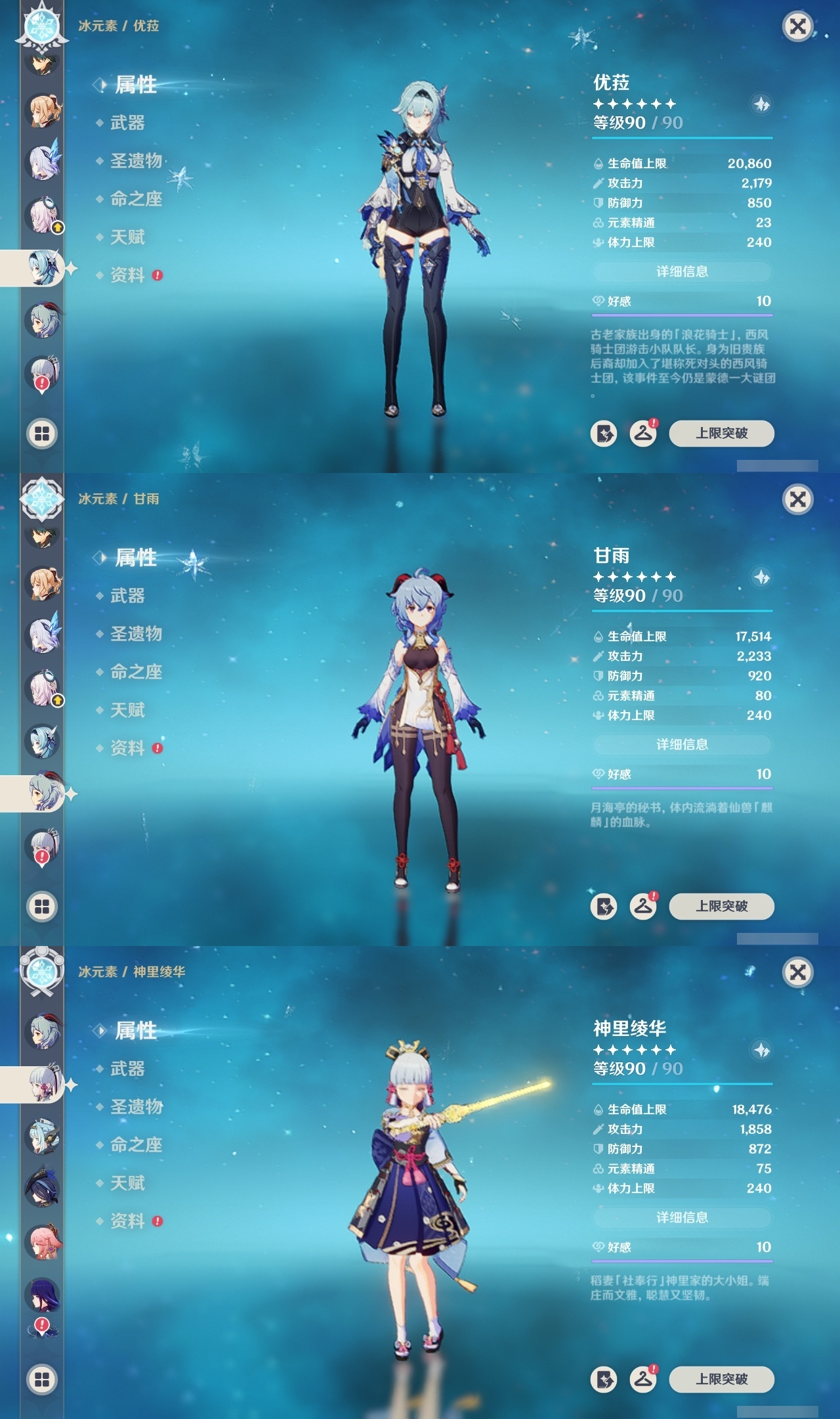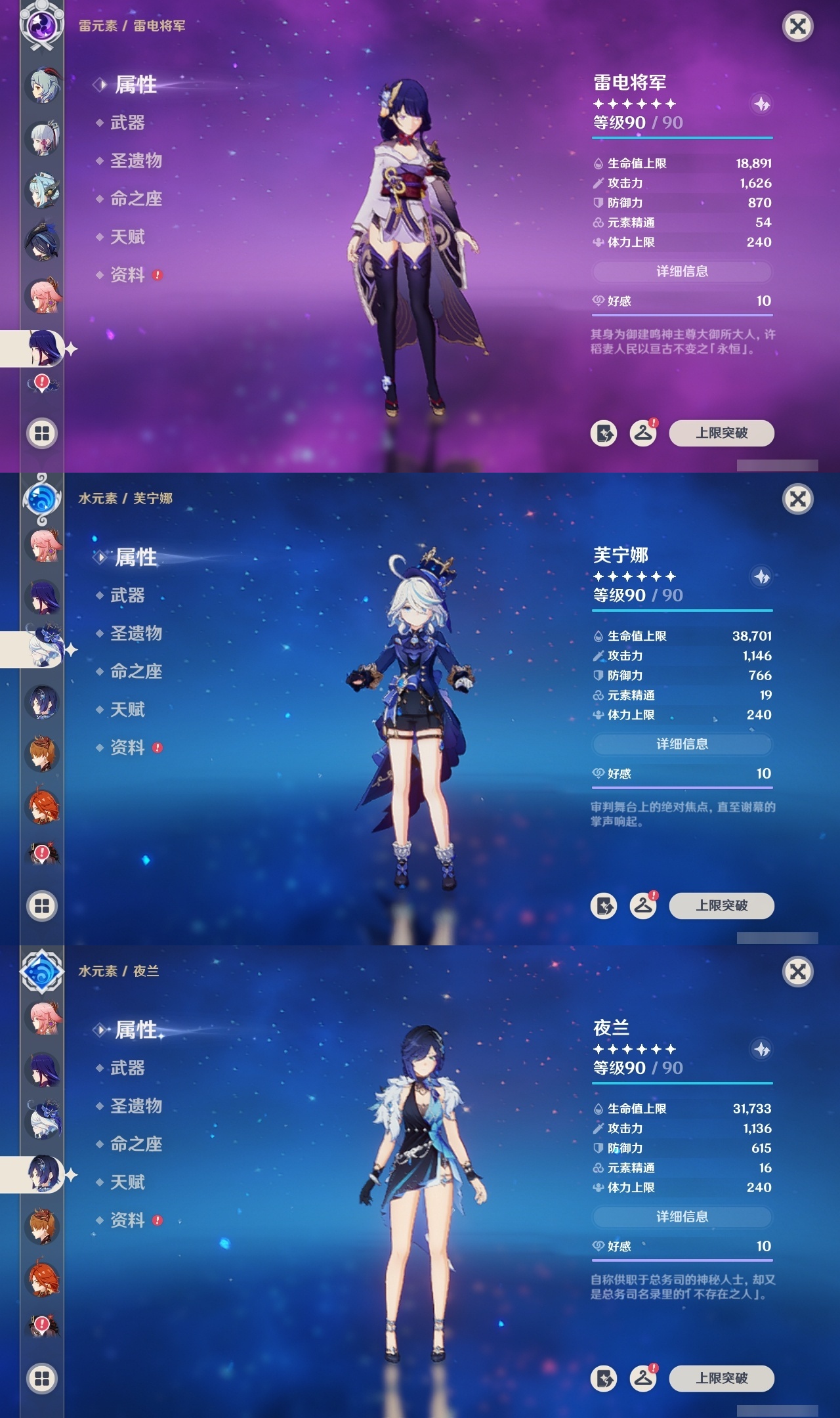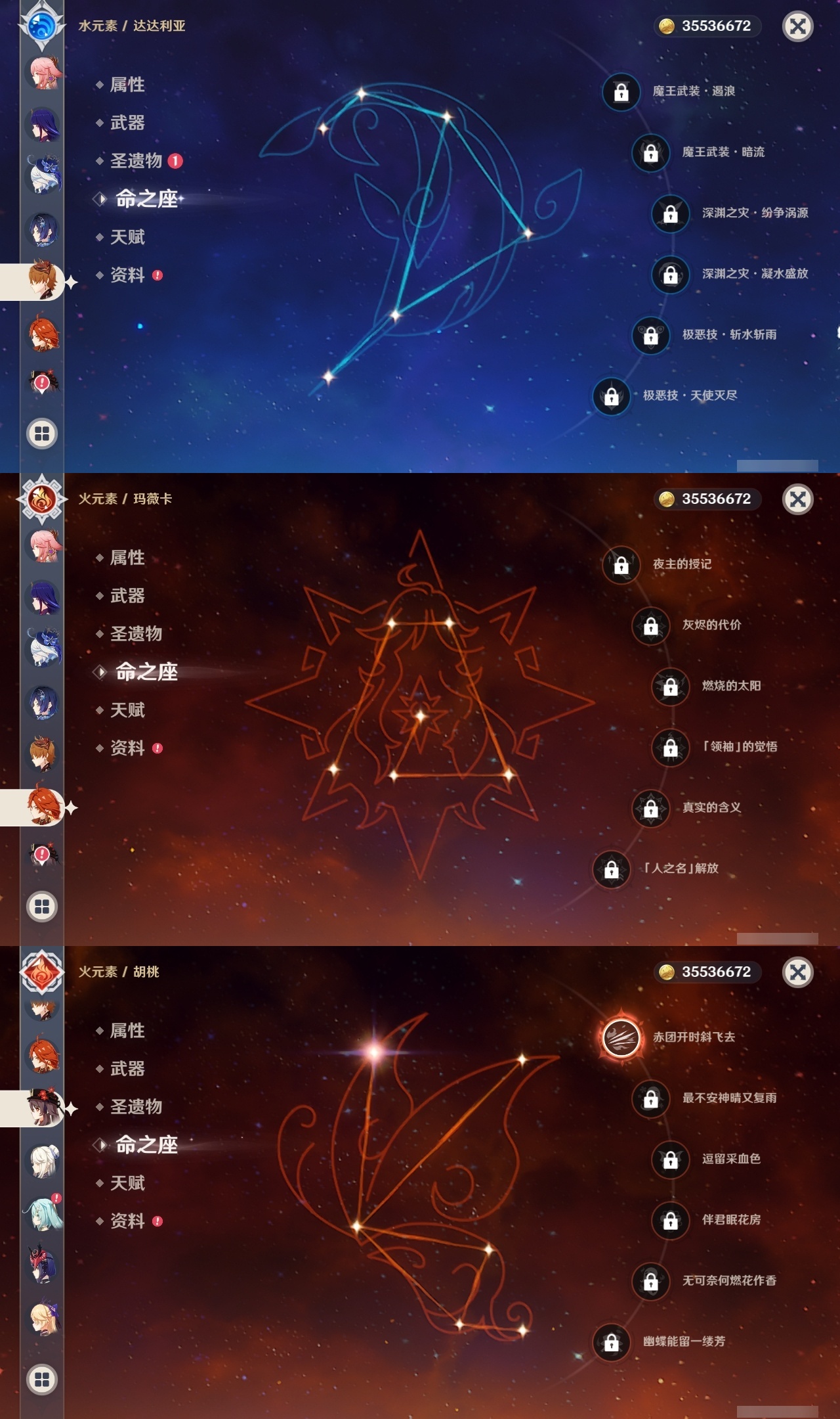 【原神】满命,冒险等级:60,五星数量:50,五星角色:迪卢克 6命莫娜 6命琴 6命夜兰 5命雷电将军 3命刻晴 2命妮露 2命恰斯卡 1命胡桃 1命七七 1命优菈 1命珊瑚宫心海神里绫华玛薇卡茜特菈莉钟离达达利亚梦见月瑞希申鹤八重神子芙宁娜提纳里闲云丝柯克伊涅芙纳西妲菈乌玛枫原万叶甘雨魈克洛琳德__五星武器:阿莫斯之弓 2精和璞鸢 2精星鹫赤羽鹤鸣余音护摩之杖狼的末路四风原典松籁响起之时天空之脊天空之卷天空之翼无工之剑雾切之回光薙草之稻光息灾若水圣显之钥赦罪__四星角色:班尼特 6命行秋 6命九条裟罗 6命香菱 6命久岐忍 6命凝光 6命迪奥娜 6命砂糖 6命莱依拉 6命柯莱 6命卡维 6命芭芭拉 6命早柚 6命托马 6命五郎 6命烟绯 6命重云 6命辛焱 6命诺艾尔 6命罗莎莉亚 6命雷泽 6命菲谢尔 6命北斗 6命珐露珊 5命多莉 5命云堇 5命琳妮特 5命卡齐娜 4命欧洛伦 4命赛索斯 4命鹿野院平藏 3命坎蒂丝 3命嘉明 3命瑶瑶 2命蓝砚 2命夏沃蕾 2命塔利雅 2命绮良良 1命菲米尼 1命爱诺 1命埃洛伊