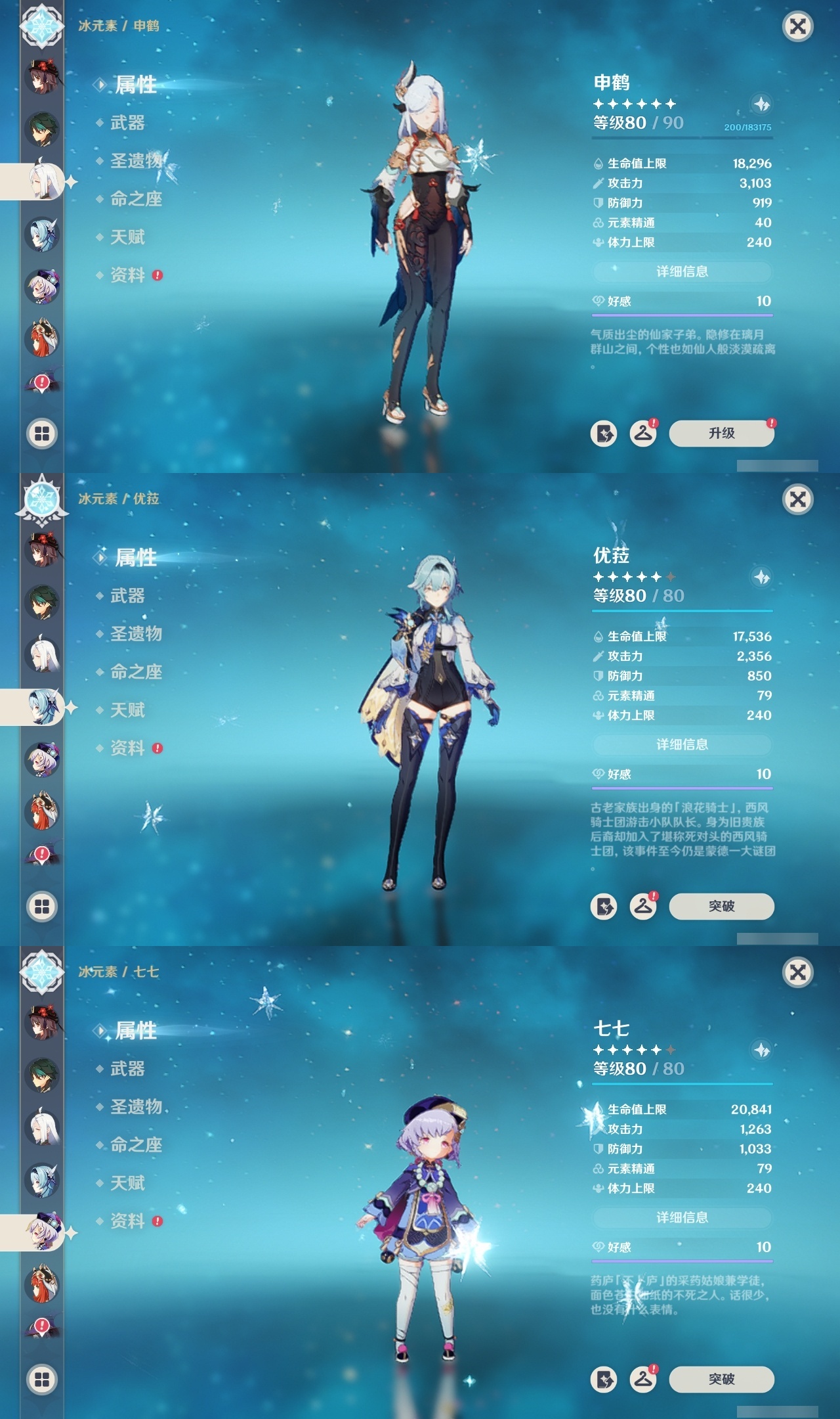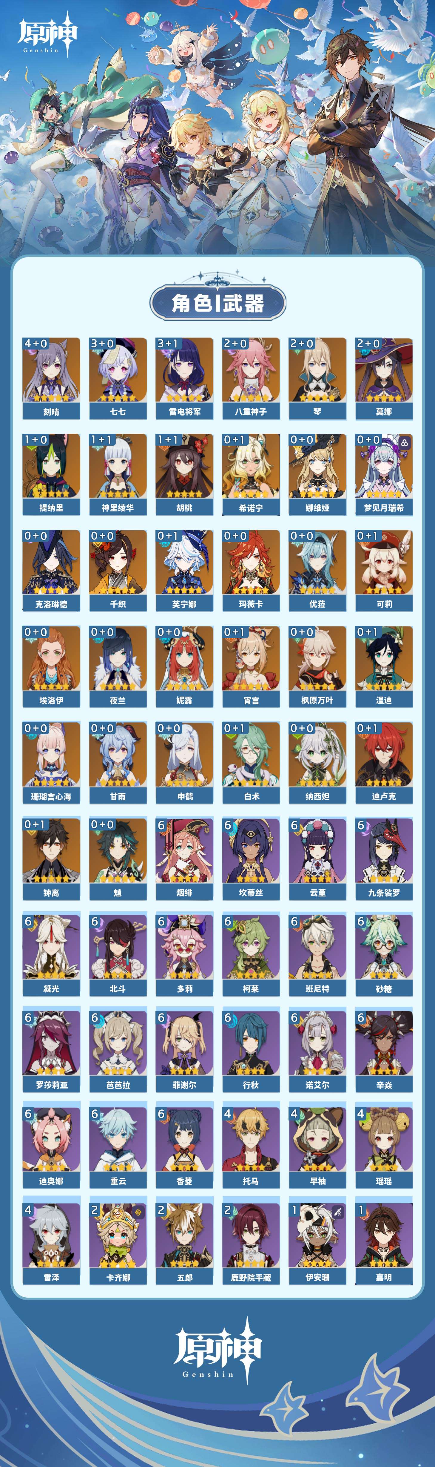 【原神】【lyys8956】冒险等级:60,五星数量:50,五星角色:刻晴 4命雷电将军 3命七七 3命莫娜 2命琴 2命八重神子 2命胡桃 1命神里绫华 1命提纳里 1命珊瑚宫心海希诺宁白术温迪玛薇卡宵宫优菈钟离梦见月瑞希申鹤夜兰芙宁娜娜维娅千织妮露纳西妲迪卢克枫原万叶甘雨魈克洛琳德可莉__五星武器:岩峰巡歌碧落之珑静水流涌之辉尘世之锁飞雷之弦振护摩之杖狼的末路磐岩结绿四风原典天空之傲天空之卷天空之翼无工之剑雾切之回光薙草之稻光终末嗟叹之诗贯虹之槊__四星角色:班尼特 6命行秋 6命九条裟罗 6命香菱 6命凝光 6命迪奥娜 6命砂糖 6命坎蒂丝 6命多莉 6命柯莱 6命芭芭拉 6命云堇 6命烟绯 6命重云 6命辛焱 6命诺艾尔 6命罗莎莉亚 6命菲谢尔 6命北斗 6命瑶瑶 4命早柚 4命托马 4命雷泽 4命卡齐娜 2命鹿野院平藏 2命五郎 2命莱依拉 1命嘉明 1命伊安珊 1命埃洛伊奇偶·女性珐露珊绮良良卡维菲米尼琳妮特夏洛蒂夏沃蕾爱诺赛索斯
