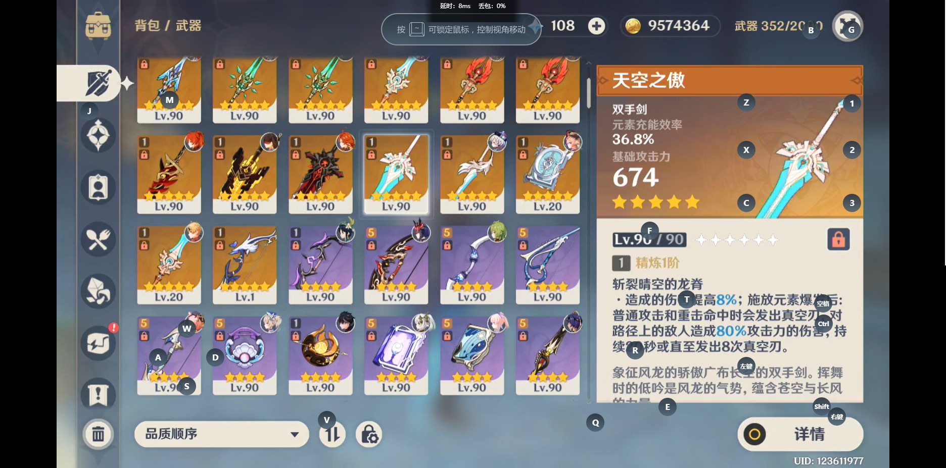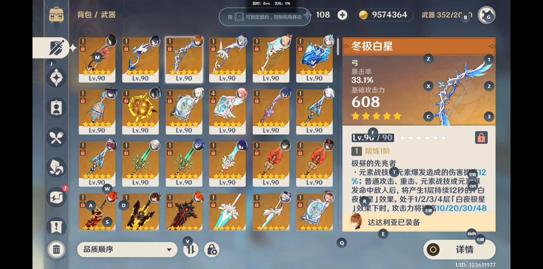 [14429274]【总黄数】:55 【冒险等级】:60 【6命金色角色】:满命那维莱特满命迪卢克 【4命金色角色】:四命琴 【3命金色角色】:三命刻晴三命七七三命莫娜 【2命金色角色】:二命胡桃二命迪希雅 【1命金色角色】:一命纳西妲一命提纳里 【0命金色角色】:菲林斯玛薇卡基尼奇阿蕾奇诺千织闲云芙宁娜莱欧斯利艾尔海森流浪者妮露赛诺夜兰八重神子申鹤珊瑚宫心海雷电将军宵宫枫原万叶优菈魈甘雨钟离达达利亚温迪 【4精武器】:天空之卷 【1精武器】:万世流涌大典最初的大魔术图莱杜拉的回忆若水息灾赤角石溃杵薙草之稻光护摩之杖和璞鸢阿莫斯之弓冬极白星尘世之锁狼的末路风鹰剑天空之傲无工之剑天空之脊天空之翼四风原典