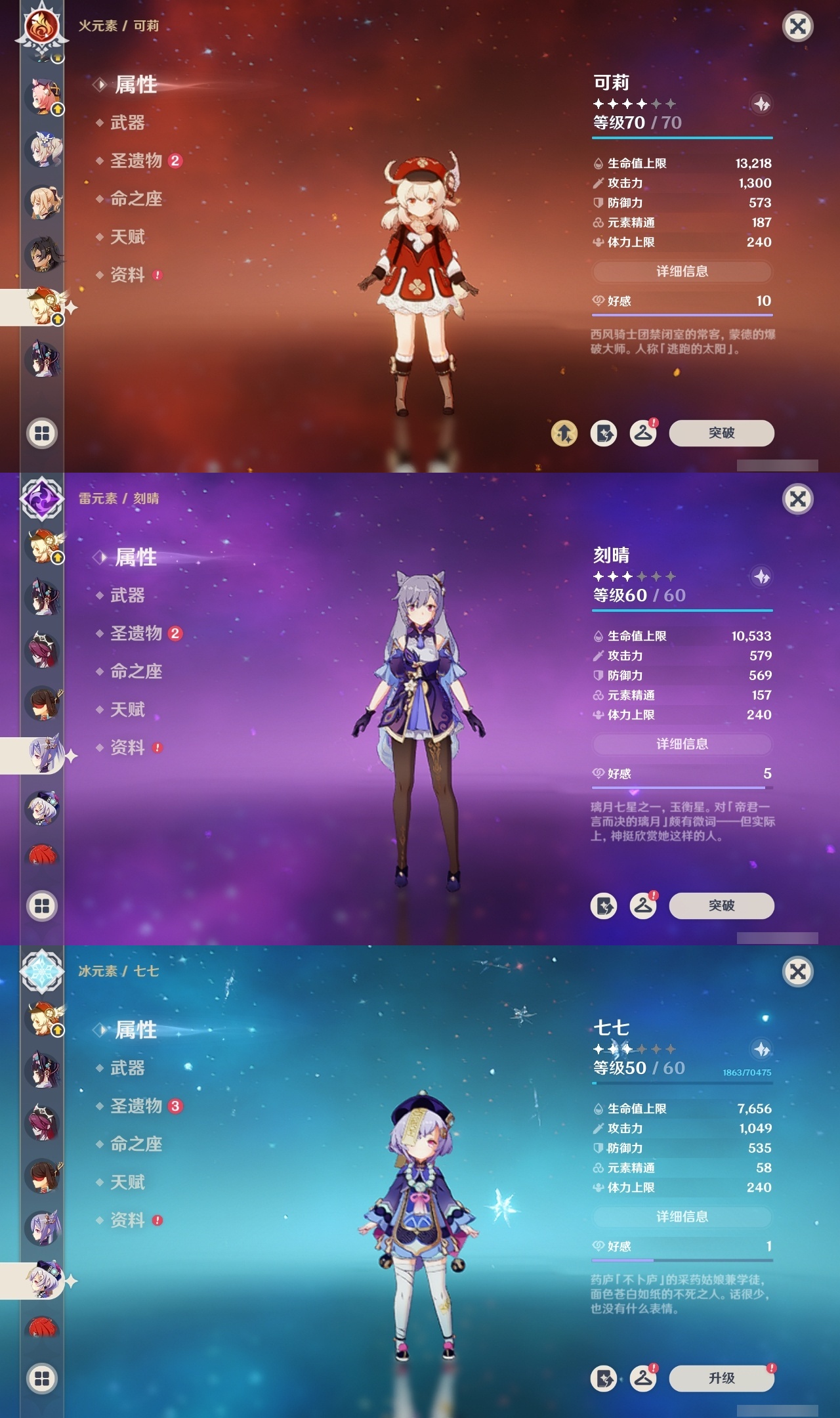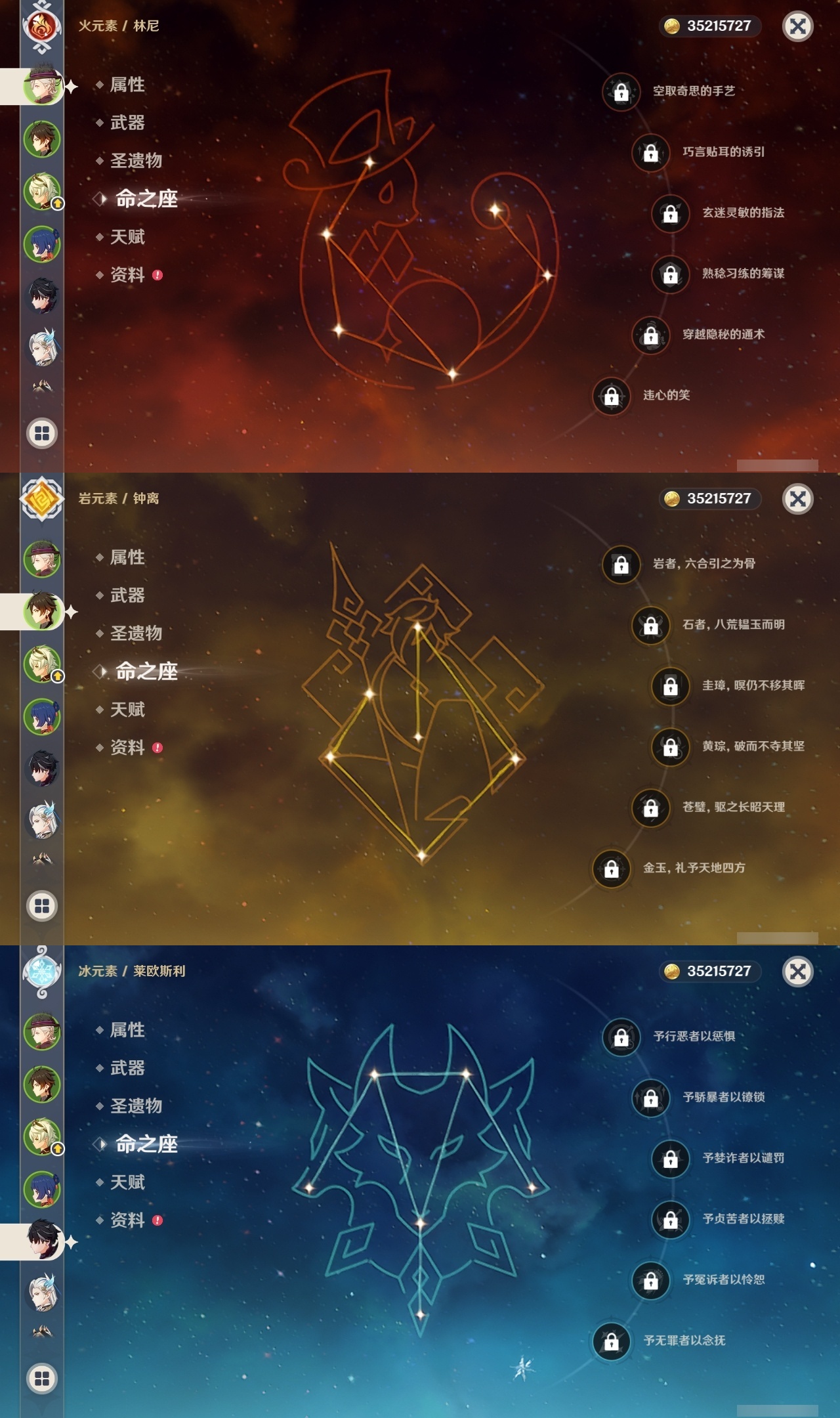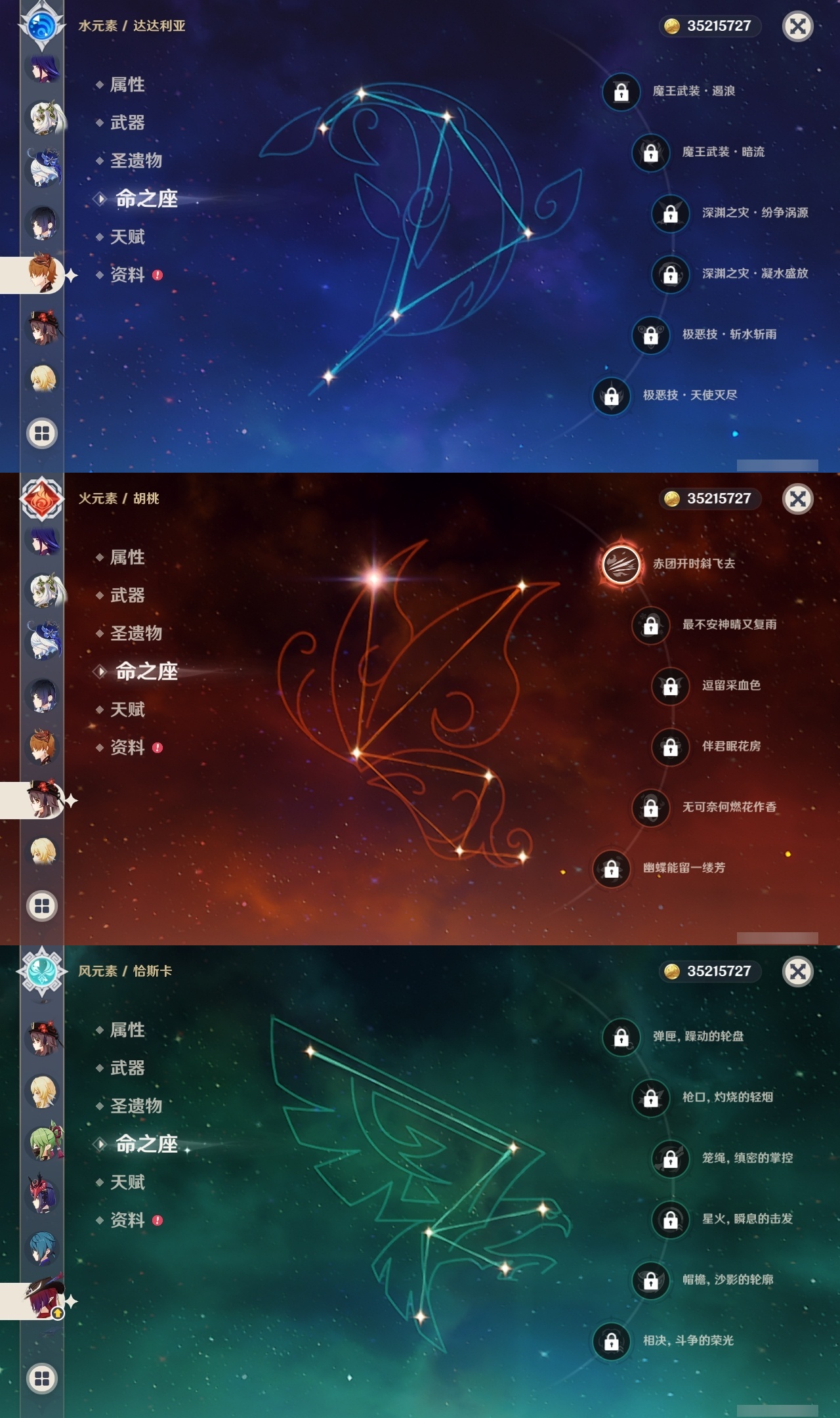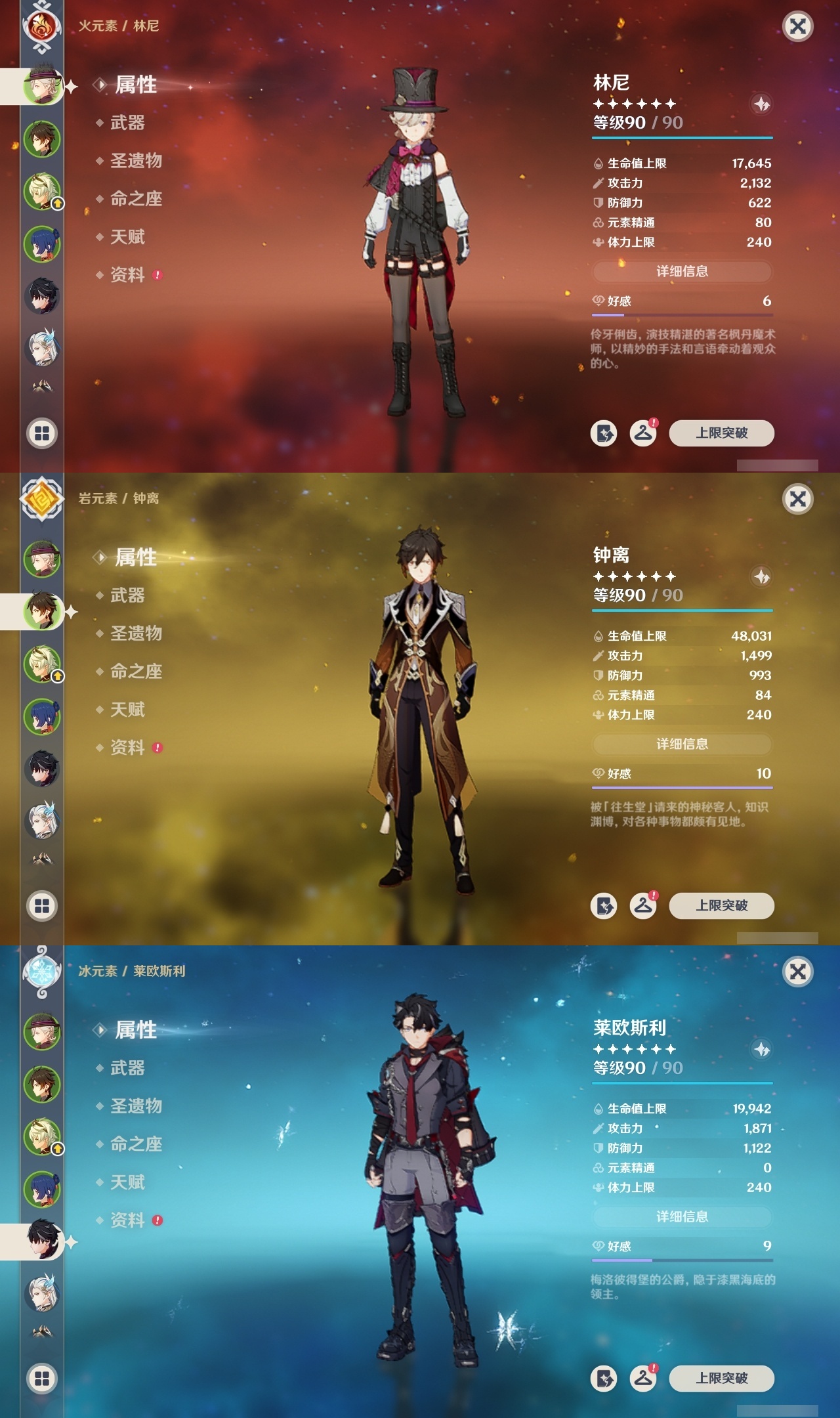【原神】【lyys9019】冒险等级:60,五星数量:46,五星角色:琴 6命夜兰 5命莫娜 4命迪卢克 2命雷电将军 2命七七 2命胡桃 1命刻晴 1命神里绫华 1命恰斯卡优菈迪希雅钟离达达利亚申鹤神里绫人林尼那维莱特莱欧斯利芙宁娜提纳里阿蕾奇诺妮露纳西妲枫原万叶可莉__五星武器:星鹫赤羽苇海信标静水流涌之辉阿莫斯之弓苍古自由之誓风鹰剑和璞鸢护摩之杖天空之傲天空之卷天空之刃天空之翼雾切之回光终末嗟叹之诗息灾贯虹之槊若水圣显之钥千夜浮梦__四星角色:班尼特 6命行秋 6命九条裟罗 6命香菱 6命久岐忍 6命鹿野院平藏 6命凝光 6命迪奥娜 6命砂糖 6命芭芭拉 6命早柚 6命托马 6命烟绯 6命辛焱 6命诺艾尔 6命罗莎莉亚 6命雷泽 6命菲谢尔 6命北斗 6命琳妮特 6命柯莱 5命重云 5命嘉明 5命珐露珊 4命云堇 4命多莉 3命夏洛蒂 3命绮良良 2命卡齐娜 1命瑶瑶 1命莱依拉 1命米卡 1命坎蒂丝 1命卡维 1命五郎 1命伊安珊 1命埃洛伊欧洛伦菲米尼夏沃蕾
