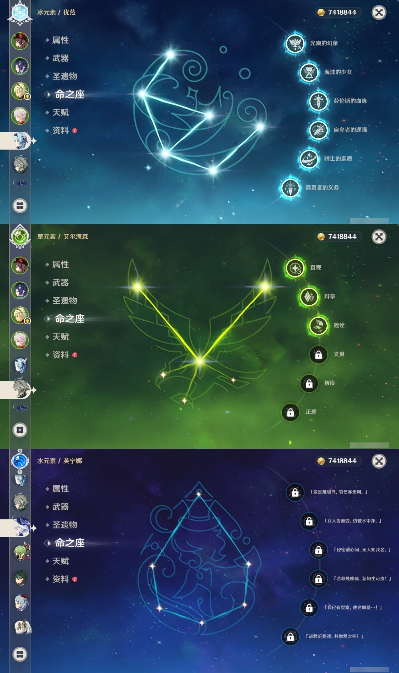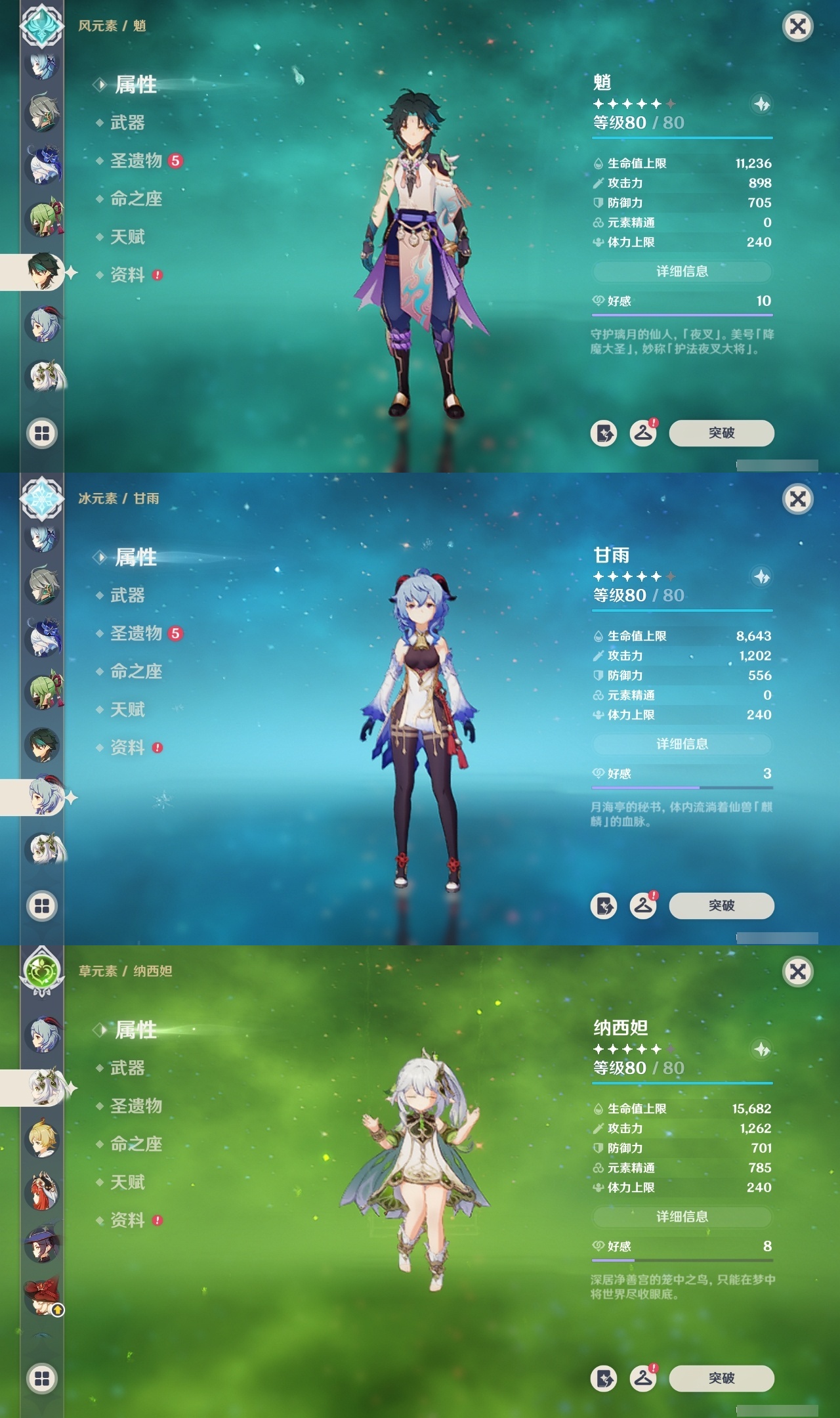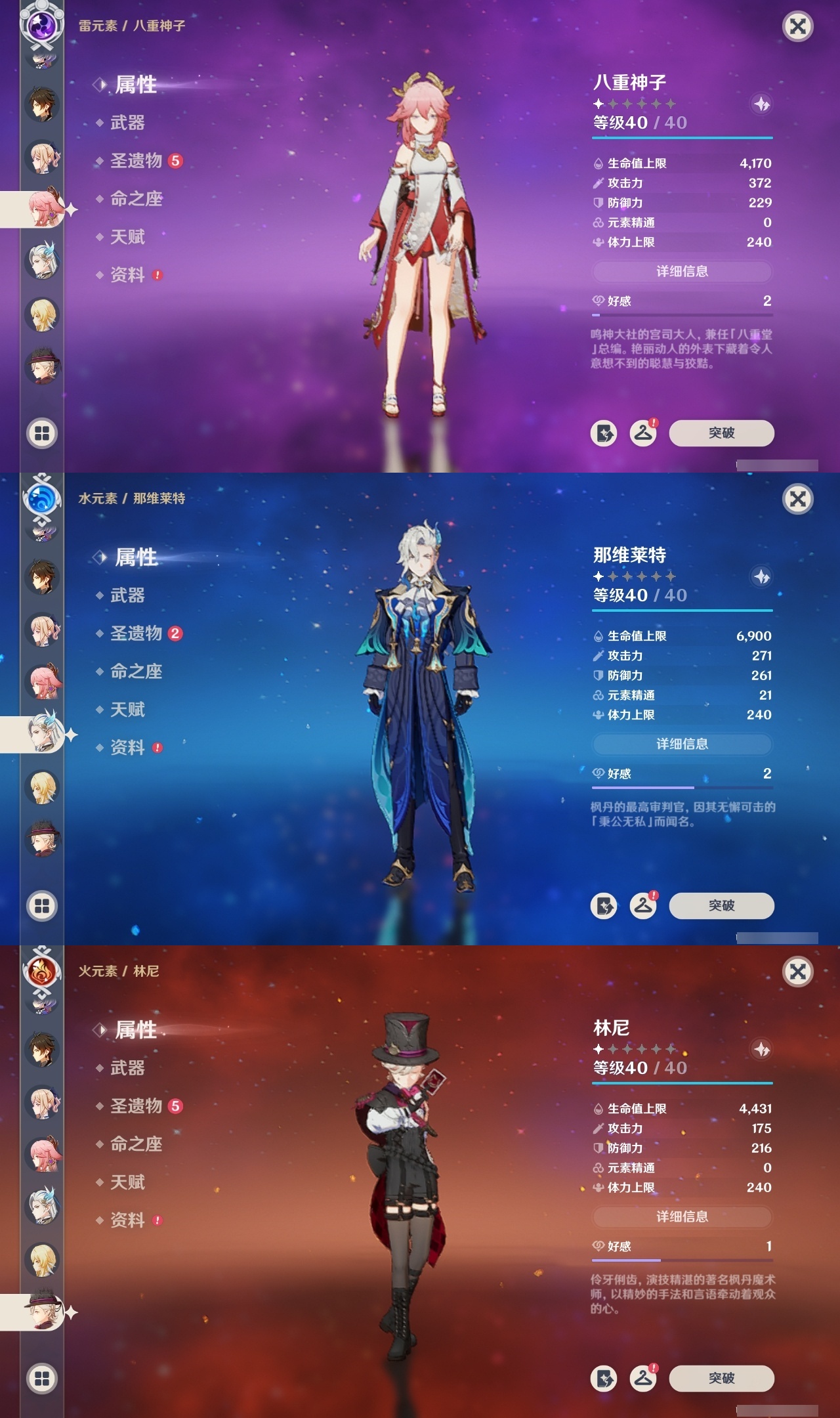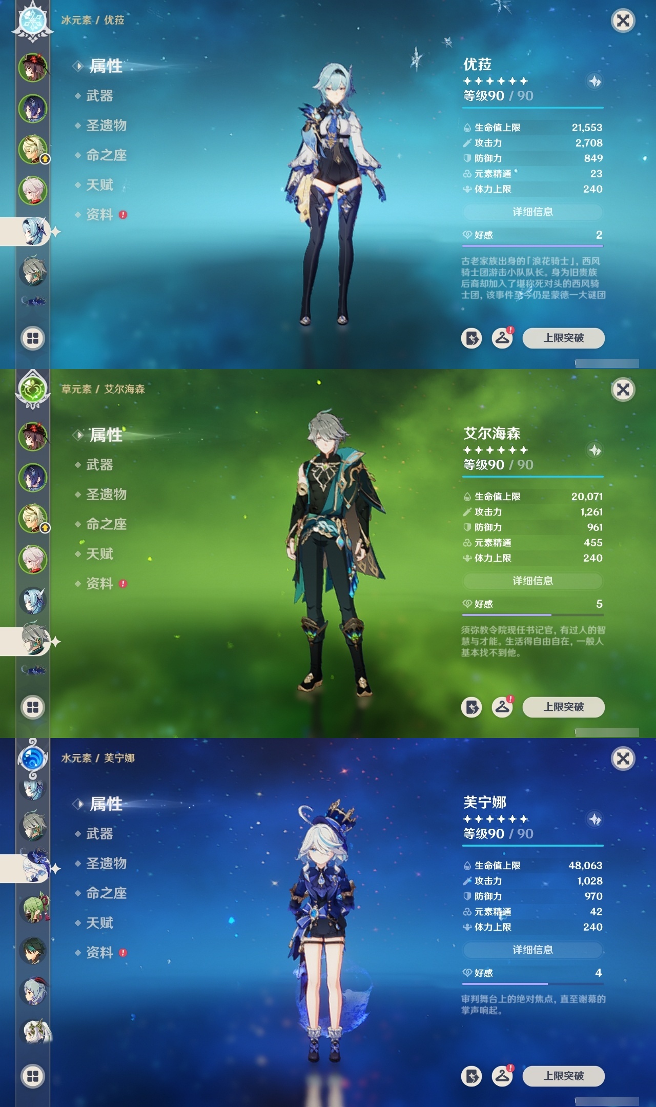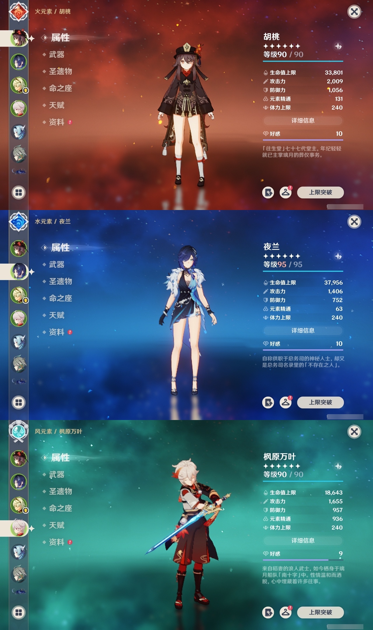 【原神】满命,冒险等级:56,五星数量:40,五星角色:胡桃 6命七七 6命优菈 6命夜兰 6命枫原万叶 3命魈 3命莫娜 3命琴 3命提纳里 3命艾尔海森 3命迪希雅 2命宵宫钟离八重神子林尼那维莱特芙宁娜妮露纳西妲迪卢克甘雨可莉__五星武器:护摩之杖 5精松籁响起之时 5精若水 5精裁叶萃光 5精和璞鸢 4精四风原典 4精天空之脊 3精阿莫斯之弓 2精苍古自由之誓 2精风鹰剑 2精天空之翼 2精圣显之钥 2精飞雷之弦振狼的末路天空之卷神乐之真意千夜浮梦__四星角色:班尼特 6命行秋 6命香菱 6命鹿野院平藏 6命凝光 6命绮良良 6命瑶瑶 6命莱依拉 6命米卡 6命坎蒂丝 6命多莉 6命柯莱 6命芭芭拉 6命云堇 6命托马 6命五郎 6命重云 6命辛焱 6命罗莎莉亚 6命雷泽 6命菲谢尔 6命北斗 6命琳妮特 6命迪奥娜 5命卡维 5命早柚 5命诺艾尔 5命久岐忍 4命珐露珊 4命砂糖 4命烟绯 3命九条裟罗 2命蓝砚 1命菲米尼 1命奇偶·男性卡齐娜嘉明伊法爱诺带159抽