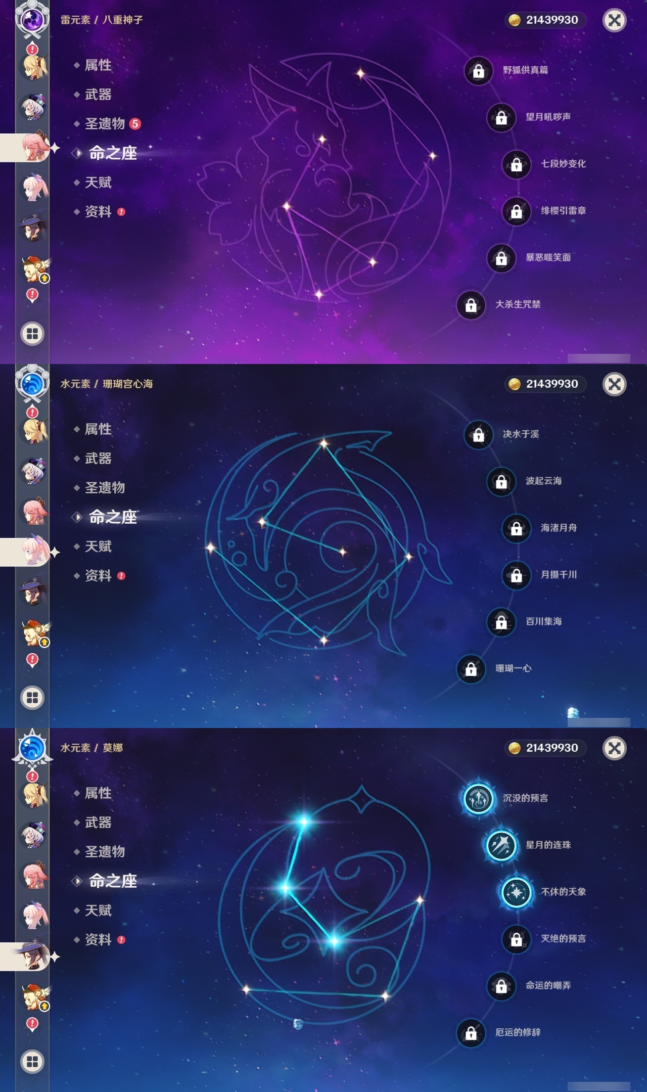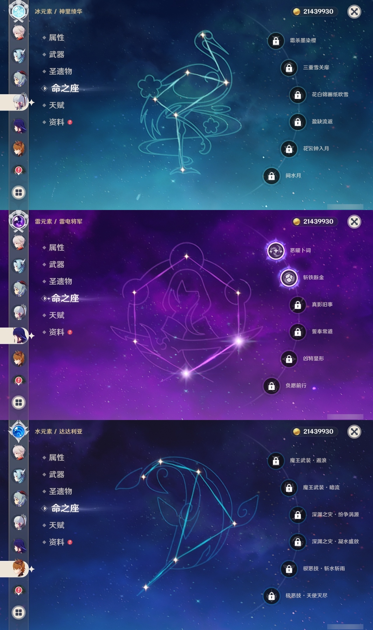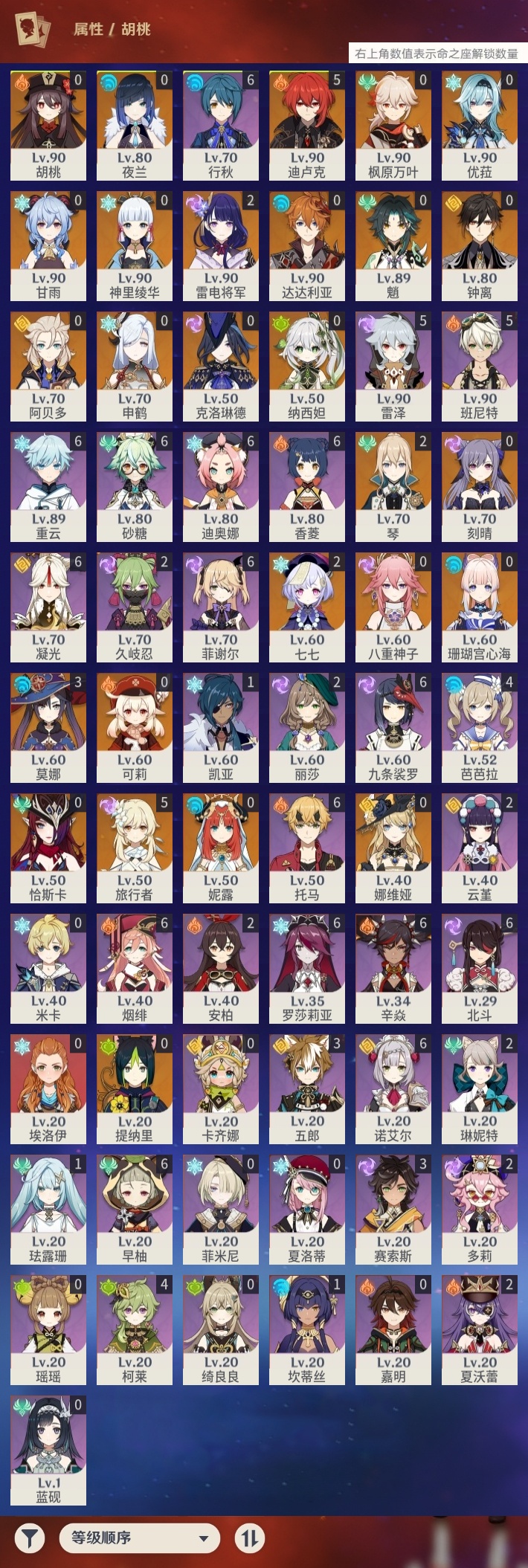 【原神】【lyys9051】冒险等级:59,五星数量:40,五星角色:迪卢克 5命莫娜 3命雷电将军 2命七七 2命琴 2命珊瑚宫心海神里绫华恰斯卡优菈钟离达达利亚申鹤八重神子阿贝多夜兰娜维娅提纳里妮露纳西妲枫原万叶甘雨魈胡桃克洛琳德可莉刻晴__五星武器:狼的末路 3精天空之刃 2精冲浪时光阿莫斯之弓和璞鸢护摩之杖四风原典松籁响起之时雾切之回光薙草之稻光神乐之真意若水赦罪__四星角色:行秋 6命九条裟罗 6命香菱 6命凝光 6命迪奥娜 6命砂糖 6命早柚 6命托马 6命烟绯 6命重云 6命辛焱 6命诺艾尔 6命罗莎莉亚 6命菲谢尔 6命北斗 6命班尼特 5命雷泽 5命柯莱 4命芭芭拉 4命五郎 3命赛索斯 3命久岐忍 2命多莉 2命云堇 2命琳妮特 2命夏沃蕾 2命珐露珊 1命坎蒂丝 1命埃洛伊卡齐娜绮良良瑶瑶米卡蓝砚菲米尼夏洛蒂嘉明