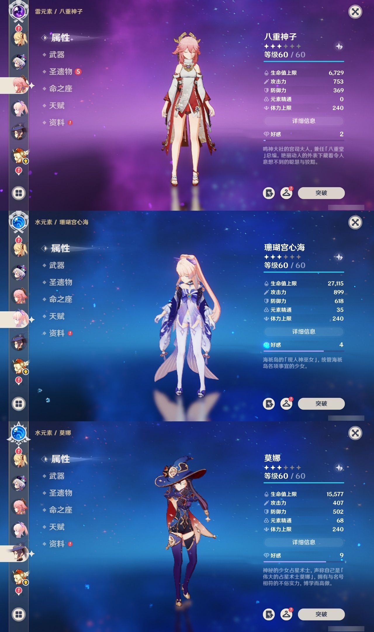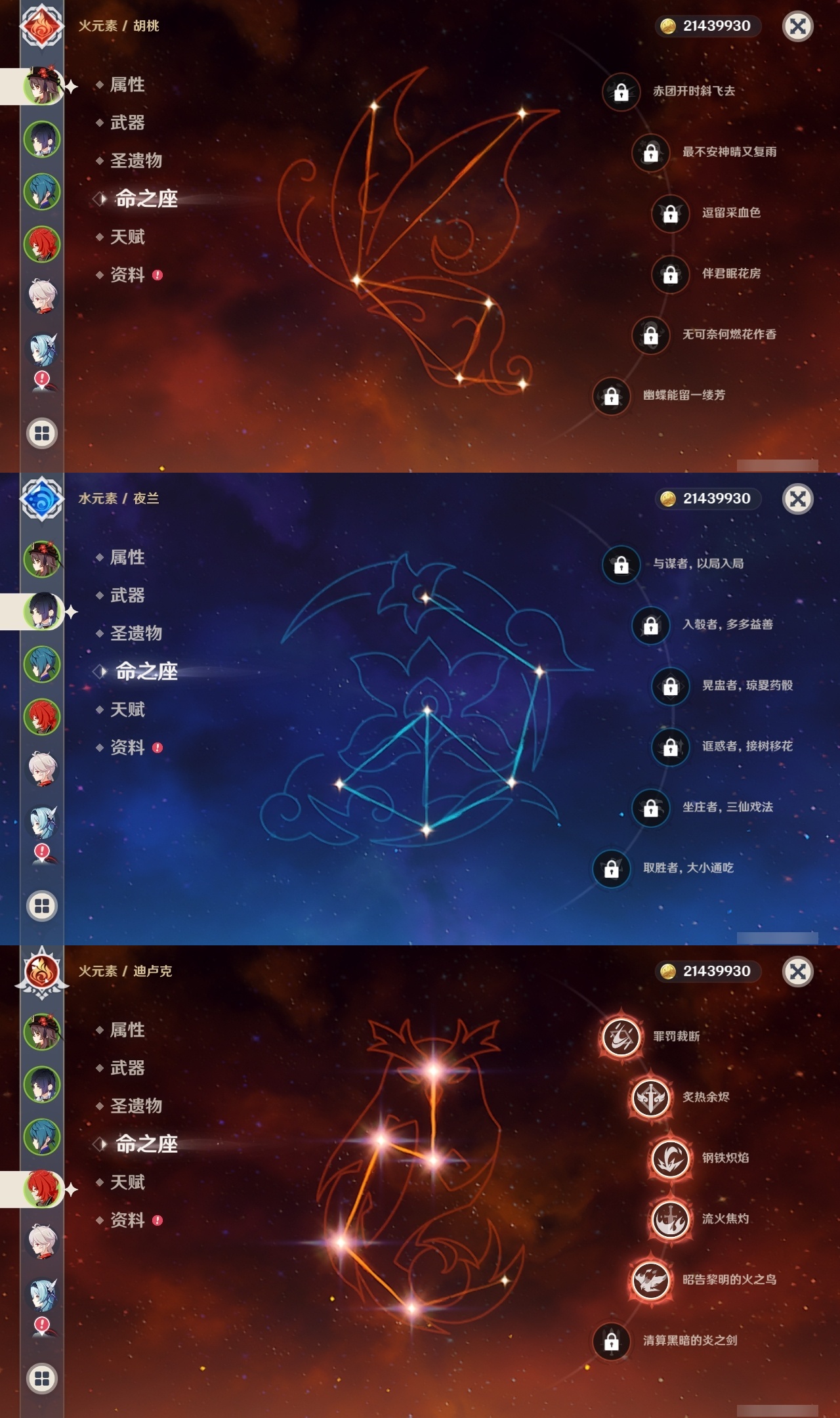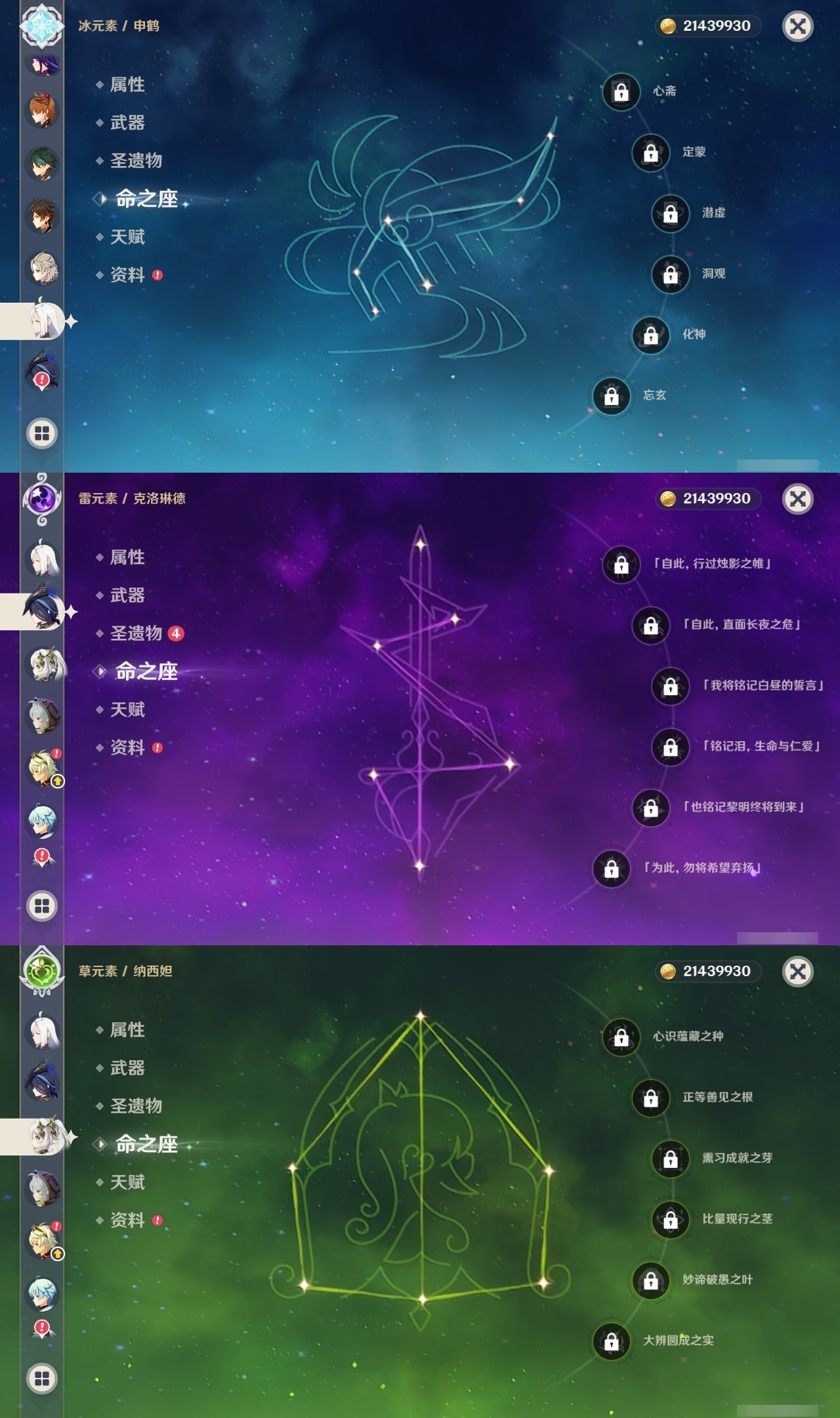 【原神】【lyys9051】冒险等级:59,五星数量:40,五星角色:迪卢克 5命莫娜 3命雷电将军 2命七七 2命琴 2命珊瑚宫心海神里绫华恰斯卡优菈钟离达达利亚申鹤八重神子阿贝多夜兰娜维娅提纳里妮露纳西妲枫原万叶甘雨魈胡桃克洛琳德可莉刻晴__五星武器:狼的末路 3精天空之刃 2精冲浪时光阿莫斯之弓和璞鸢护摩之杖四风原典松籁响起之时雾切之回光薙草之稻光神乐之真意若水赦罪__四星角色:行秋 6命九条裟罗 6命香菱 6命凝光 6命迪奥娜 6命砂糖 6命早柚 6命托马 6命烟绯 6命重云 6命辛焱 6命诺艾尔 6命罗莎莉亚 6命菲谢尔 6命北斗 6命班尼特 5命雷泽 5命柯莱 4命芭芭拉 4命五郎 3命赛索斯 3命久岐忍 2命多莉 2命云堇 2命琳妮特 2命夏沃蕾 2命珐露珊 1命坎蒂丝 1命埃洛伊卡齐娜绮良良瑶瑶米卡蓝砚菲米尼夏洛蒂嘉明