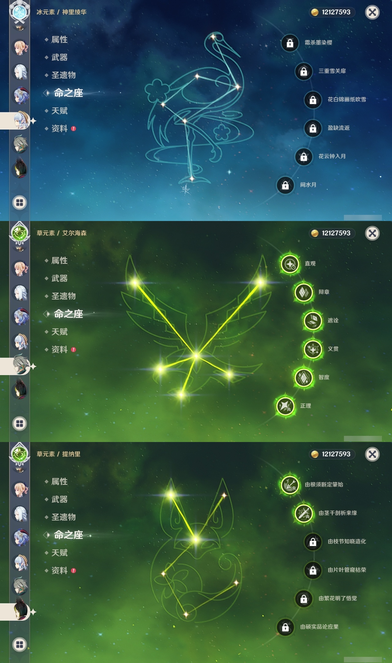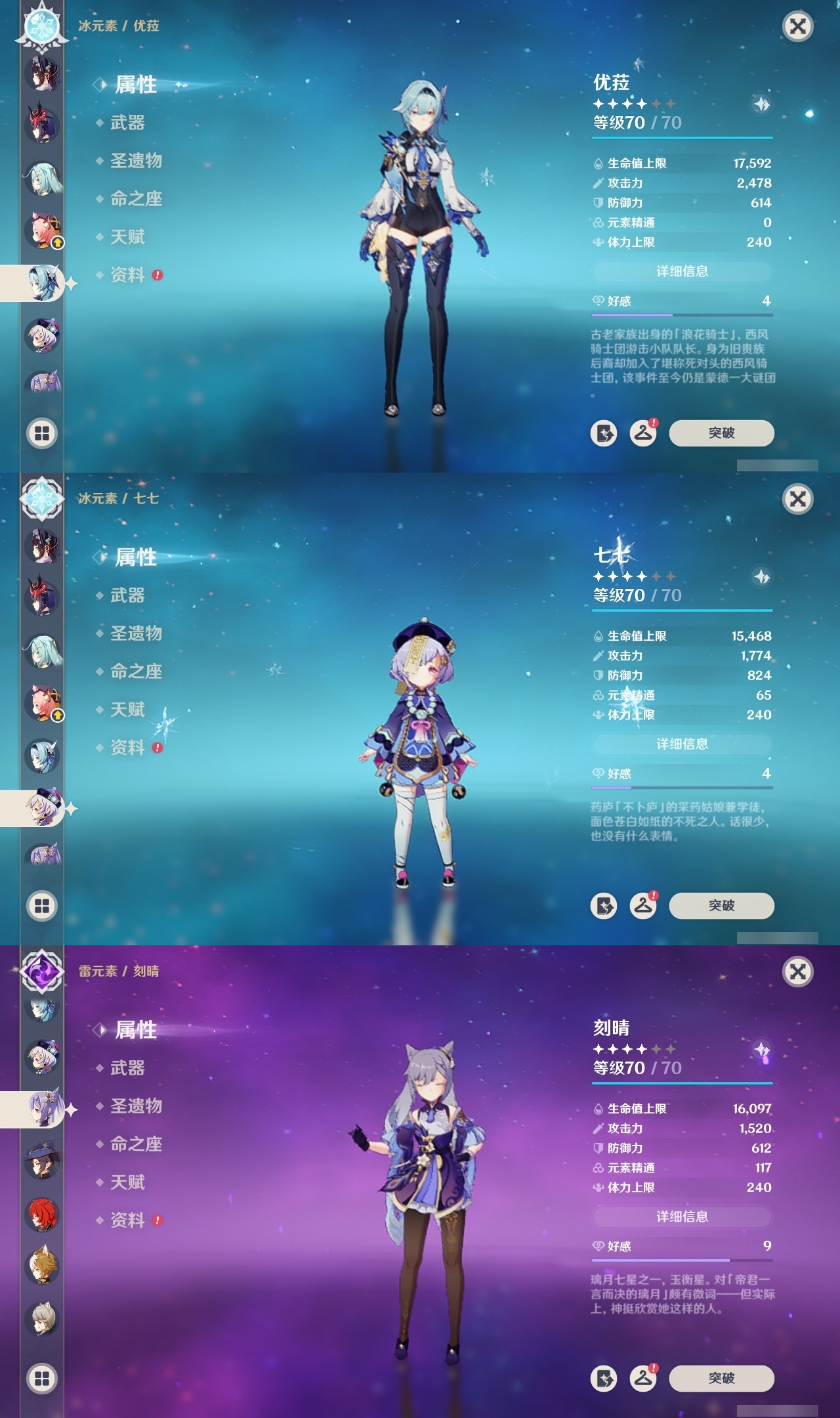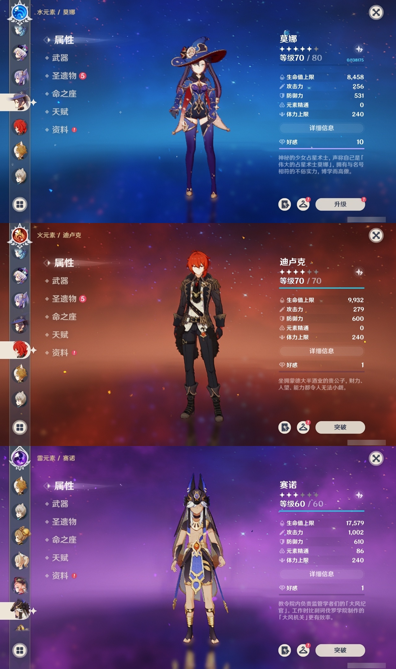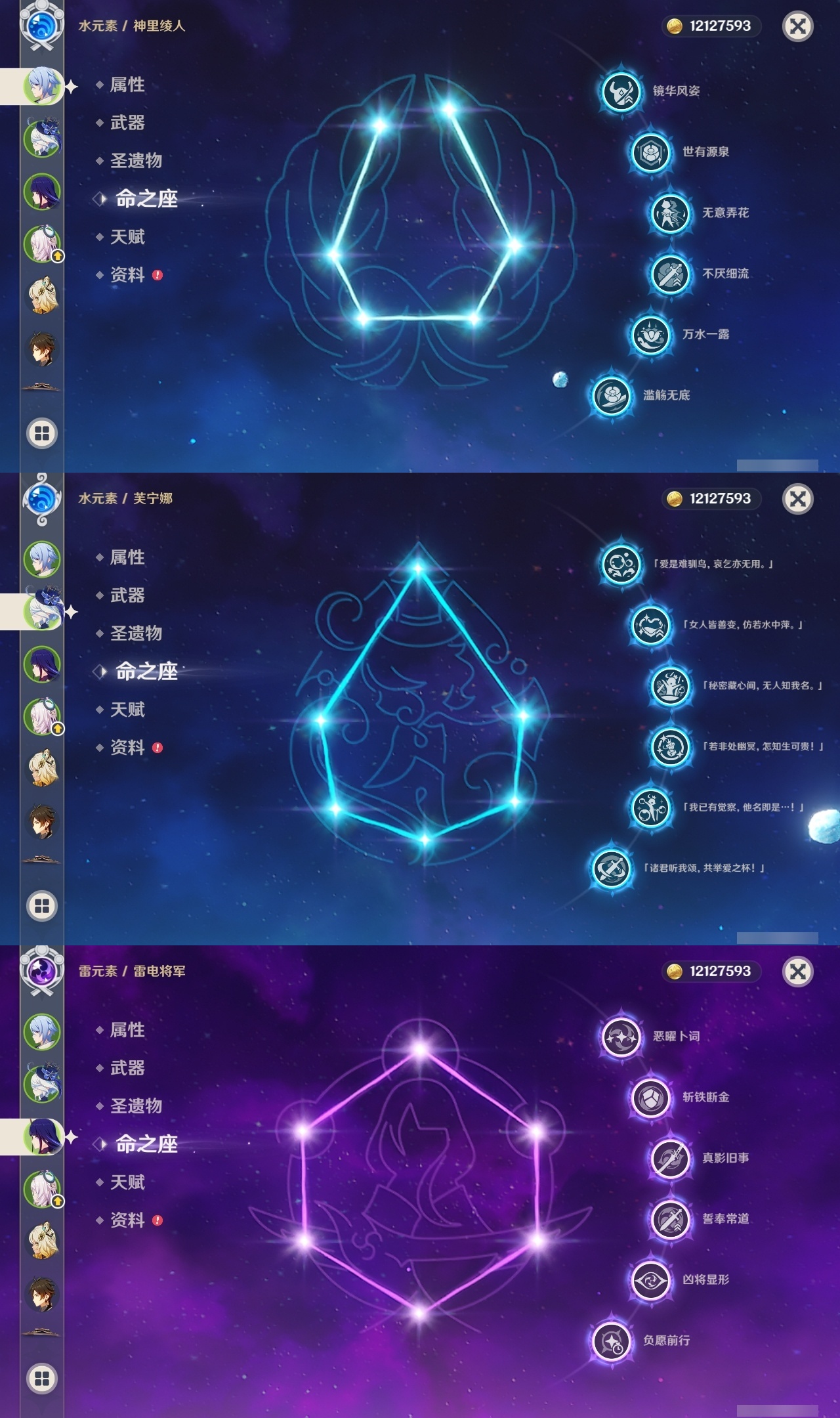 【原神】满命,冒险等级:60,五星数量:53,五星角色:芙宁娜 6命雷电将军 6命七七 6命琴 6命神里绫人 6命夜兰 6命艾尔海森 6命刻晴 4命迪卢克 3命钟离 3命莫娜 2命提纳里 2命迪希雅 1命那维莱特 1命魈 1命胡桃 1命流浪者 1命珊瑚宫心海希诺宁神里绫华茜特菈莉宵宫优菈荒泷一斗申鹤阿贝多赛诺妮露枫原万叶甘雨希格雯__五星武器:和璞鸢 5精护摩之杖 5精薙草之稻光 5精波乱月白经津 5精若水 5精裁叶萃光 5精狼的末路 3精阿莫斯之弓 2精天空之傲 2精天空之刃 2精贯虹之槊 2精白雨心弦 2精万世流涌大典静水流涌之辉飞雷之弦振风鹰剑磐岩结绿四风原典天空之卷雾切之回光斫峰之刃圣显之钥__四星角色:班尼特 6命行秋 6命九条裟罗 6命香菱 6命鹿野院平藏 6命珐露珊 6命凝光 6命迪奥娜 6命砂糖 6命瑶瑶 6命莱依拉 6命坎蒂丝 6命多莉 6命柯莱 6命芭芭拉 6命云堇 6命早柚 6命托马 6命五郎 6命烟绯 6命重云 6命辛焱 6命诺艾尔 6命罗莎莉亚 6命雷泽 6命菲谢尔 6命北斗 6命夏洛蒂 6命卡齐娜 4命米卡 4命嘉明 4命绮良良 3命夏沃蕾 3命久岐忍 2命蓝砚 2命赛索斯 2命菲米尼 1命琳妮特伊安珊