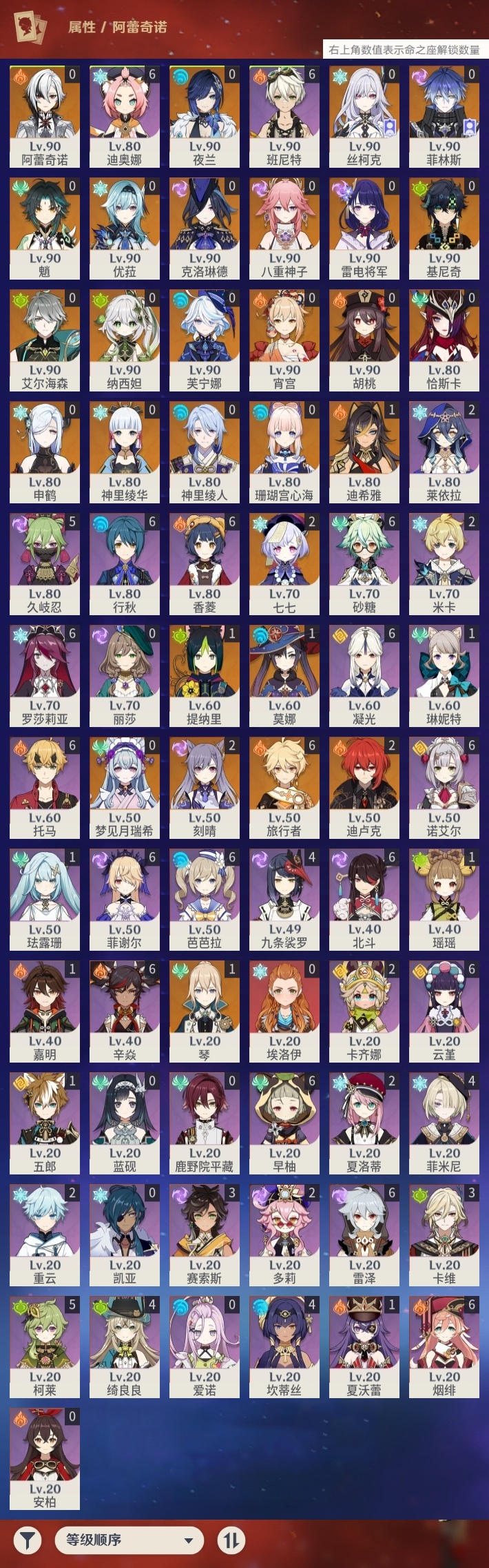 【原神】【lyys9045】冒险等级:60,五星数量:41,五星角色:迪卢克 2命刻晴 2命七七 2命迪希雅 1命莫娜 1命琴 1命提纳里 1命基尼奇珊瑚宫心海神里绫华恰斯卡宵宫优菈梦见月瑞希申鹤八重神子神里绫人夜兰芙宁娜阿蕾奇诺丝柯克纳西妲菲林斯艾尔海森魈胡桃克洛琳德雷电将军__五星武器:天空之傲 3精最初的大魔术赤月之形尘世之锁风鹰剑护摩之杖四风原典松籁响起之时天空之刃薙草之稻光若水圣显之钥__四星角色:班尼特 6命行秋 6命香菱 6命凝光 6命迪奥娜 6命砂糖 6命芭芭拉 6命云堇 6命早柚 6命托马 6命烟绯 6命辛焱 6命诺艾尔 6命罗莎莉亚 6命雷泽 6命菲谢尔 6命北斗 6命久岐忍 5命柯莱 5命九条裟罗 4命绮良良 4命坎蒂丝 4命菲米尼 4命卡维 3命赛索斯 3命卡齐娜 2命莱依拉 2命米卡 2命多莉 2命重云 2命夏洛蒂 2命珐露珊 1命瑶瑶 1命五郎 1命琳妮特 1命夏沃蕾 1命嘉明 1命埃洛伊鹿野院平藏蓝砚爱诺