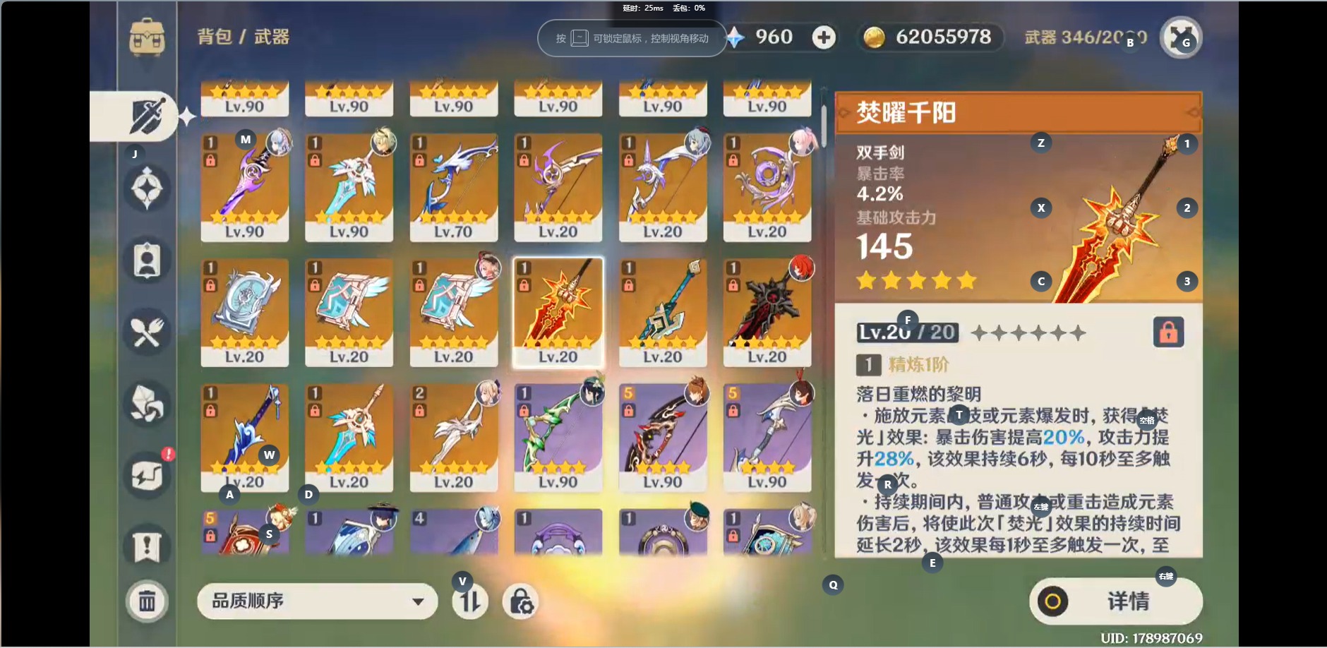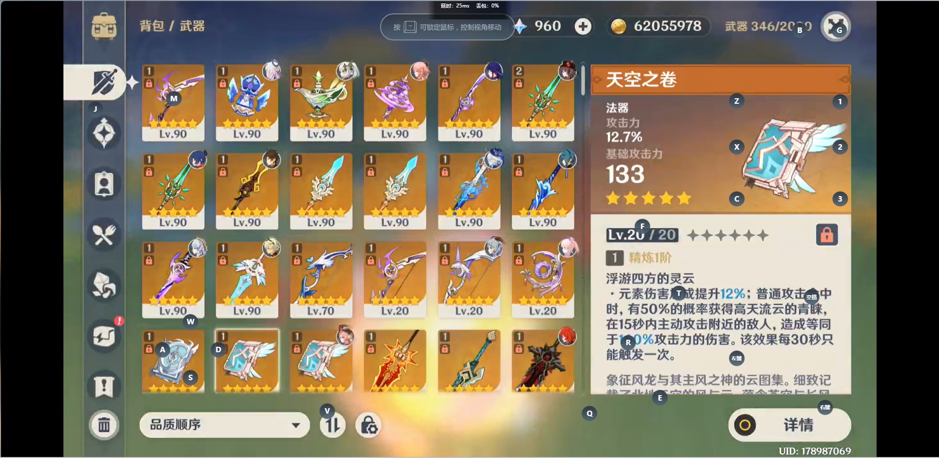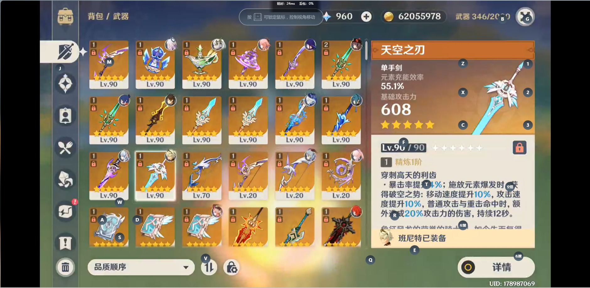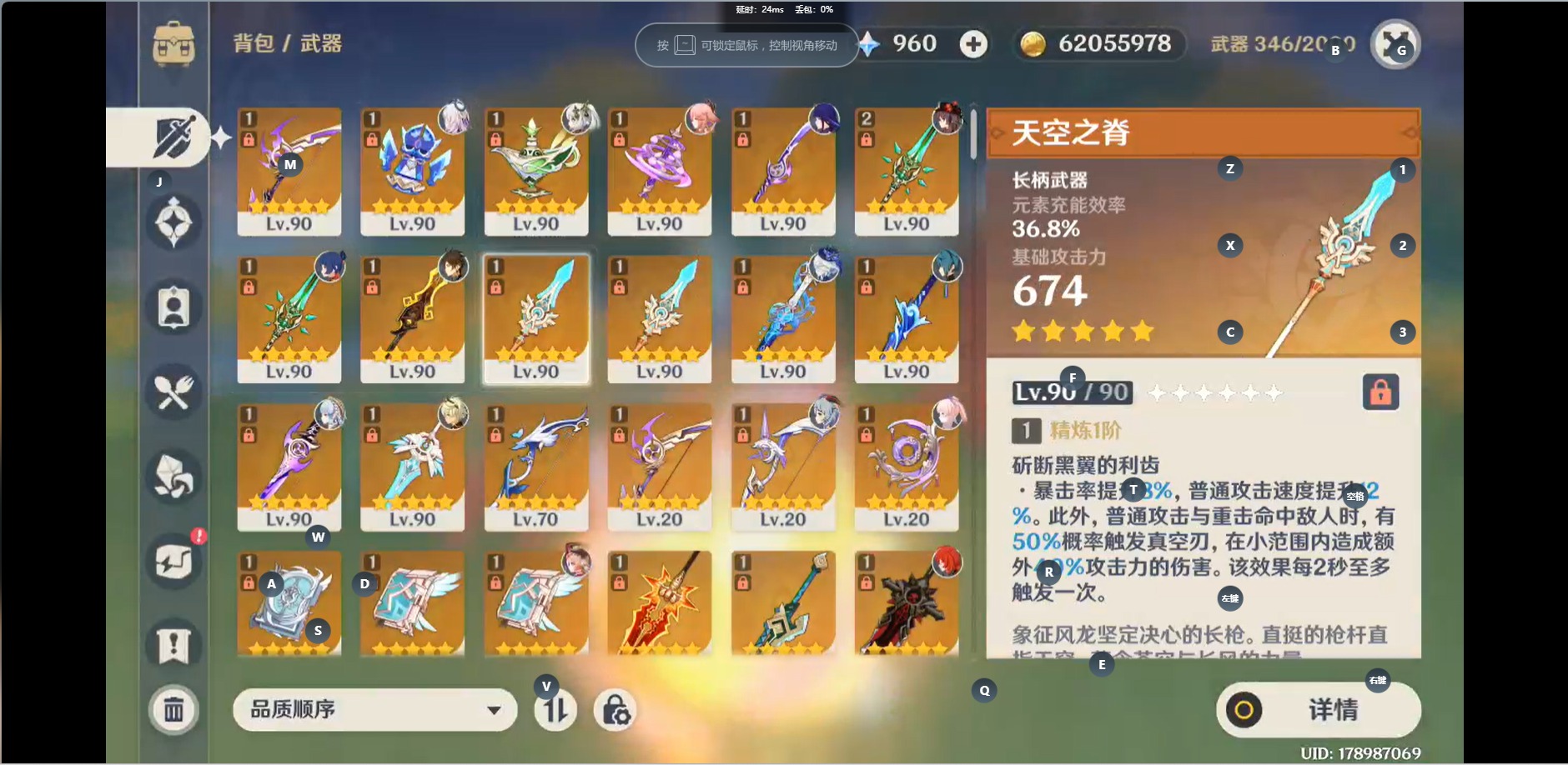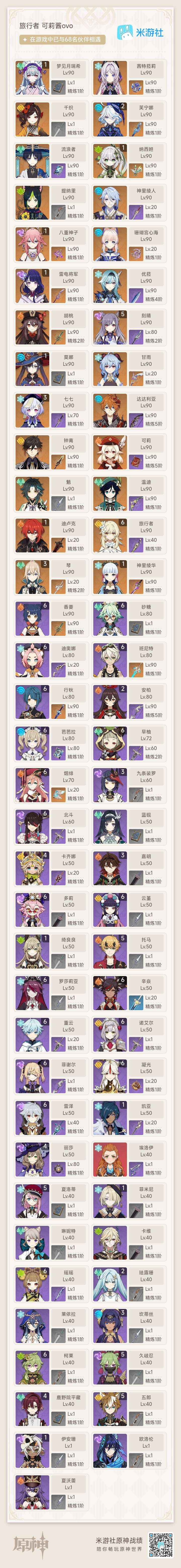 [14470028]【总黄数】:48 【冒险等级】:60 【5命金色角色】:五命刻晴 【3命金色角色】:三命琴三命七七 【2命金色角色】:二命芙宁娜 【1命金色角色】:一命梦见月瑞希一命纳西妲一命八重神子一命雷电将军一命神里绫华一命迪卢克一命莫娜 【0命金色角色】:茜特菈莉千织流浪者神里绫人珊瑚宫心海优菈胡桃魈甘雨钟离达达利亚可莉温迪提纳里 【2精武器】:和璞鸢风鹰剑 【1精武器】:祭星者之望焚曜千阳山王长牙静水流涌之辉千夜浮梦若水波乱月白经津神乐之真意不灭月华薙草之稻光飞雷之弦振雾切之回光阿莫斯之弓贯虹之槊狼的末路天空之卷天空之脊天空之刃四风原典
