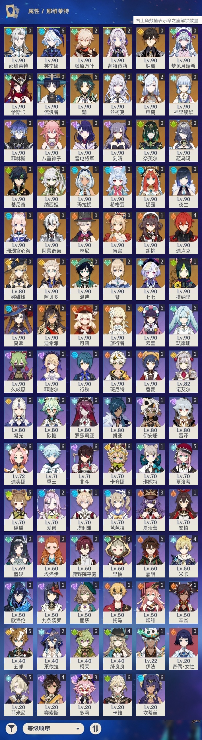 【原神】【lyys9080】冒险等级:60,五星数量:60,五星角色:芙宁娜 6命魈 6命迪希雅 5命迪卢克 4命刻晴 3命茜特菈莉 2命枫原万叶 2命莫娜 2命七七 2命琴 2命申鹤 2命玛拉妮 1命恰斯卡 1命胡桃 1命提纳里 1命基尼奇珊瑚宫心海神里绫华温迪宵宫钟离梦见月瑞希八重神子林尼阿贝多那维莱特夜兰娜维娅阿蕾奇诺丝柯克妮露纳西妲菈乌玛菲林斯奈芙尔流浪者希格雯可莉雷电将军__五星武器:静水流涌之辉 2精和璞鸢 2精狼的末路 2精四风原典 2精斫峰之刃 2精寝正月初晴万世流涌大典阿莫斯之弓苍古自由之誓飞雷之弦振护摩之杖天空之傲天空之脊天空之卷天空之刃天空之翼雾切之回光薙草之稻光若水__四星角色:卡齐娜 6命班尼特 6命行秋 6命九条裟罗 6命香菱 6命久岐忍 6命珐露珊 6命凝光 6命迪奥娜 6命砂糖 6命坎蒂丝 6命柯莱 6命卡维 6命芭芭拉 6命云堇 6命托马 6命烟绯 6命重云 6命辛焱 6命诺艾尔 6命罗莎莉亚 6命雷泽 6命菲谢尔 6命北斗 6命嘉明 6命瑶瑶 5命五郎 5命菲米尼 5命夏洛蒂 5命绮良良 4命米卡 4命赛索斯 4命多莉 3命早柚 3命夏沃蕾 3命莱依拉 2命爱诺 2命琳妮特 1命伊法 1命伊安珊 1命塔利雅 1命埃洛伊奇偶·女性鹿野院平藏欧洛伦蓝砚