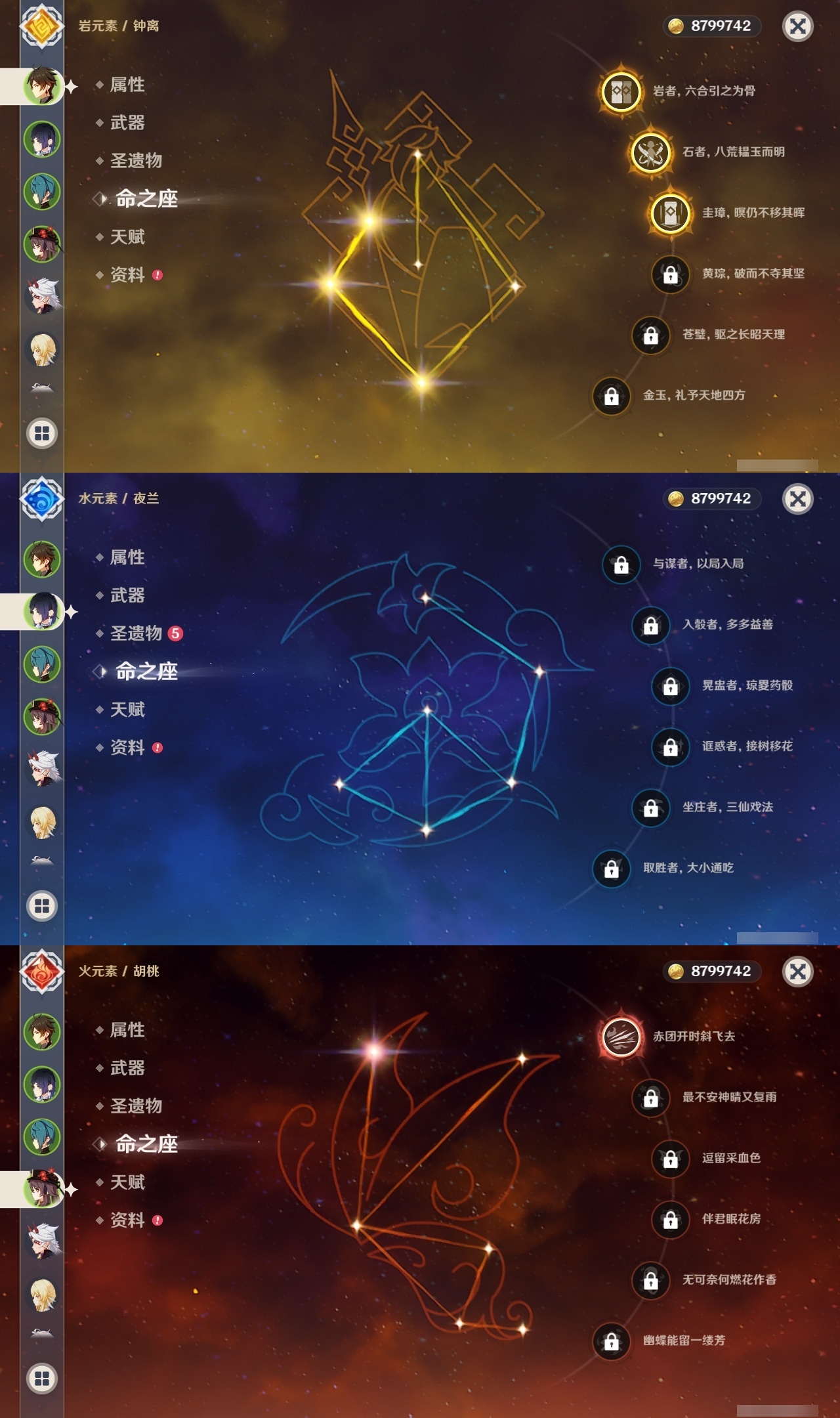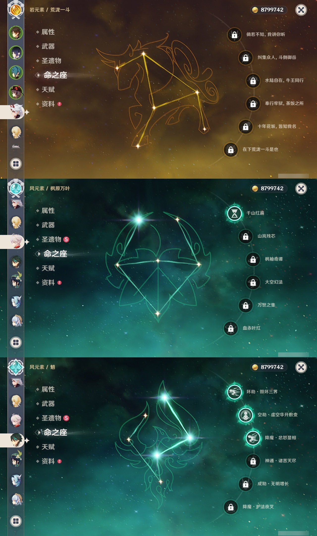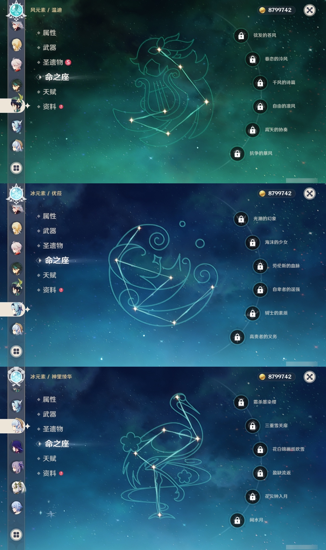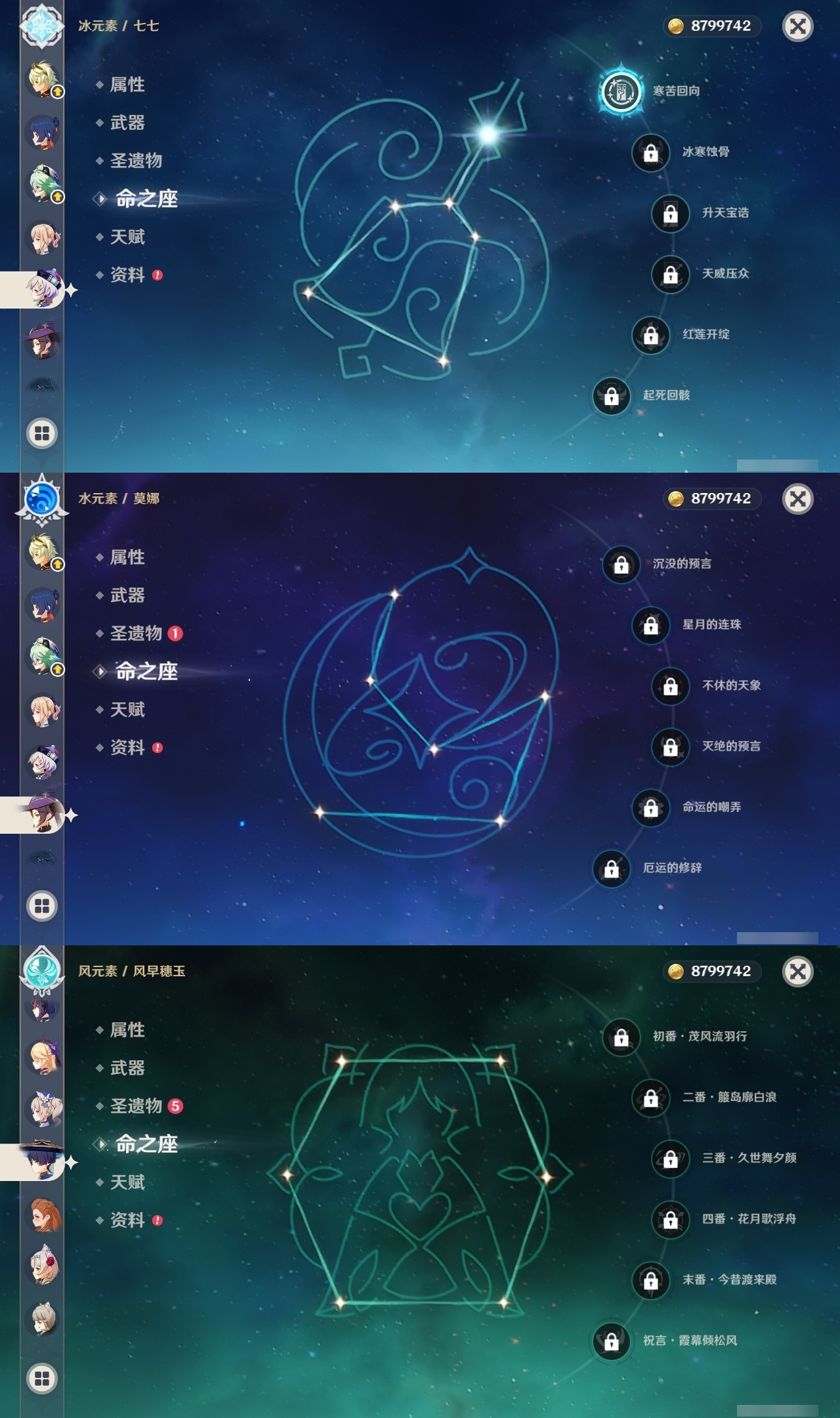 【原神】【lyys9085】冒险等级:60,五星数量:34,五星角色:刻晴 6命迪卢克 4命魈 3命钟离 3命琴 2命达达利亚 1命枫原万叶 1命胡桃 1命雷电将军 1命七七 1命莫娜神里绫华温迪优菈荒泷一斗神里绫人林尼夜兰娜维娅纳西妲流浪者可莉__五星武器:狼的末路 2精裁叶萃光阿莫斯之弓磐岩结绿天空之傲天空之脊天空之卷天空之刃雾切之回光赤角石溃杵若水__四星角色:班尼特 6命行秋 6命九条裟罗 6命香菱 6命凝光 6命迪奥娜 6命砂糖 6命瑶瑶 6命芭芭拉 6命云堇 6命早柚 6命托马 6命烟绯 6命重云 6命辛焱 6命诺艾尔 6命罗莎莉亚 6命雷泽 6命菲谢尔 6命北斗 6命鹿野院平藏 5命久岐忍 4命五郎 3命珐露珊 2命坎蒂丝 2命多莉 2命米卡 1命柯莱 1命赛索斯 1命埃洛伊绮良良莱依拉卡维菲米尼琳妮特