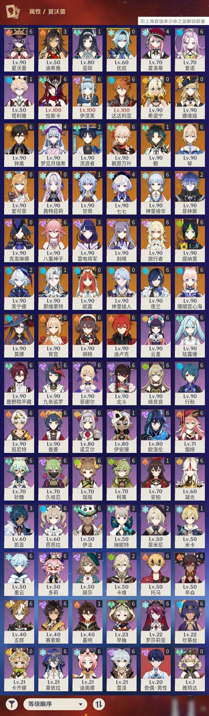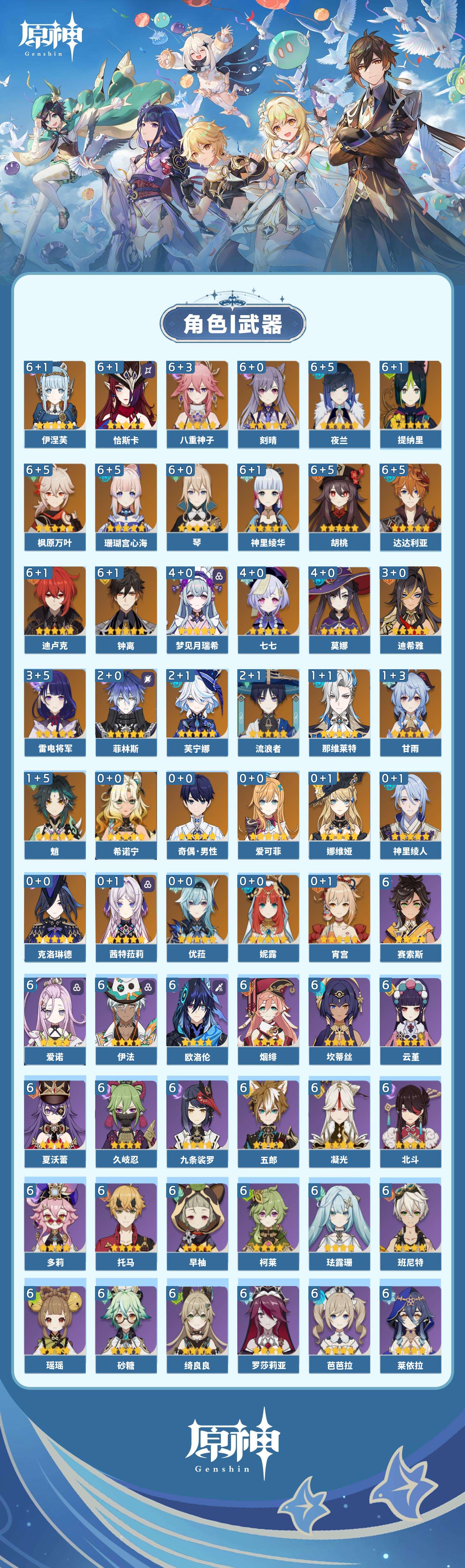 【原神】4满命,冒险等级:60,五星数量:70,五星角色:恰斯卡 6命伊涅芙 6命达达利亚 6命迪卢克 6命枫原万叶 6命胡桃 6命刻晴 6命琴 6命珊瑚宫心海 6命神里绫华 6命钟离 6命八重神子 6命夜兰 6命提纳里 6命梦见月瑞希 4命莫娜 4命七七 4命迪希雅 3命雷电将军 3命芙宁娜 2命菲林斯 2命流浪者 2命那维莱特 1命甘雨 1命魈 1命希诺宁茜特菈莉宵宫优菈神里绫人娜维娅爱可菲妮露克洛琳德__五星武器:不灭月华 5精苍古自由之誓 5精和璞鸢 5精护摩之杖 5精薙草之稻光 5精冬极白星 5精若水 5精天空之卷 4精天空之刃 4精阿莫斯之弓 3精风鹰剑 3精四风原典 3精息灾 3精神乐之真意 3精天空之翼 2精斫峰之刃 2精冲浪时光星鹫赤羽祭星者之望万世流涌大典静水流涌之辉裁断支离轮光裁叶萃光图莱杜拉的回忆飞雷之弦振狼的末路磐岩结绿天空之傲天空之脊雾切之回光赤角石溃杵贯虹之槊波乱月白经津猎人之径__四星角色:班尼特 6命行秋 6命九条裟罗 6命香菱 6命久岐忍 6命鹿野院平藏 6命珐露珊 6命凝光 6命迪奥娜 6命砂糖 6命绮良良 6命瑶瑶 6命莱依拉 6命坎蒂丝 6命多莉 6命柯莱 6命芭芭拉 6命欧洛伦 6命云堇 6命早柚 6命托马 6命五郎 6命烟绯 6命重云 6命辛焱 6命诺艾尔 6命罗莎莉亚 6命雷泽 6命菲谢尔 6命北斗 6命夏沃蕾 6命伊法 6命爱诺 6命赛索斯 6命夏洛蒂 4命琳妮特 3命卡维 2命菲米尼 2命米卡 1命蓝砚 1命嘉明 1命伊安珊 1命塔利雅 1命奇偶·男性卡齐娜