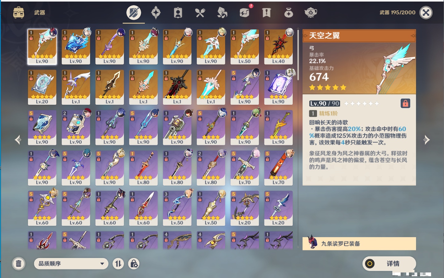_2274562-邮箱不出售冒险等级59级女主47黄18个五星角色14个五星武器纠缠之源0原石174圣遗物654【时装】雨化竹身帆影游风叶隐芳名霓裾蹁跹 【18个五星角色】5命琴3命雷电将军2命莫娜1命那维莱特1命提纳里1命夜兰1命刻晴1命迪卢克0命阿蕾奇诺0命闲云0命芙宁娜0命迪希雅0命纳西妲0命枫原万叶0命宵宫0命七七0命菲林斯0命希诺宁 【14个五星武器】精1天空之翼精1万世流涌大典精1薙草之稻光精1天空之脊精1苍古自由之誓精1天空之刃精1赤月之形精1四风原典精1阿莫斯之弓精1贯虹之槊精1狼的末路精1天空之傲 【时装】雨化竹身帆影游风叶隐芳名霓裾蹁跹