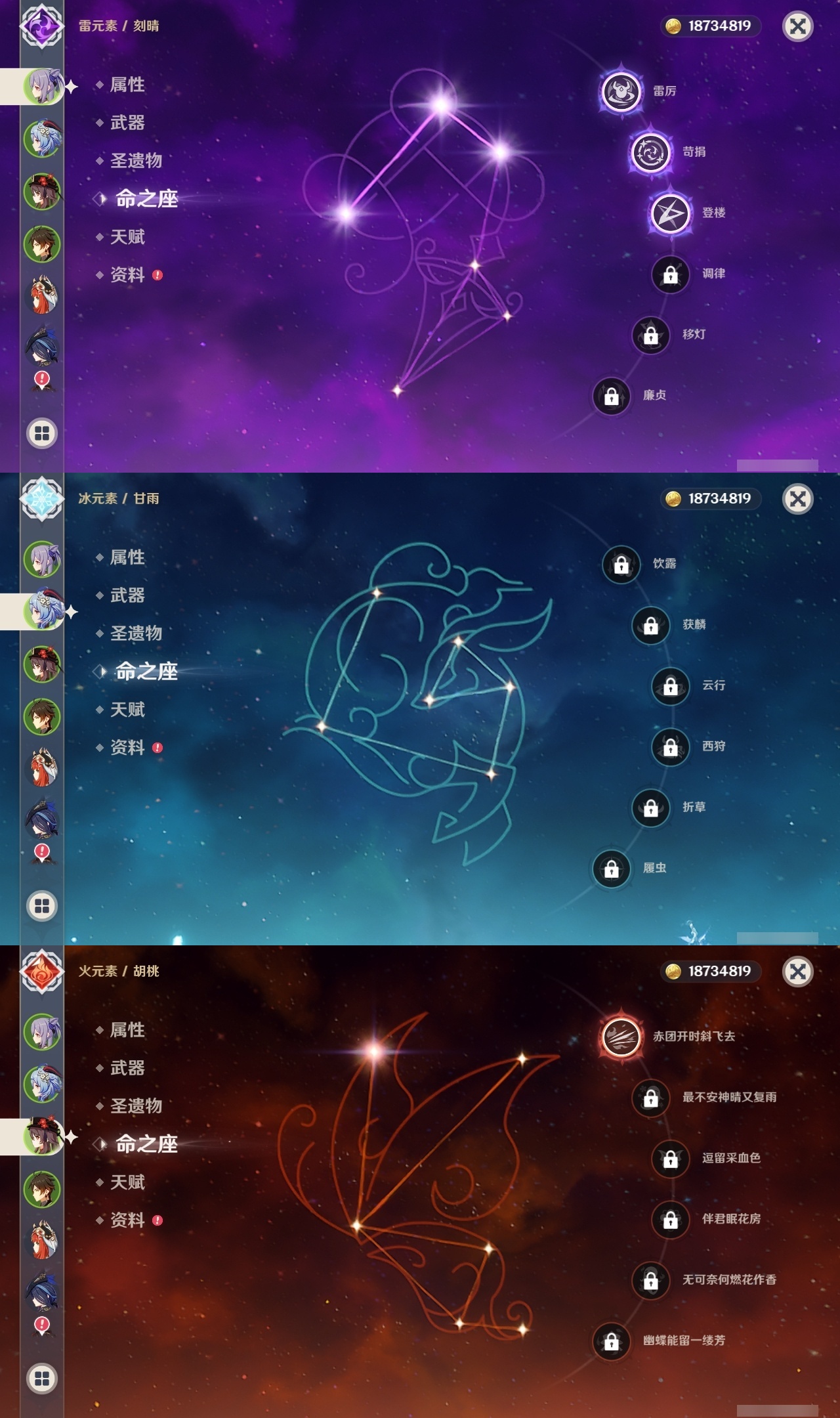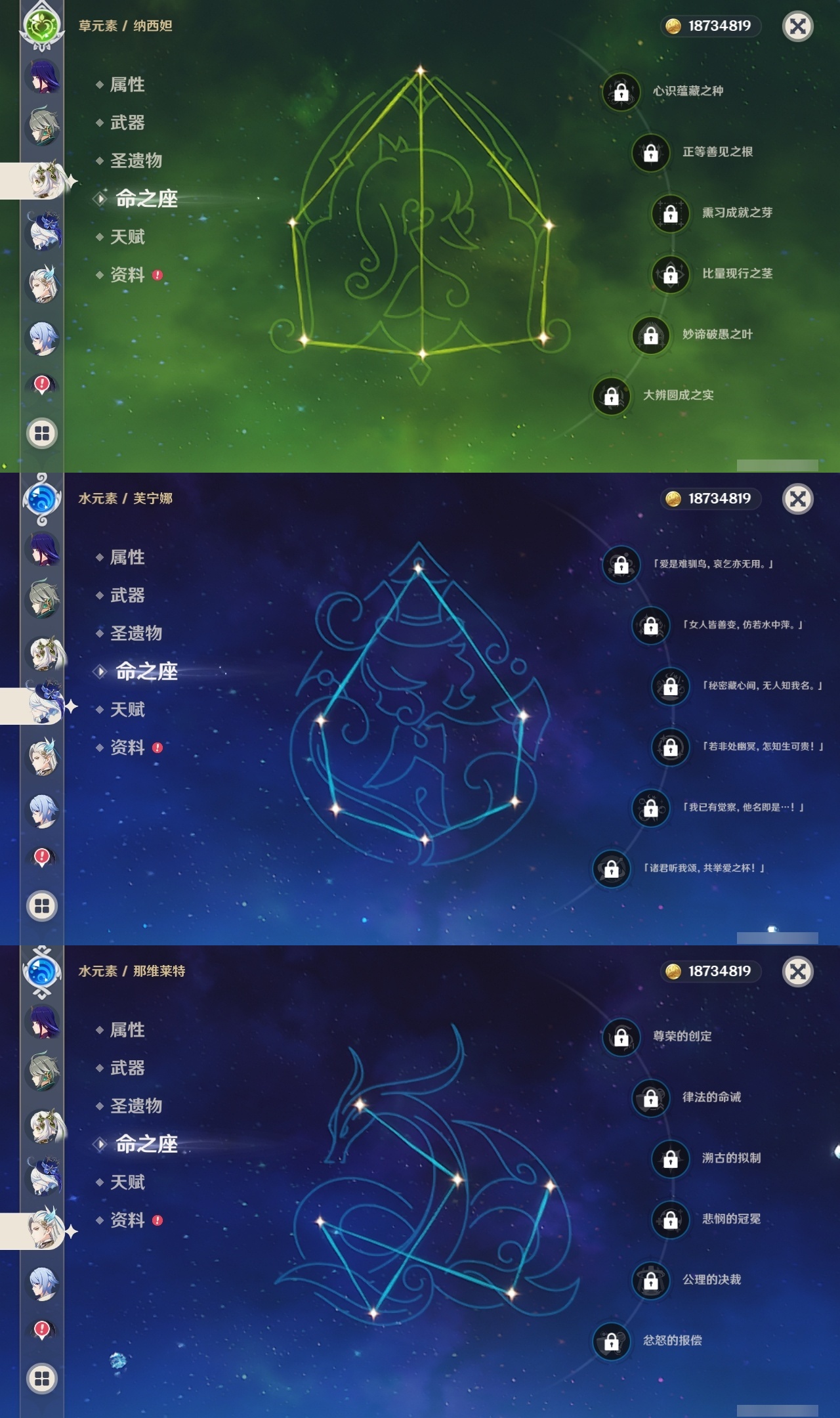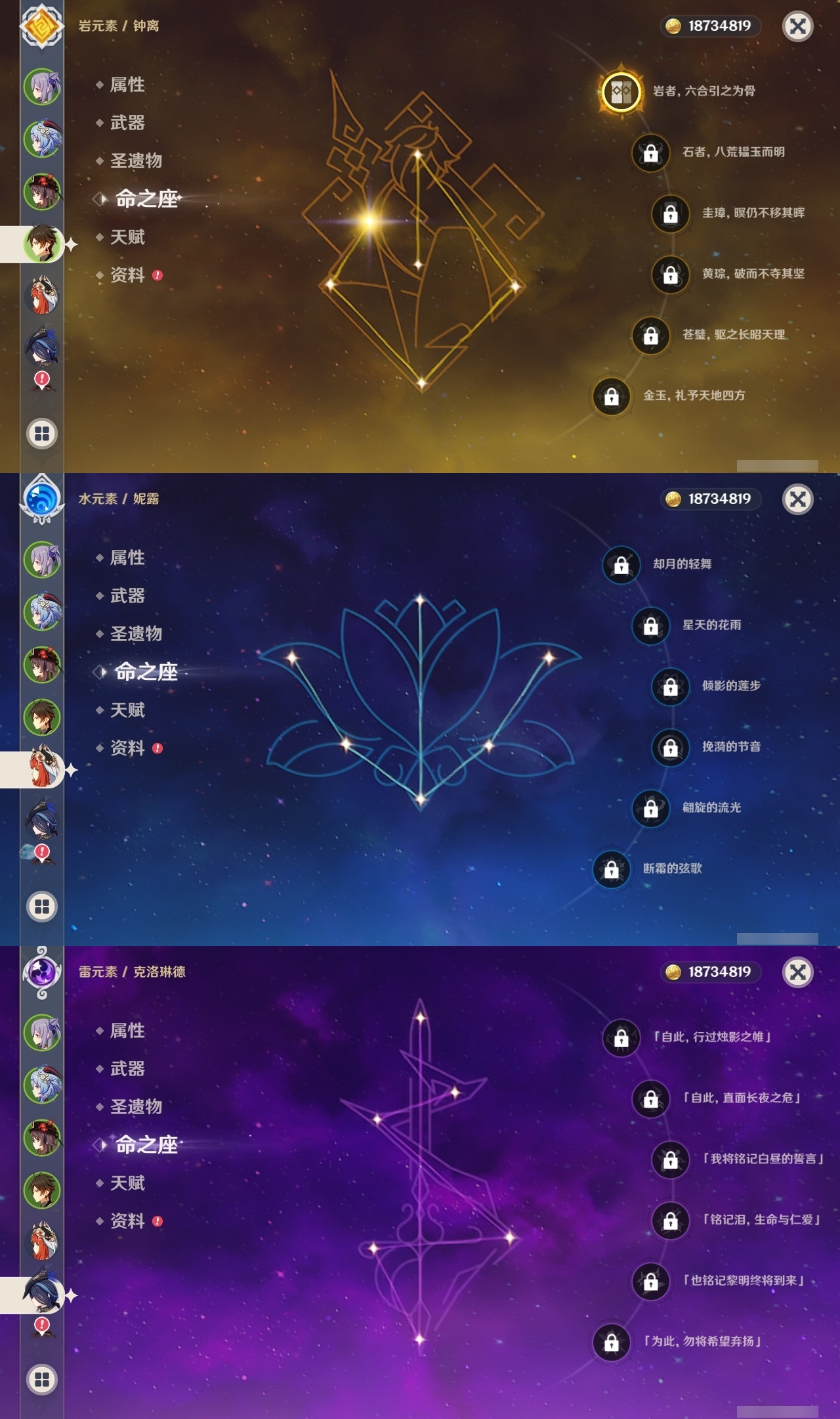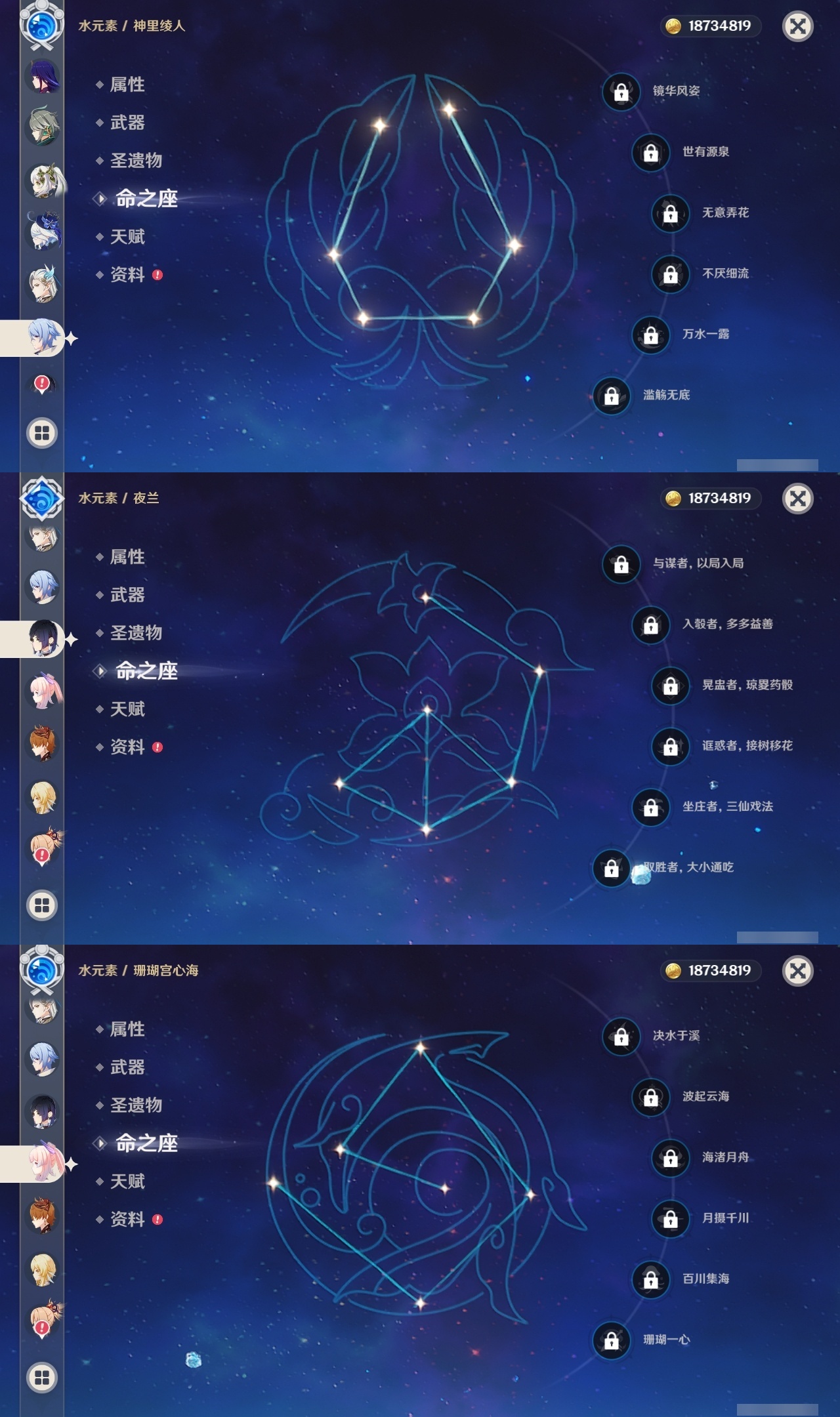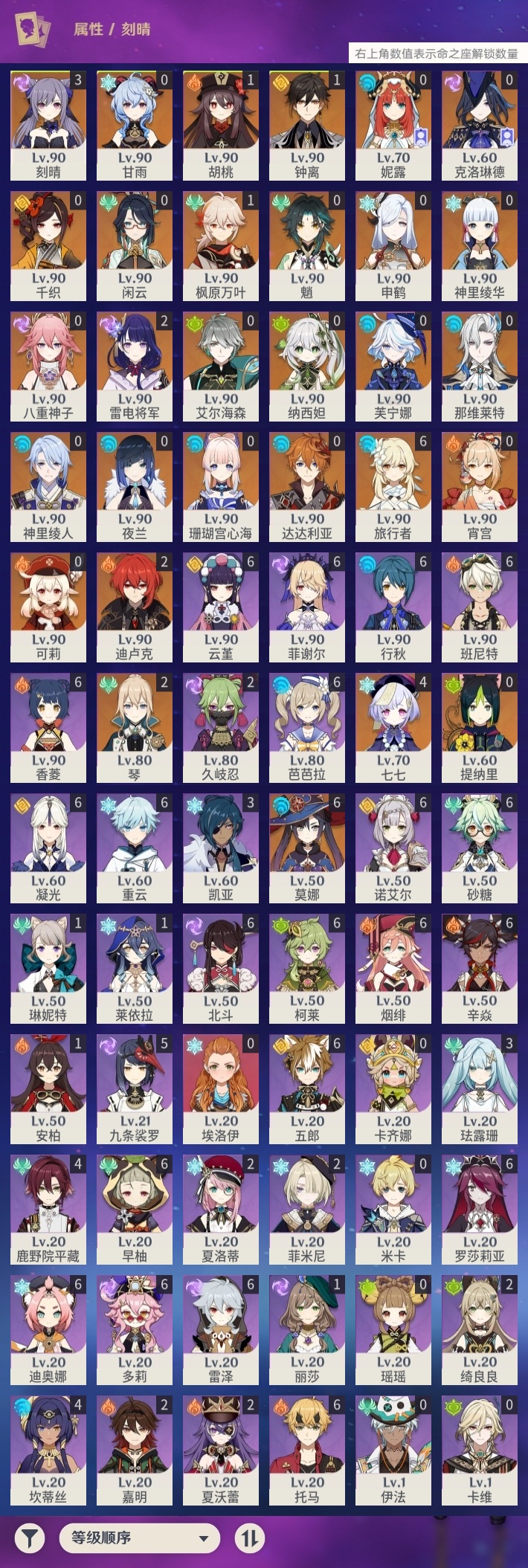 【原神】【lyys9166】冒险等级:60,五星数量:48,五星角色:莫娜 6命七七 4命刻晴 3命迪卢克 2命雷电将军 2命琴 2命枫原万叶 1命胡桃 1命钟离 1命珊瑚宫心海神里绫华宵宫达达利亚申鹤八重神子神里绫人那维莱特夜兰芙宁娜提纳里闲云千织妮露纳西妲艾尔海森甘雨魈克洛琳德可莉__五星武器:天空之脊 2精贯虹之槊 2精碧落之珑万世流涌大典静水流涌之辉阿莫斯之弓和璞鸢狼的末路四风原典天空之傲天空之卷天空之翼雾切之回光息灾神乐之真意波乱月白经津若水白雨心弦__四星角色:班尼特 6命行秋 6命香菱 6命凝光 6命迪奥娜 6命砂糖 6命多莉 6命柯莱 6命芭芭拉 6命云堇 6命早柚 6命托马 6命五郎 6命烟绯 6命重云 6命辛焱 6命诺艾尔 6命罗莎莉亚 6命雷泽 6命菲谢尔 6命北斗 6命九条裟罗 5命鹿野院平藏 4命坎蒂丝 4命珐露珊 3命久岐忍 2命绮良良 2命菲米尼 2命夏洛蒂 2命夏沃蕾 2命嘉明 2命莱依拉 1命琳妮特 1命埃洛伊卡齐娜瑶瑶米卡卡维伊法