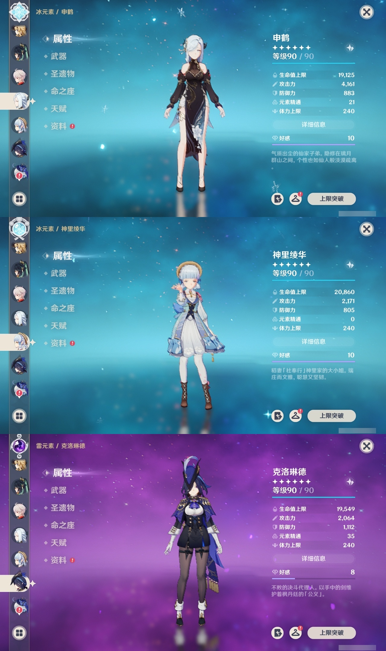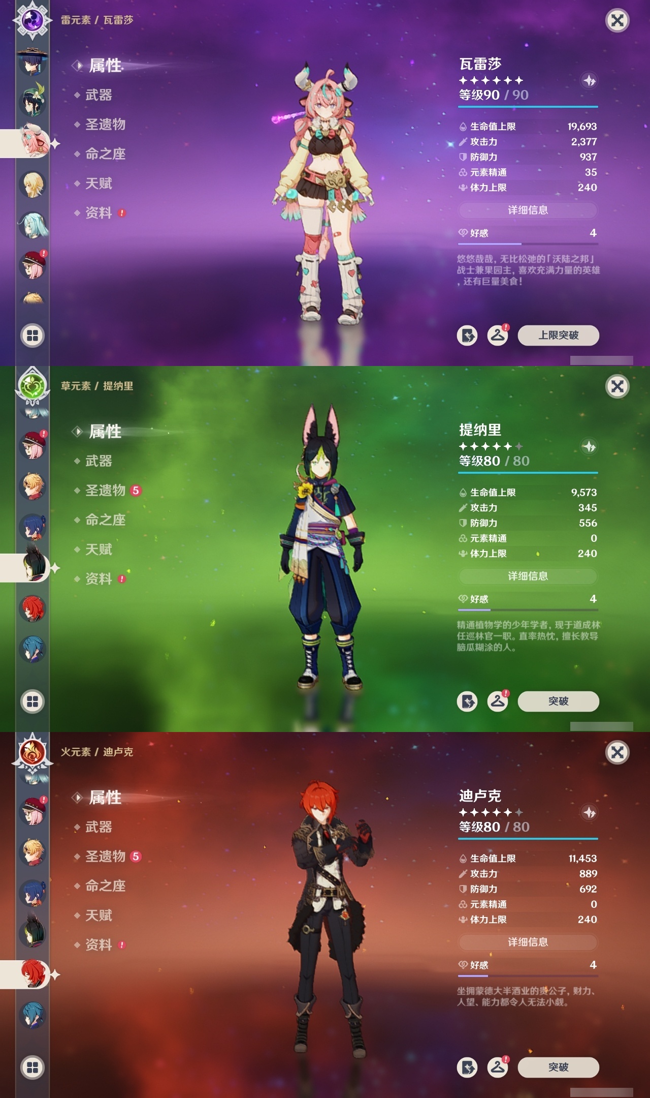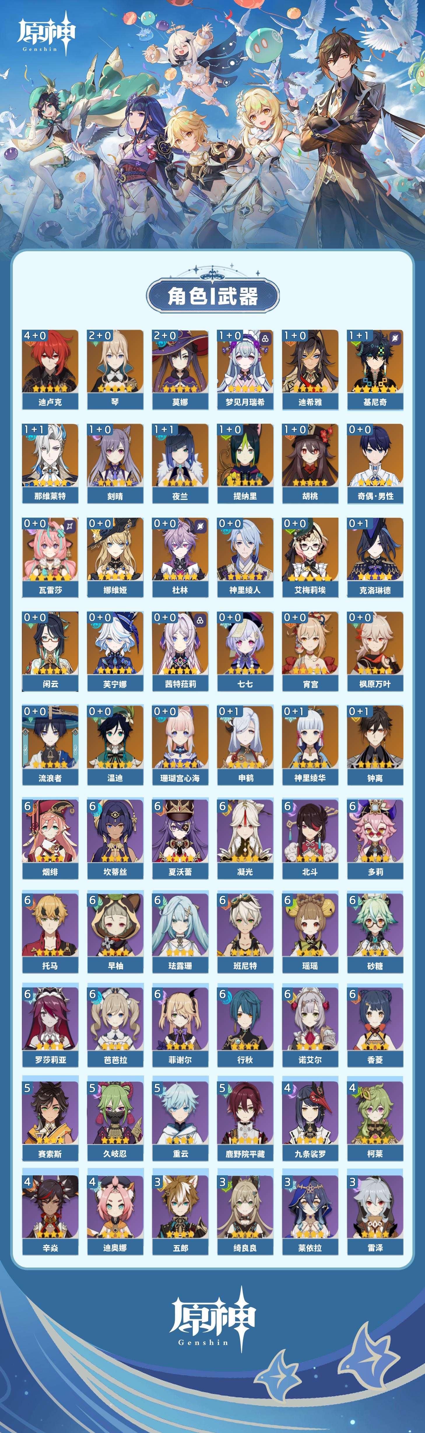 【原神】【lyys9198】冒险等级:60,五星数量:44,五星角色:迪卢克 4命莫娜 2命琴 2命基尼奇 1命迪希雅 1命梦见月瑞希 1命那维莱特 1命胡桃 1命刻晴 1命夜兰 1命提纳里 1命七七艾梅莉埃珊瑚宫心海神里绫华温迪茜特菈莉宵宫钟离申鹤瓦雷莎神里绫人芙宁娜娜维娅闲云流浪者杜林枫原万叶克洛琳德__五星武器:山王长牙万世流涌大典黎明破晓之史四风原典天空之傲天空之脊天空之卷天空之刃雾切之回光息灾贯虹之槊若水赦罪__四星角色:班尼特 6命行秋 6命香菱 6命珐露珊 6命凝光 6命砂糖 6命瑶瑶 6命坎蒂丝 6命多莉 6命芭芭拉 6命早柚 6命托马 6命烟绯 6命诺艾尔 6命罗莎莉亚 6命菲谢尔 6命北斗 6命夏沃蕾 6命久岐忍 5命鹿野院平藏 5命重云 5命赛索斯 5命九条裟罗 4命迪奥娜 4命柯莱 4命辛焱 4命绮良良 3命莱依拉 3命五郎 3命雷泽 3命米卡 2命卡维 2命夏洛蒂 2命伊安珊 2命卡齐娜 1命云堇 1命琳妮特 1命嘉明 1命爱诺 1命奇偶·女性奇偶·男性欧洛伦蓝砚菲米尼