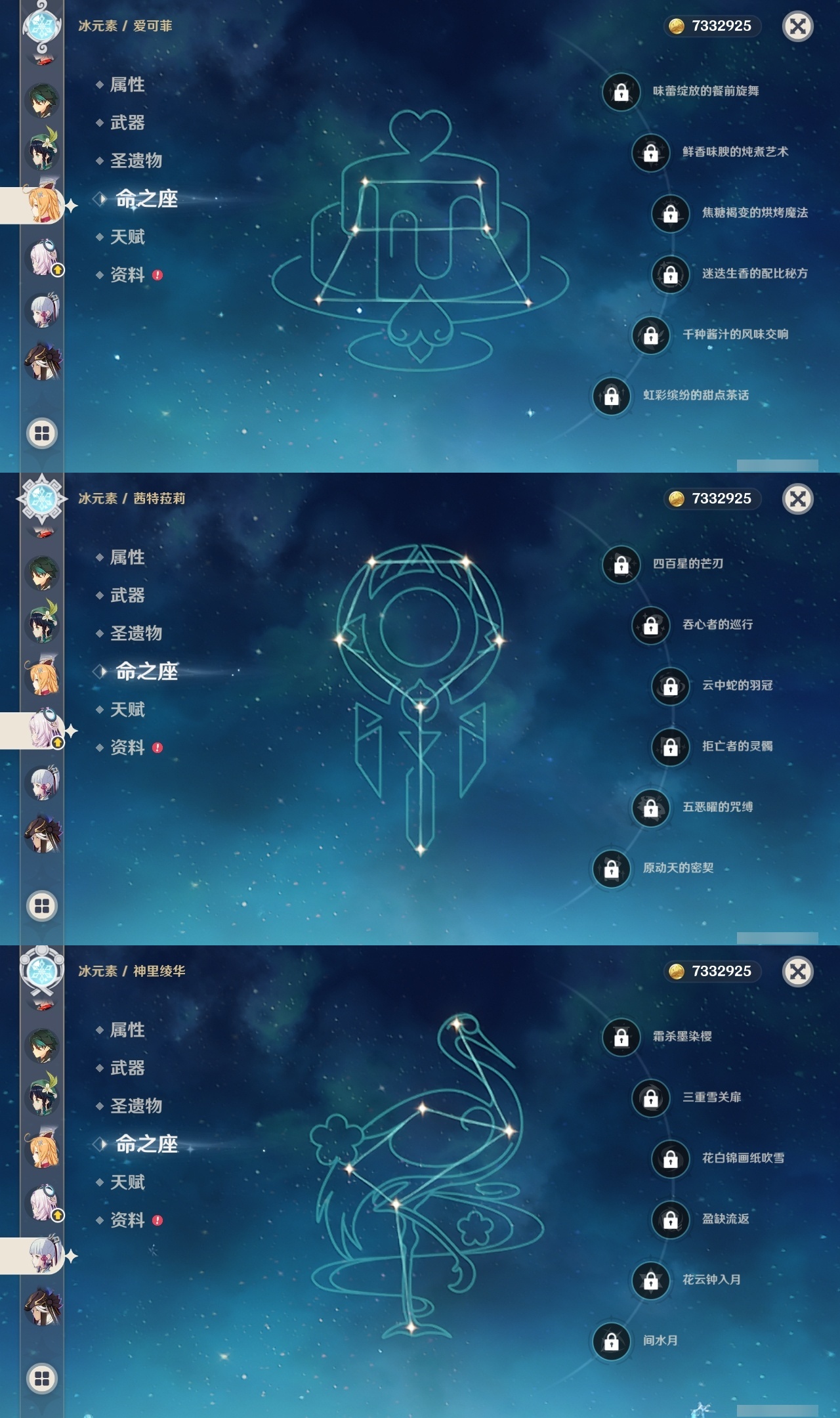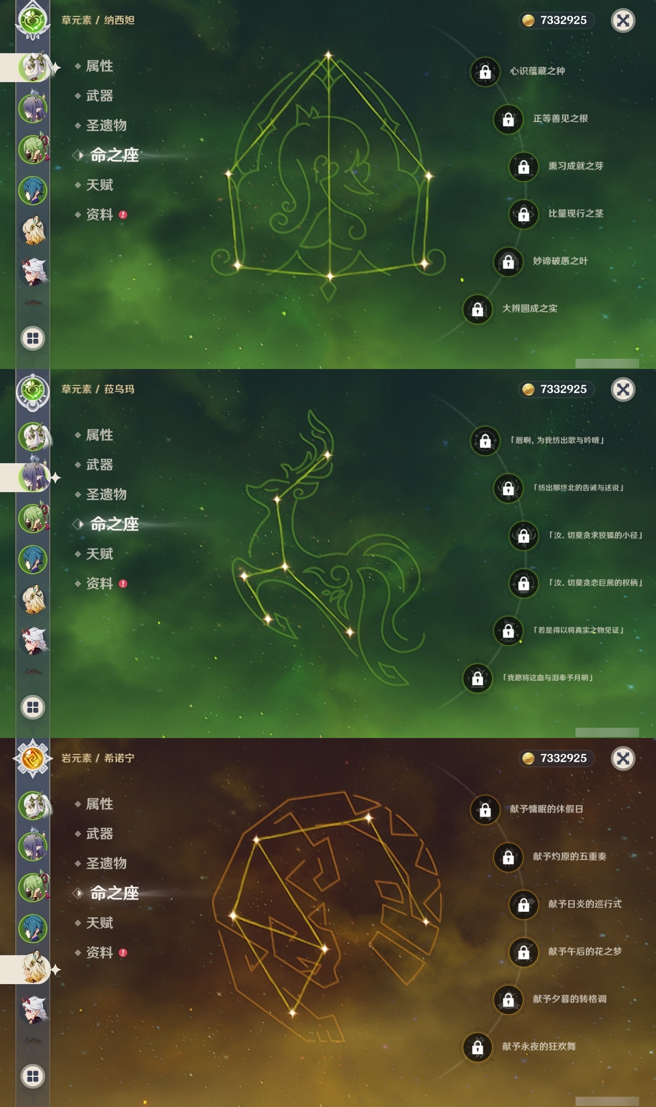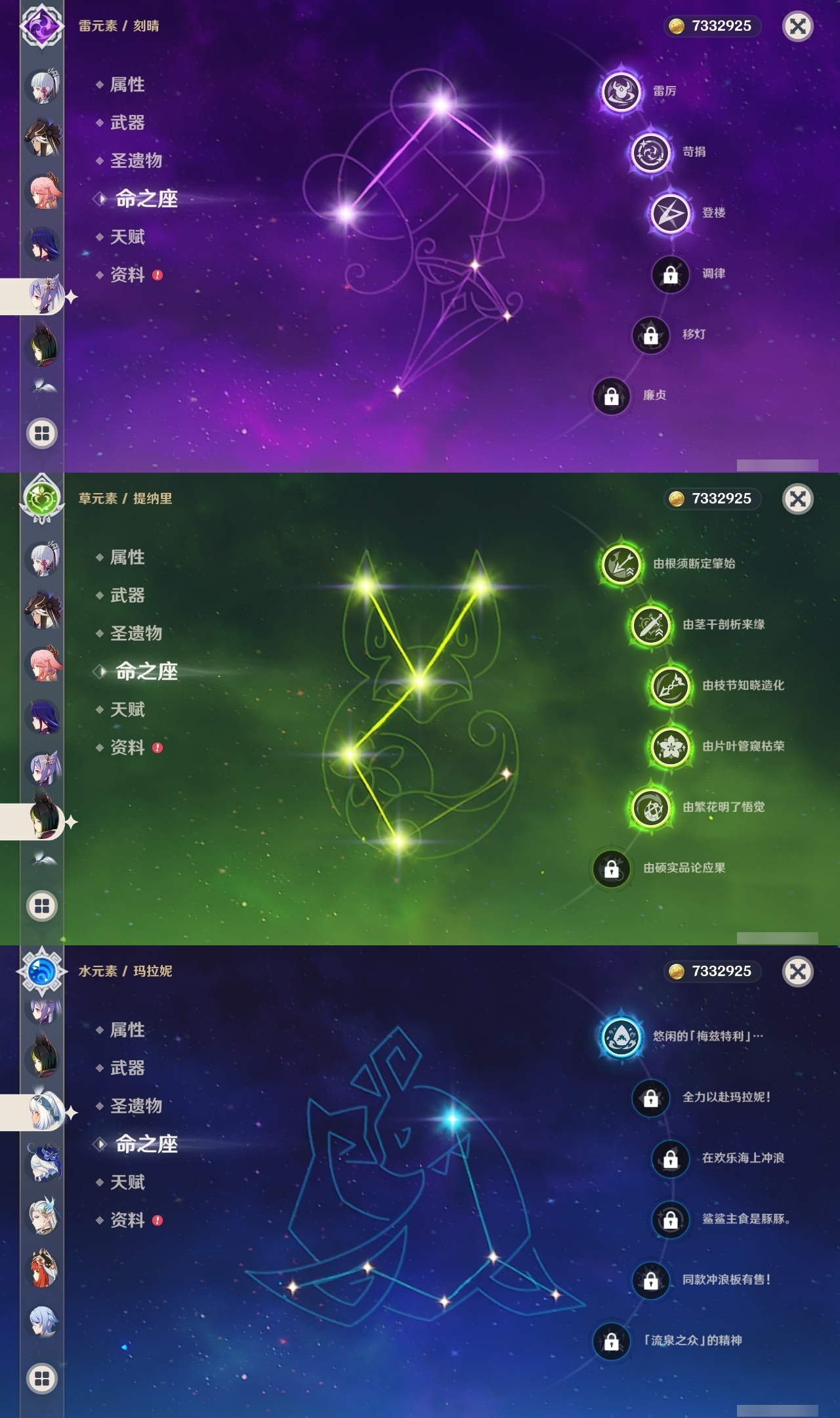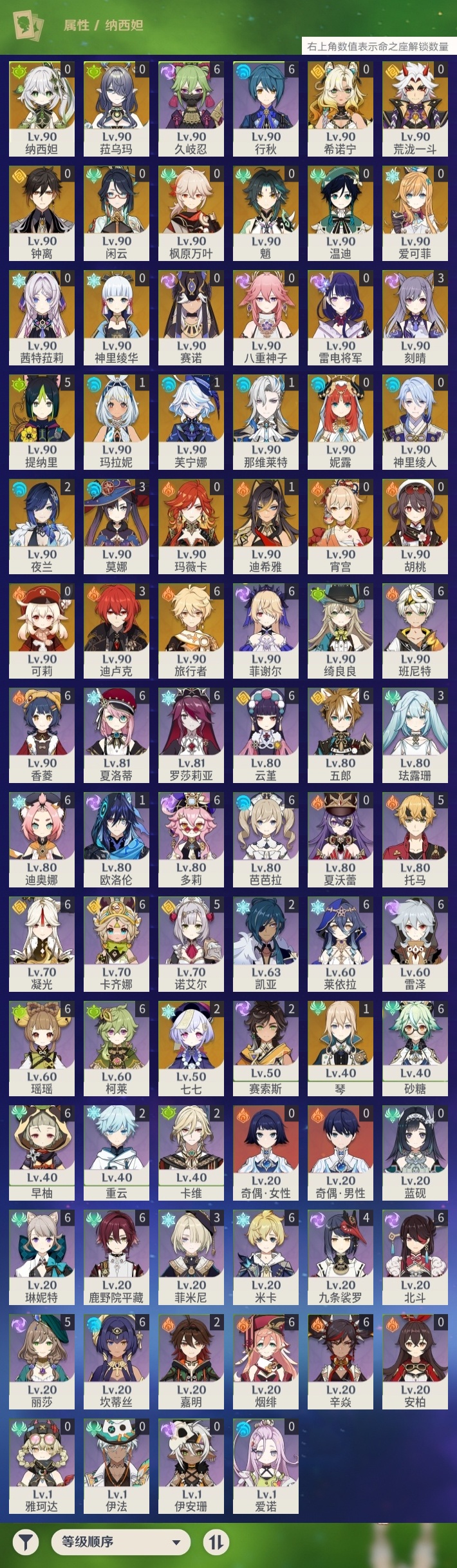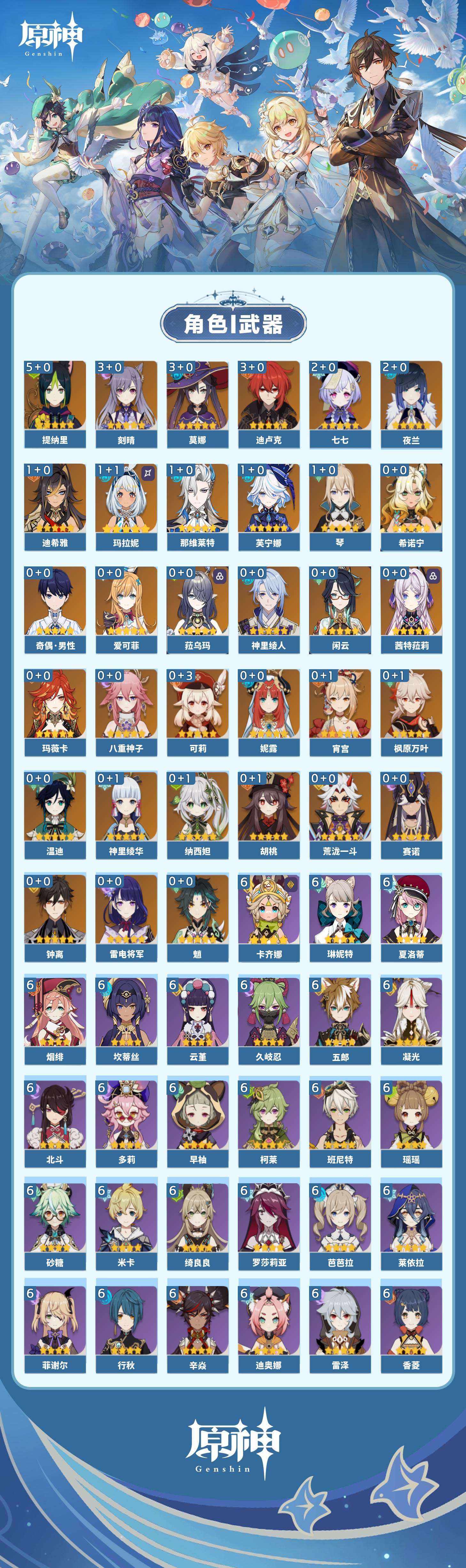 【原神】【lyys9201】冒险等级:60,五星数量:49,五星角色:提纳里 5命迪卢克 3命刻晴 3命莫娜 3命七七 2命夜兰 2命玛拉妮 1命迪希雅 1命那维莱特 1命芙宁娜 1命琴 1命希诺宁神里绫华温迪玛薇卡茜特菈莉宵宫钟离荒泷一斗八重神子神里绫人闲云赛诺爱可菲妮露纳西妲菈乌玛枫原万叶魈胡桃可莉雷电将军__五星武器:四风原典 3精冲浪时光溢彩心念阿莫斯之弓苍古自由之誓飞雷之弦振风鹰剑护摩之杖天空之傲天空之脊天空之刃天空之翼雾切之回光息灾千夜浮梦__四星角色:卡齐娜 6命班尼特 6命行秋 6命香菱 6命久岐忍 6命鹿野院平藏 6命凝光 6命迪奥娜 6命砂糖 6命绮良良 6命瑶瑶 6命莱依拉 6命米卡 6命坎蒂丝 6命多莉 6命柯莱 6命芭芭拉 6命云堇 6命早柚 6命五郎 6命烟绯 6命辛焱 6命罗莎莉亚 6命雷泽 6命菲谢尔 6命北斗 6命琳妮特 6命夏洛蒂 6命托马 5命诺艾尔 5命九条裟罗 4命珐露珊 3命菲米尼 3命卡维 2命重云 2命嘉明 2命赛索斯 2命欧洛伦 1命奇偶·女性奇偶·男性蓝砚夏沃蕾伊法伊安珊爱诺
