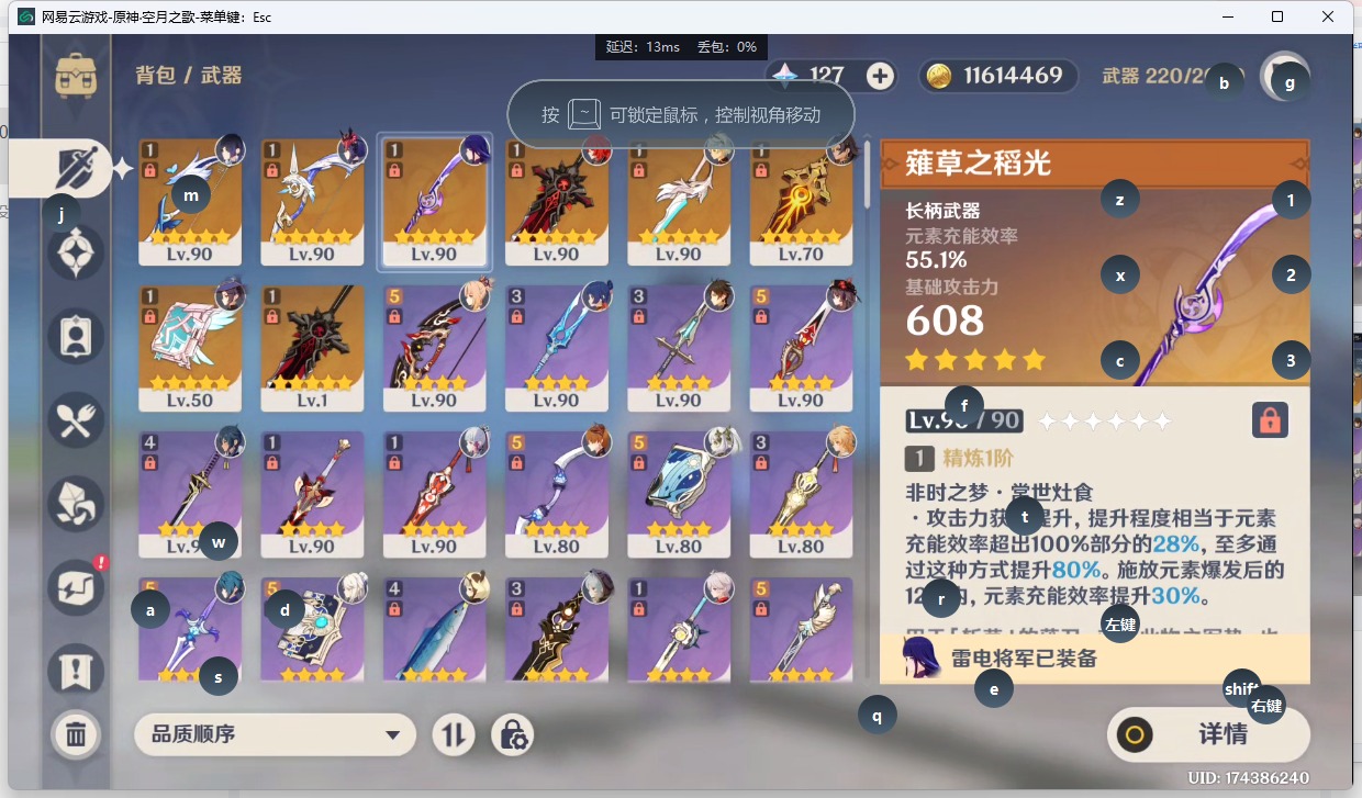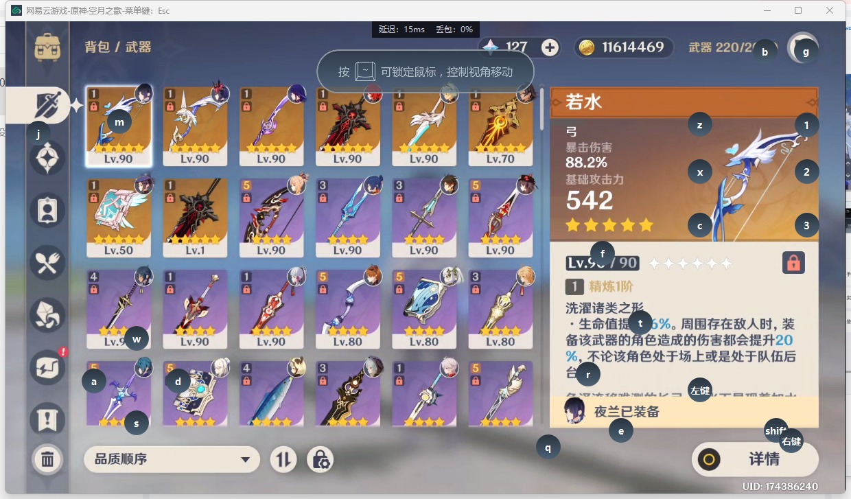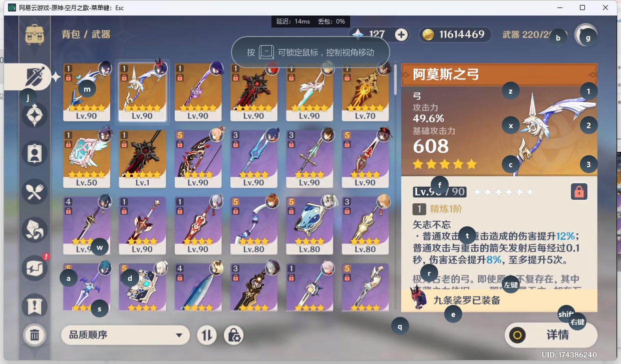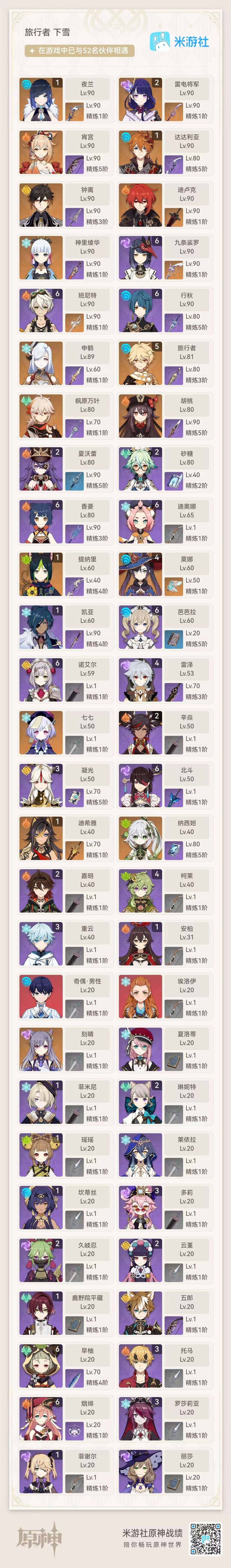 [14608104]【总黄数】:33 【冒险等级】:59 【4命金色角色】:四命莫娜 【2命金色角色】:二命雷电将军 【1命金色角色】:一命夜兰一命达达利亚一命迪希雅一命提纳里 【0命金色角色】:纳西妲申鹤宵宫神里绫华枫原万叶胡桃钟离刻晴迪卢克七七 【1精武器】:若水薙草之稻光阿莫斯之弓苇海信标狼的末路风鹰剑天空之卷
