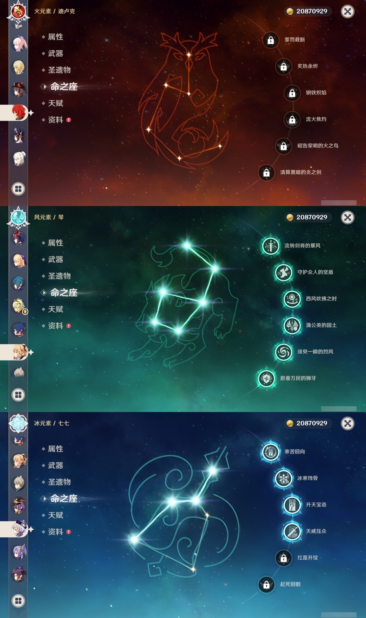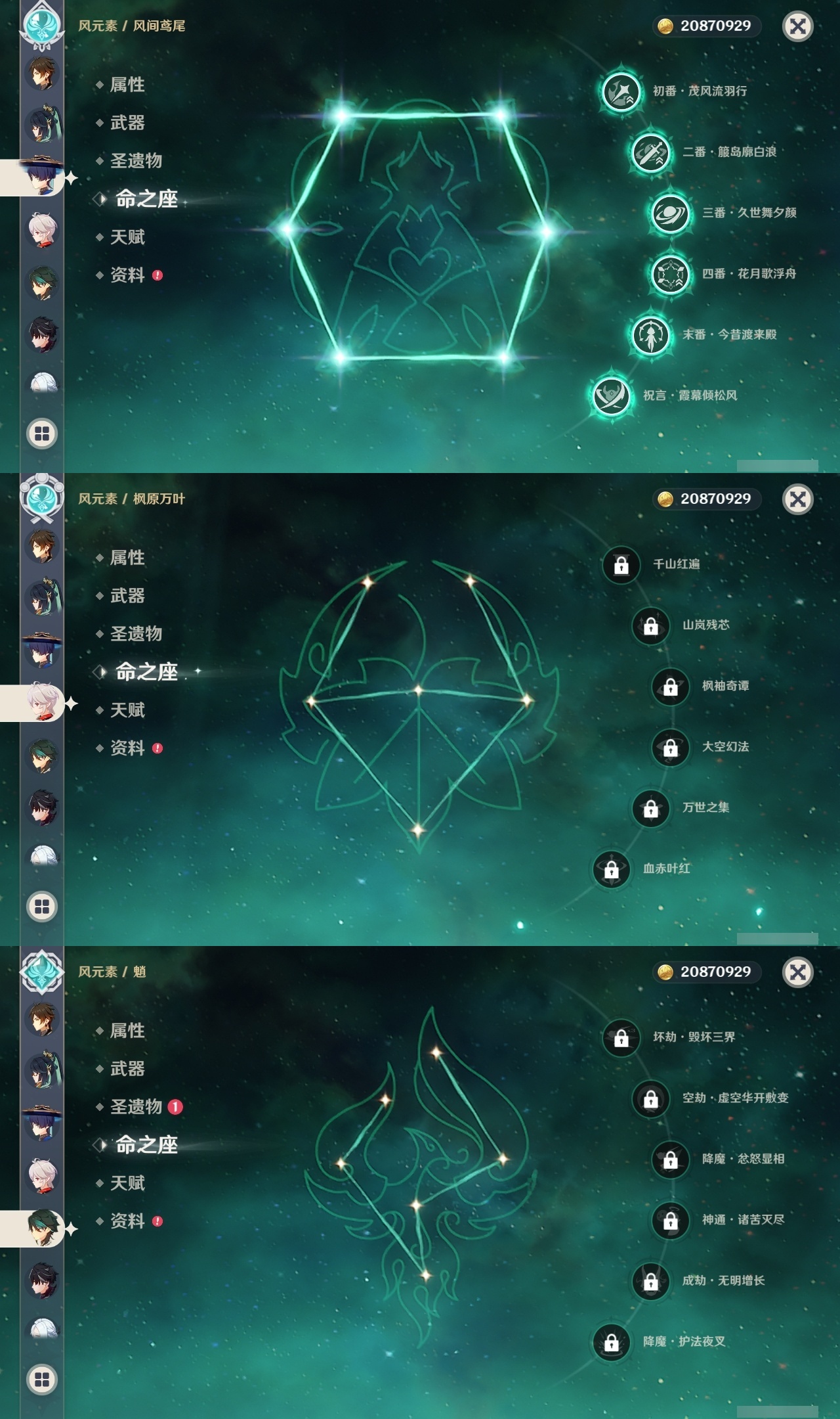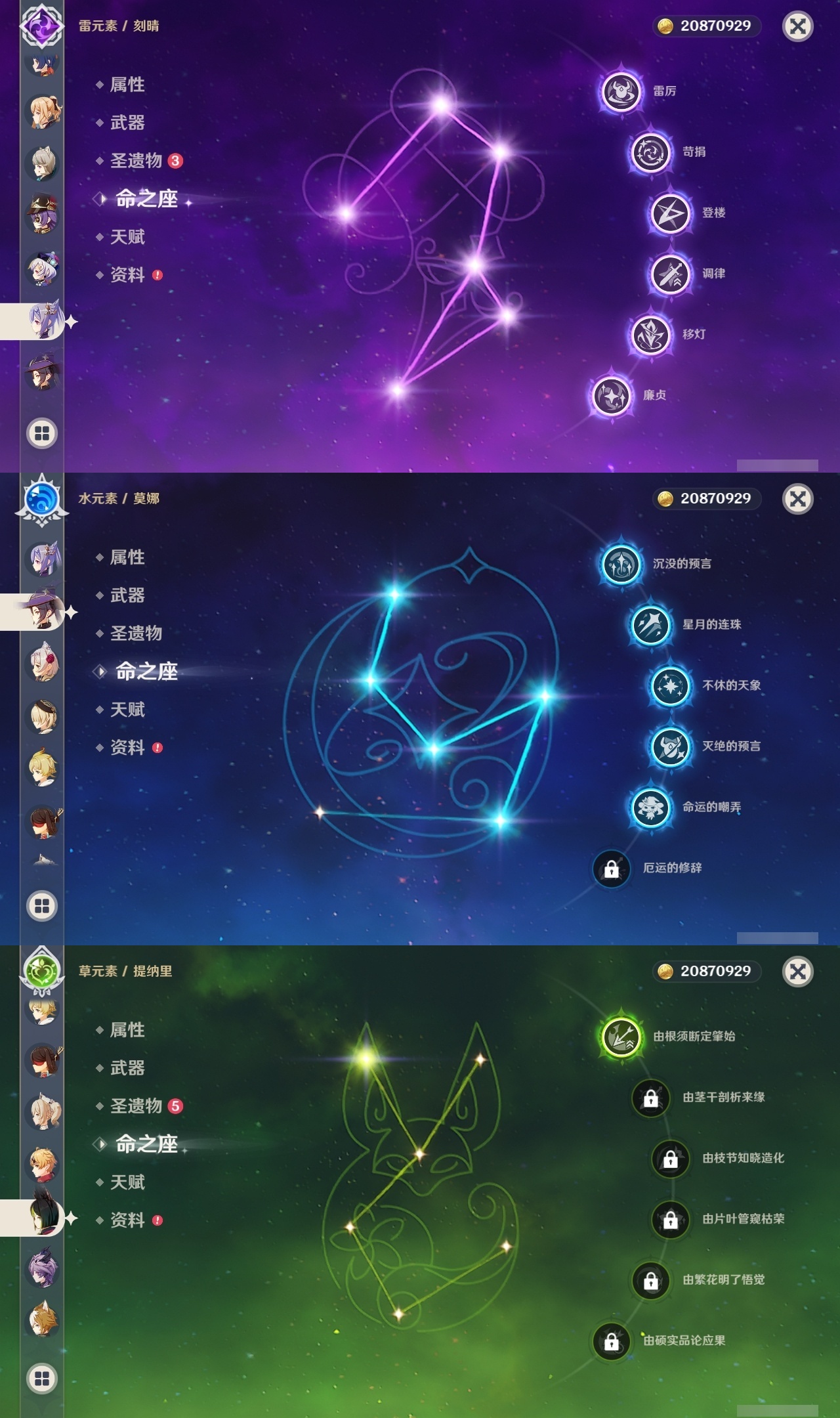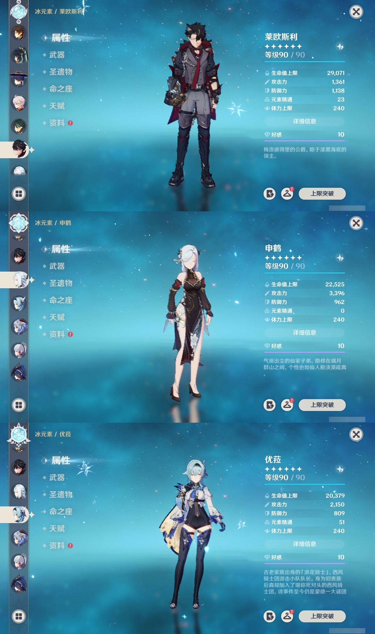 【原神】满命,冒险等级:60,五星数量:45,五星角色:阿蕾奇诺 6命刻晴 6命琴 6命优菈 6命流浪者 6命莫娜 5命七七 4命雷电将军 3命迪希雅 1命提纳里 1命克洛琳德 1命珊瑚宫心海神里绫华恰斯卡茜特菈莉钟离申鹤八重神子那维莱特莱欧斯利夜兰芙宁娜闲云赛诺妮露纳西妲杜林迪卢克枫原万叶甘雨魈胡桃__五星武器:赤月之形 3精风鹰剑 2精碧落之珑星鹫赤羽静水流涌之辉图莱杜拉的回忆阿莫斯之弓护摩之杖四风原典松籁响起之时天空之傲天空之刃薙草之稻光__四星角色:班尼特 6命行秋 6命九条裟罗 6命香菱 6命珐露珊 6命凝光 6命迪奥娜 6命砂糖 6命米卡 6命坎蒂丝 6命柯莱 6命芭芭拉 6命云堇 6命早柚 6命托马 6命五郎 6命烟绯 6命重云 6命辛焱 6命诺艾尔 6命罗莎莉亚 6命雷泽 6命北斗 6命菲米尼 6命琳妮特 6命夏洛蒂 6命瑶瑶 5命菲谢尔 5命久岐忍 4命多莉 4命鹿野院平藏 3命欧洛伦 3命卡齐娜 2命莱依拉 2命绮良良 1命夏沃蕾嘉明塔利雅赛索斯
