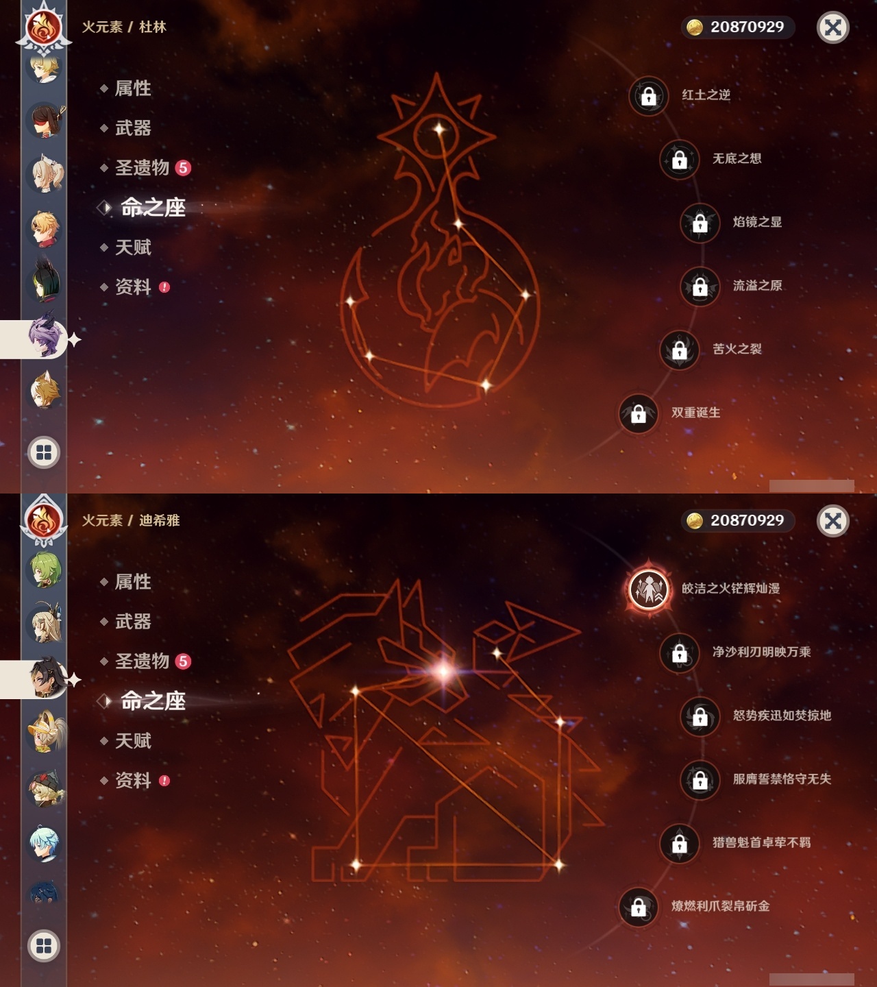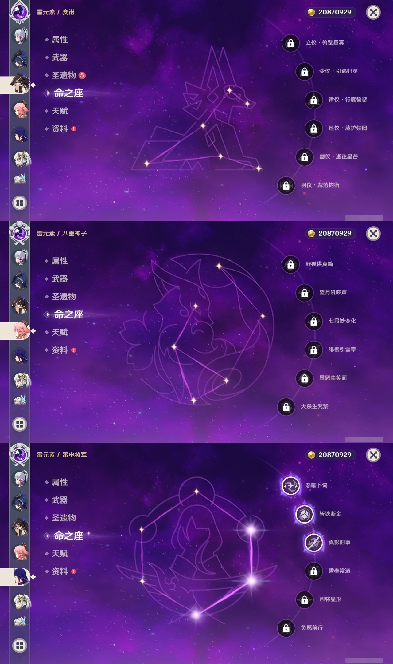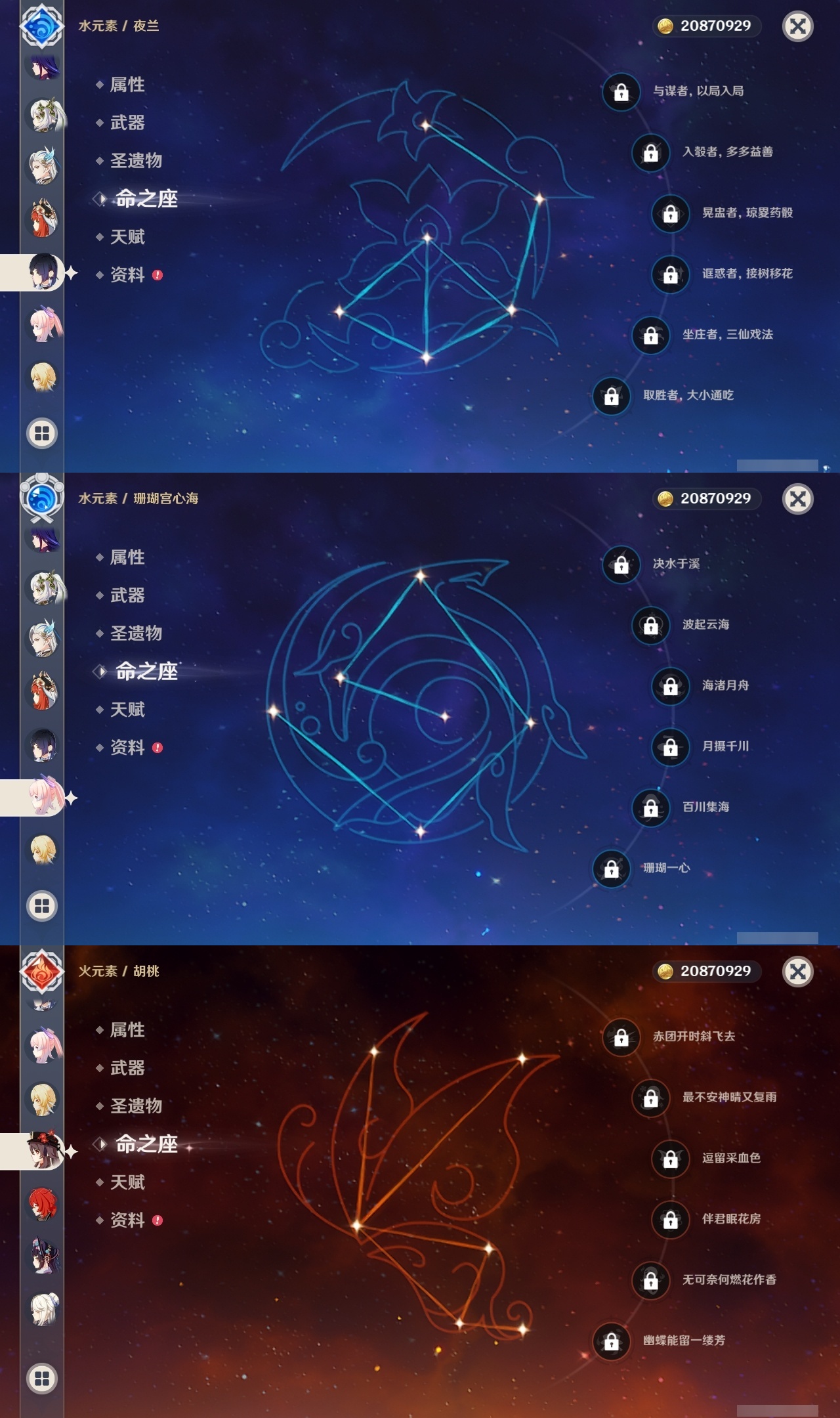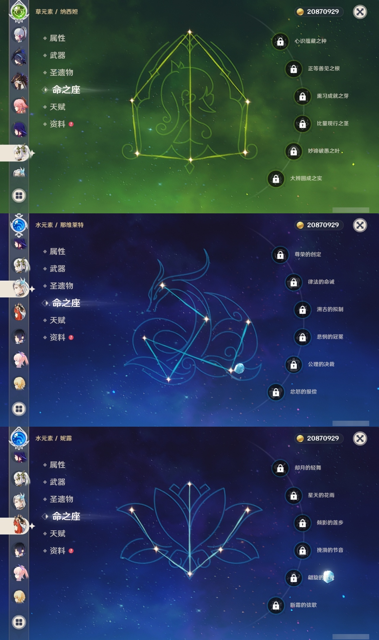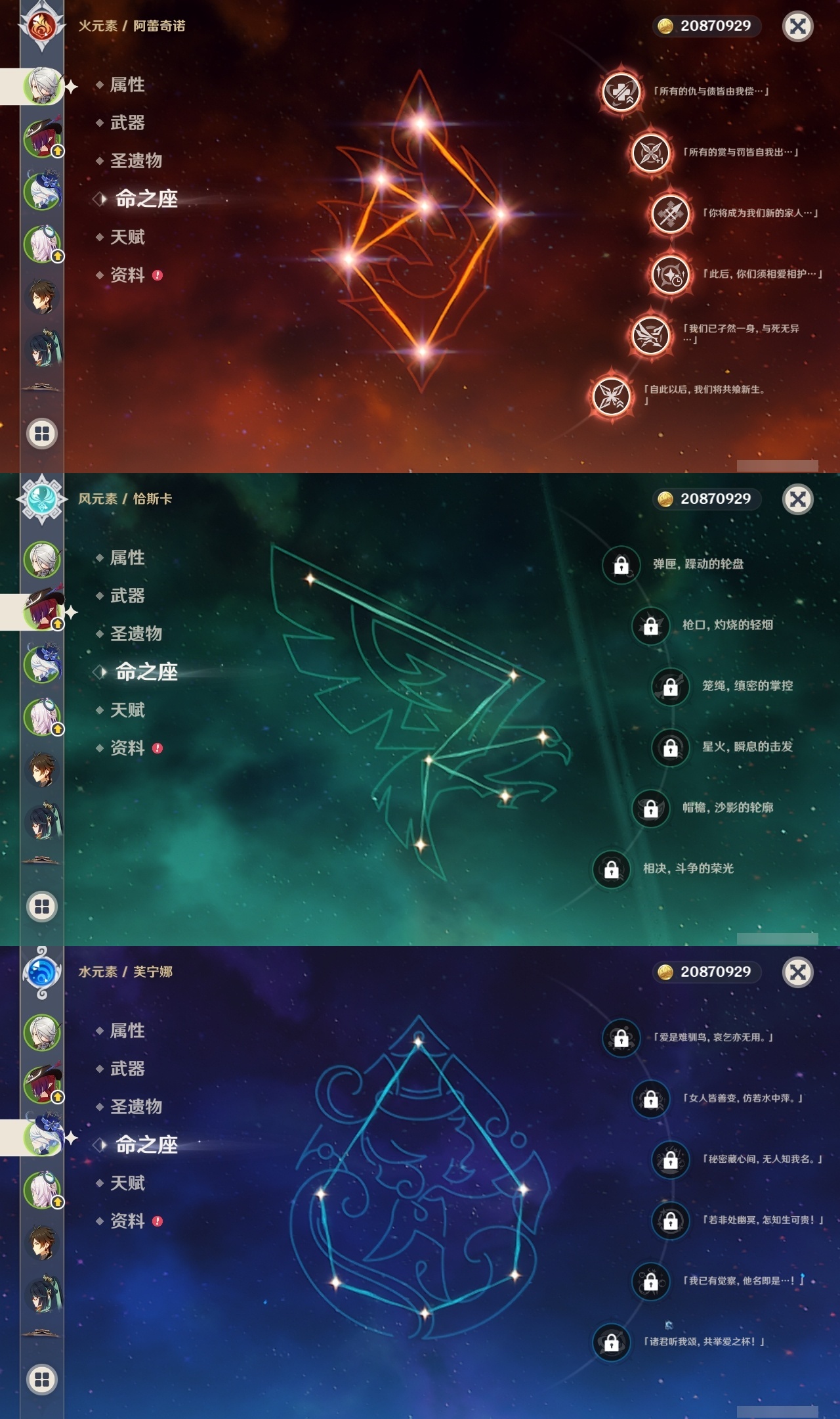 【原神】满命,冒险等级:60,五星数量:45,五星角色:阿蕾奇诺 6命刻晴 6命琴 6命优菈 6命流浪者 6命莫娜 5命七七 4命雷电将军 3命迪希雅 1命提纳里 1命克洛琳德 1命珊瑚宫心海神里绫华恰斯卡茜特菈莉钟离申鹤八重神子那维莱特莱欧斯利夜兰芙宁娜闲云赛诺妮露纳西妲杜林迪卢克枫原万叶甘雨魈胡桃__五星武器:赤月之形 3精风鹰剑 2精碧落之珑星鹫赤羽静水流涌之辉图莱杜拉的回忆阿莫斯之弓护摩之杖四风原典松籁响起之时天空之傲天空之刃薙草之稻光__四星角色:班尼特 6命行秋 6命九条裟罗 6命香菱 6命珐露珊 6命凝光 6命迪奥娜 6命砂糖 6命米卡 6命坎蒂丝 6命柯莱 6命芭芭拉 6命云堇 6命早柚 6命托马 6命五郎 6命烟绯 6命重云 6命辛焱 6命诺艾尔 6命罗莎莉亚 6命雷泽 6命北斗 6命菲米尼 6命琳妮特 6命夏洛蒂 6命瑶瑶 5命菲谢尔 5命久岐忍 4命多莉 4命鹿野院平藏 3命欧洛伦 3命卡齐娜 2命莱依拉 2命绮良良 1命夏沃蕾嘉明塔利雅赛索斯