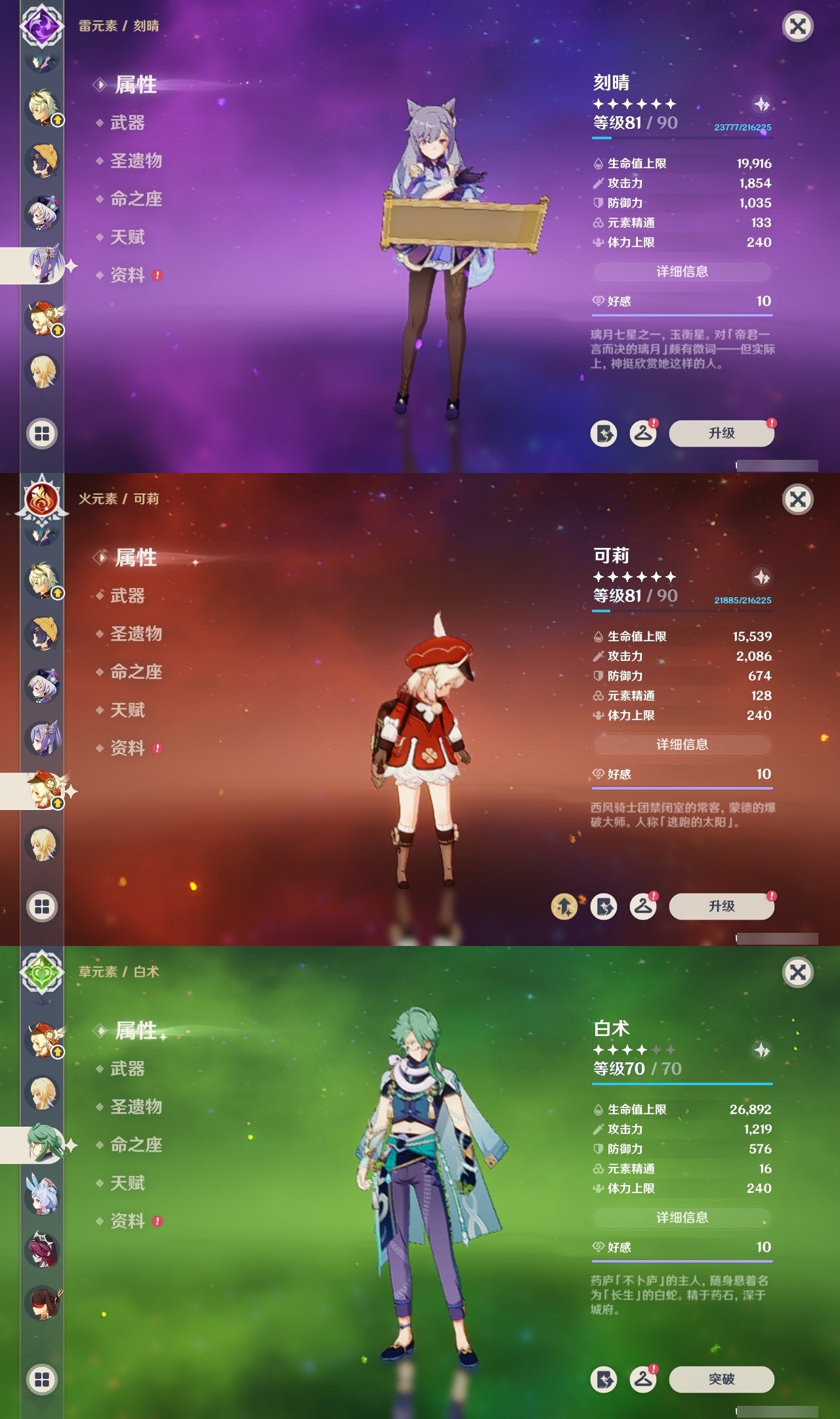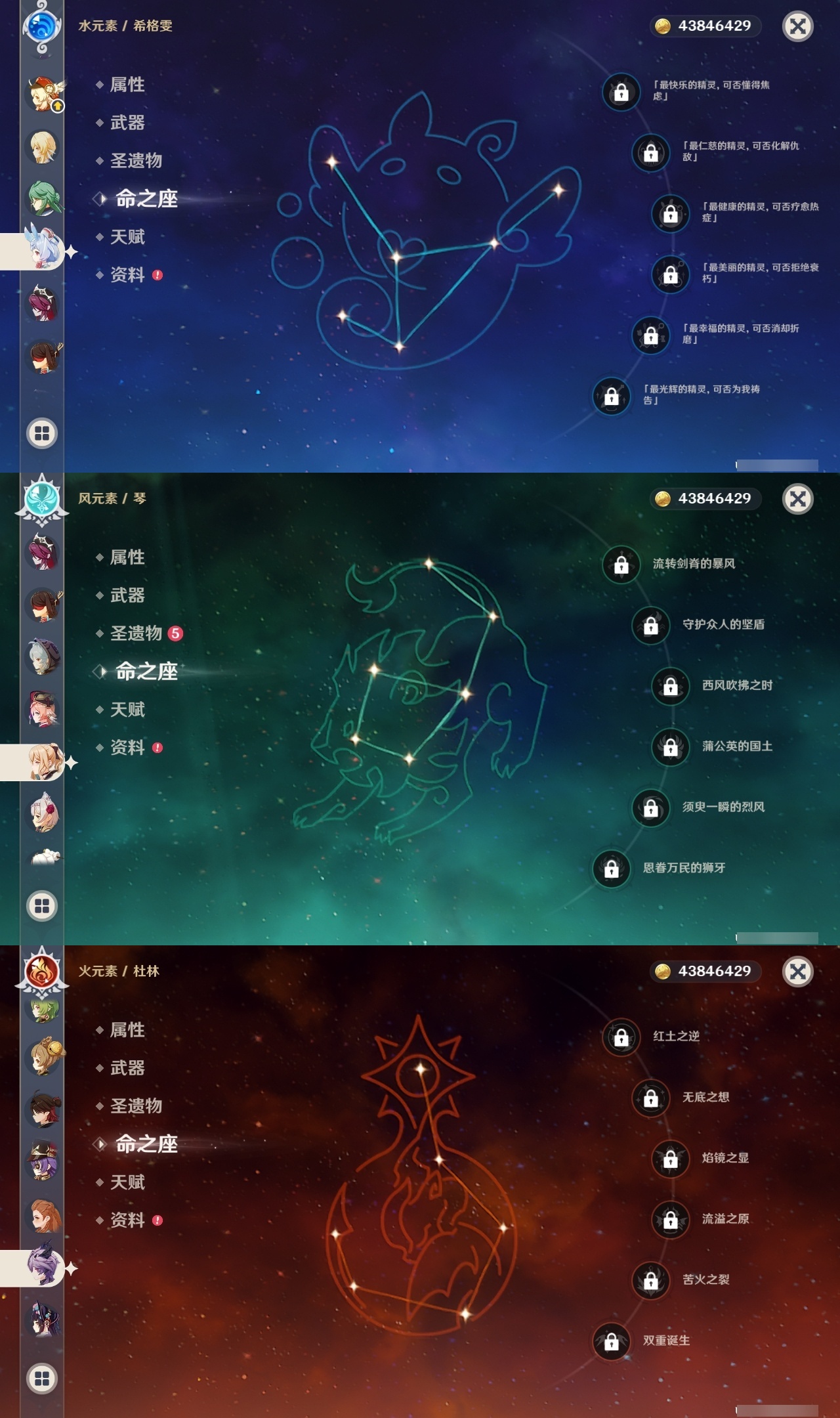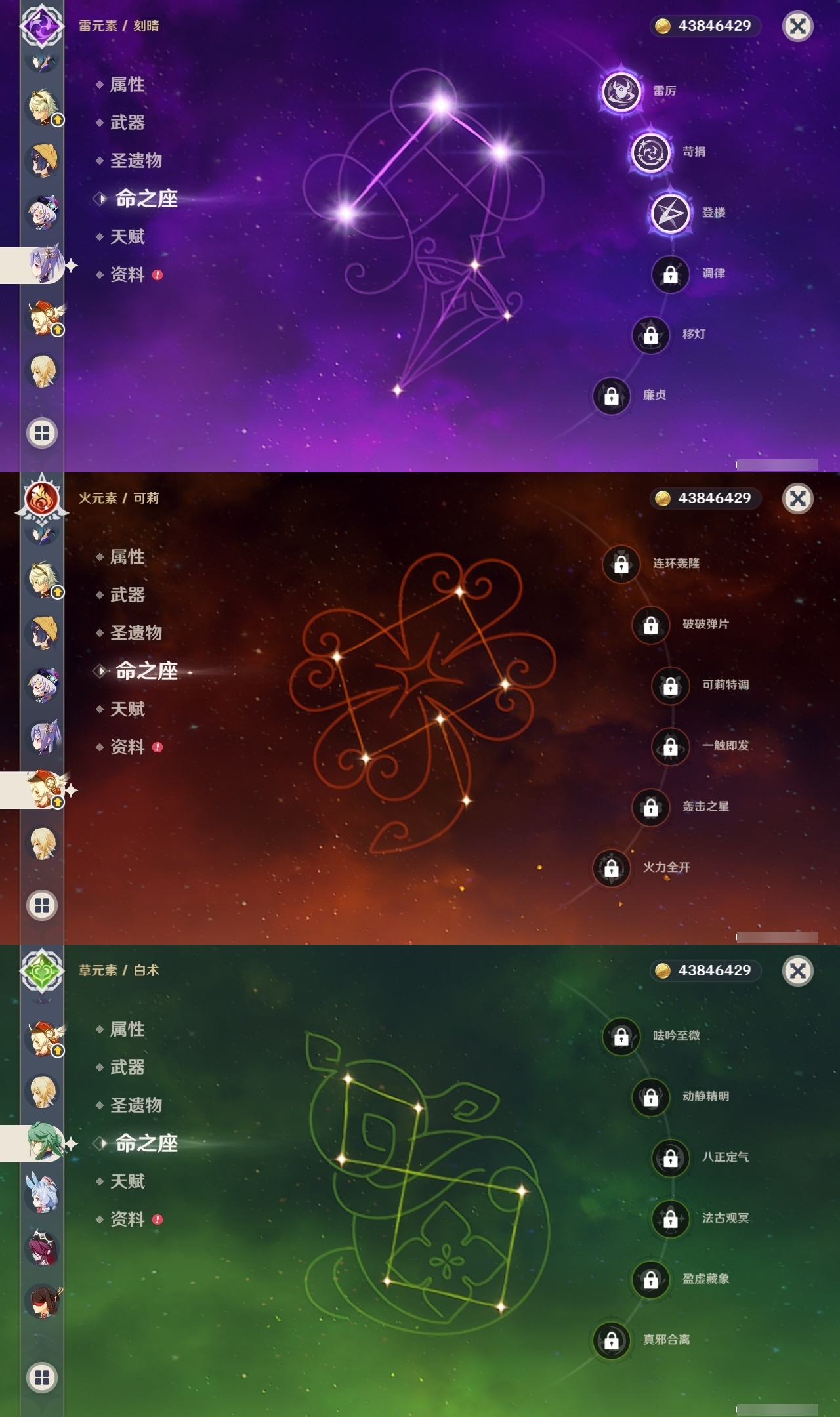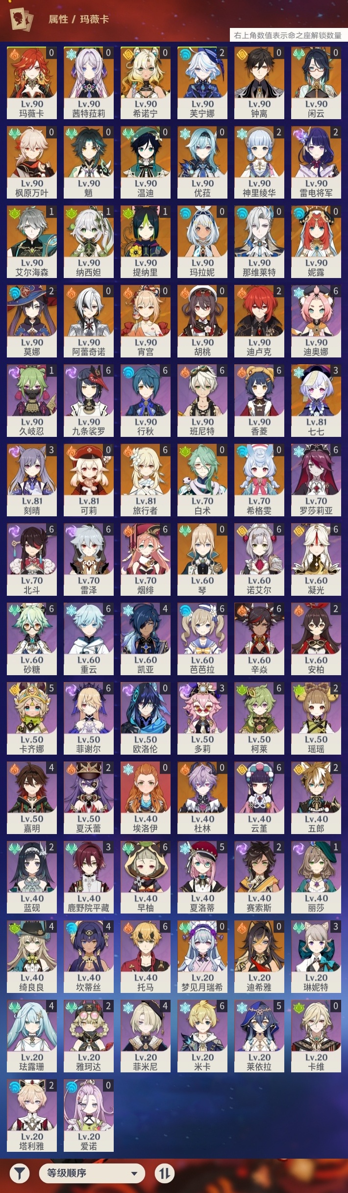【原神】【lyys9243】冒险等级:60,五星数量:49,五星角色:刻晴 3命七七 3命芙宁娜 2命迪卢克 2命雷电将军 2命莫娜 2命神里绫华 2命提纳里 1命纳西妲 1命艾尔海森 1命玛拉妮琴希诺宁白术温迪玛薇卡茜特菈莉宵宫优菈迪希雅钟离梦见月瑞希那维莱特闲云阿蕾奇诺妮露杜林枫原万叶魈胡桃希格雯可莉__五星武器:天空之傲 2精碧落之珑祭星者之望焚曜千阳最初的大魔术静水流涌之辉赤月之形风鹰剑护摩之杖天空之脊天空之卷天空之刃雾切之回光薙草之稻光息灾赦罪__四星角色:班尼特 6命行秋 6命九条裟罗 6命香菱 6命凝光 6命迪奥娜 6命砂糖 6命米卡 6命柯莱 6命芭芭拉 6命云堇 6命早柚 6命托马 6命烟绯 6命重云 6命辛焱 6命诺艾尔 6命罗莎莉亚 6命雷泽 6命菲谢尔 6命北斗 6命卡齐娜 5命莱依拉 5命夏洛蒂 5命珐露珊 4命绮良良 4命坎蒂丝 4命菲米尼 4命嘉明 4命鹿野院平藏 3命多莉 3命琳妮特 3命瑶瑶 2命蓝砚 2命五郎 2命夏沃蕾 2命塔利雅 2命赛索斯 2命久岐忍 1命埃洛伊卡维欧洛伦爱诺