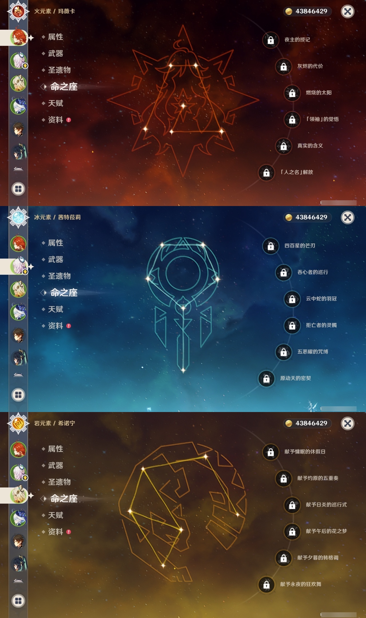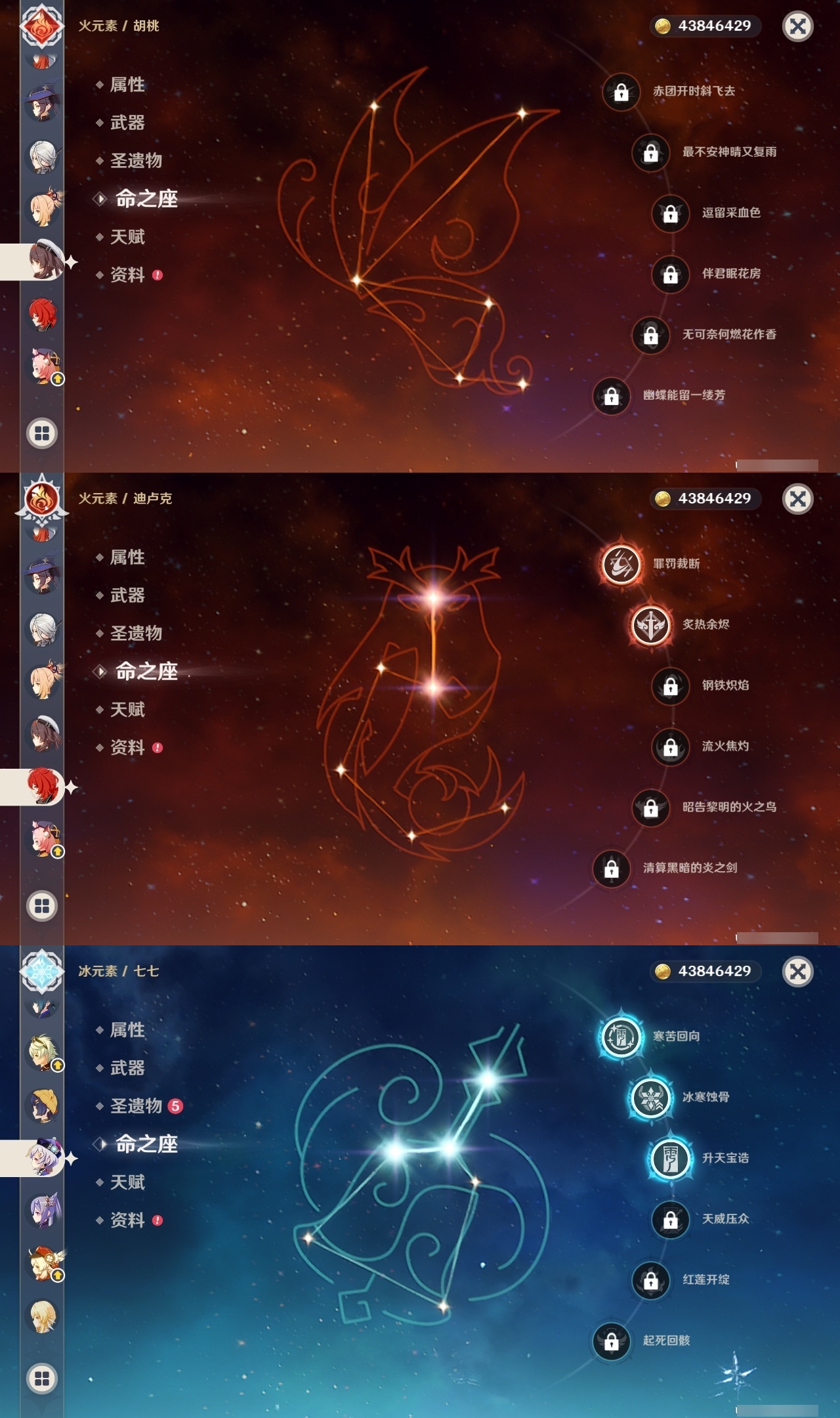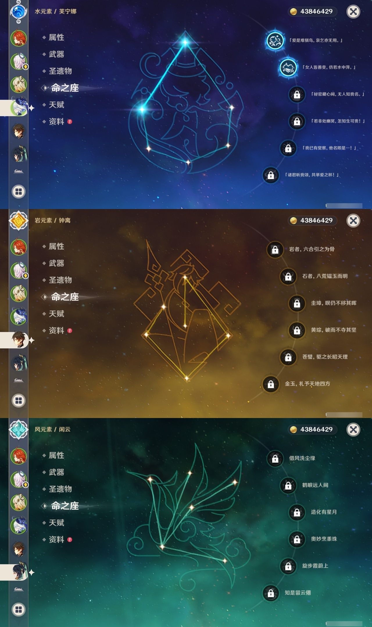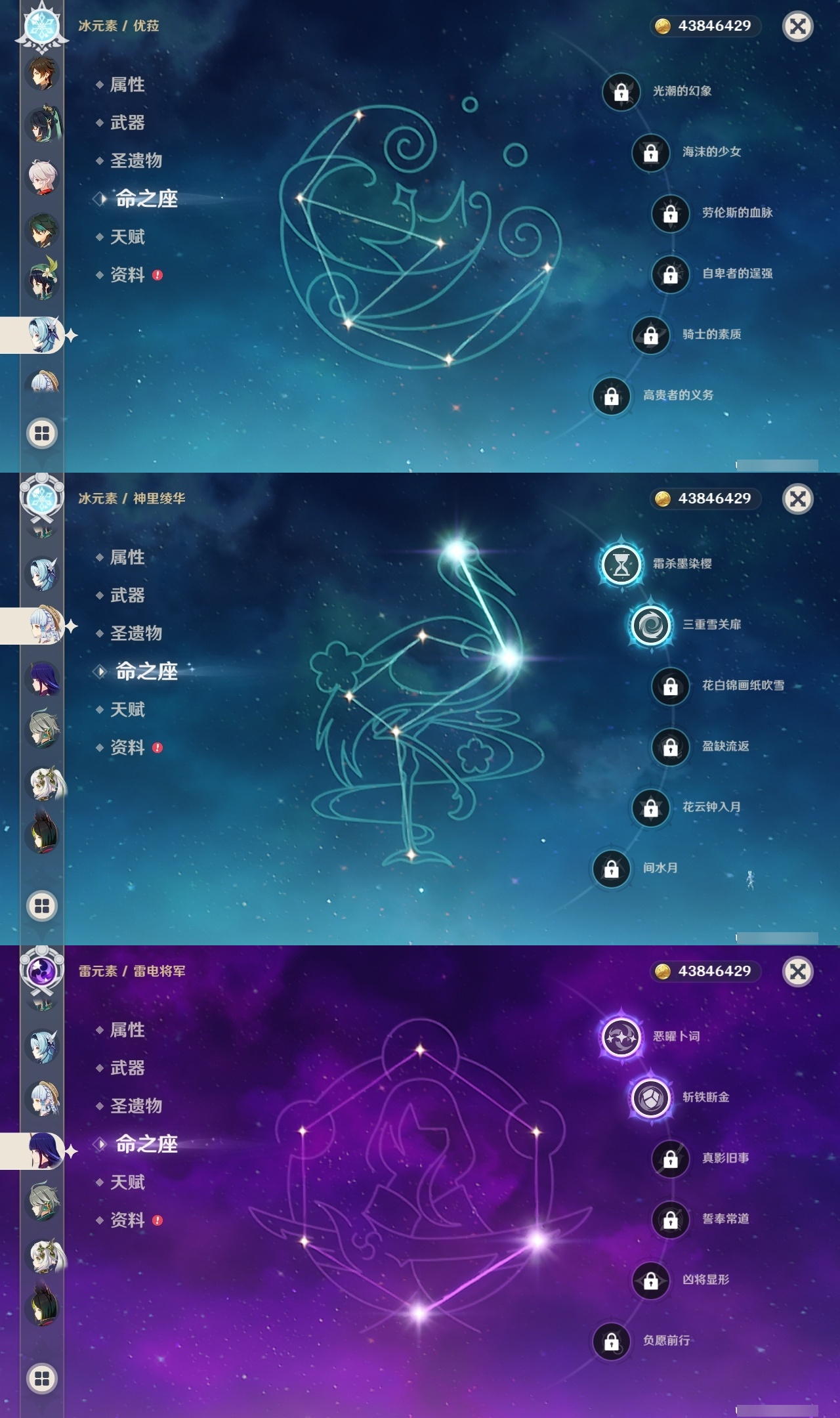 【原神】【lyys9243】冒险等级:60,五星数量:49,五星角色:刻晴 3命七七 3命芙宁娜 2命迪卢克 2命雷电将军 2命莫娜 2命神里绫华 2命提纳里 1命纳西妲 1命艾尔海森 1命玛拉妮琴希诺宁白术温迪玛薇卡茜特菈莉宵宫优菈迪希雅钟离梦见月瑞希那维莱特闲云阿蕾奇诺妮露杜林枫原万叶魈胡桃希格雯可莉__五星武器:天空之傲 2精碧落之珑祭星者之望焚曜千阳最初的大魔术静水流涌之辉赤月之形风鹰剑护摩之杖天空之脊天空之卷天空之刃雾切之回光薙草之稻光息灾赦罪__四星角色:班尼特 6命行秋 6命九条裟罗 6命香菱 6命凝光 6命迪奥娜 6命砂糖 6命米卡 6命柯莱 6命芭芭拉 6命云堇 6命早柚 6命托马 6命烟绯 6命重云 6命辛焱 6命诺艾尔 6命罗莎莉亚 6命雷泽 6命菲谢尔 6命北斗 6命卡齐娜 5命莱依拉 5命夏洛蒂 5命珐露珊 4命绮良良 4命坎蒂丝 4命菲米尼 4命嘉明 4命鹿野院平藏 3命多莉 3命琳妮特 3命瑶瑶 2命蓝砚 2命五郎 2命夏沃蕾 2命塔利雅 2命赛索斯 2命久岐忍 1命埃洛伊卡维欧洛伦爱诺
