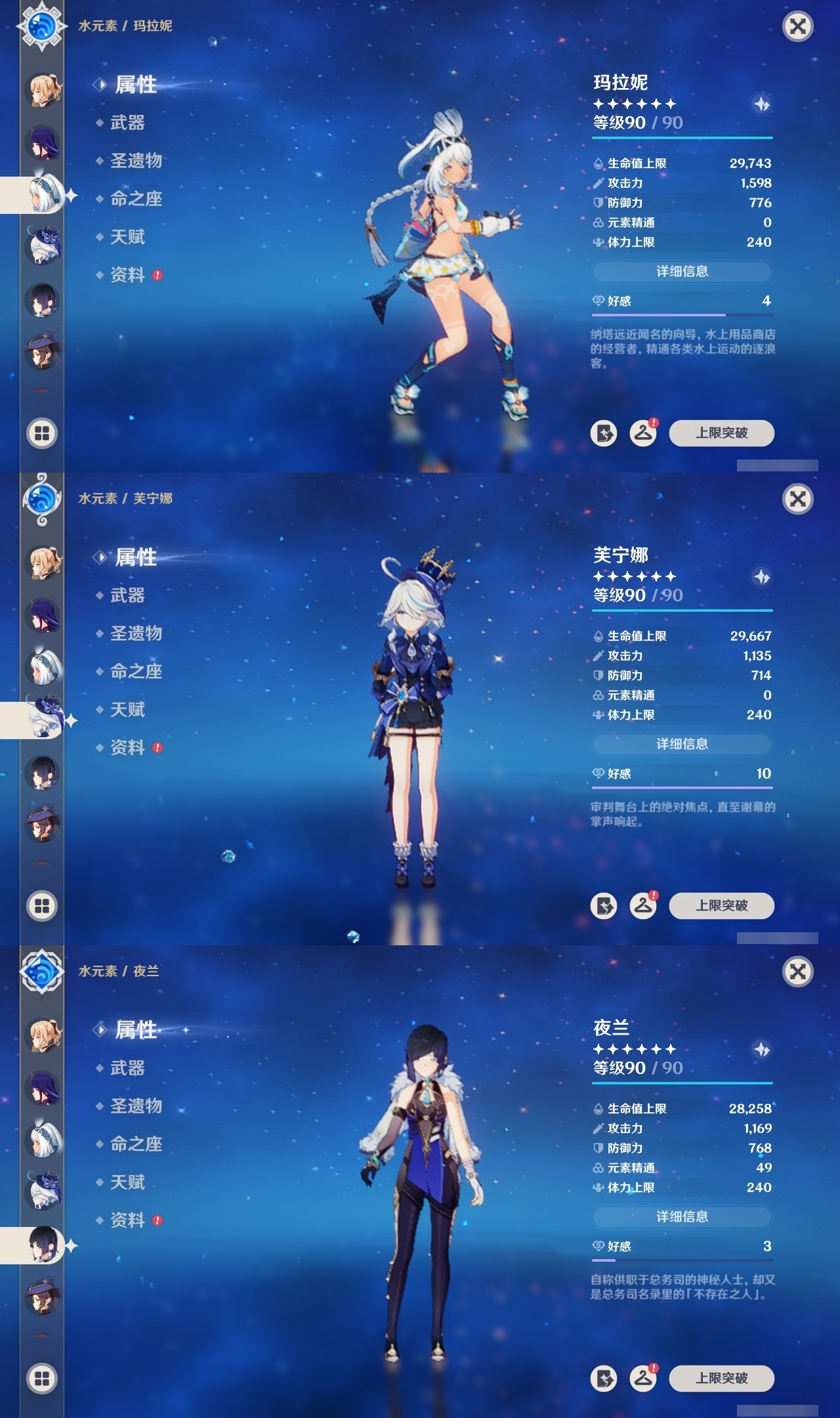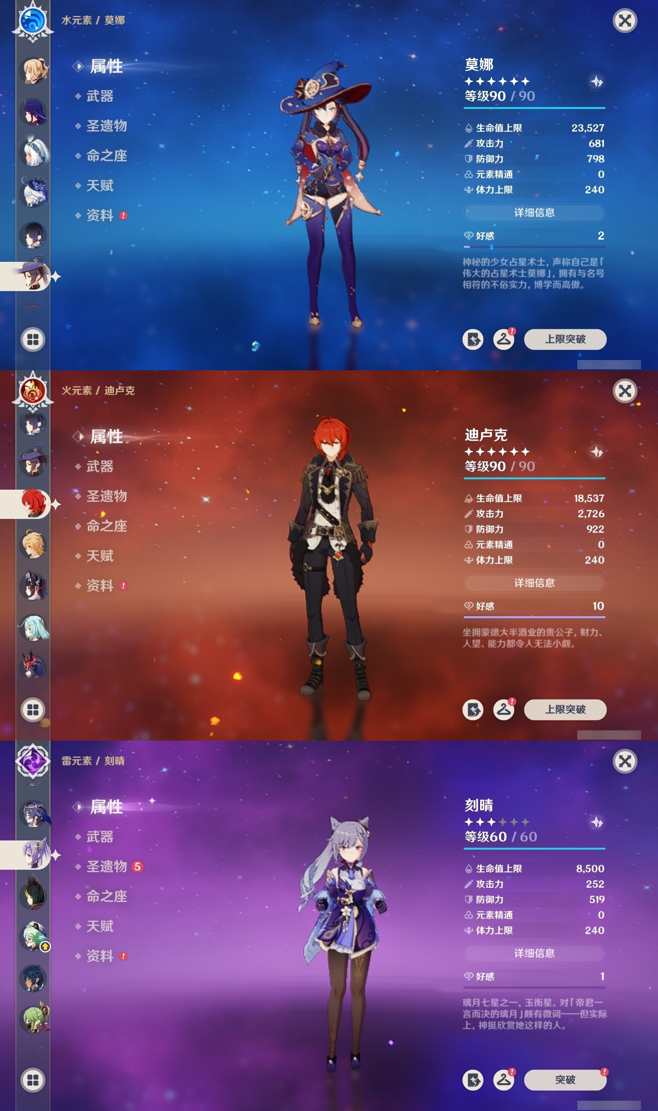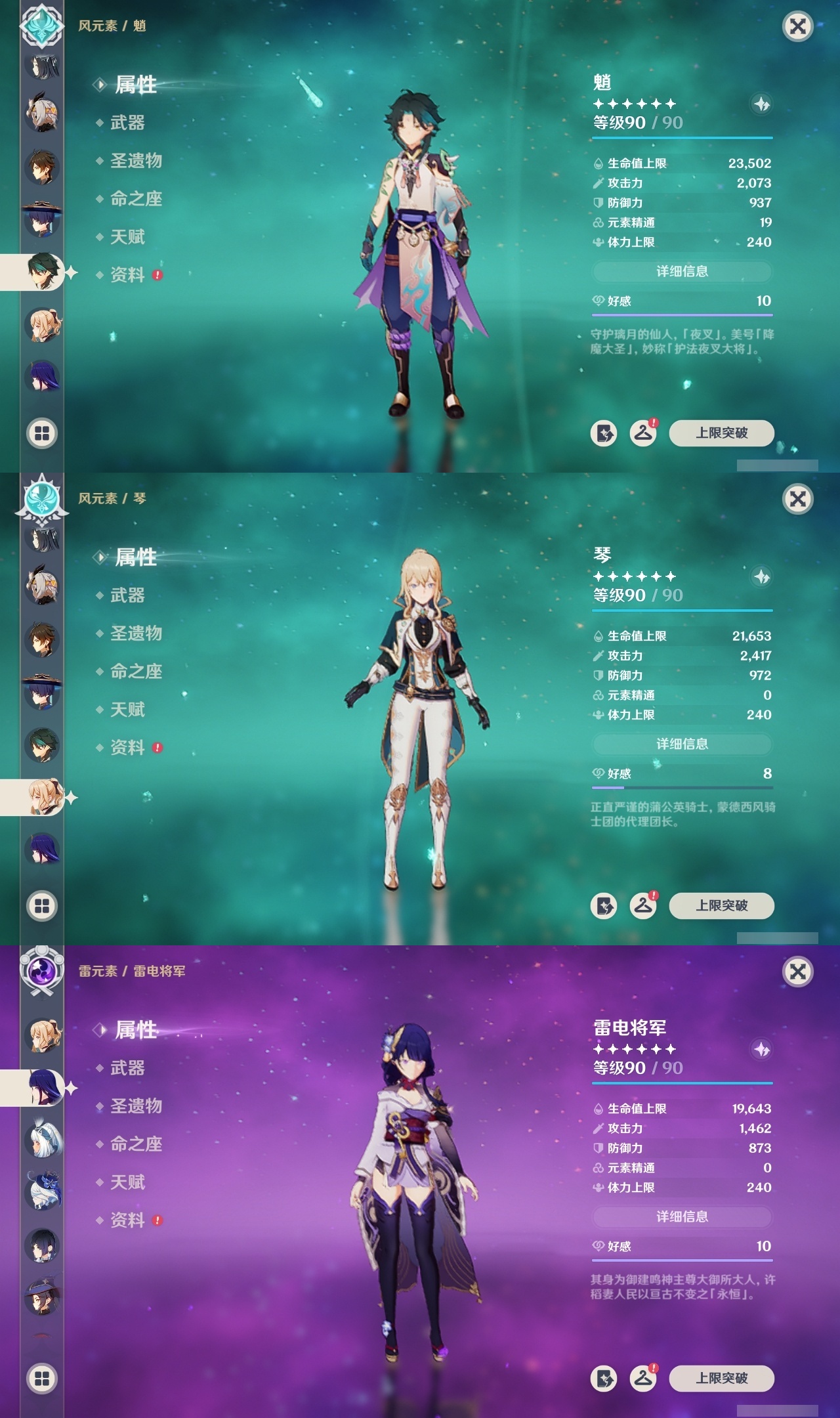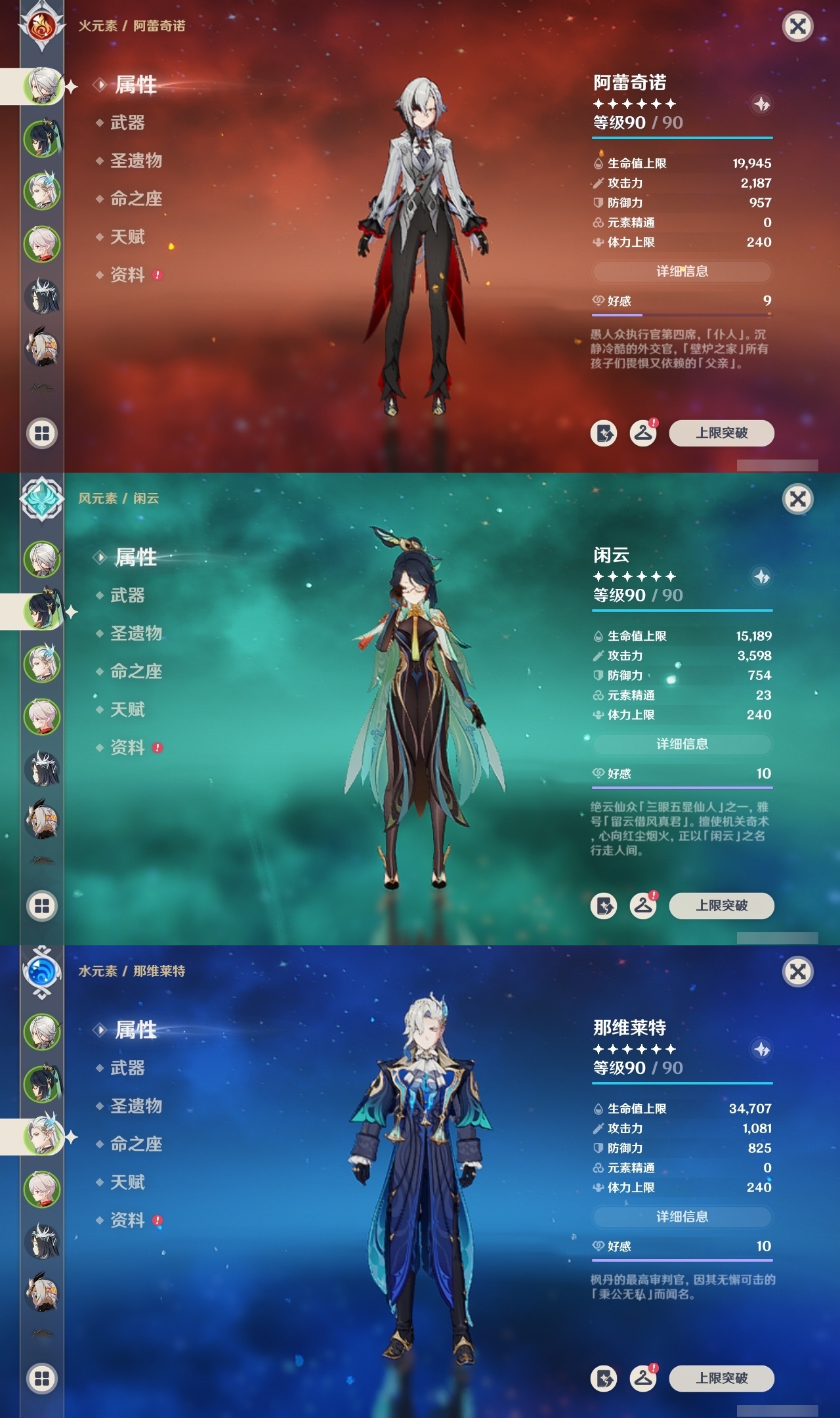 【原神】满命,冒险等级:60,五星数量:32,五星角色:迪卢克 6命魈 6命流浪者 6命琴 5命莫娜 4命阿蕾奇诺 3命七七 3命那维莱特 2命玛拉妮 1命闲云 1命钟离夜兰芙宁娜提纳里枫原万叶刻晴雷电将军__五星武器:万世流涌大典 5精护摩之杖 5精阿莫斯之弓 2精苍古自由之誓 2精赤月之形图莱杜拉的回忆不灭月华和璞鸢狼的末路天空之卷天空之刃天空之翼薙草之稻光终末嗟叹之诗赦罪__四星角色:卡齐娜 6命班尼特 6命行秋 6命香菱 6命鹿野院平藏 6命珐露珊 6命凝光 6命瑶瑶 6命多莉 6命柯莱 6命芭芭拉 6命云堇 6命烟绯 6命辛焱 6命诺艾尔 6命罗莎莉亚 6命雷泽 6命菲谢尔 6命北斗 6命嘉明 6命蓝砚 5命重云 5命砂糖 4命托马 4命五郎 4命久岐忍 3命卡维 3命琳妮特 3命夏洛蒂 3命九条裟罗 2命米卡 2命夏沃蕾 2命赛索斯 2命迪奥娜 1命莱依拉 1命坎蒂丝 1命早柚 1命菲米尼 1命绮良良伊安珊