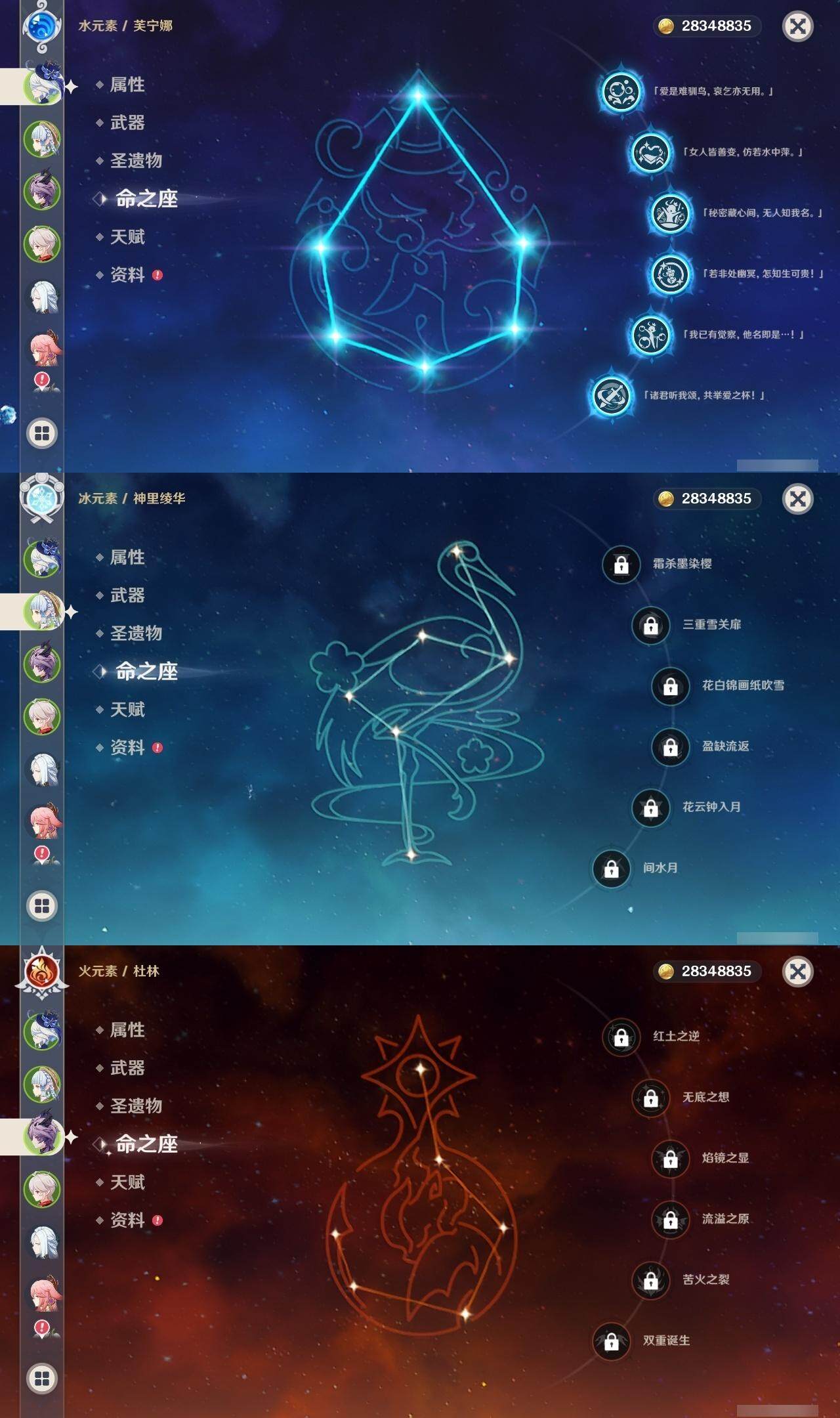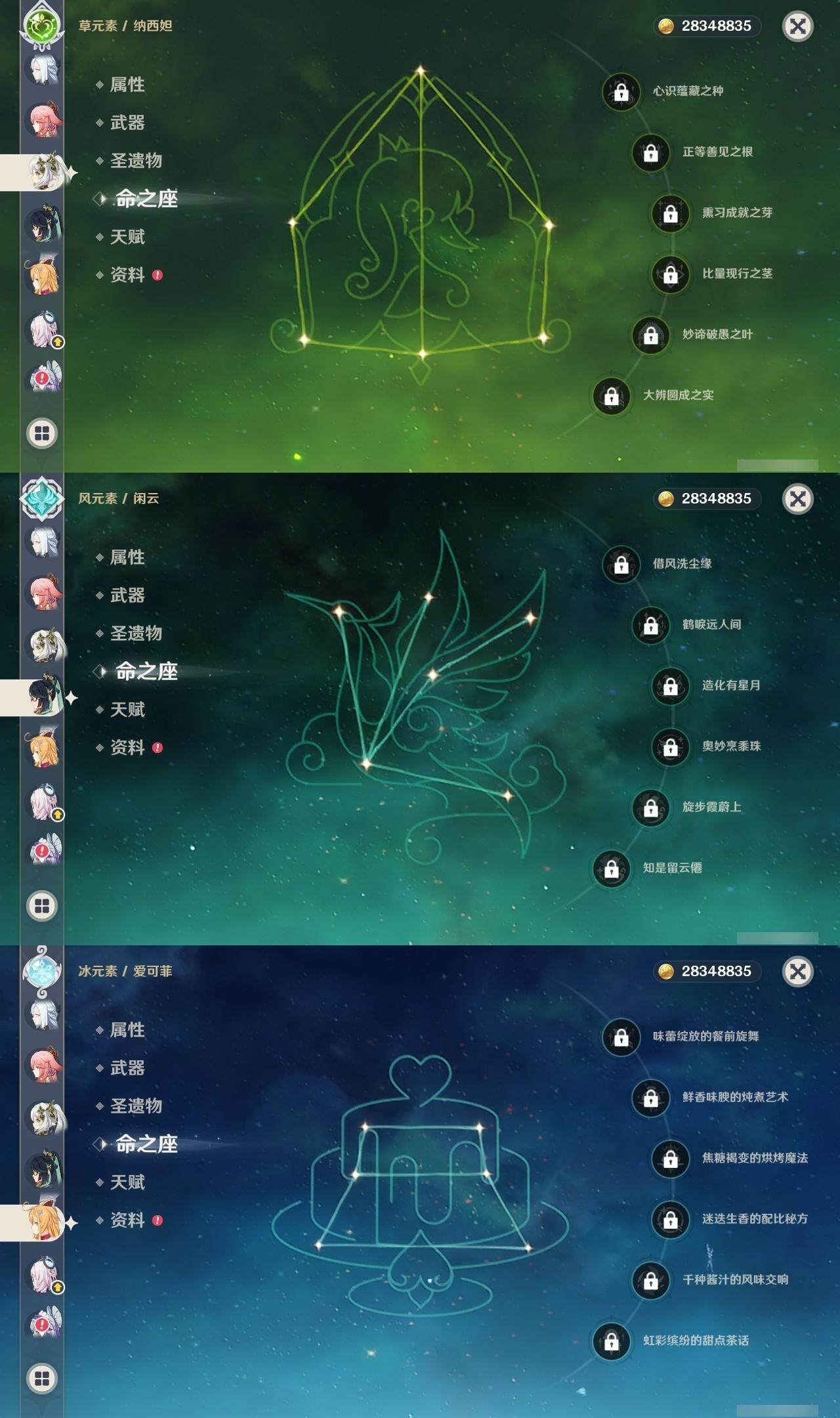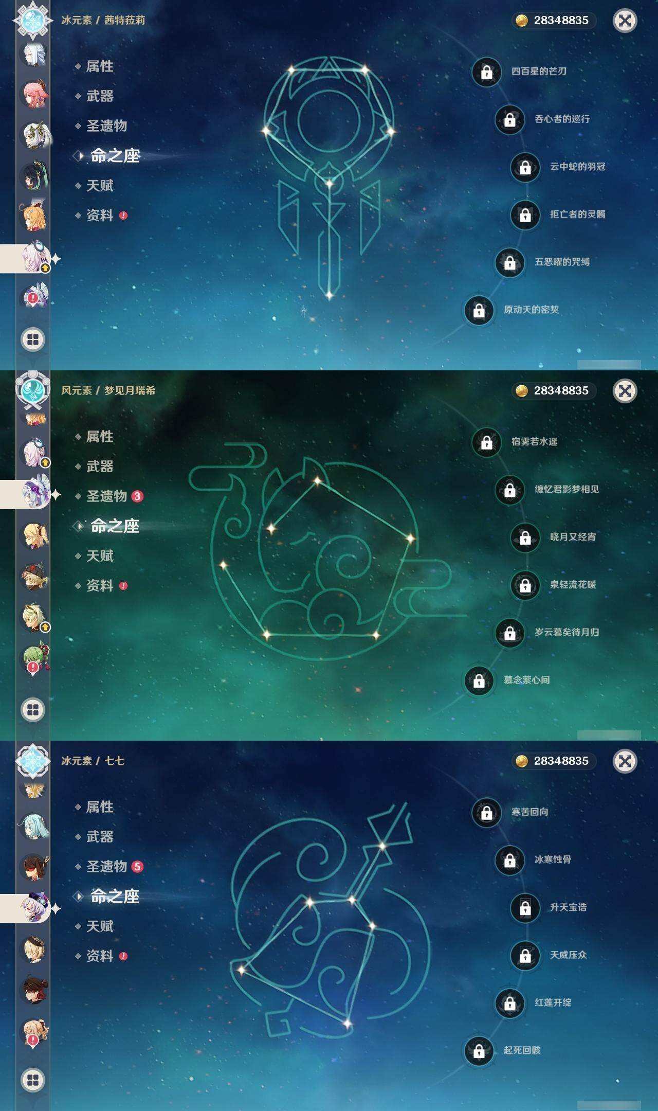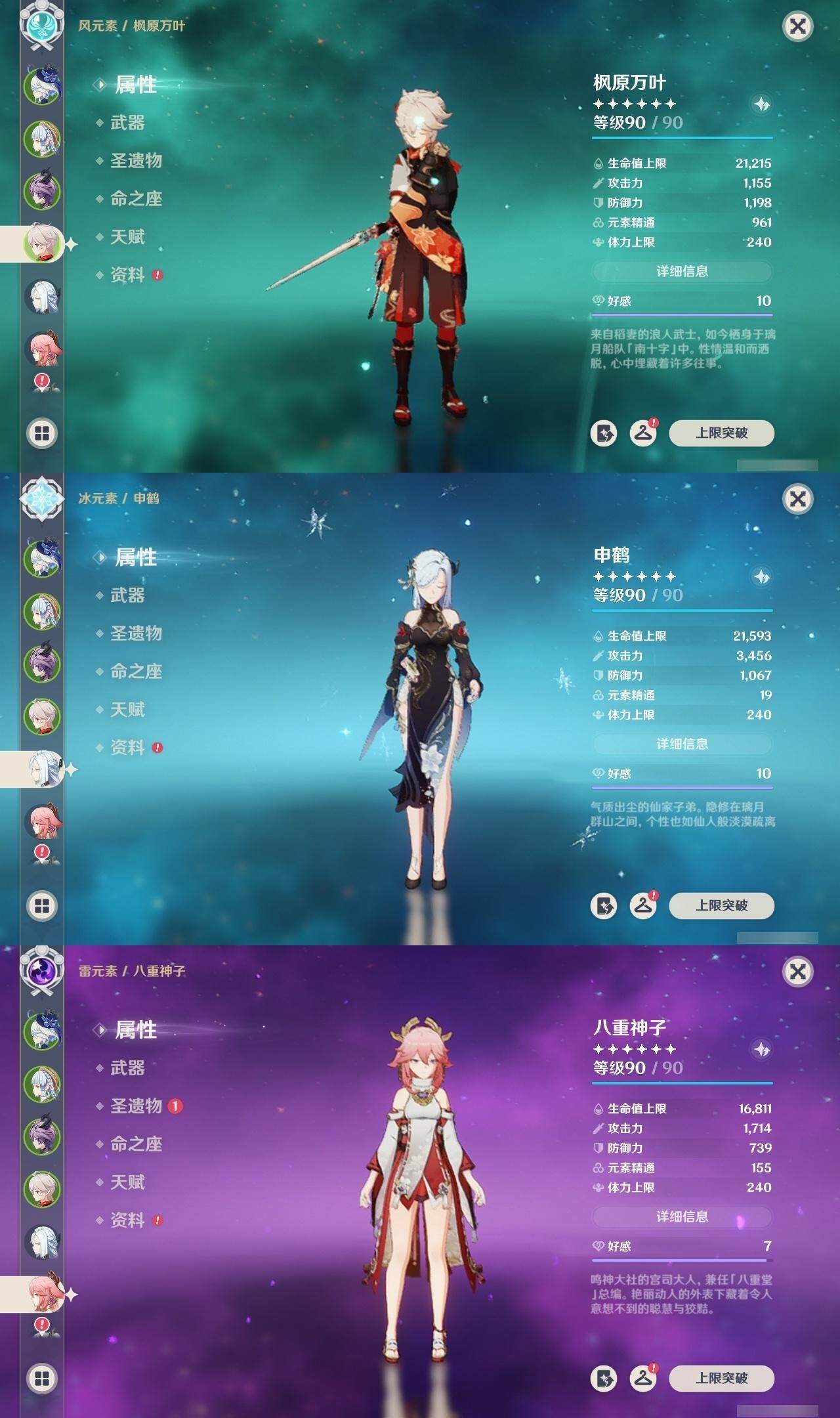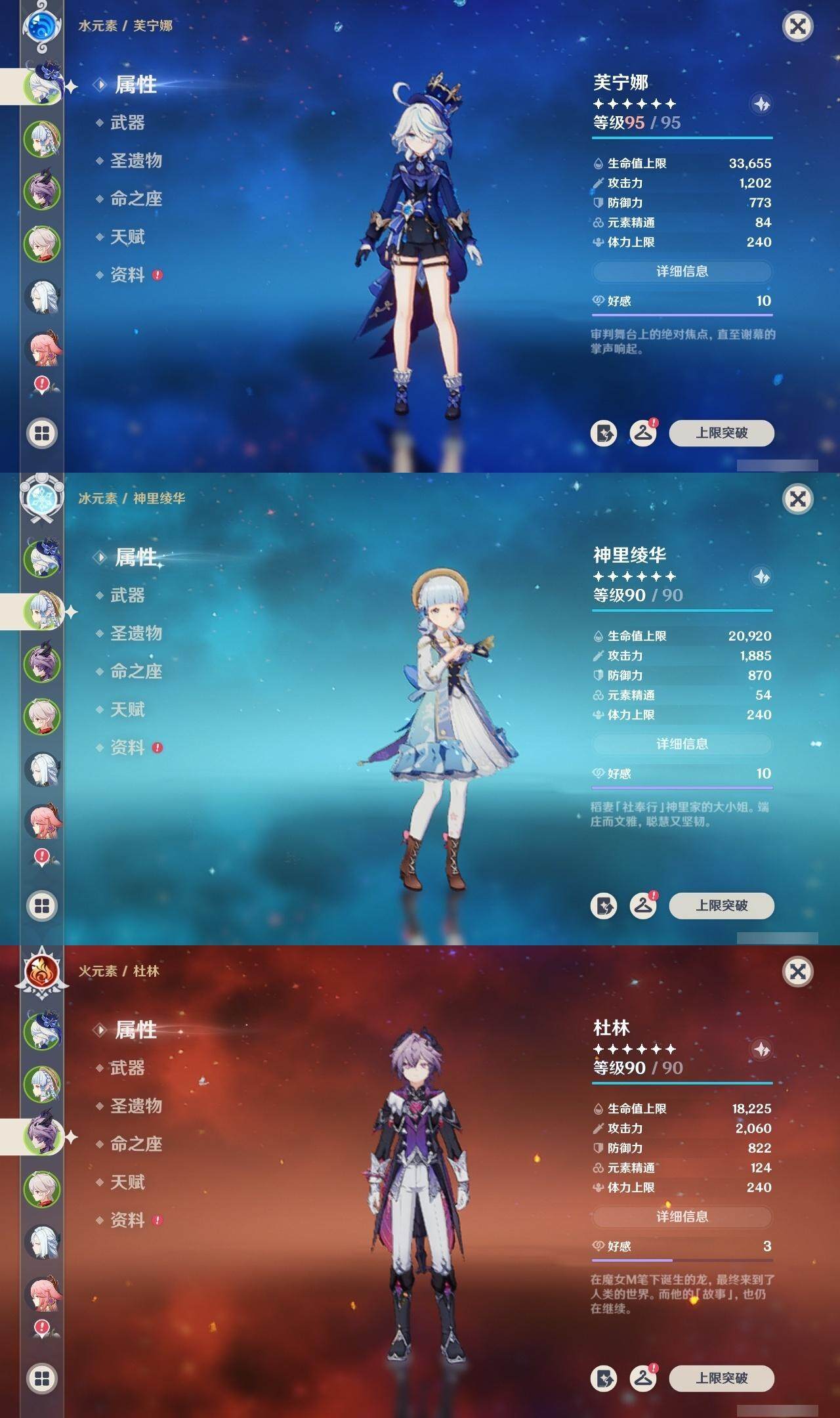59级/40黄/女主/17个五星角色/8个五星武器 0命闲云满命芙宁娜0命迪希雅0命纳西妲0命提纳里0命八重神子1命申鹤0命枫原万叶0命神里绫华0命七七满命琴1命莫娜1命迪卢克0命茜特菈莉0命梦见月瑞希0命爱可菲0命杜林精1静水流涌之辉精1息灾精1雾切之回光精1阿莫斯之弓精1天空之刃精1天空之傲精1黑蚀精1黎明破晓之史