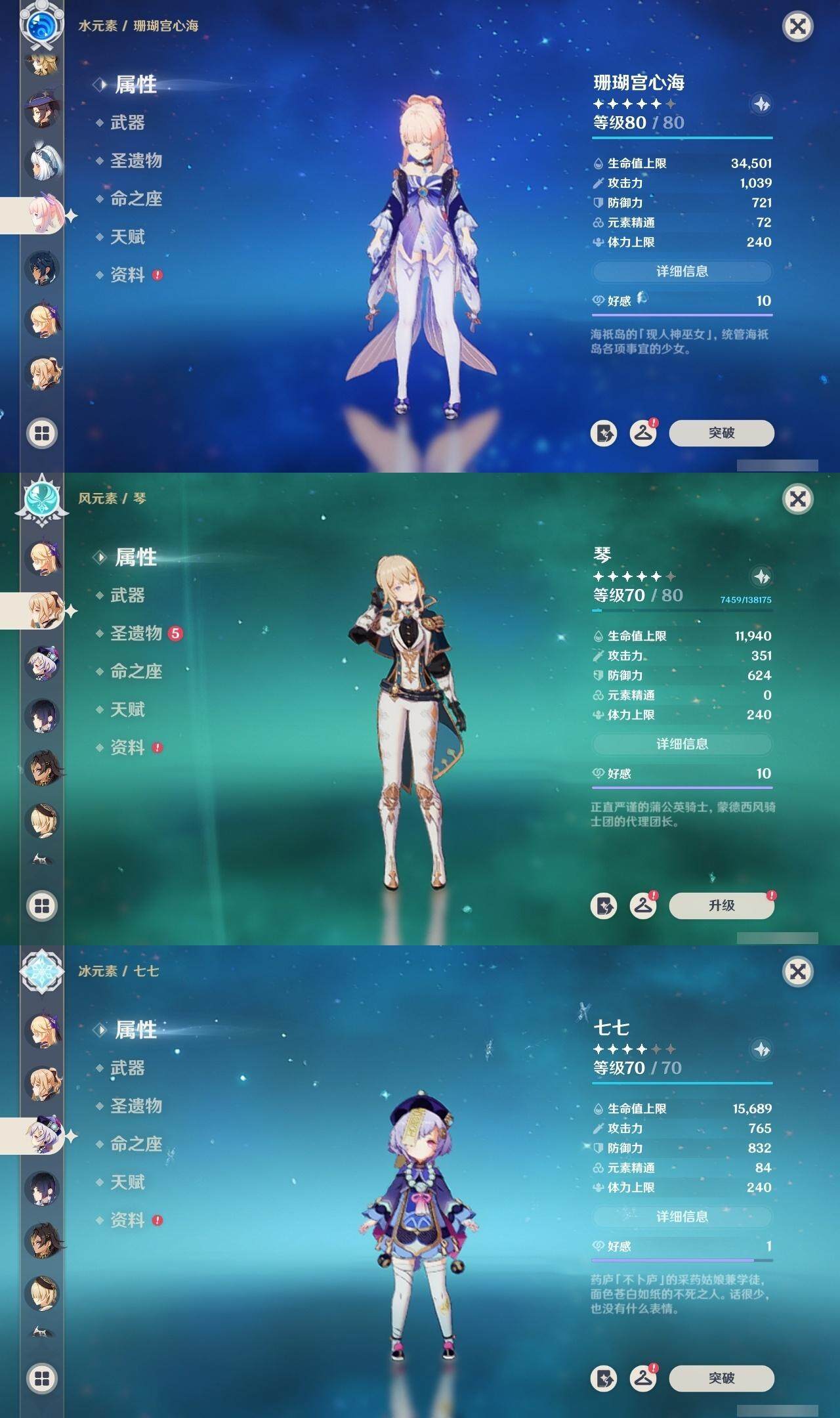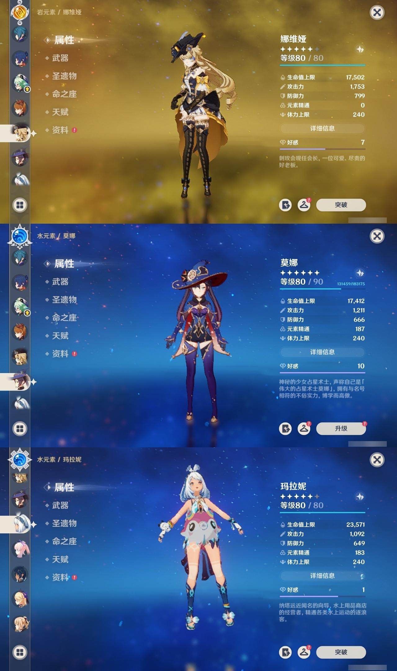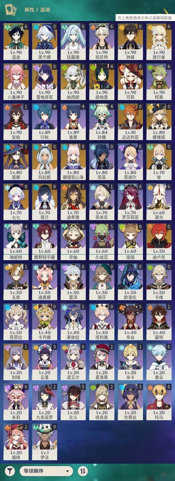 60级/44黄/女主/19个五星角色/11个五星武器 0命娜维娅0命芙宁娜1命迪希雅1命纳西妲4命提纳里0命夜兰0命八重神子0命雷电将军0命钟离满命温迪0命可莉0命达达利亚0命珊瑚宫心海1命刻晴0命七七0命琴1命莫娜0命迪卢克0命玛拉妮精1最初的大魔术精1若水精1终末嗟叹之诗精1冬极白星精1雾切之回光精1四风原典精1和璞鸢精1天空之翼精1风鹰剑精1天空之傲