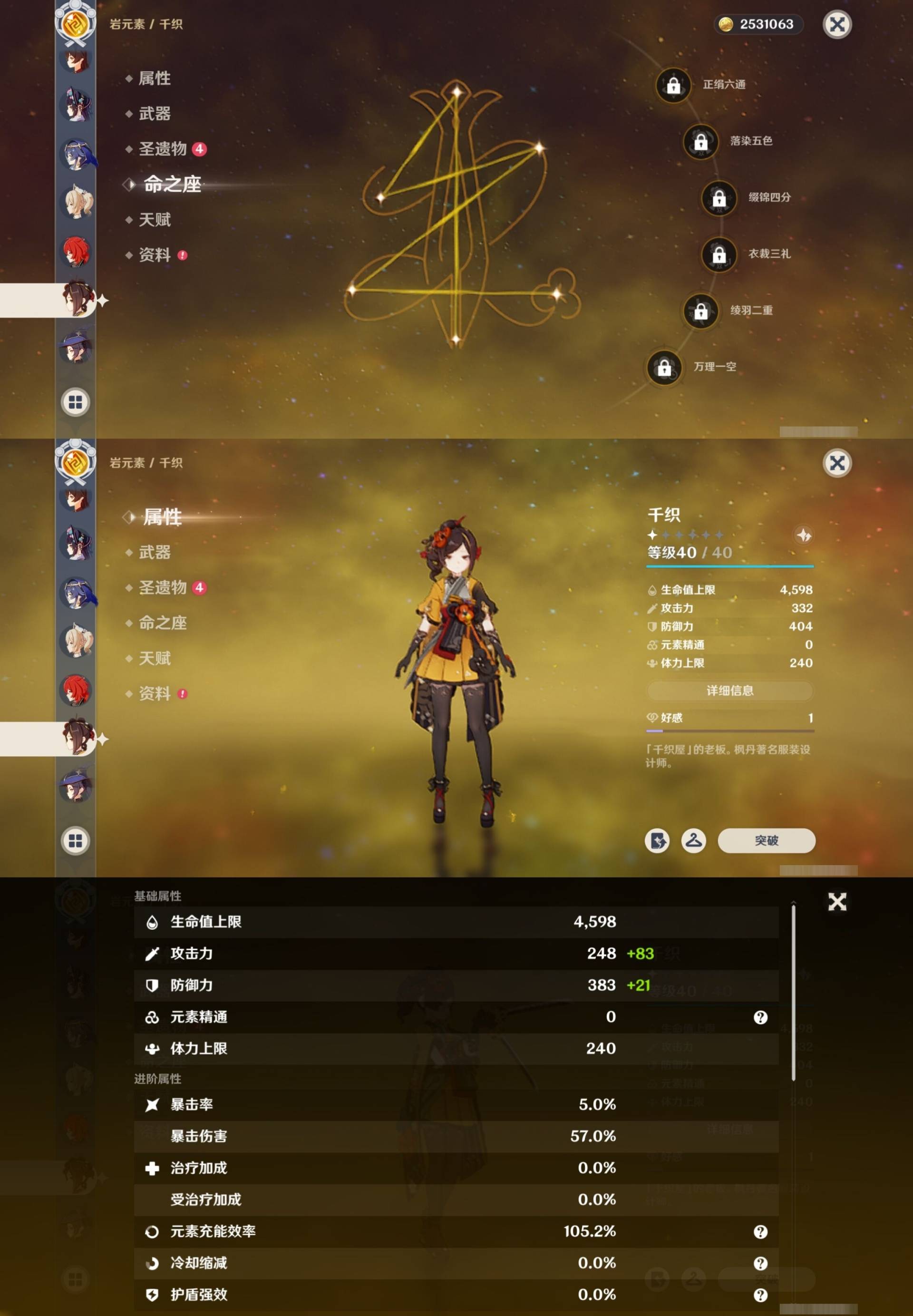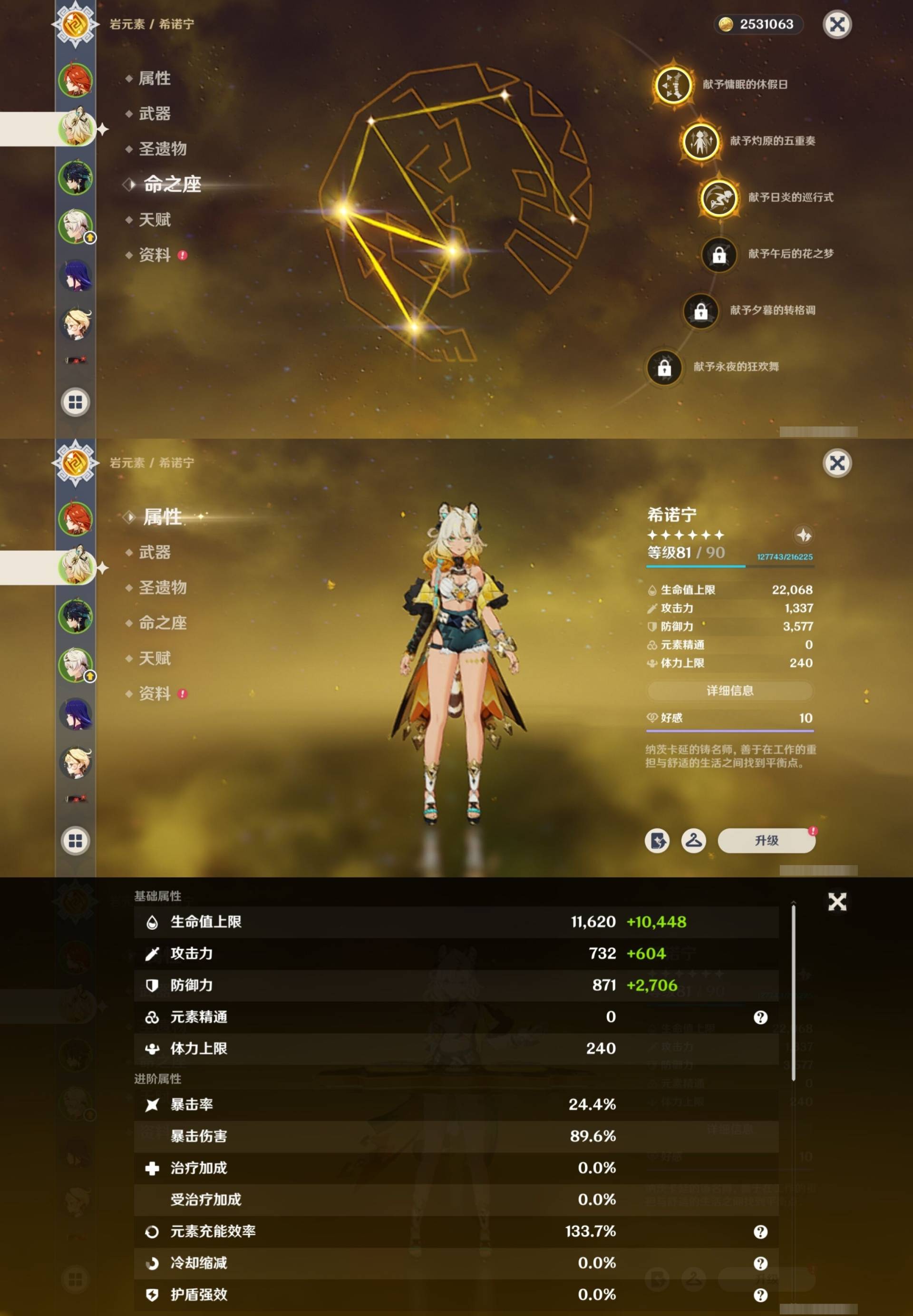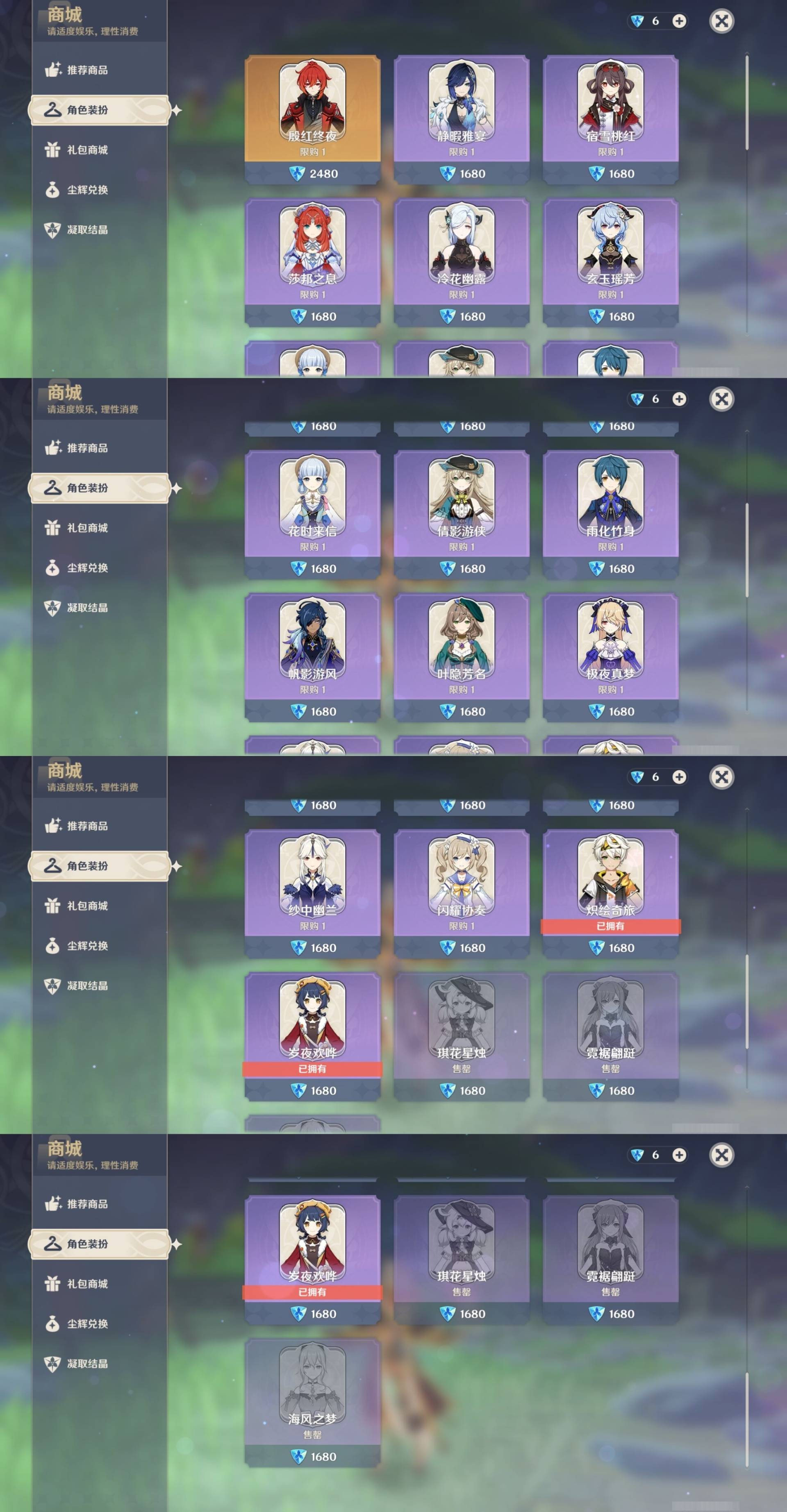 [14659261]61黄 风系:2命琴/0命恰斯卡 火系:1命胡桃/0命可莉/0命迪卢克/0命杜林/2命迪希雅/0命玛薇卡 水系:0命芙宁娜/2命莫娜/0命希格雯 冰系:0命茜特菈莉/1命七七 岩系:3命希诺宁/0命千织 雷系:6命雷电将军/2命刻晴 草系:3命基尼奇/0命艾梅莉埃/0命纳西妲/4命提纳里 [四星角色等级及命座] 风系: 5命珐露珊/2命蓝砚/2命鹿野院平藏/0命伊法/3命琳妮特/1命砂糖 火系: 6命班尼特/4命香菱/6命夏沃蕾/0命安柏/6命托马/3命嘉明/1命烟绯/1命辛焱 水系:6命行秋/3命芭芭拉/1命爱诺/2命塔利雅/6命坎蒂丝 冰系:1命凯亚/1命莱依拉/1命夏洛蒂/0命菲米尼/5命米卡/2命罗莎莉亚/1命迪奥娜 岩系:0命云堇/4命凝光/2命诺艾尔/1命五郎 雷系:6命久岐忍/6命九条裟罗/1命丽莎/4命菲谢尔/2命伊安珊/0命欧洛伦/4命赛索斯/6命多莉/2命北斗/6命雷泽 草系:6命柯莱/1命瑶瑶/1命卡维/0命绮良良 [角色经验书] 紫色77/蓝色116 [小物品] 异梦溶媒11/嬗变之尘39 [特殊材料] 东风之爪3/东风的吐息3/北风之尾1/北风之环1/北风的魂匣6/吞天之鲸·只角3/魔王之刃·残片1 武炼之魂·孤影5/龙王之冕1/血玉之枝1/鎏金之鳞3/智识之冕19