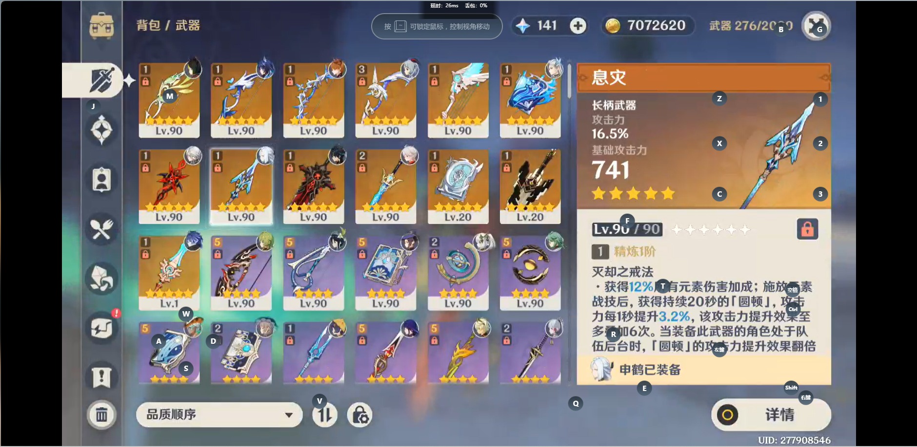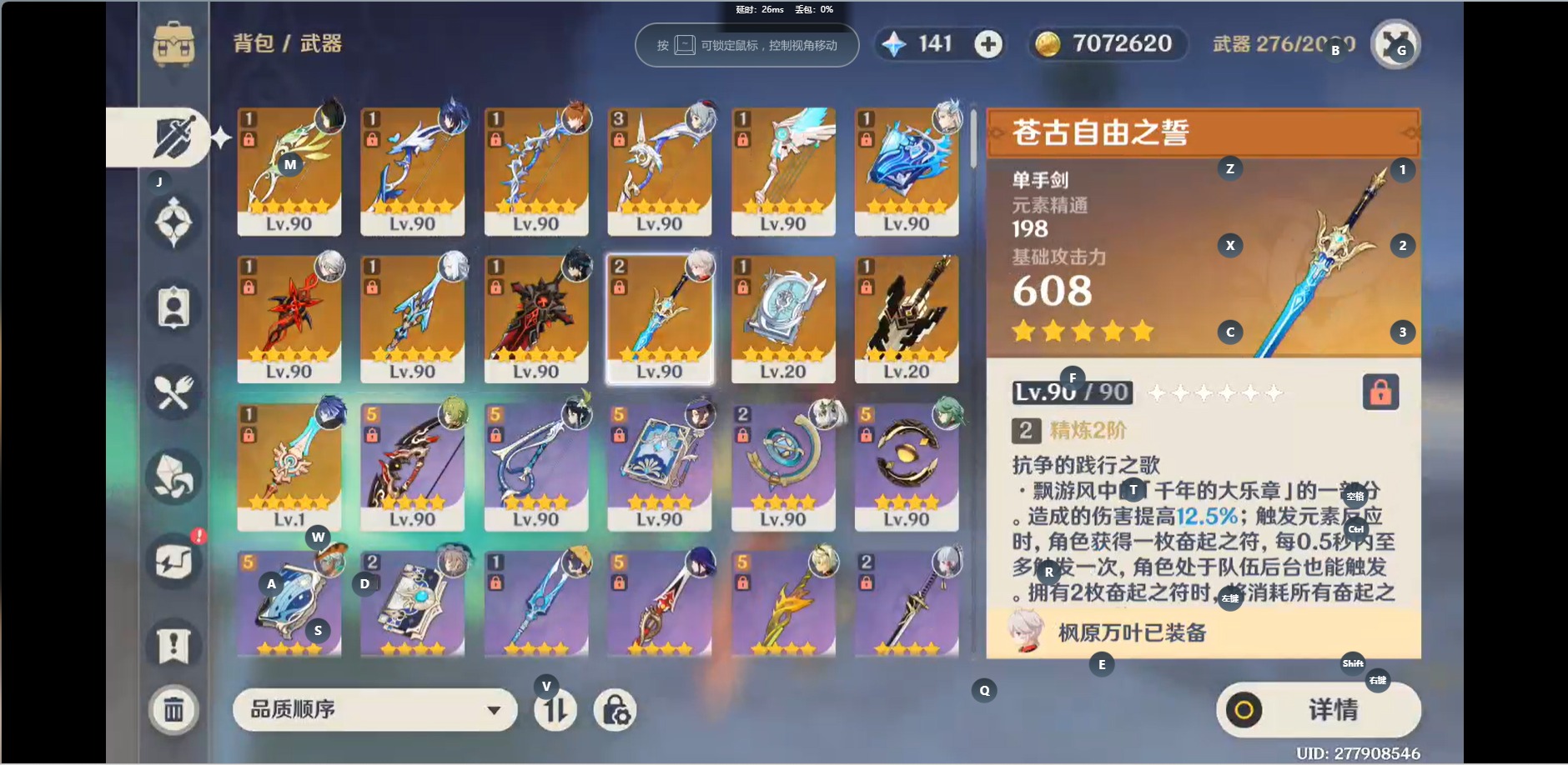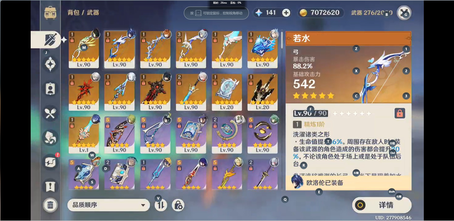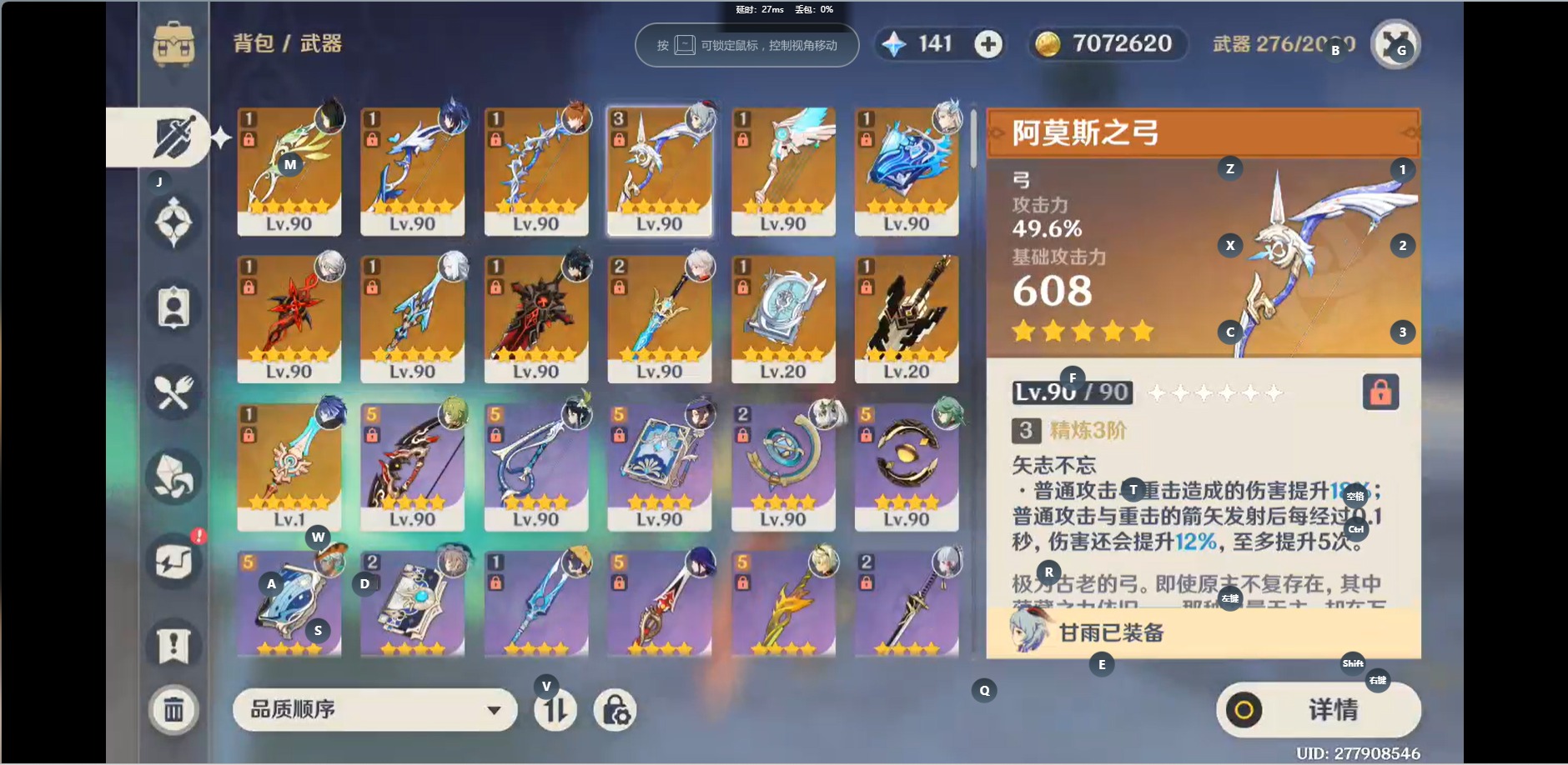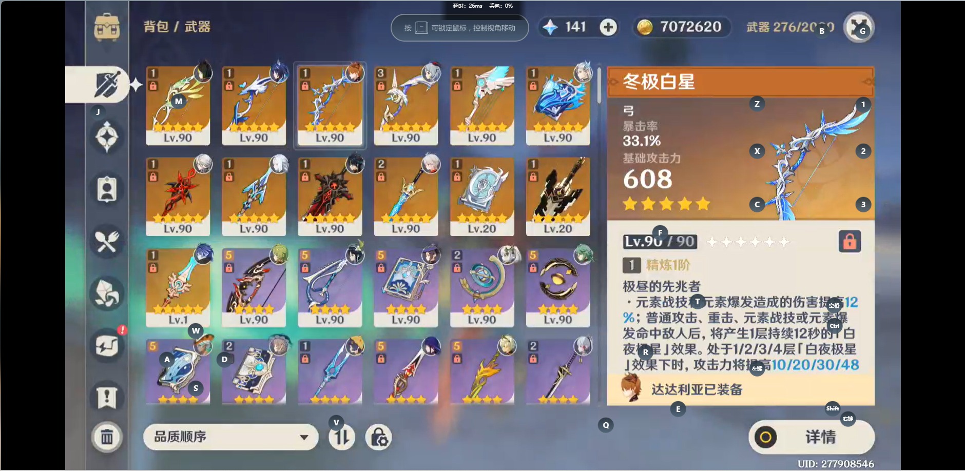 [14671488]【邮箱】:未绑定 【总黄数】:49 【冒险等级】:60 【2命金色角色】:二命琴 【1命金色角色】:一命基尼奇一命迪希雅一命提纳里一命莫娜 【0命金色角色】:菲林斯梦见月瑞希希诺宁克洛琳德阿蕾奇诺芙宁娜白术艾尔海森纳西妲夜兰神里绫人申鹤雷电将军神里绫华枫原万叶甘雨钟离达达利亚温迪刻晴迪卢克 【3精武器】:阿莫斯之弓 【2精武器】:苍古自由之誓 【1精武器】:赤月之形万世流涌大典若水息灾冬极白星猎人之径狼的末路无工之剑天空之脊天空之翼四风原典