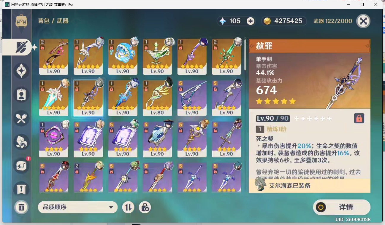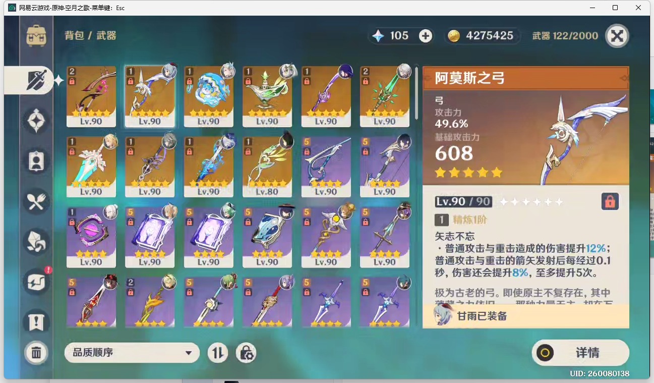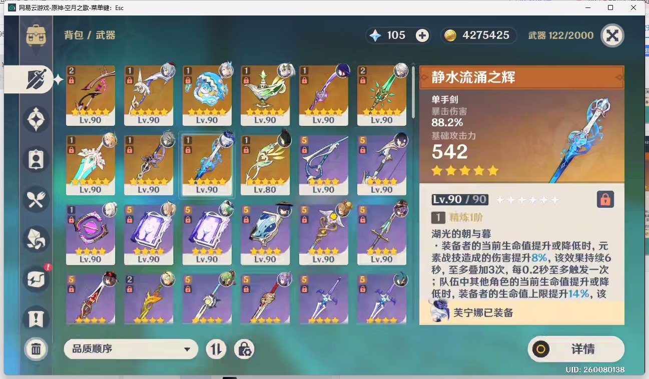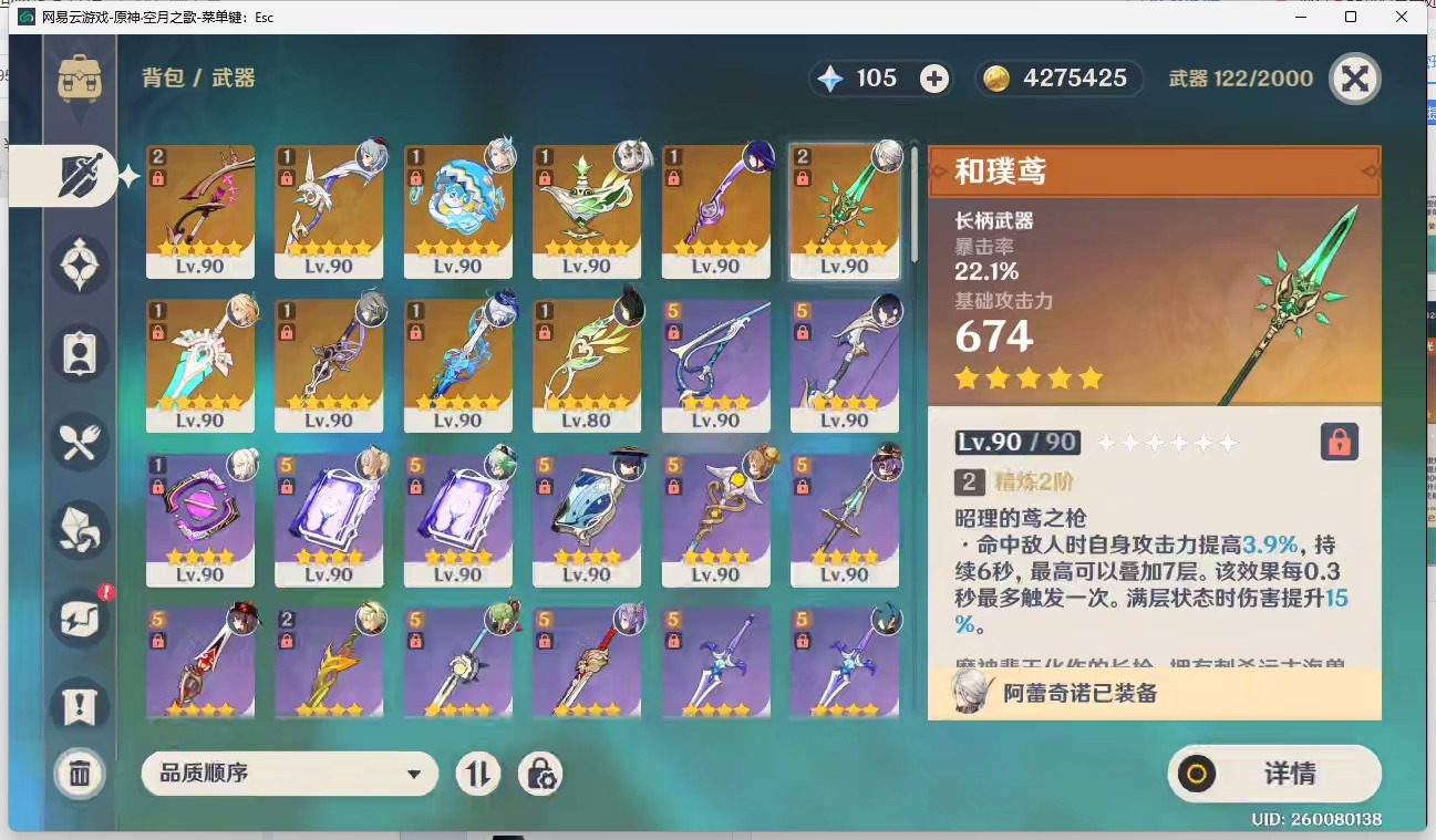 [14672542]【邮箱】:未绑定 【总黄数】:48 【冒险等级】:60 【6命金色角色】:满命纳西妲满命提纳里 【3命金色角色】:三命迪希雅 【1命金色角色】:一命枫原万叶一命刻晴一命迪卢克一命琴一命七七 【0命金色角色】:伊涅芙阿蕾奇诺芙宁娜那维莱特艾尔海森流浪者夜兰雷电将军胡桃甘雨钟离莫娜 【2精武器】:赦罪和璞鸢 【1精武器】:冲浪时光静水流涌之辉千夜浮梦薙草之稻光阿莫斯之弓猎人之径天空之傲