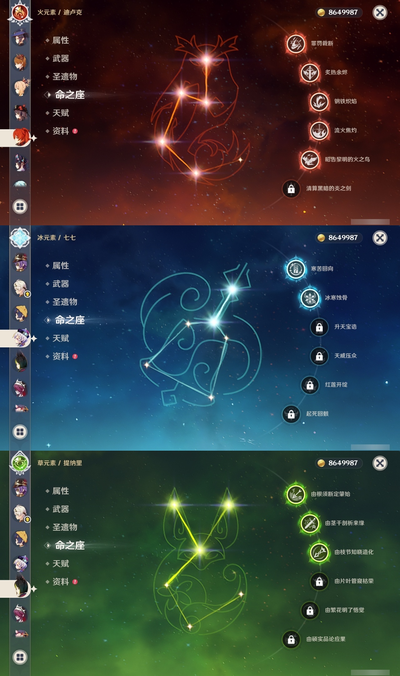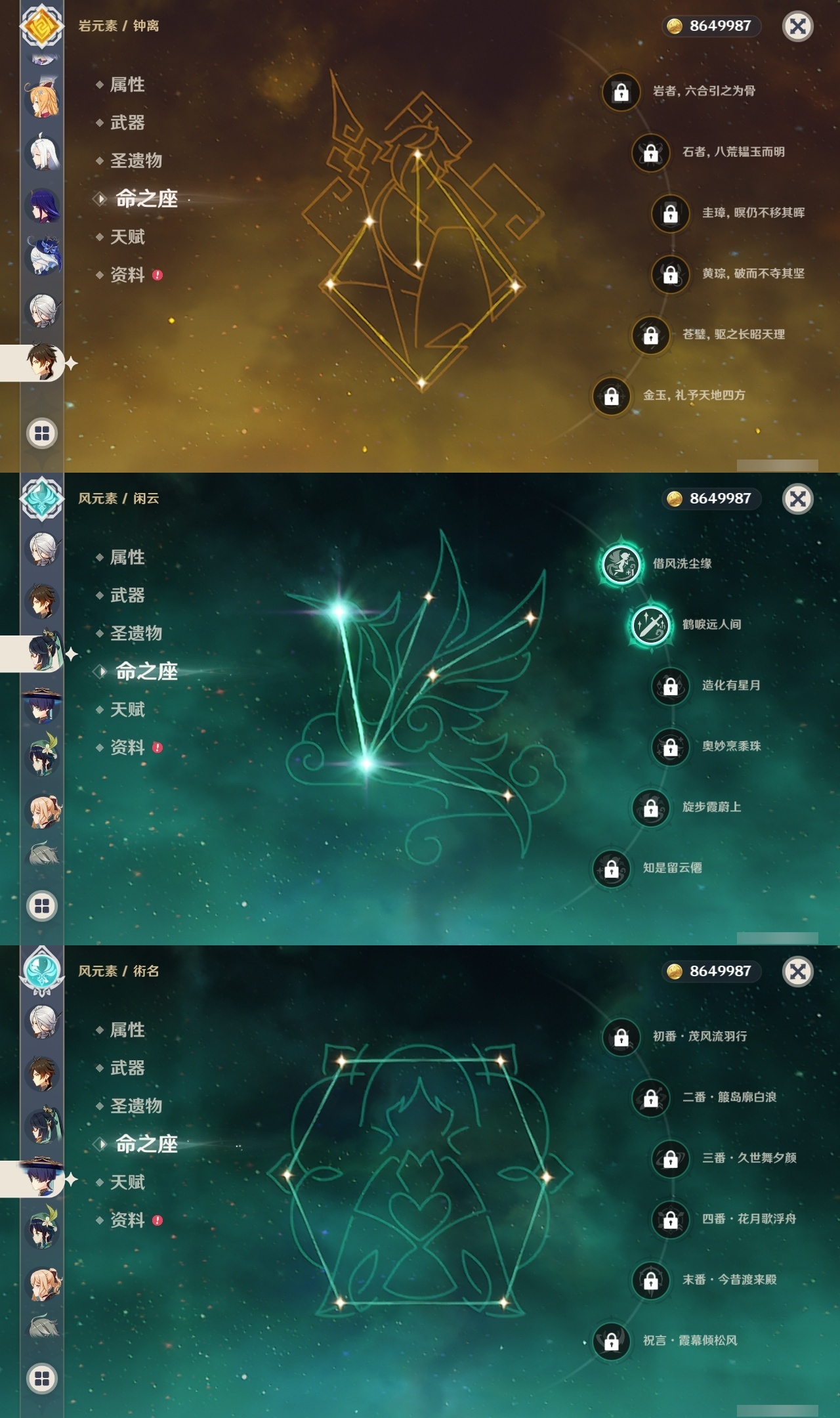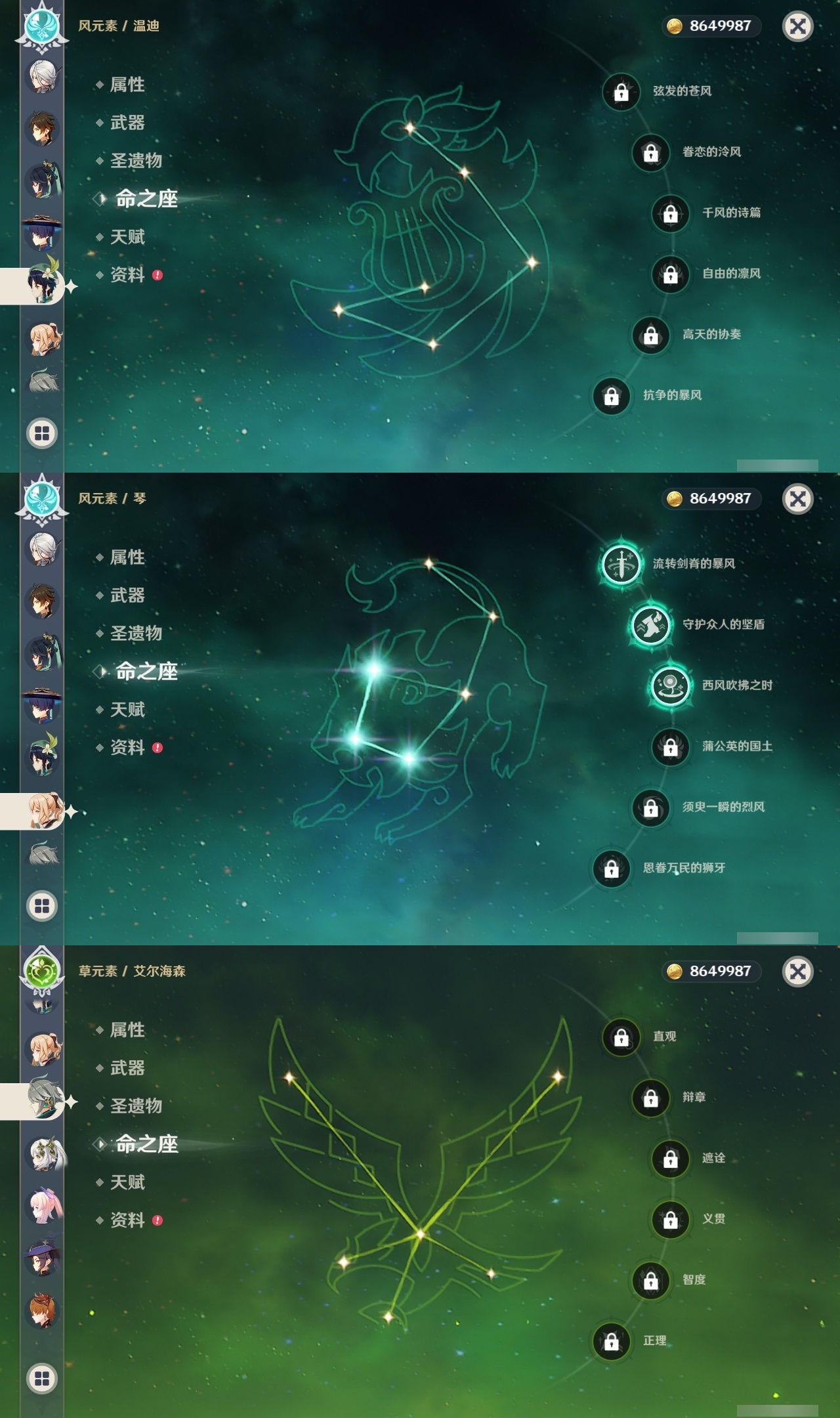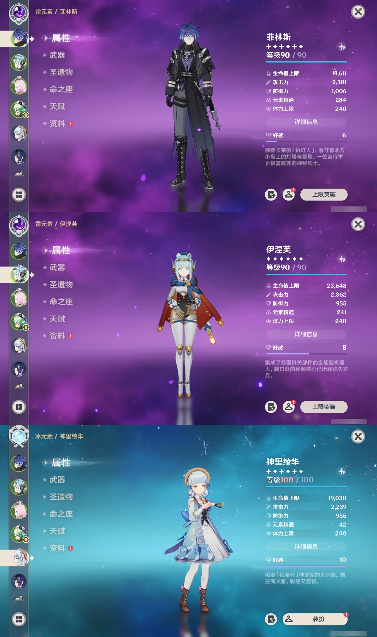 【原神】满命,冒险等级:60,五星数量:51,五星角色:枫原万叶 6命雷电将军 6命莫娜 6命夜兰 6命迪卢克 5命刻晴 5命胡桃 3命琴 3命提纳里 3命芙宁娜 2命闲云 2命七七 2命宵宫 2命申鹤 2命纳西妲 2命杜林 1命珊瑚宫心海希诺宁神里绫华温迪迪希雅钟离达达利亚梦见月瑞希爱可菲阿蕾奇诺丝柯克伊涅芙菲林斯艾尔海森流浪者__五星武器:护摩之杖 3精阿莫斯之弓 2精苍古自由之誓 2精风鹰剑 2精四风原典 2精天空之翼 2精薙草之稻光 2精鹤鸣余音苍耀黎明破晓之史裁叶萃光飞雷之弦振狼的末路天空之脊天空之刃雾切之回光息灾若水千夜浮梦__四星角色:班尼特 6命行秋 6命九条裟罗 6命香菱 6命久岐忍 6命鹿野院平藏 6命珐露珊 6命凝光 6命迪奥娜 6命砂糖 6命瑶瑶 6命莱依拉 6命米卡 6命坎蒂丝 6命多莉 6命柯莱 6命芭芭拉 6命云堇 6命早柚 6命托马 6命烟绯 6命重云 6命辛焱 6命诺艾尔 6命罗莎莉亚 6命雷泽 6命菲谢尔 6命北斗 6命琳妮特 6命夏沃蕾 6命嘉明 6命蓝砚 5命伊法 2命赛索斯 2命绮良良 1命卡维 1命五郎 1命菲米尼 1命伊安珊 1命塔利雅 1命奇偶·女性卡齐娜夏洛蒂爱诺