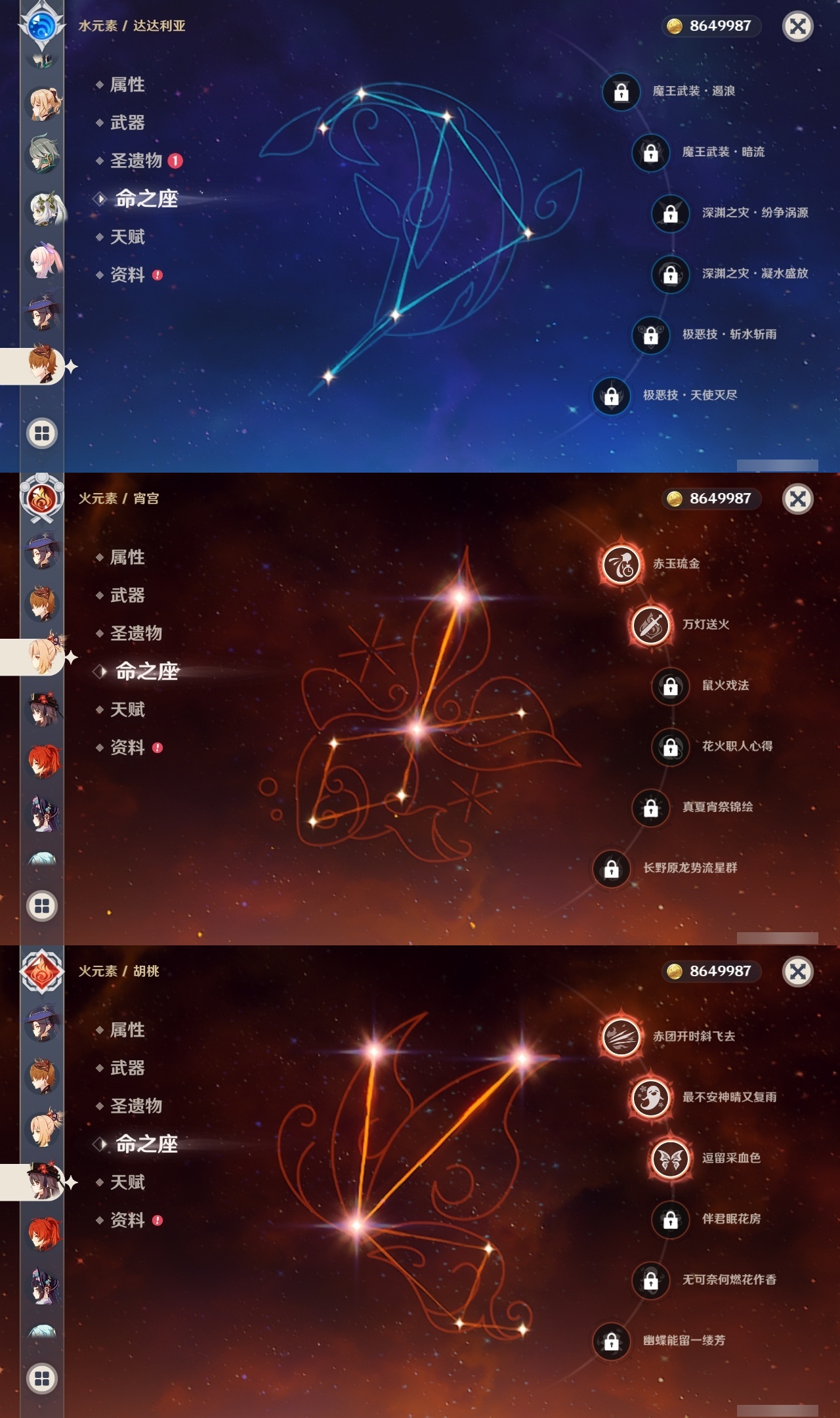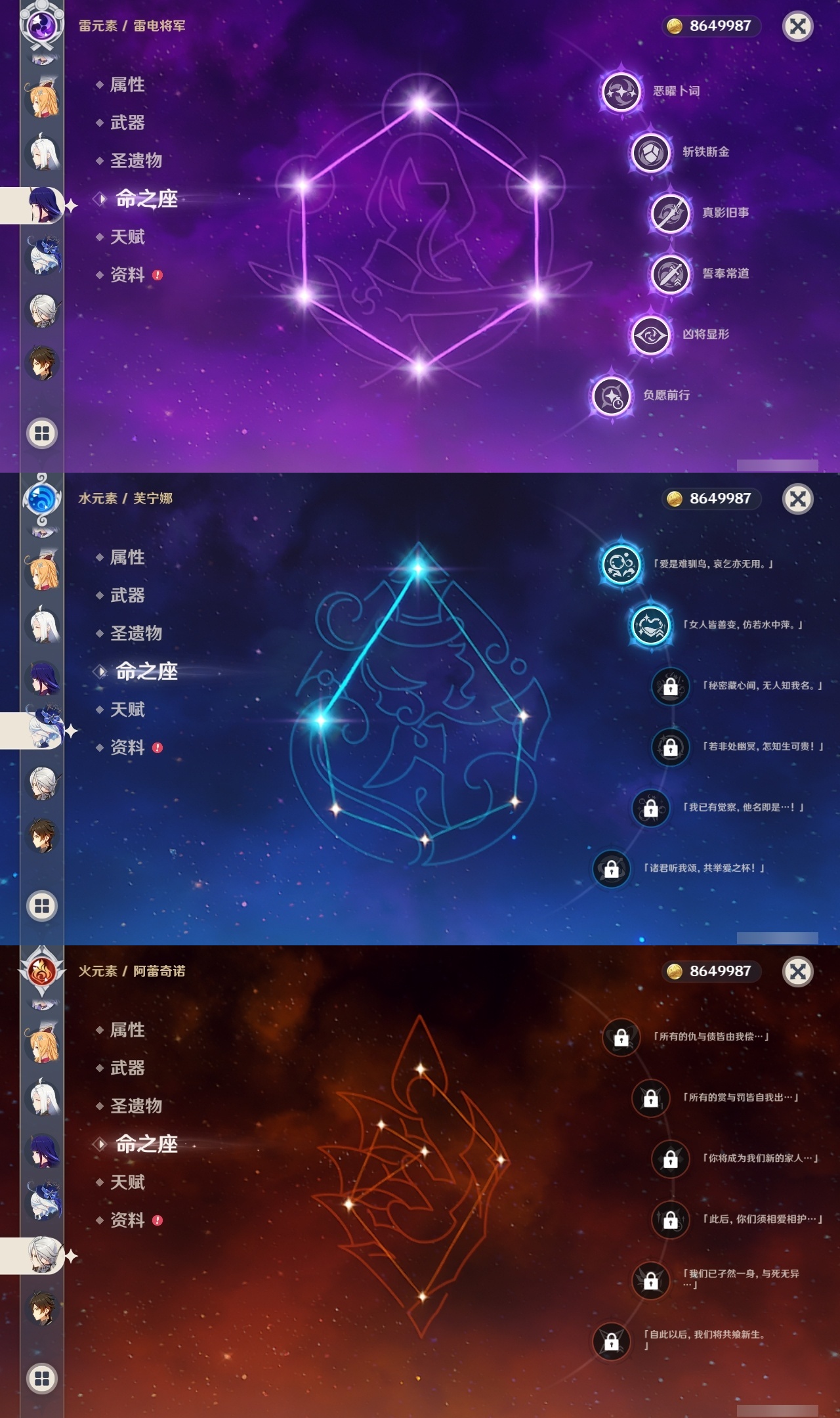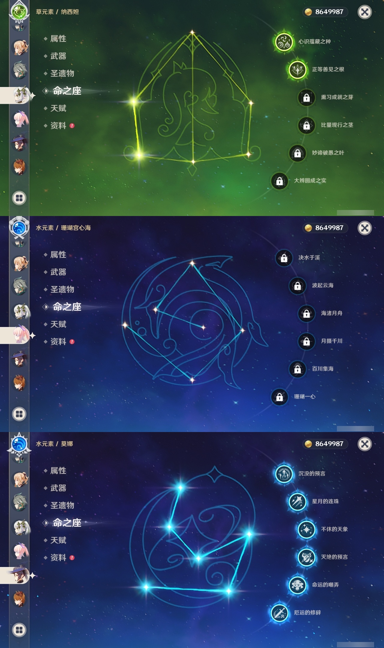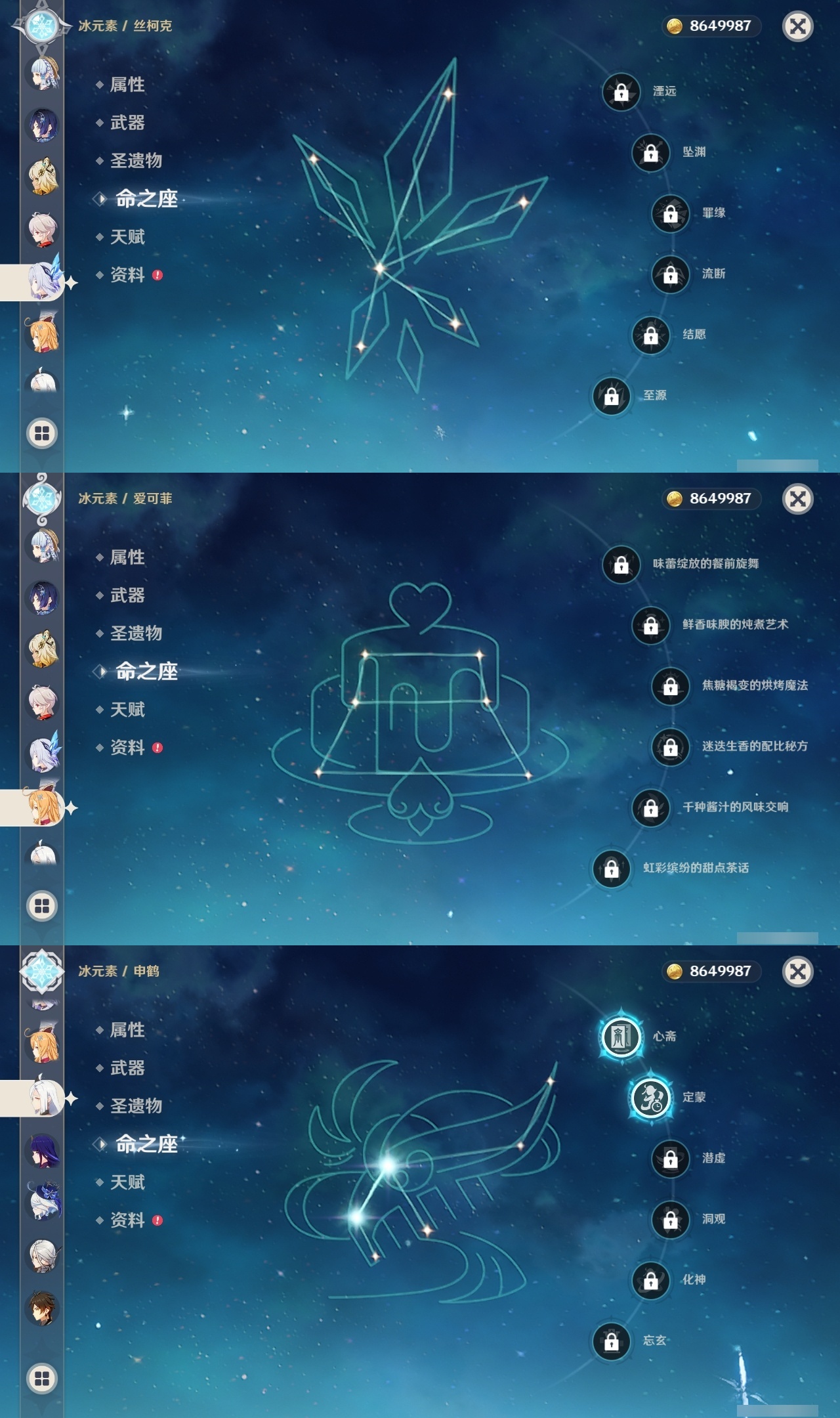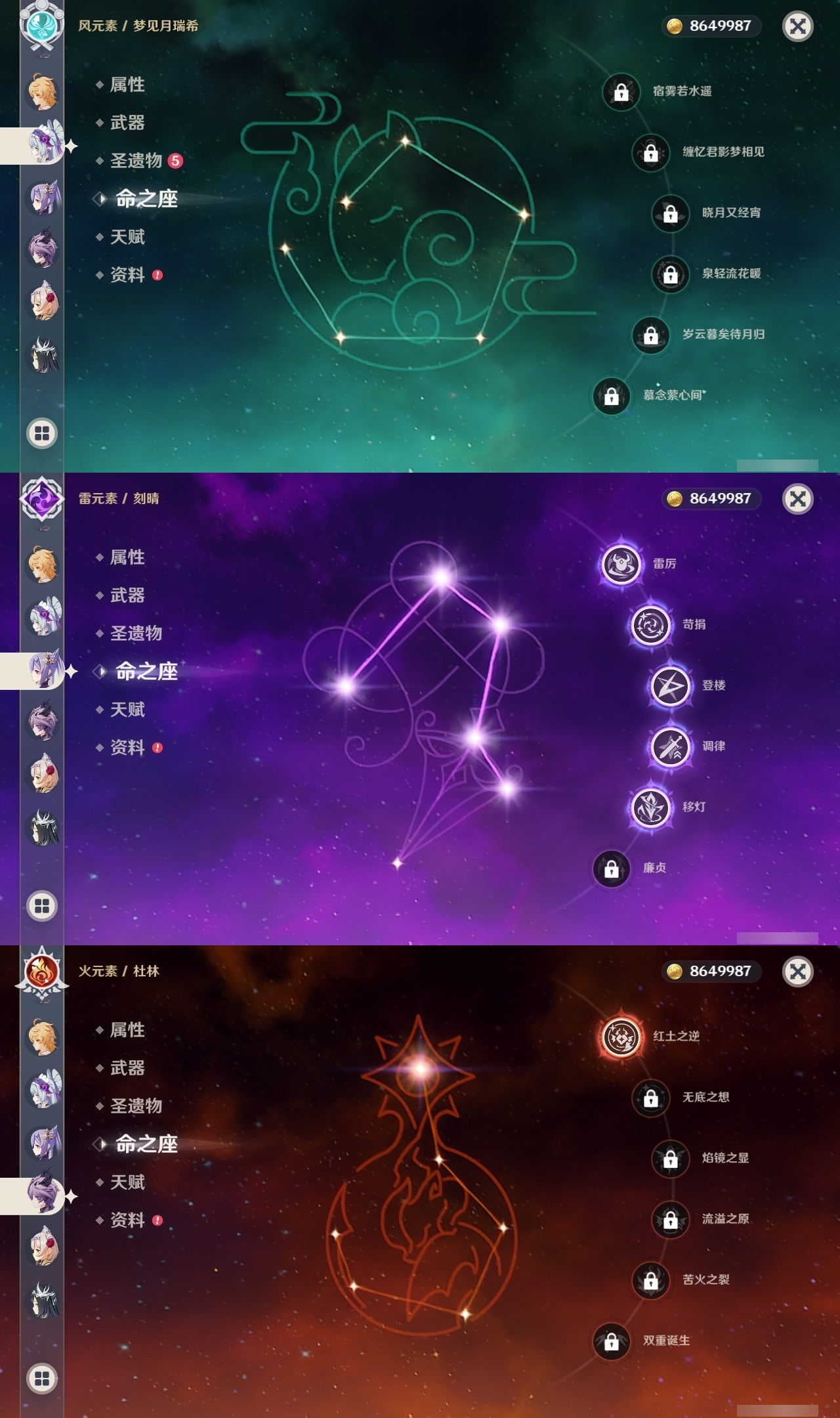 【原神】满命,冒险等级:60,五星数量:51,五星角色:枫原万叶 6命雷电将军 6命莫娜 6命夜兰 6命迪卢克 5命刻晴 5命胡桃 3命琴 3命提纳里 3命芙宁娜 2命闲云 2命七七 2命宵宫 2命申鹤 2命纳西妲 2命杜林 1命珊瑚宫心海希诺宁神里绫华温迪迪希雅钟离达达利亚梦见月瑞希爱可菲阿蕾奇诺丝柯克伊涅芙菲林斯艾尔海森流浪者__五星武器:护摩之杖 3精阿莫斯之弓 2精苍古自由之誓 2精风鹰剑 2精四风原典 2精天空之翼 2精薙草之稻光 2精鹤鸣余音苍耀黎明破晓之史裁叶萃光飞雷之弦振狼的末路天空之脊天空之刃雾切之回光息灾若水千夜浮梦__四星角色:班尼特 6命行秋 6命九条裟罗 6命香菱 6命久岐忍 6命鹿野院平藏 6命珐露珊 6命凝光 6命迪奥娜 6命砂糖 6命瑶瑶 6命莱依拉 6命米卡 6命坎蒂丝 6命多莉 6命柯莱 6命芭芭拉 6命云堇 6命早柚 6命托马 6命烟绯 6命重云 6命辛焱 6命诺艾尔 6命罗莎莉亚 6命雷泽 6命菲谢尔 6命北斗 6命琳妮特 6命夏沃蕾 6命嘉明 6命蓝砚 5命伊法 2命赛索斯 2命绮良良 1命卡维 1命五郎 1命菲米尼 1命伊安珊 1命塔利雅 1命奇偶·女性卡齐娜夏洛蒂爱诺