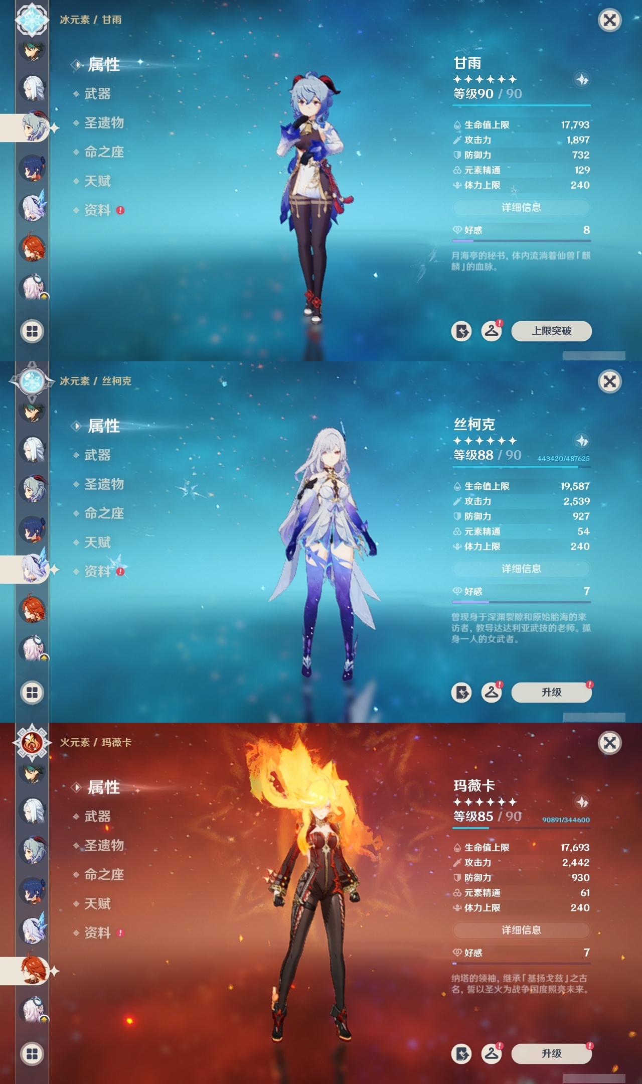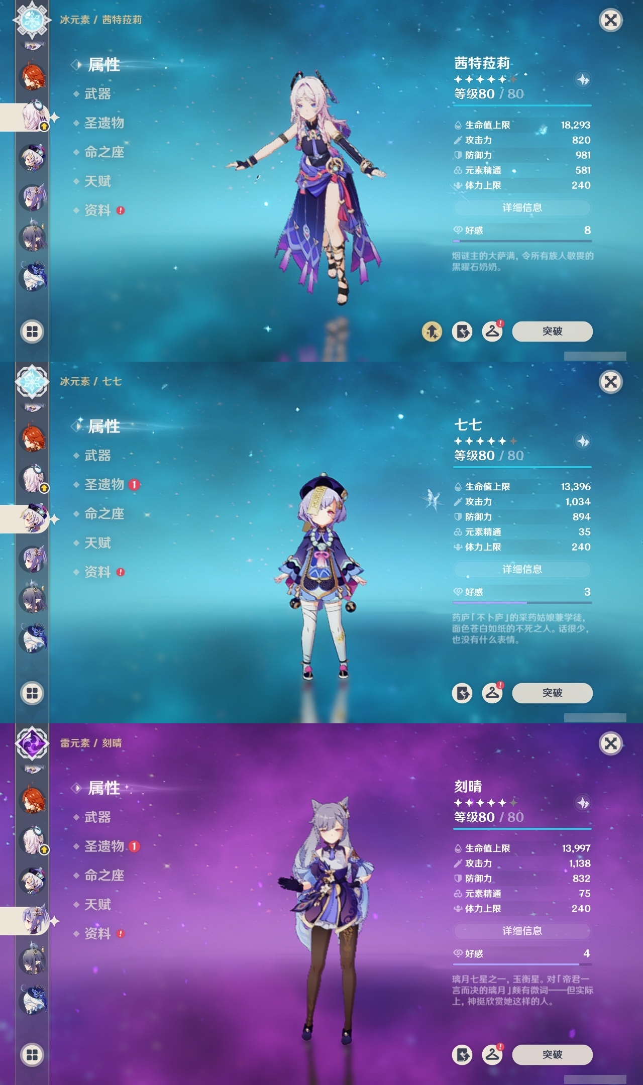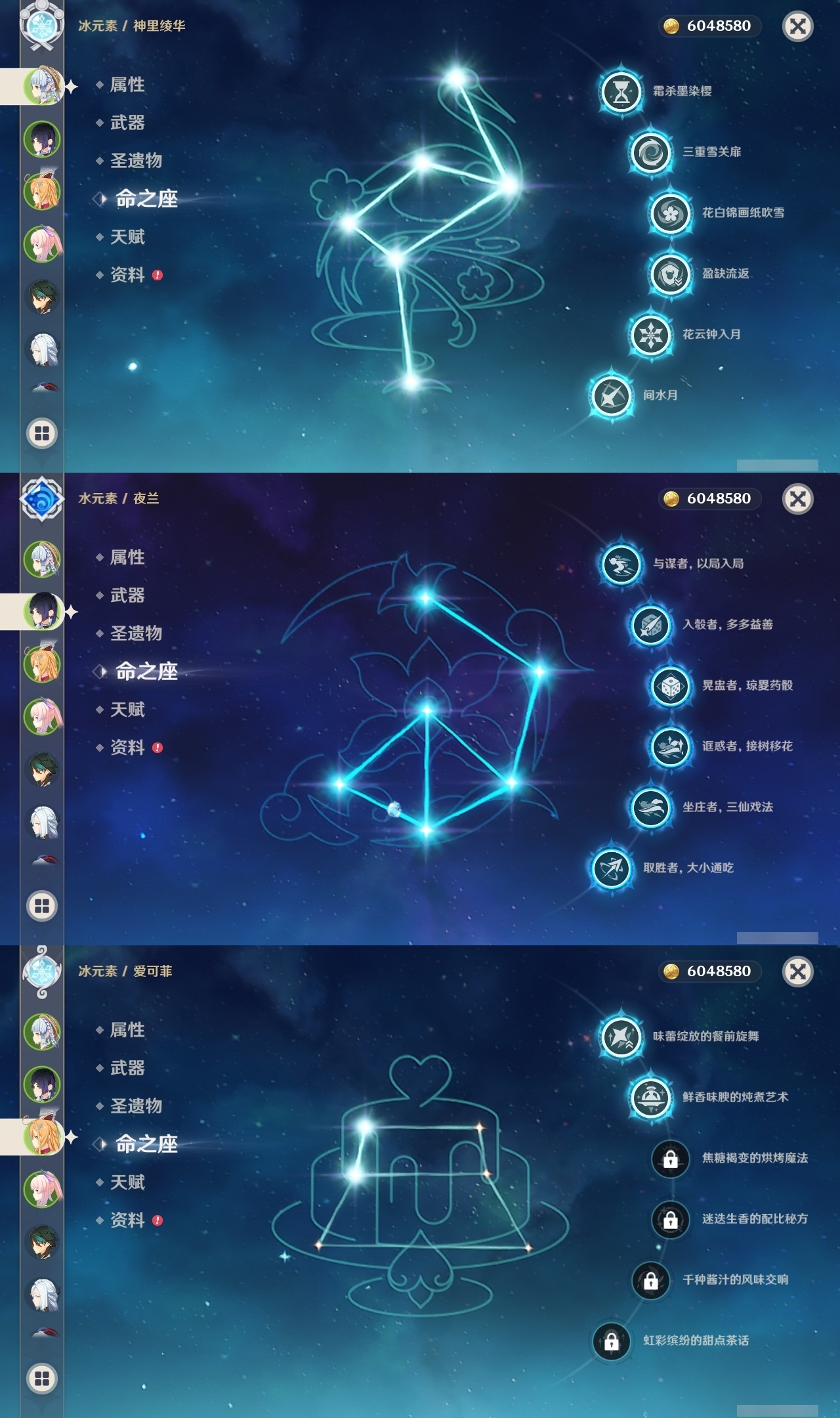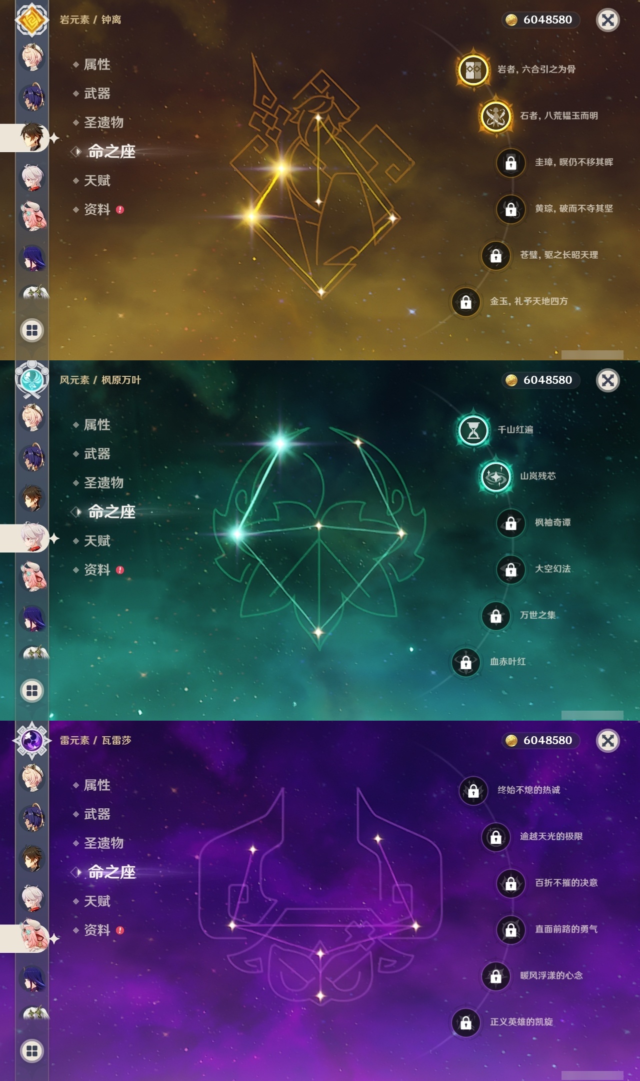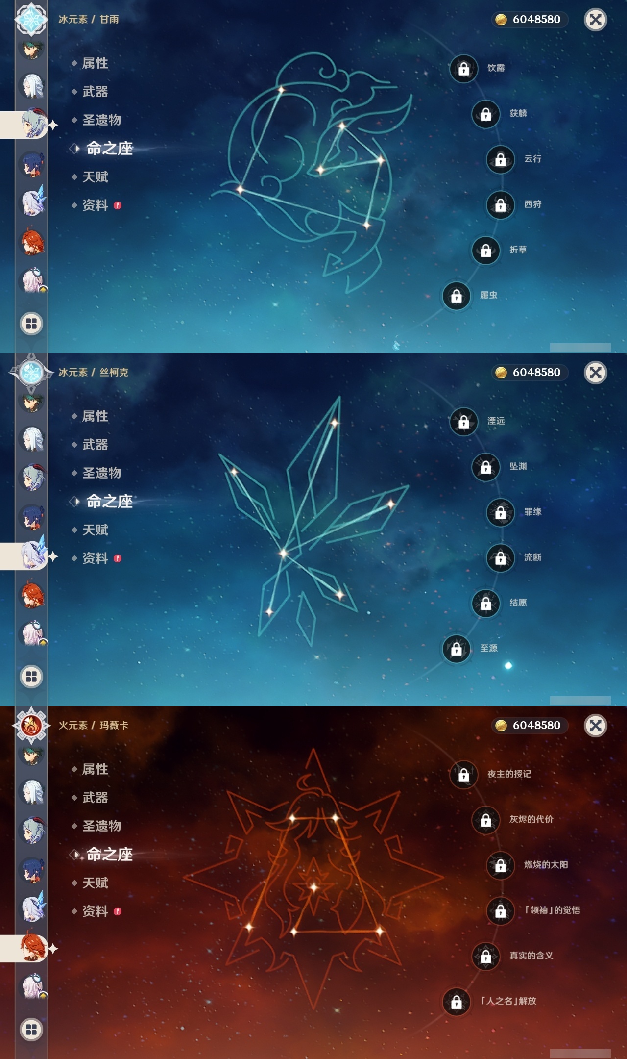 【原神】满命,冒险等级:60,五星数量:50,五星角色:雷电将军 6命七七 6命神里绫华 6命夜兰 6命纳西妲 6命迪卢克 5命爱可菲 2命枫原万叶 2命可莉 2命刻晴 2命琴 2命钟离 2命提纳里 2命妮露 2命梦见月瑞希 1命魈 1命莫娜 1命珊瑚宫心海希诺宁玛薇卡茜特菈莉宵宫申鹤瓦雷莎芙宁娜丝柯克菈乌玛甘雨__五星武器:天空之傲 2精雾切之回光 2精若水 2精溢彩心念裁断鹤鸣余音香韵奏者苍耀纺夜天镜不灭月华苍古自由之誓飞雷之弦振风鹰剑和璞鸢四风原典天空之脊天空之卷天空之翼薙草之稻光波乱月白经津圣显之钥千夜浮梦__四星角色:班尼特 6命行秋 6命九条裟罗 6命香菱 6命鹿野院平藏 6命凝光 6命迪奥娜 6命砂糖 6命瑶瑶 6命莱依拉 6命柯莱 6命芭芭拉 6命欧洛伦 6命云堇 6命早柚 6命托马 6命烟绯 6命辛焱 6命诺艾尔 6命罗莎莉亚 6命雷泽 6命菲谢尔 6命北斗 6命珐露珊 4命多莉 4命卡维 3命重云 3命久岐忍 2命坎蒂丝 2命夏沃蕾 2命伊法 2命塔利雅 2命爱诺 2命卡齐娜 1命蓝砚 1命五郎 1命琳妮特 1命赛索斯 1命嘉明伊安珊