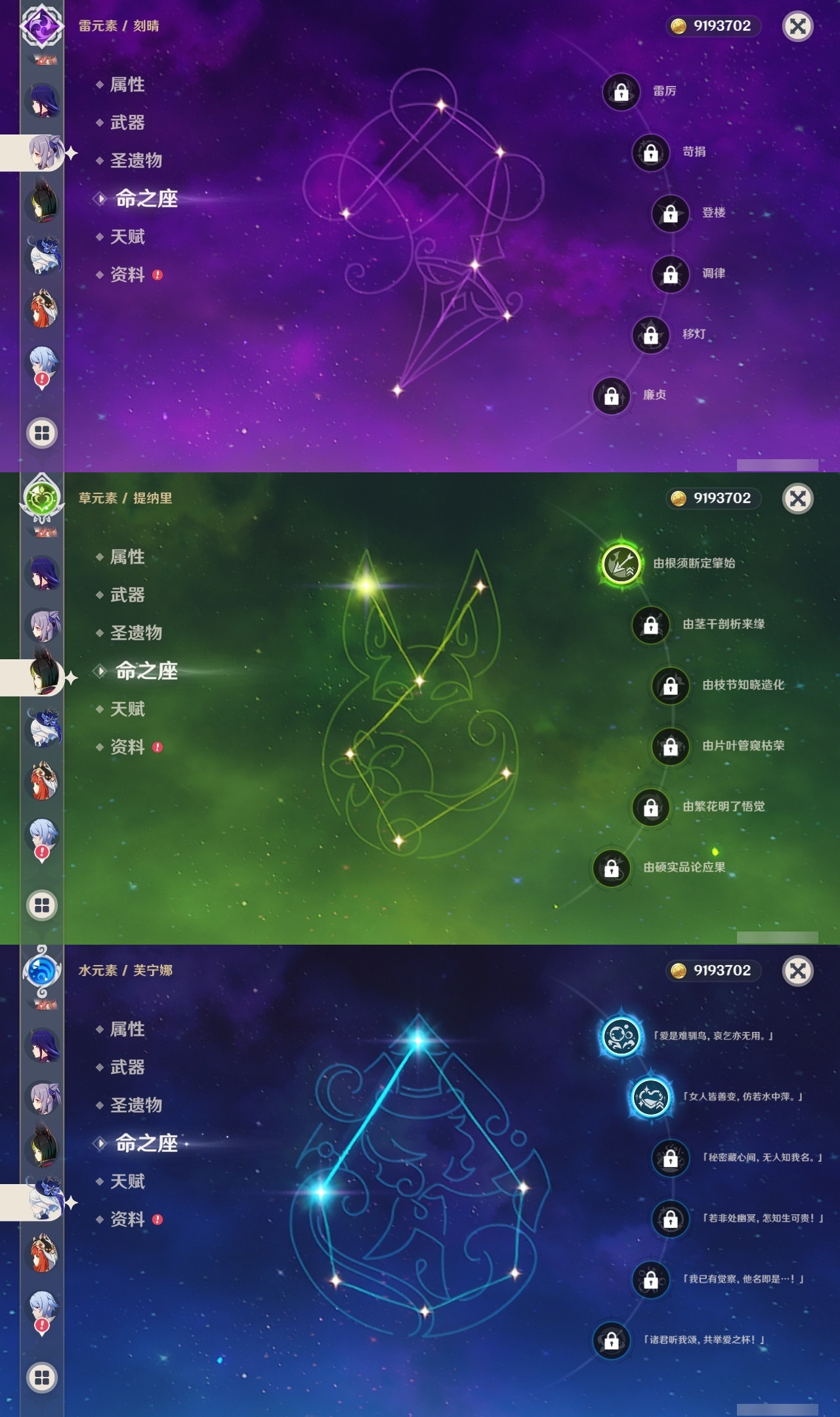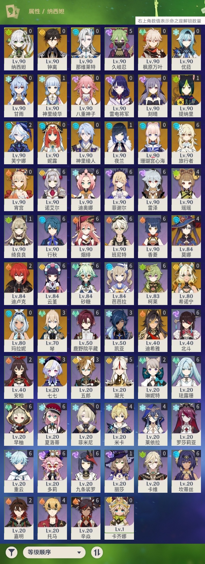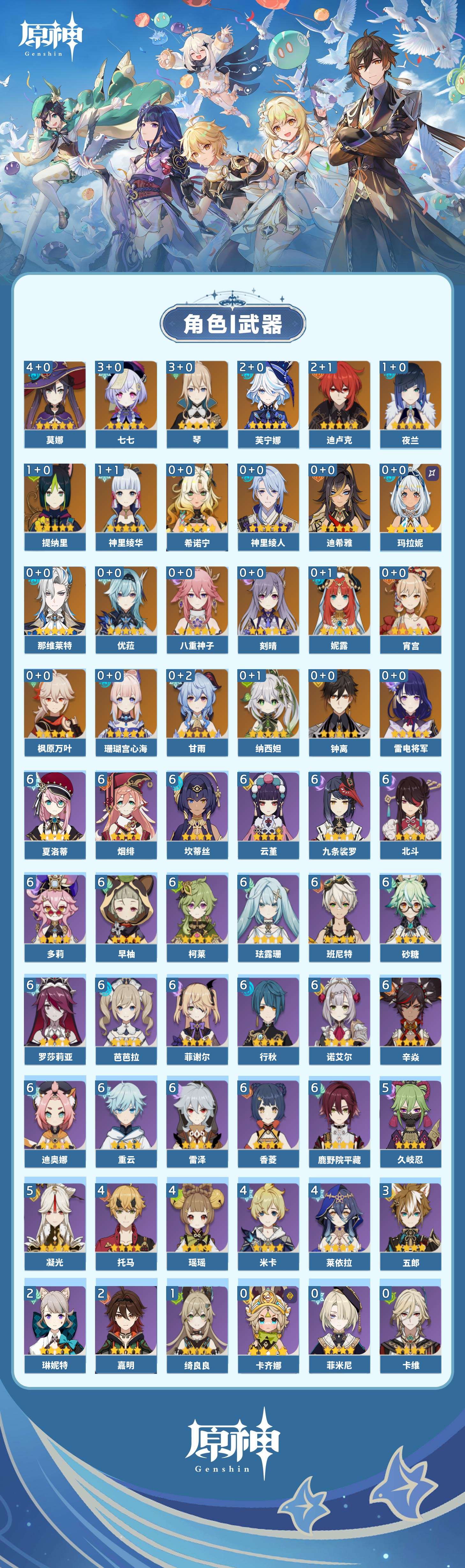 【原神】【lyys9347】冒险等级:60,五星数量:35,五星角色:莫娜 4命七七 3命琴 3命芙宁娜 2命迪卢克 2命神里绫华 1命夜兰 1命提纳里 1命玛拉妮珊瑚宫心海希诺宁宵宫优菈迪希雅钟离八重神子神里绫人那维莱特妮露纳西妲枫原万叶甘雨刻晴雷电将军__五星武器:阿莫斯之弓 2精风鹰剑狼的末路四风原典天空之刃天空之翼无工之剑雾切之回光圣显之钥千夜浮梦白雨心弦__四星角色:班尼特 6命行秋 6命九条裟罗 6命香菱 6命鹿野院平藏 6命珐露珊 6命迪奥娜 6命砂糖 6命坎蒂丝 6命多莉 6命柯莱 6命芭芭拉 6命云堇 6命早柚 6命烟绯 6命重云 6命辛焱 6命诺艾尔 6命罗莎莉亚 6命雷泽 6命菲谢尔 6命北斗 6命夏洛蒂 6命久岐忍 5命凝光 5命瑶瑶 4命莱依拉 4命米卡 4命托马 4命五郎 3命琳妮特 2命嘉明 2命绮良良 1命卡齐娜卡维菲米尼