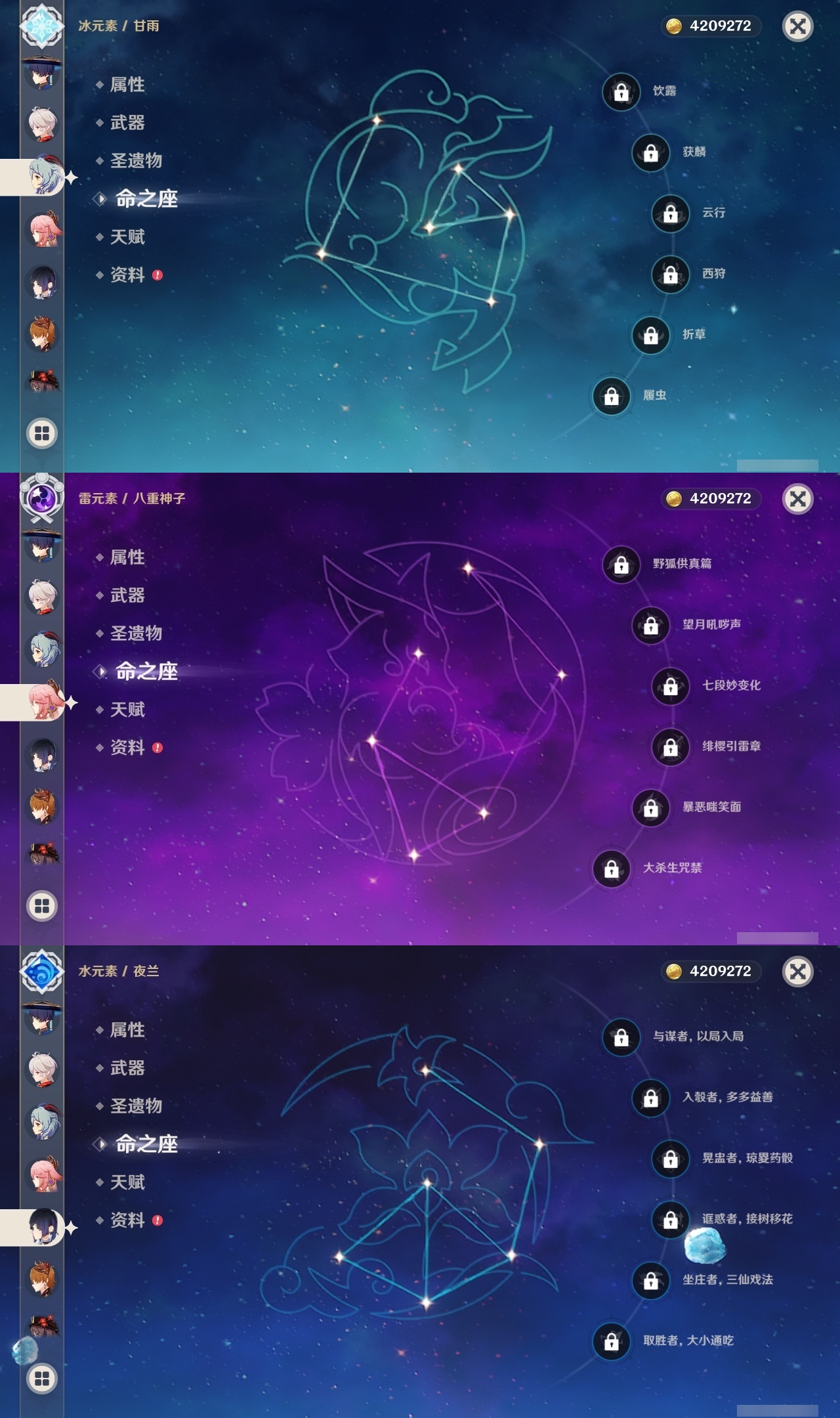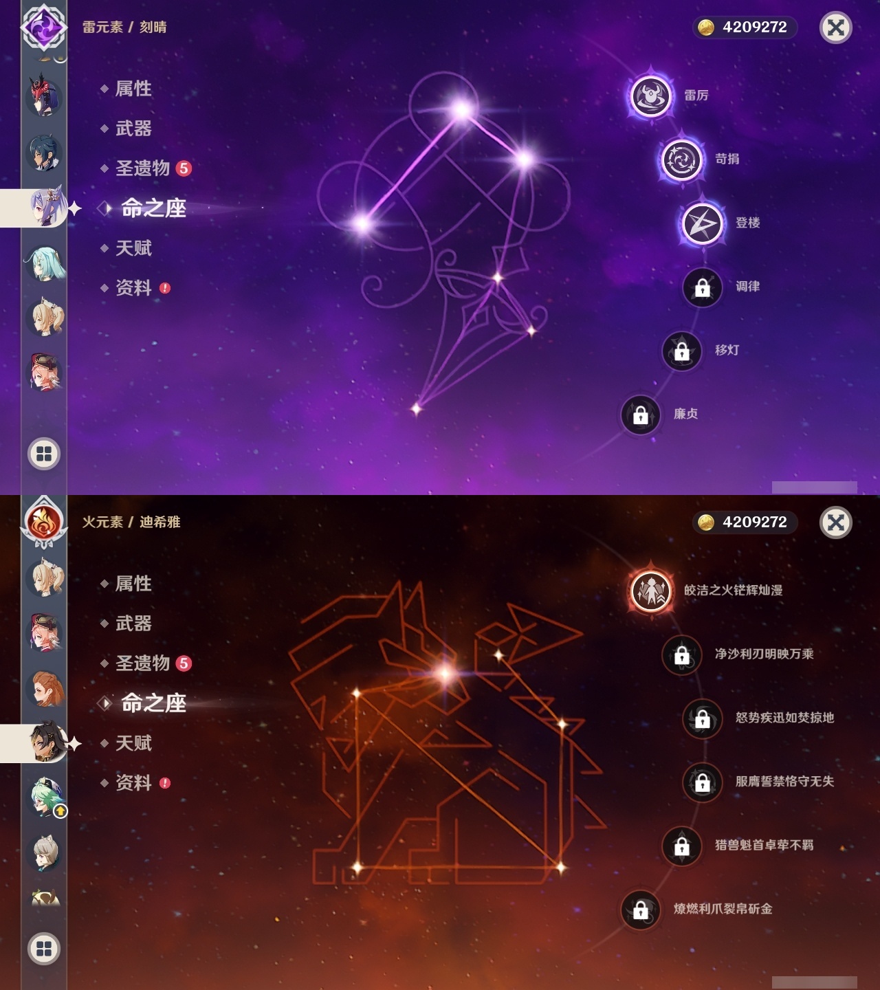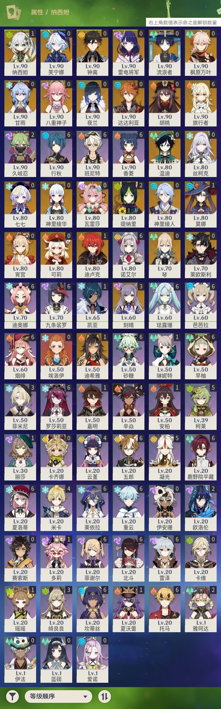 【原神】【lyys9457】冒险等级:59,五星数量:45,五星角色:刻晴 3命提纳里 2命迪希雅 1命迪卢克 1命莫娜 1命纳西妲 1命七七琴神里绫华温迪宵宫钟离达达利亚瓦雷莎八重神子神里绫人莱欧斯利夜兰芙宁娜丝柯克流浪者枫原万叶甘雨胡桃可莉雷电将军__五星武器:溢彩心念 3精金流监督 2精碧落之珑静水流涌之辉裁断苍耀阿莫斯之弓飞雷之弦振风鹰剑护摩之杖狼的末路天空之傲天空之卷天空之刃天空之翼冬极白星神乐之真意千夜浮梦__四星角色:班尼特 6命行秋 6命九条裟罗 6命香菱 6命鹿野院平藏 6命珐露珊 6命迪奥娜 6命砂糖 6命莱依拉 6命坎蒂丝 6命芭芭拉 6命早柚 6命托马 6命五郎 6命烟绯 6命重云 6命诺艾尔 6命罗莎莉亚 6命雷泽 6命菲谢尔 6命北斗 6命夏洛蒂 6命凝光 5命柯莱 5命米卡 4命云堇 4命辛焱 4命绮良良 3命菲米尼 3命久岐忍 2命欧洛伦 2命瑶瑶 1命多莉 1命琳妮特 1命夏沃蕾 1命嘉明 1命埃洛伊卡齐娜卡维蓝砚伊法伊安珊爱诺赛索斯