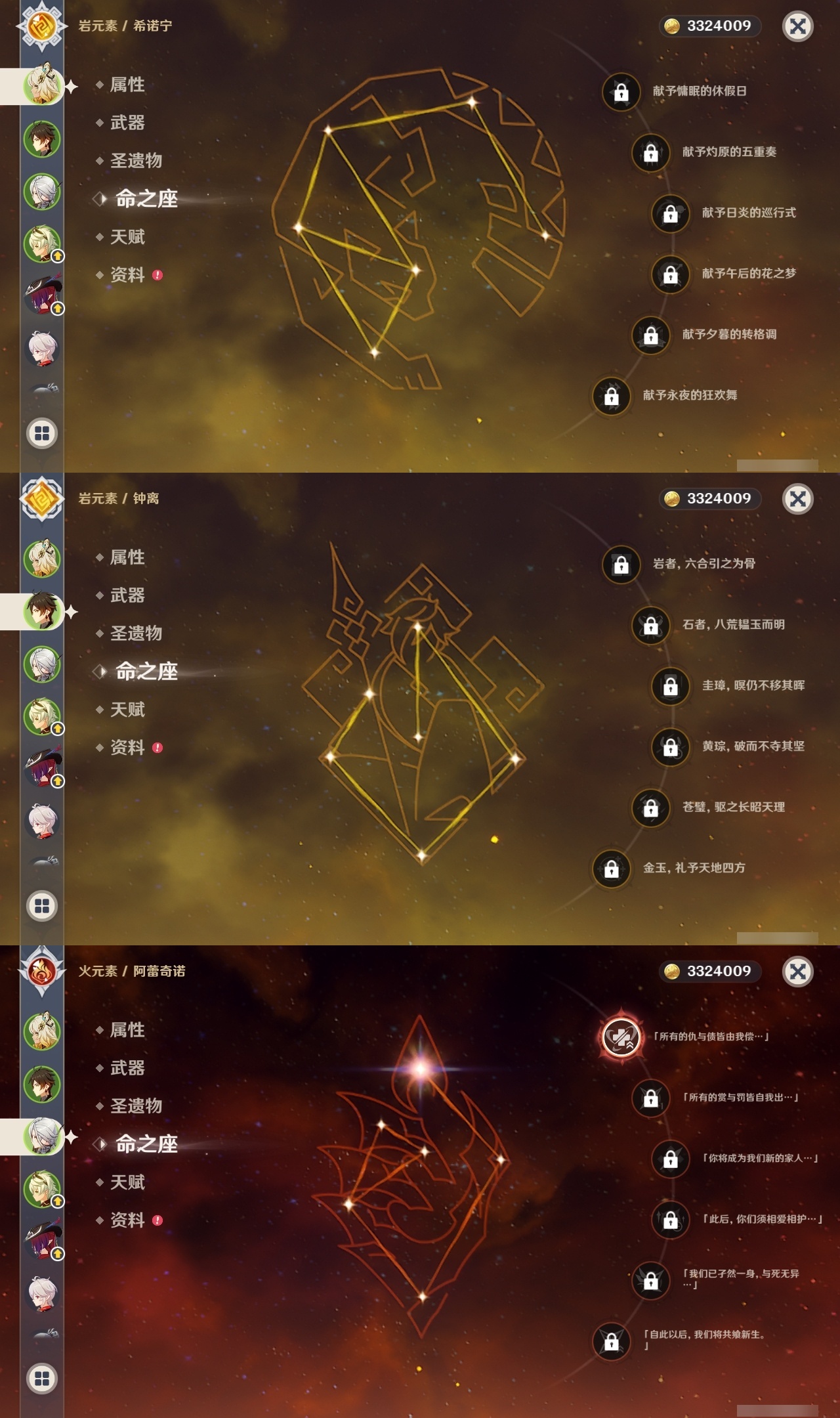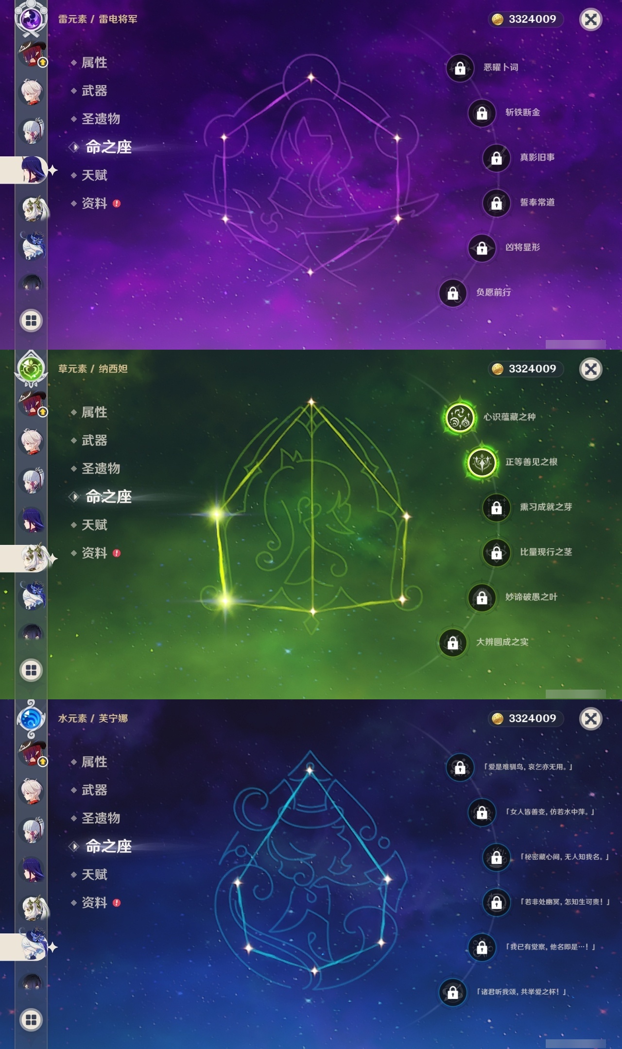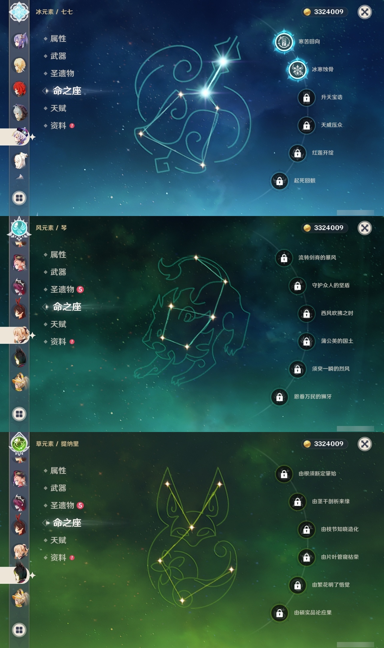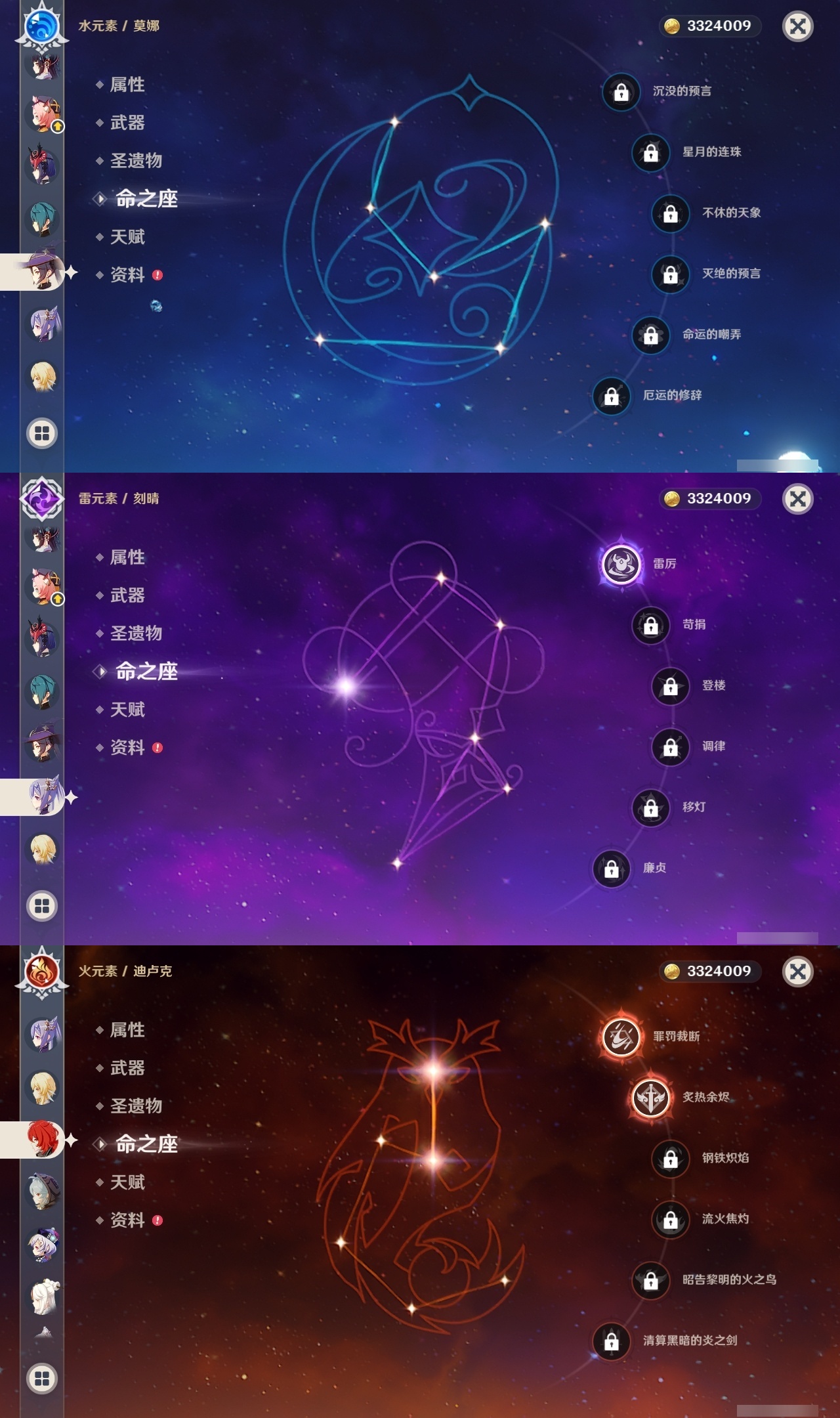 【原神】【lyys9592】冒险等级:59,五星数量:33,五星角色:迪卢克 2命七七 2命纳西妲 2命阿蕾奇诺 1命刻晴 1命莫娜琴希诺宁神里绫华温迪恰斯卡宵宫钟离达达利亚夜兰芙宁娜提纳里妮露流浪者枫原万叶雷电将军__五星武器:星鹫赤羽赤月之形飞雷之弦振风鹰剑和璞鸢四风原典天空之傲天空之卷天空之翼雾切之回光若水千夜浮梦__四星角色:班尼特 6命行秋 6命香菱 6命久岐忍 6命凝光 6命多莉 6命柯莱 6命芭芭拉 6命托马 6命辛焱 6命诺艾尔 6命罗莎莉亚 6命菲谢尔 6命北斗 6命莱依拉 5命重云 5命雷泽 5命琳妮特 5命九条裟罗 4命鹿野院平藏 4命珐露珊 4命五郎 3命卡齐娜 2命欧洛伦 2命云堇 2命早柚 2命烟绯 2命夏沃蕾 2命迪奥娜 1命砂糖 1命蓝砚 1命夏洛蒂 1命瑶瑶米卡坎蒂丝塔利雅赛索斯