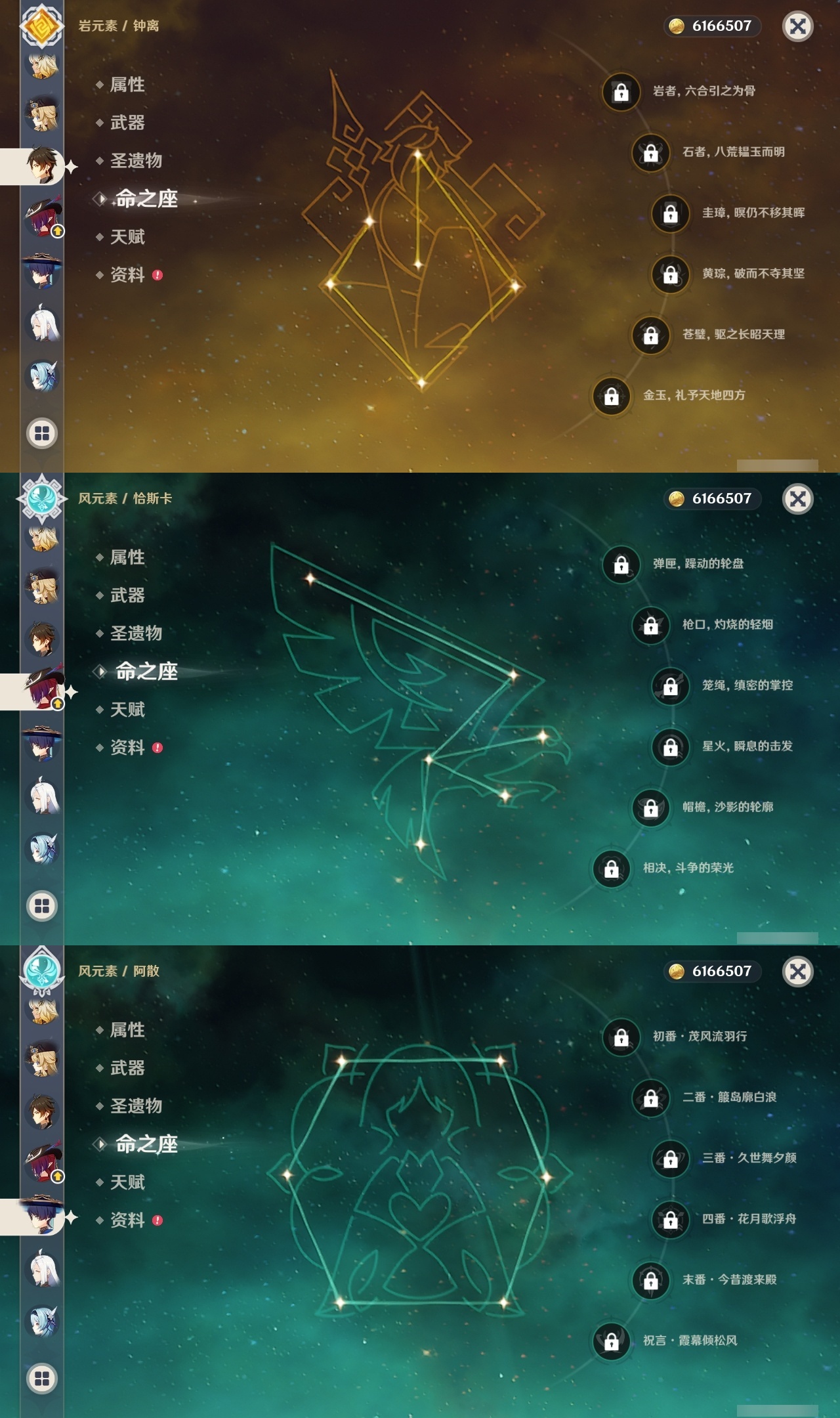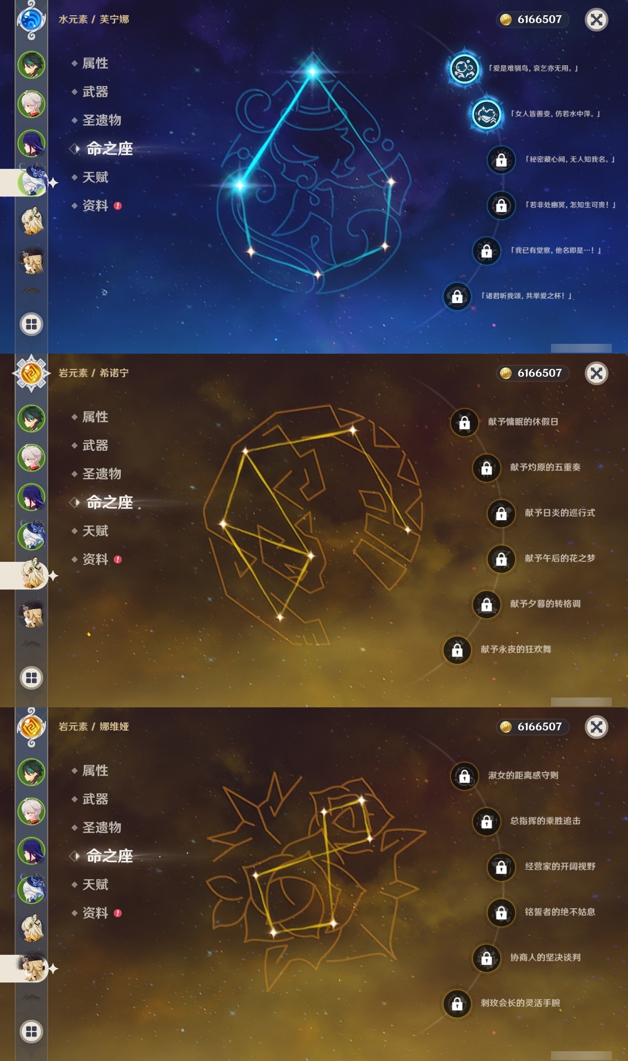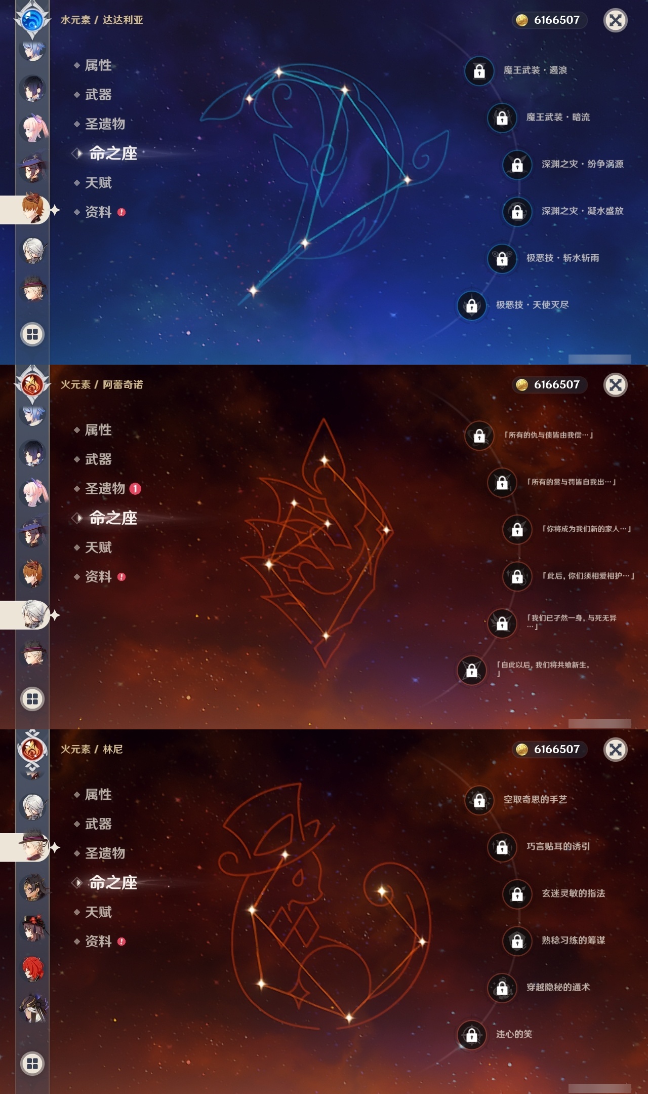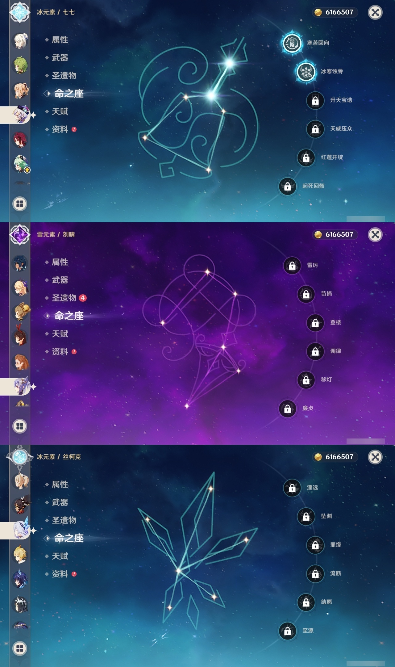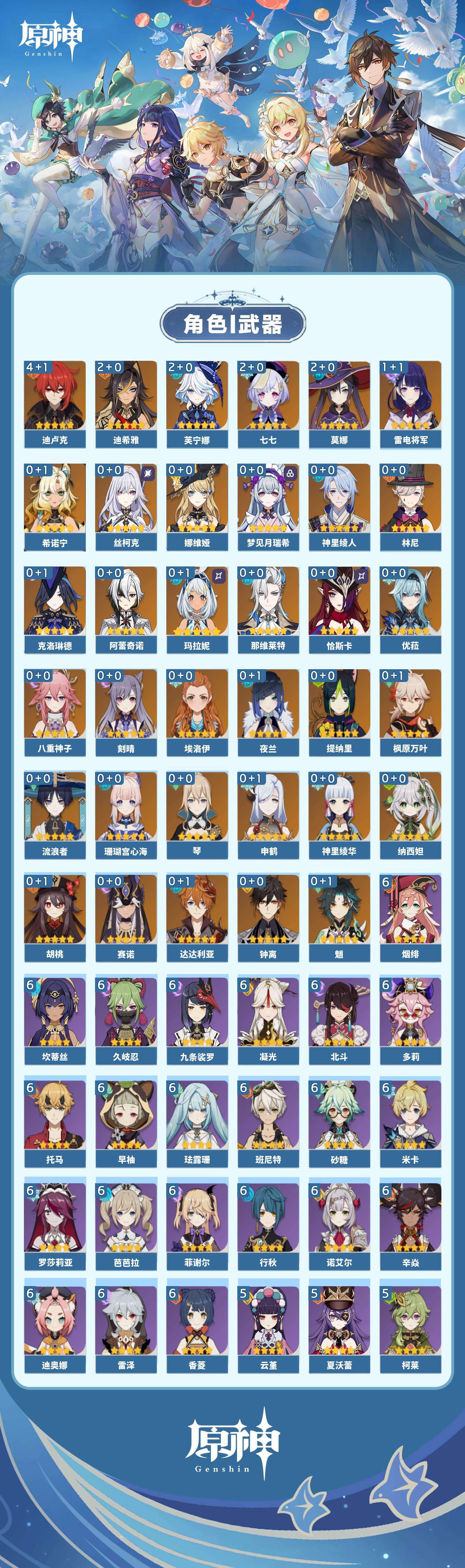 【原神】【lyys9723】冒险等级:60,五星数量:51,五星角色:迪卢克 4命迪希雅 2命芙宁娜 2命莫娜 2命七七 2命雷电将军 1命玛拉妮琴珊瑚宫心海希诺宁神里绫华恰斯卡优菈钟离达达利亚梦见月瑞希申鹤八重神子神里绫人林尼那维莱特夜兰娜维娅提纳里赛诺阿蕾奇诺丝柯克纳西妲流浪者枫原万叶魈胡桃克洛琳德刻晴__五星武器:四风原典 2精冲浪时光岩峰巡歌阿莫斯之弓苍古自由之誓风鹰剑和璞鸢护摩之杖狼的末路天空之傲天空之脊薙草之稻光冬极白星息灾若水赦罪__四星角色:班尼特 6命行秋 6命九条裟罗 6命香菱 6命久岐忍 6命珐露珊 6命凝光 6命迪奥娜 6命砂糖 6命米卡 6命坎蒂丝 6命多莉 6命芭芭拉 6命早柚 6命托马 6命烟绯 6命辛焱 6命诺艾尔 6命罗莎莉亚 6命雷泽 6命菲谢尔 6命北斗 6命绮良良 5命柯莱 5命云堇 5命夏沃蕾 5命卡齐娜 4命五郎 4命重云 4命琳妮特 4命夏洛蒂 4命莱依拉 3命卡维 3命蓝砚 2命爱诺 2命赛索斯 2命瑶瑶 1命菲米尼 1命嘉明 1命埃洛伊鹿野院平藏欧洛伦伊安珊
