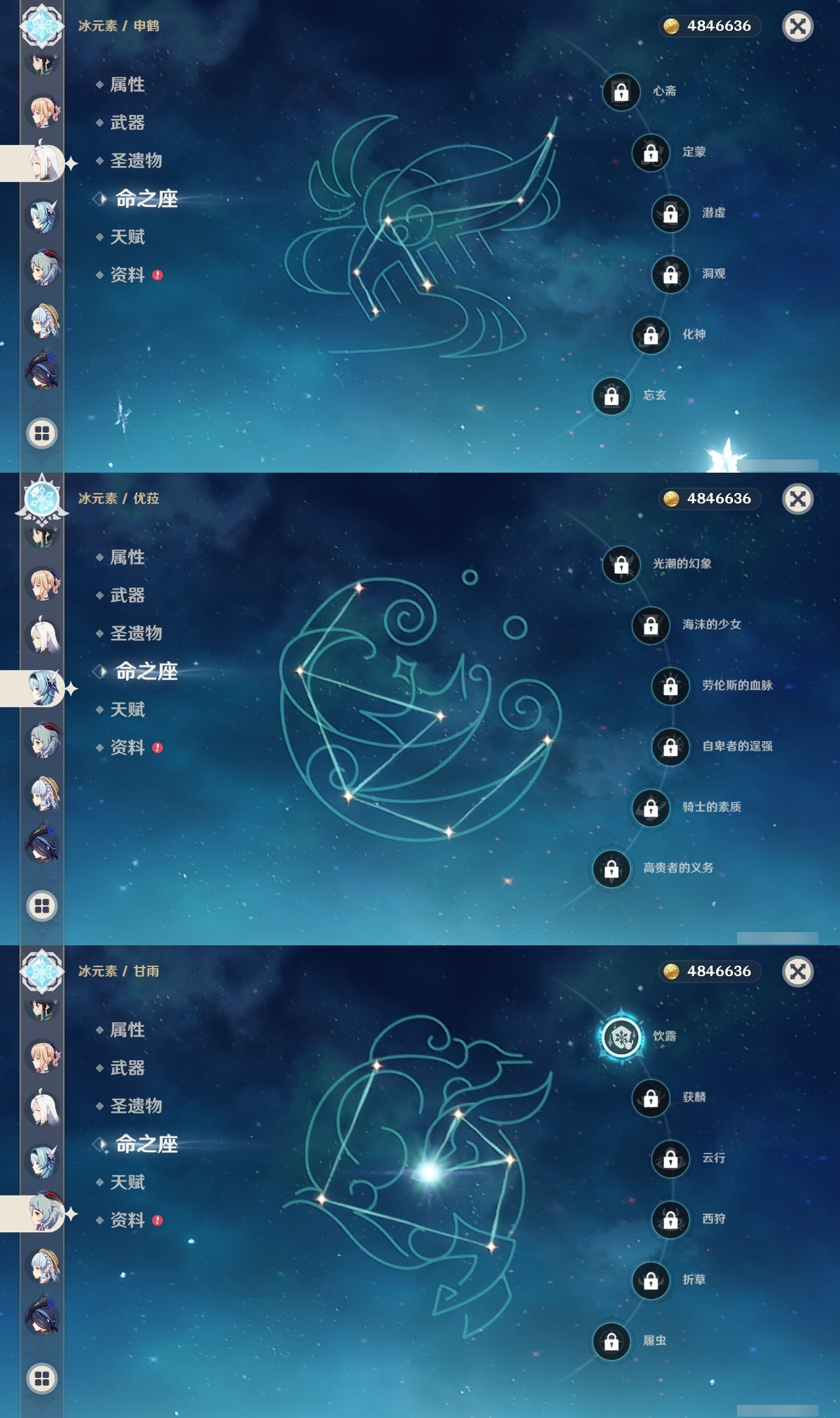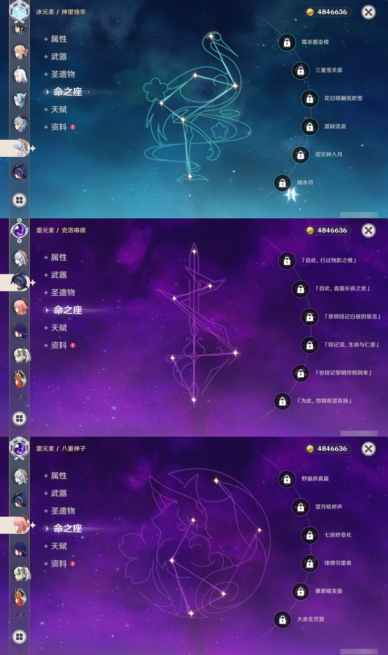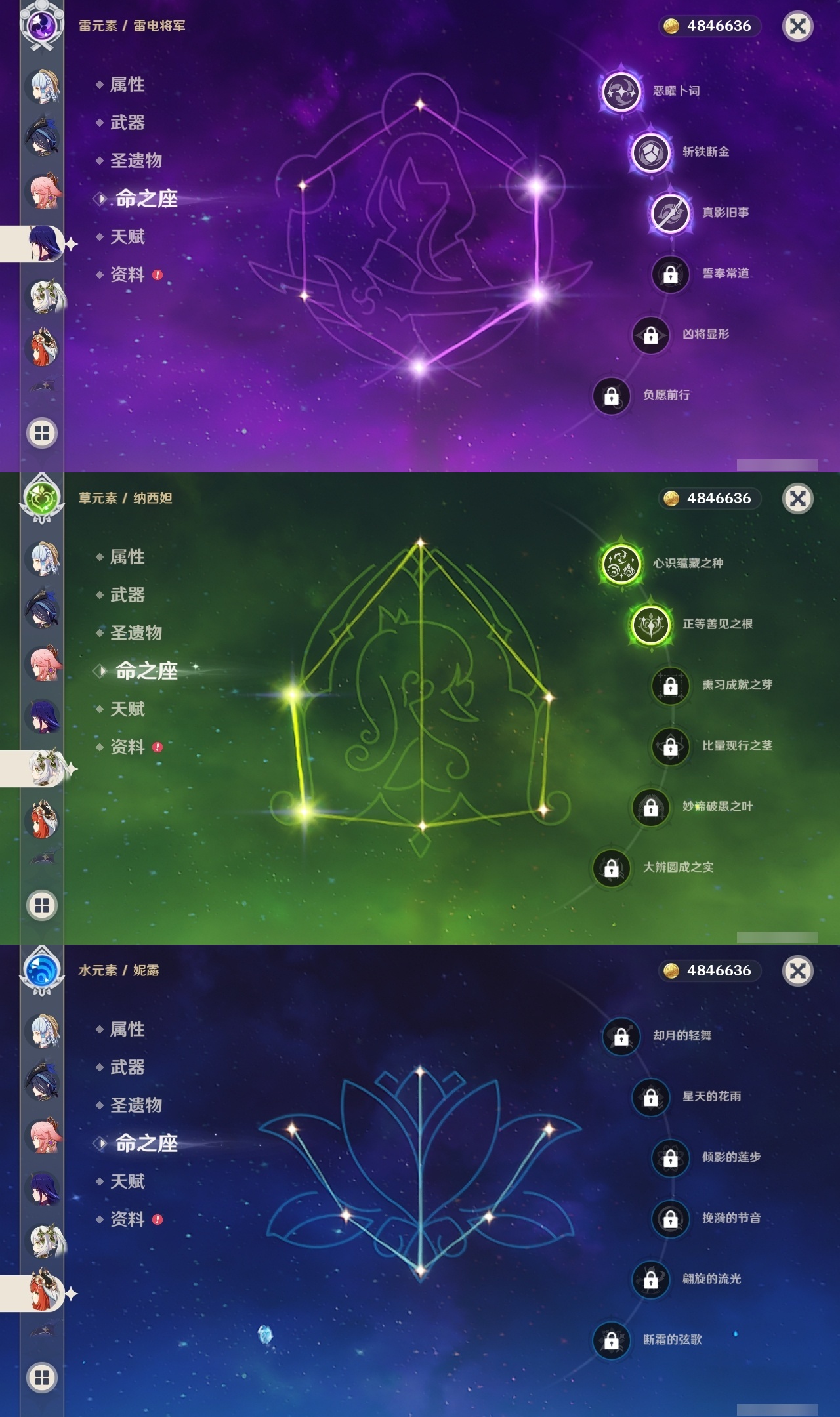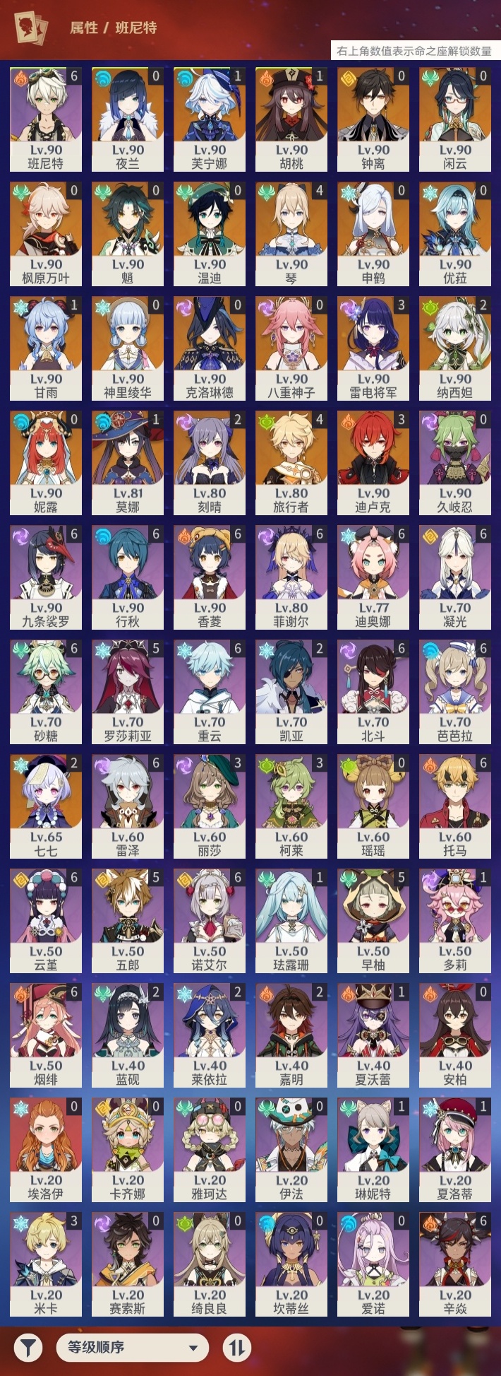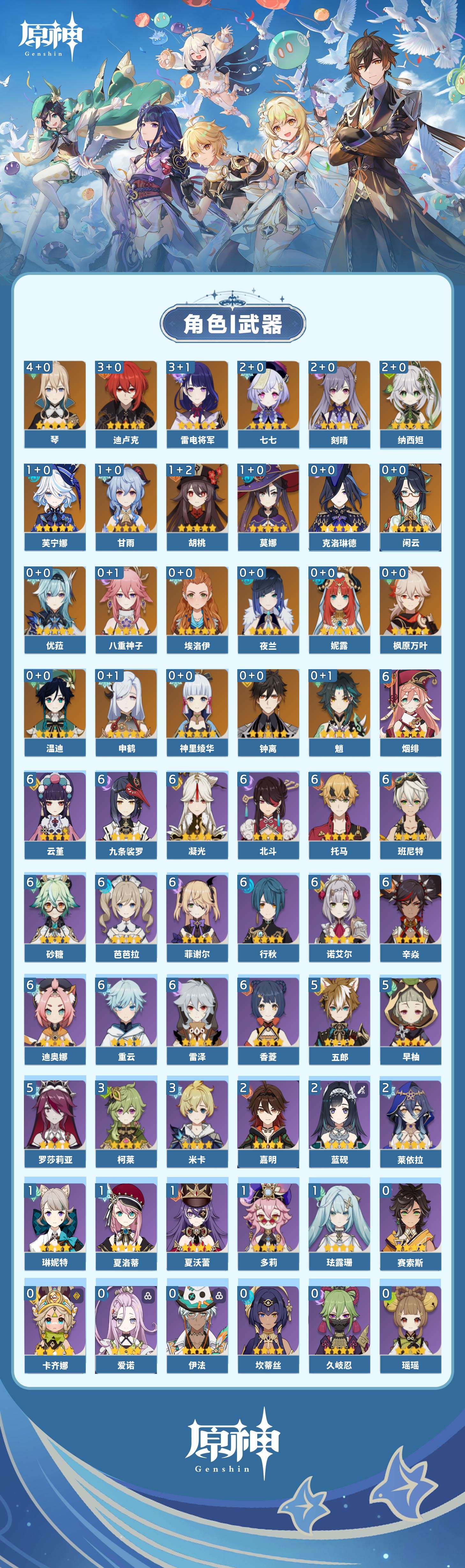 【原神】【lyys9734】冒险等级:60,五星数量:32,五星角色:琴 4命迪卢克 3命雷电将军 3命刻晴 2命七七 2命纳西妲 2命芙宁娜 1命甘雨 1命胡桃 1命莫娜 1命神里绫华温迪优菈钟离申鹤八重神子夜兰闲云妮露枫原万叶魈克洛琳德__五星武器:护摩之杖 2精四风原典 2精和璞鸢天空之傲天空之脊天空之刃薙草之稻光息灾神乐之真意__四星角色:班尼特 6命行秋 6命九条裟罗 6命香菱 6命凝光 6命迪奥娜 6命砂糖 6命芭芭拉 6命云堇 6命托马 6命烟绯 6命重云 6命辛焱 6命诺艾尔 6命雷泽 6命菲谢尔 6命北斗 6命早柚 5命五郎 5命罗莎莉亚 5命米卡 3命柯莱 3命莱依拉 2命蓝砚 2命嘉明 2命珐露珊 1命多莉 1命琳妮特 1命夏洛蒂 1命夏沃蕾 1命埃洛伊卡齐娜久岐忍绮良良瑶瑶坎蒂丝伊法爱诺赛索斯