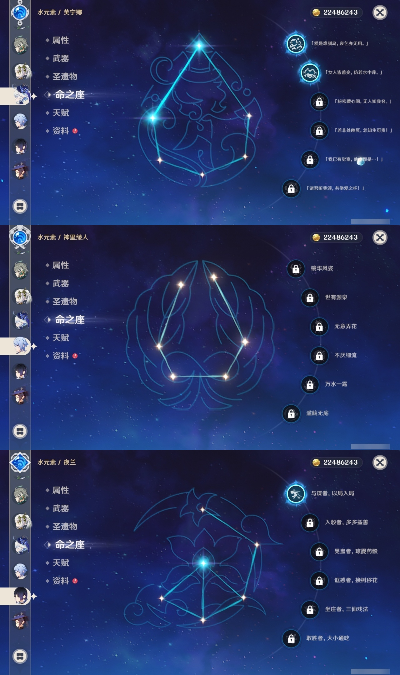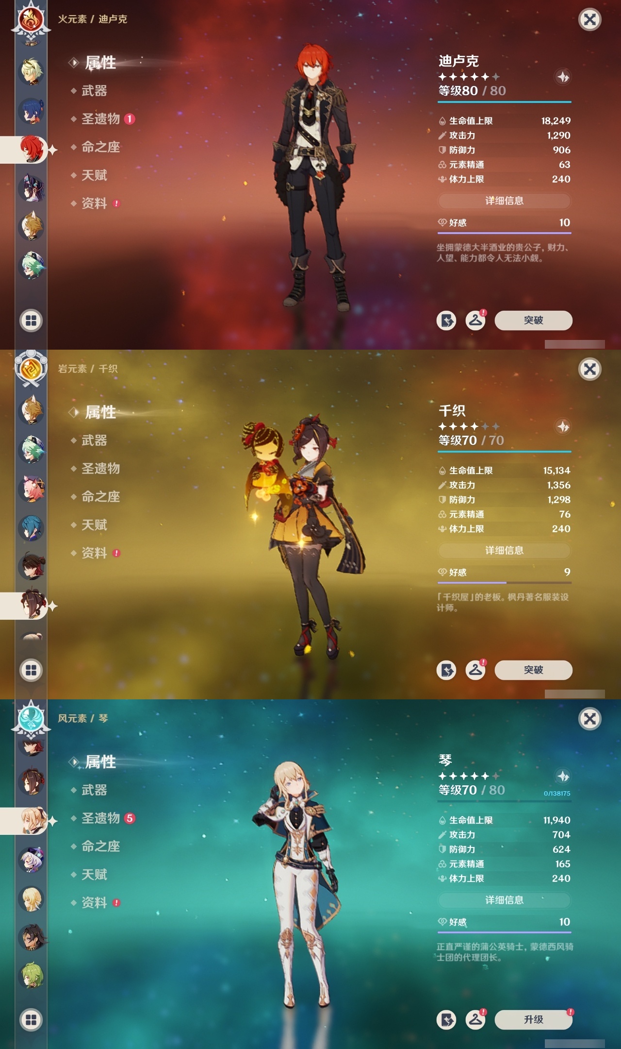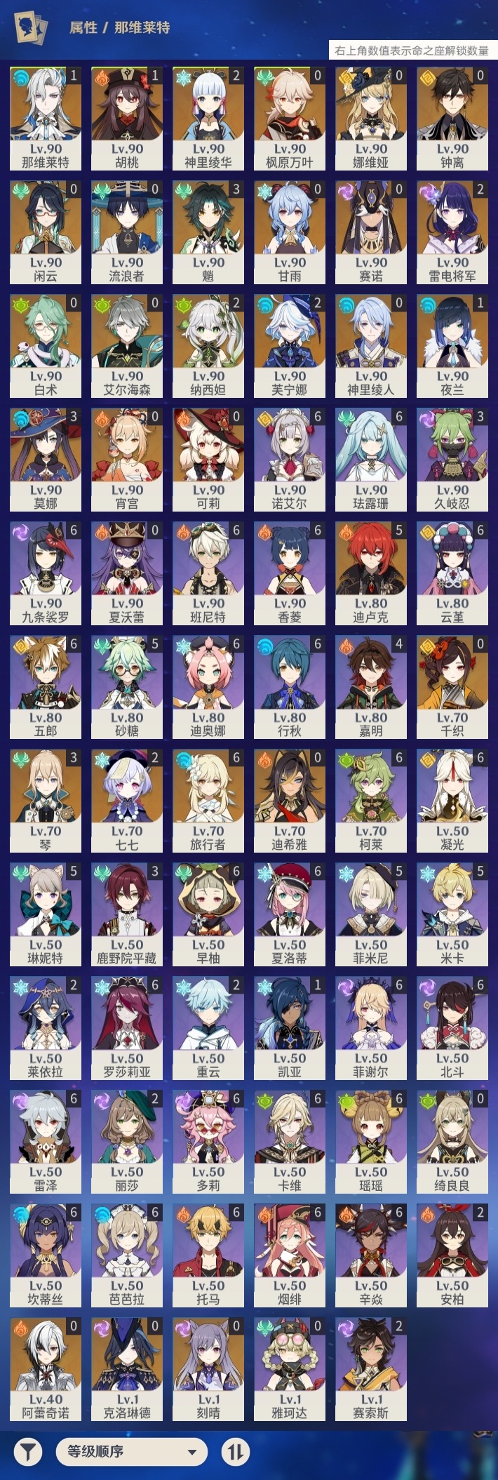 【原神】【lyys9758】冒险等级:60,五星数量:46,五星角色:迪卢克 5命魈 3命莫娜 3命琴 3命芙宁娜 2命雷电将军 2命七七 2命神里绫华 2命纳西妲 2命那维莱特 1命胡桃 1命夜兰 1命白术宵宫迪希雅钟离神里绫人娜维娅闲云千织赛诺阿蕾奇诺艾尔海森流浪者枫原万叶甘雨克洛琳德可莉刻晴__五星武器:苇海信标万世流涌大典鹤鸣余音阿莫斯之弓苍古自由之誓飞雷之弦振和璞鸢护摩之杖天空之傲天空之刃天空之翼雾切之回光薙草之稻光终末嗟叹之诗若水赤沙之杖千夜浮梦__四星角色:班尼特 6命行秋 6命九条裟罗 6命香菱 6命珐露珊 6命凝光 6命迪奥娜 6命瑶瑶 6命坎蒂丝 6命多莉 6命柯莱 6命卡维 6命芭芭拉 6命云堇 6命早柚 6命托马 6命五郎 6命烟绯 6命辛焱 6命诺艾尔 6命罗莎莉亚 6命雷泽 6命菲谢尔 6命北斗 6命夏洛蒂 6命砂糖 5命米卡 5命菲米尼 5命琳妮特 5命嘉明 4命久岐忍 3命鹿野院平藏 3命莱依拉 2命重云 2命赛索斯 2命绮良良夏沃蕾