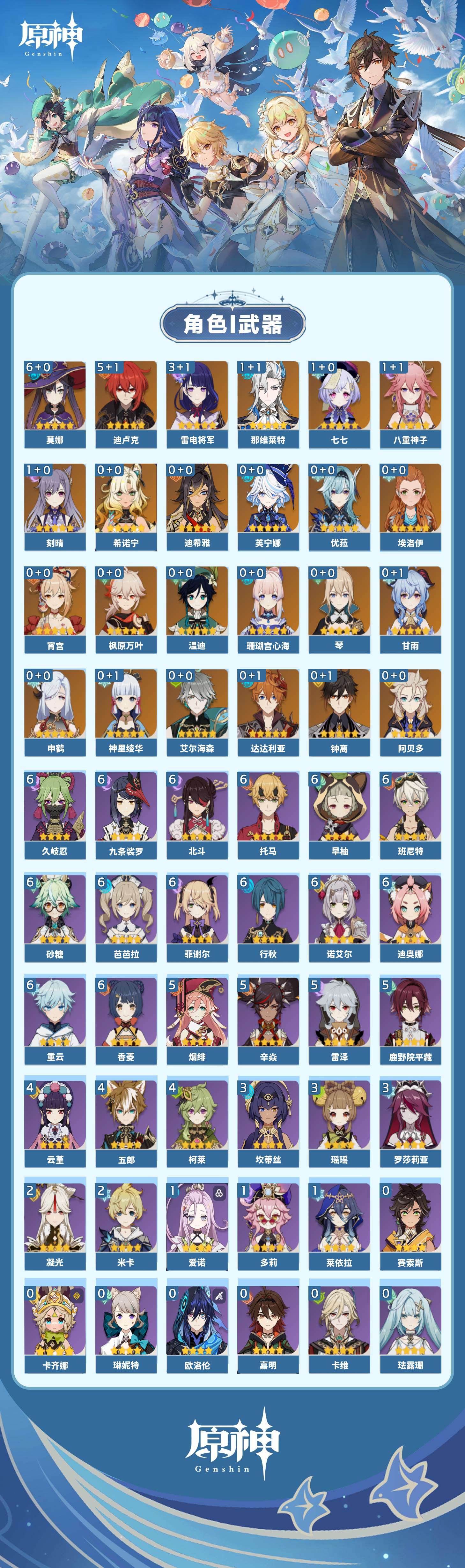 【原神】【lyys9764】冒险等级:60,五星数量:36,五星角色:莫娜 6命迪卢克 5命雷电将军 3命那维莱特 1命刻晴 1命七七 1命八重神子 1命琴珊瑚宫心海希诺宁神里绫华温迪宵宫优菈迪希雅钟离达达利亚申鹤阿贝多芙宁娜艾尔海森枫原万叶甘雨__五星武器:万世流涌大典阿莫斯之弓风鹰剑和璞鸢狼的末路天空之卷天空之刃雾切之回光薙草之稻光冬极白星神乐之真意贯虹之槊__四星角色:班尼特 6命行秋 6命九条裟罗 6命香菱 6命久岐忍 6命迪奥娜 6命砂糖 6命芭芭拉 6命早柚 6命托马 6命重云 6命诺艾尔 6命菲谢尔 6命北斗 6命鹿野院平藏 5命烟绯 5命辛焱 5命雷泽 5命柯莱 4命云堇 4命五郎 4命瑶瑶 3命坎蒂丝 3命罗莎莉亚 3命凝光 2命米卡 2命莱依拉 1命多莉 1命爱诺 1命埃洛伊卡齐娜珐露珊卡维欧洛伦琳妮特嘉明赛索斯