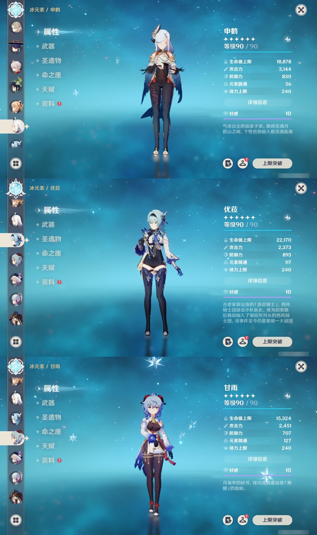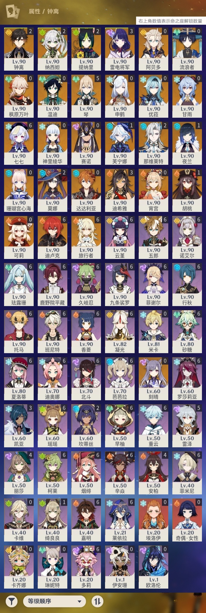 【原神】【lyys9779】冒险等级:60,五星数量:45,五星角色:迪卢克 6命七七 6命琴 5命迪希雅 3命雷电将军 3命那维莱特 2命莫娜 2命钟离 2命提纳里 2命纳西妲 2命芙宁娜 1命胡桃 1命夜兰 1命珊瑚宫心海神里绫华温迪宵宫优菈达达利亚申鹤阿贝多赛诺流浪者枫原万叶甘雨可莉刻晴__五星武器:阿莫斯之弓 3精风鹰剑 2精天空之傲 2精万世流涌大典苍古自由之誓飞雷之弦振护摩之杖狼的末路四风原典松籁响起之时无工之剑雾切之回光薙草之稻光若水猎人之径千夜浮梦__四星角色:班尼特 6命行秋 6命九条裟罗 6命香菱 6命久岐忍 6命鹿野院平藏 6命珐露珊 6命凝光 6命迪奥娜 6命砂糖 6命瑶瑶 6命莱依拉 6命多莉 6命柯莱 6命芭芭拉 6命云堇 6命早柚 6命托马 6命五郎 6命烟绯 6命重云 6命辛焱 6命诺艾尔 6命罗莎莉亚 6命菲谢尔 6命北斗 6命菲米尼 6命夏洛蒂 6命嘉明 6命雷泽 5命坎蒂丝 2命绮良良 1命埃洛伊奇偶·女性卡齐娜米卡卡维欧洛伦琳妮特伊安珊