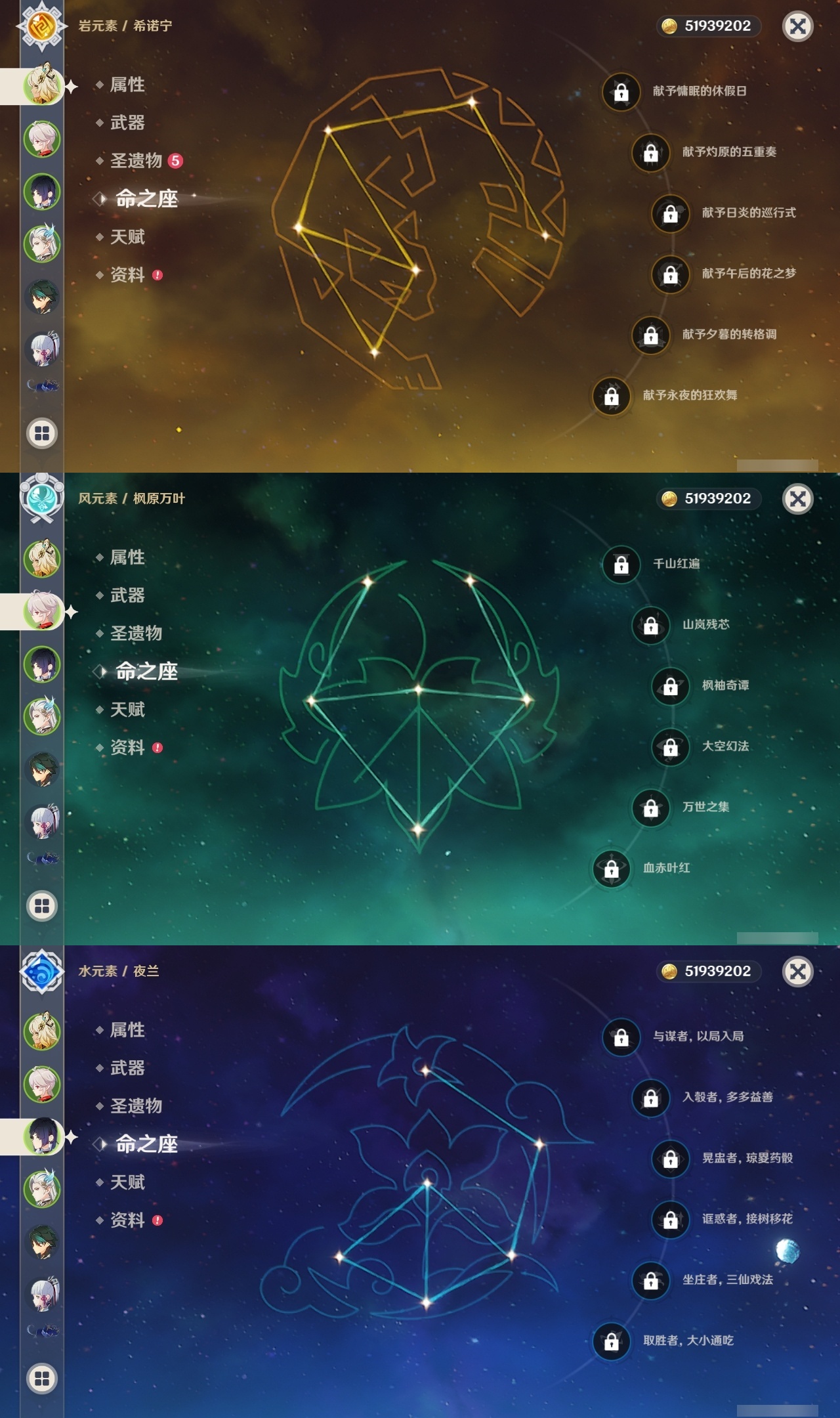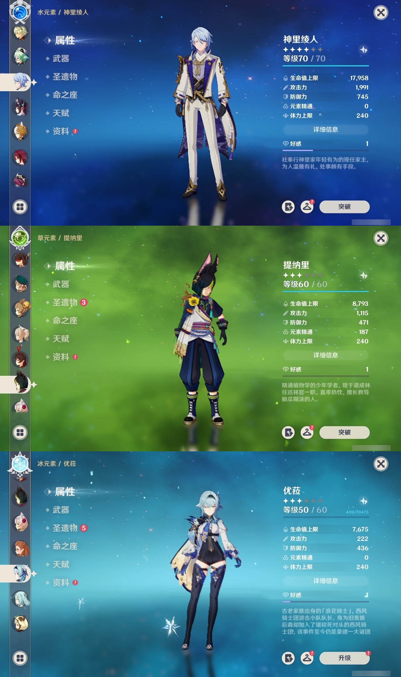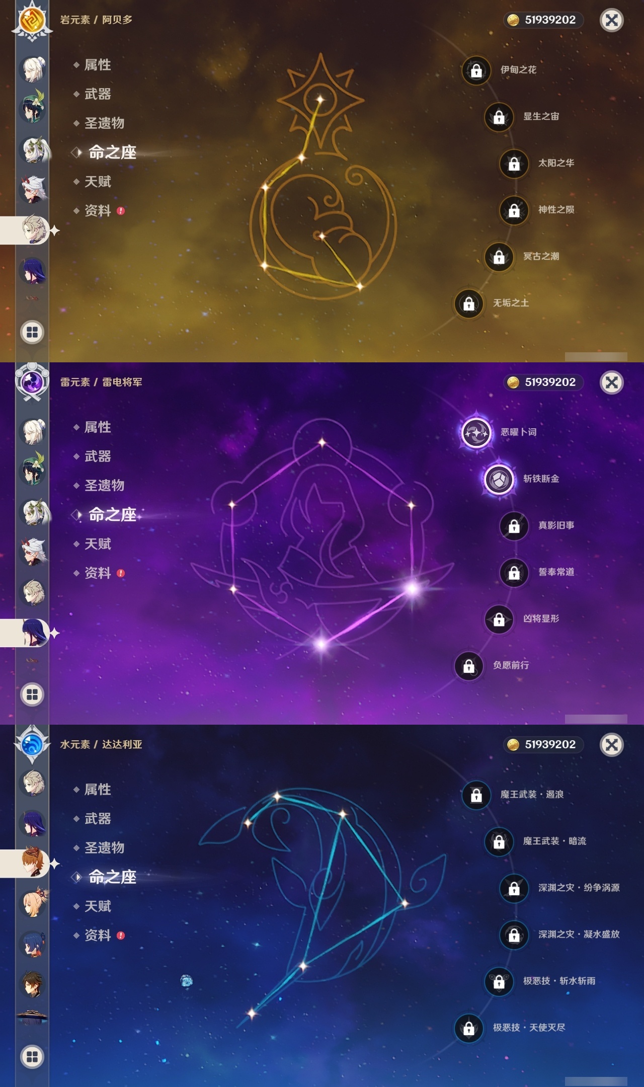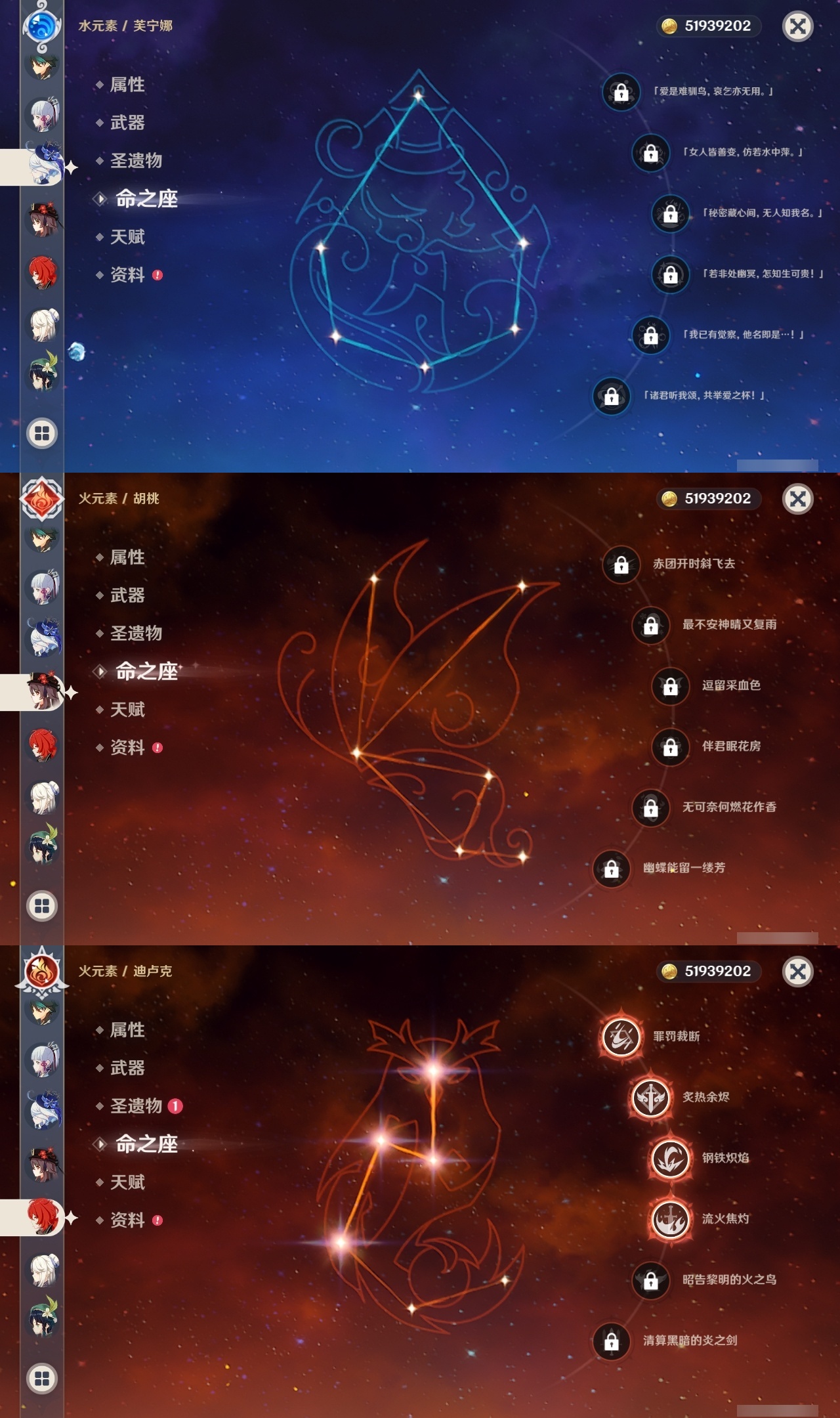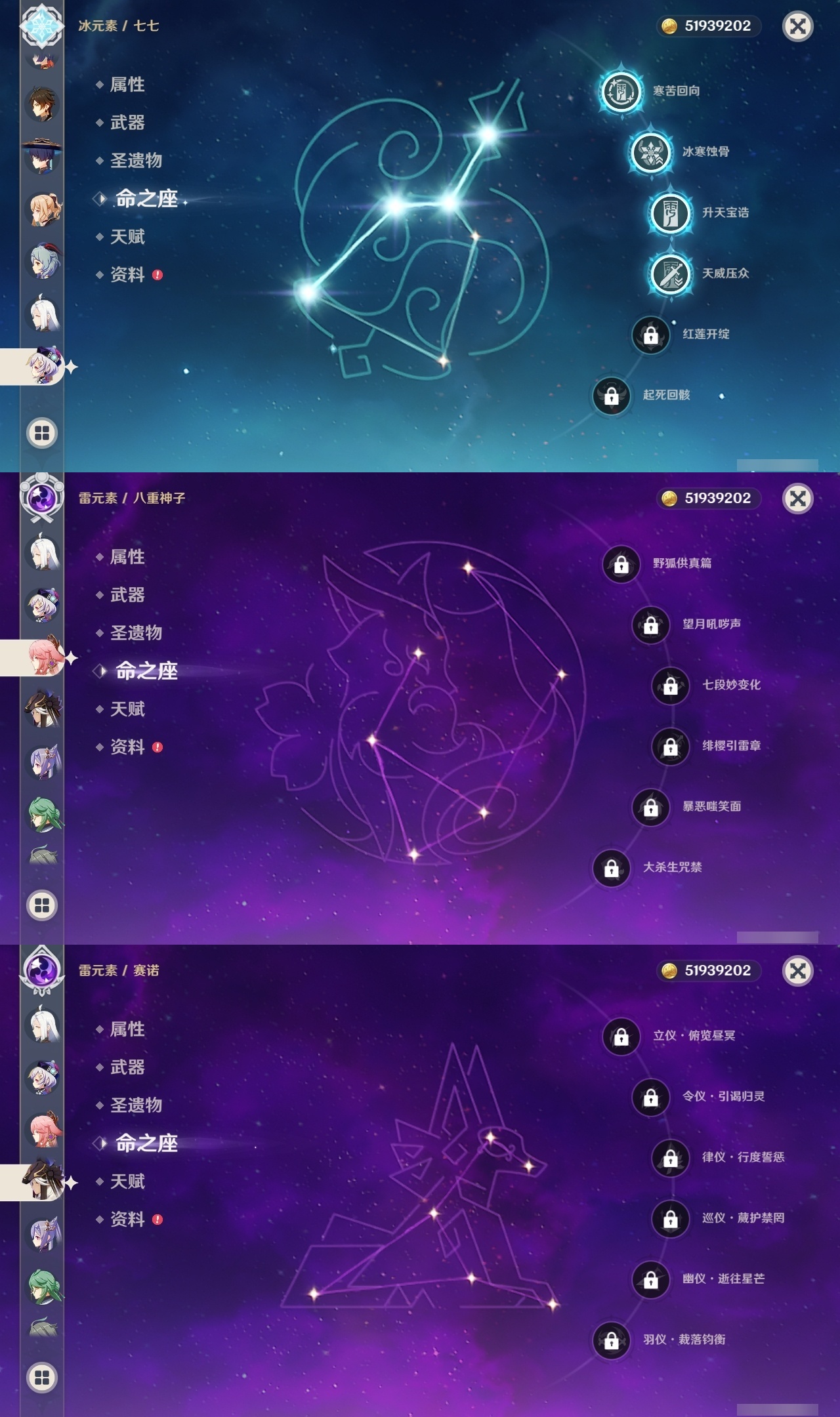 【原神】【lyys9814】冒险等级:60,五星数量:51,五星角色:迪卢克 4命七七 4命那维莱特 3命刻晴 3命莫娜 3命琴 3命雷电将军 2命纳西妲 2命钟离 1命提纳里 1命珊瑚宫心海希诺宁白术神里绫华温迪宵宫优菈荒泷一斗达达利亚申鹤八重神子神里绫人阿贝多莱欧斯利夜兰芙宁娜赛诺妮露艾尔海森流浪者枫原万叶甘雨魈胡桃__五星武器:万世流涌大典阿莫斯之弓苍古自由之誓风鹰剑和璞鸢狼的末路天空之卷天空之刃天空之翼无工之剑薙草之稻光斫峰之刃赤角石溃杵神乐之真意波乱月白经津千夜浮梦__四星角色:班尼特 6命行秋 6命九条裟罗 6命香菱 6命久岐忍 6命鹿野院平藏 6命凝光 6命迪奥娜 6命砂糖 6命柯莱 6命芭芭拉 6命云堇 6命早柚 6命托马 6命五郎 6命烟绯 6命重云 6命辛焱 6命诺艾尔 6命罗莎莉亚 6命雷泽 6命菲谢尔 6命北斗 6命瑶瑶 5命莱依拉 5命米卡 4命坎蒂丝 4命多莉 4命菲米尼 4命嘉明 4命珐露珊 2命绮良良 2命琳妮特 2命夏洛蒂 2命伊安珊 1命埃洛伊卡维夏沃蕾