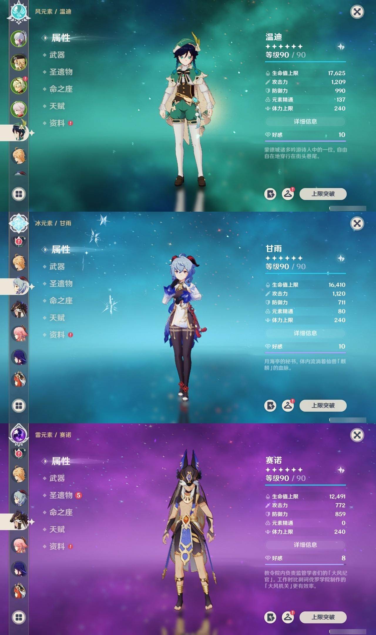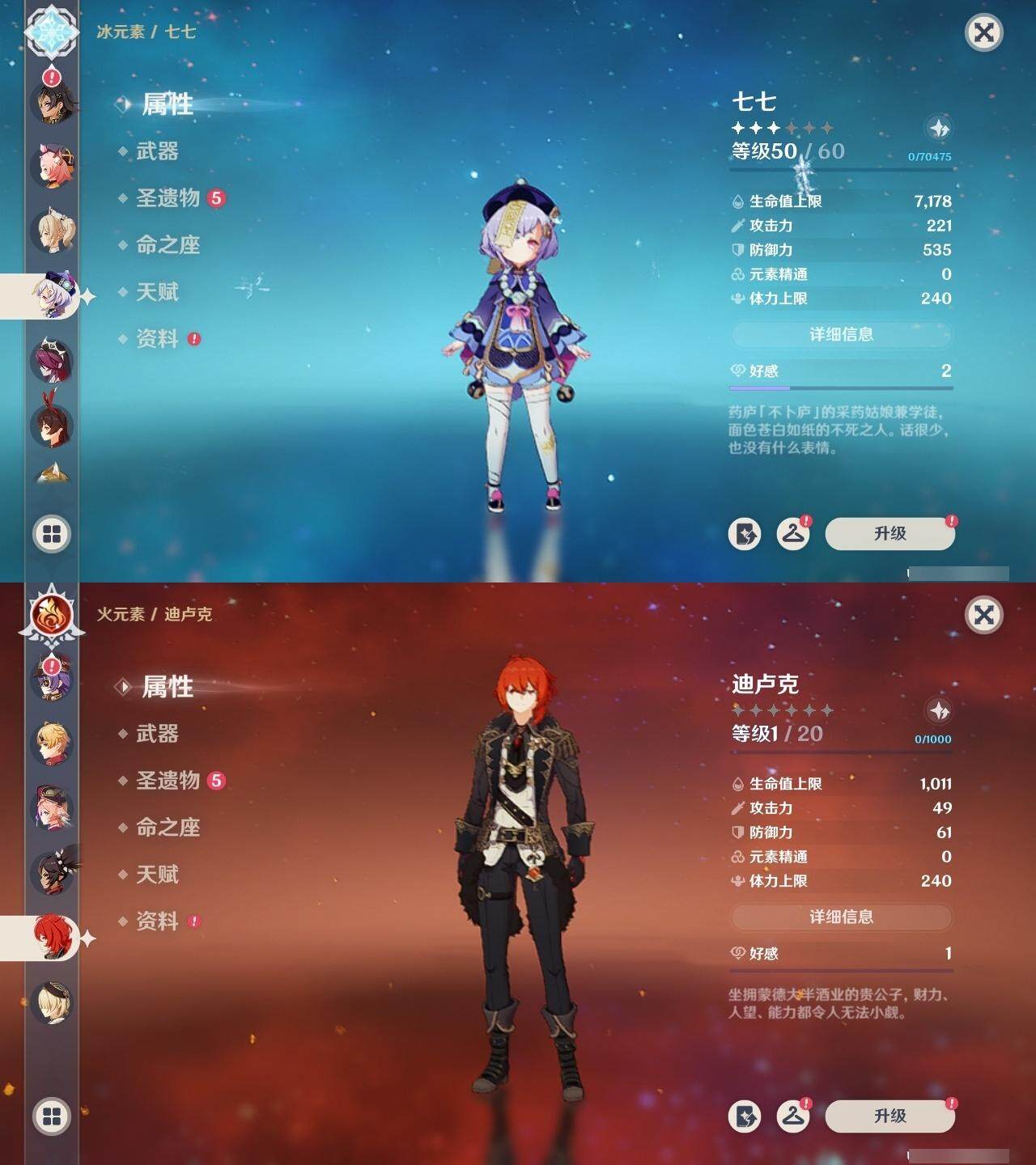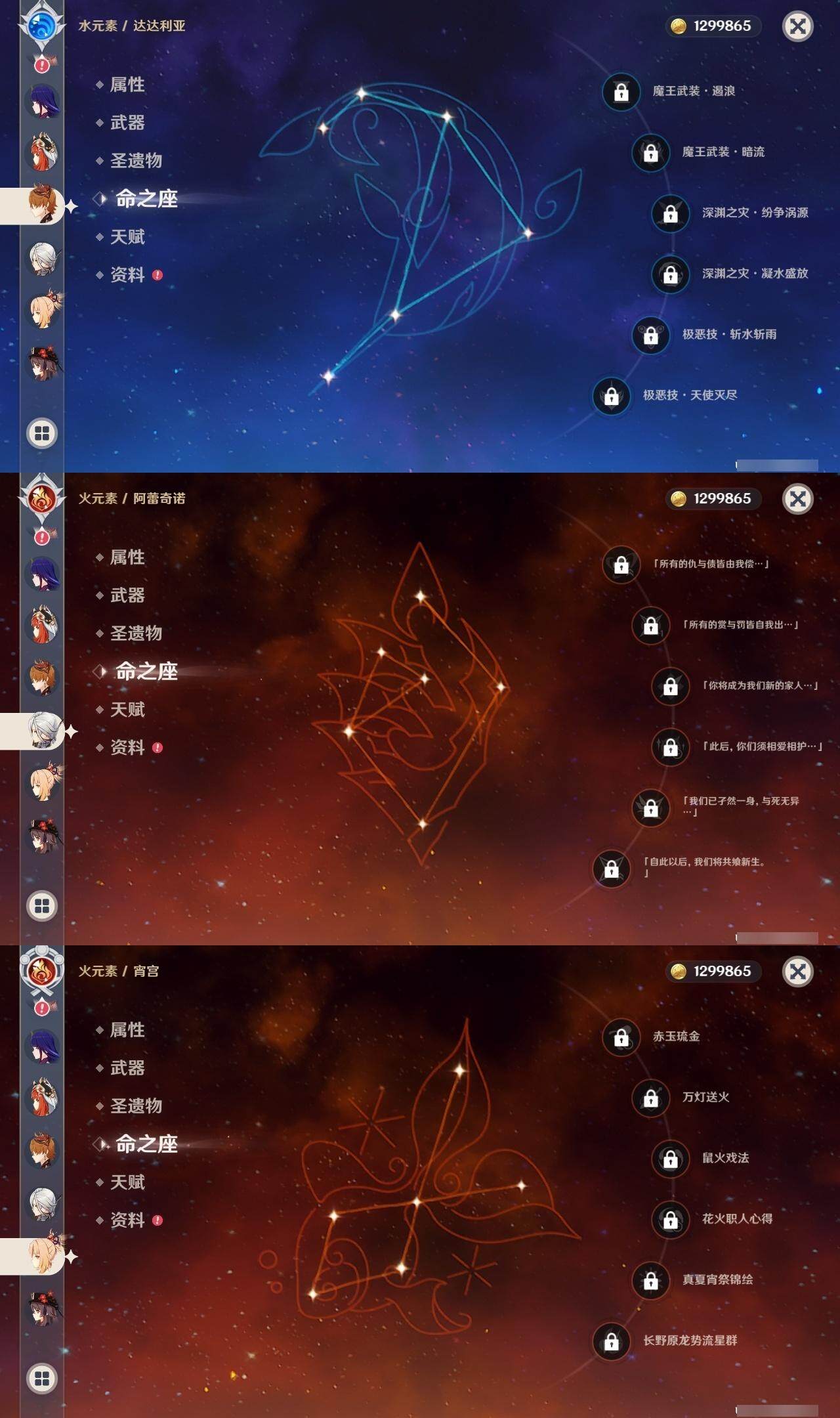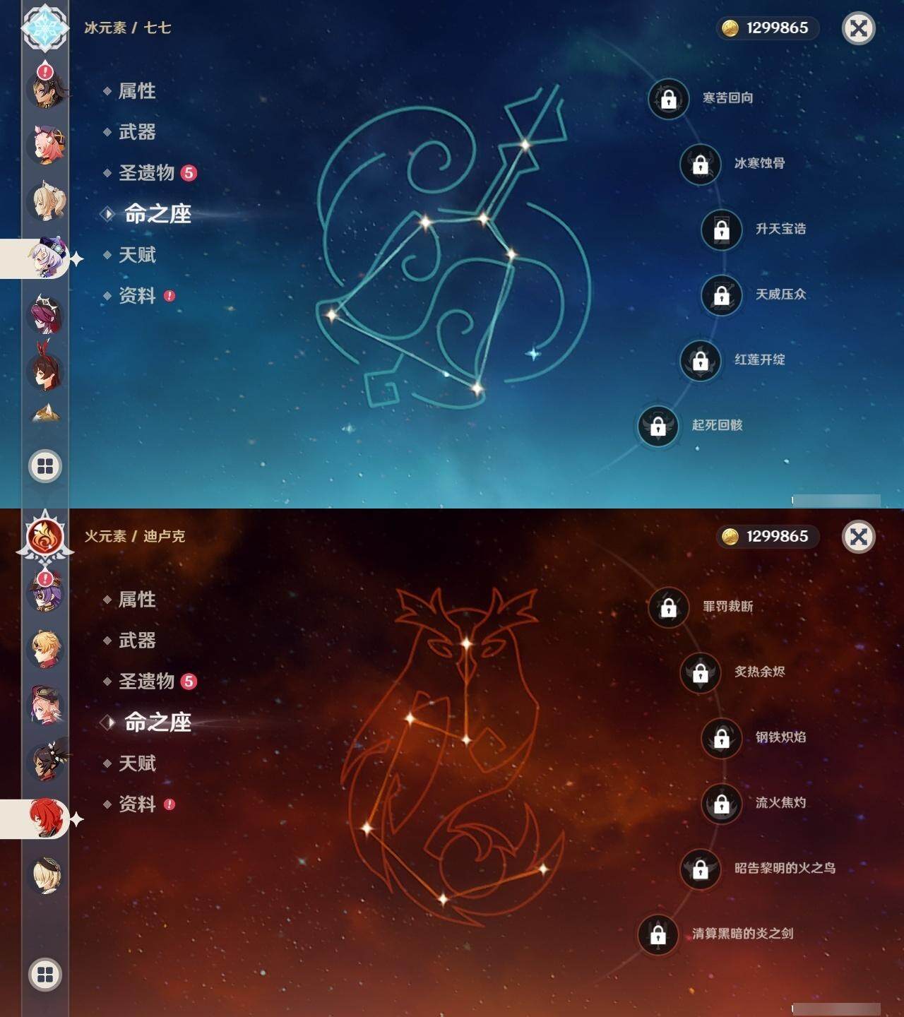 58级/48黄/男主/23个五星角色/15个五星武器 0命阿蕾奇诺1命娜维娅0命迪希雅0命妮露0命赛诺2命提纳里0命八重神子1命雷电将军0命枫原万叶0命神里绫华0命胡桃0命甘雨0命魈0命宵宫0命温迪0命达达利亚0命阿贝多0命珊瑚宫心海2命刻晴0命七七3命琴0命莫娜0命迪卢克精1最初的大魔术精1苇海信标精1圣显之钥精1若水精1波乱月白经津精1神乐之真意精1终末嗟叹之诗精2薙草之稻光精1磐岩结绿精1和璞鸢精1天空之脊精1天空之翼精1阿莫斯之弓精1狼的末路