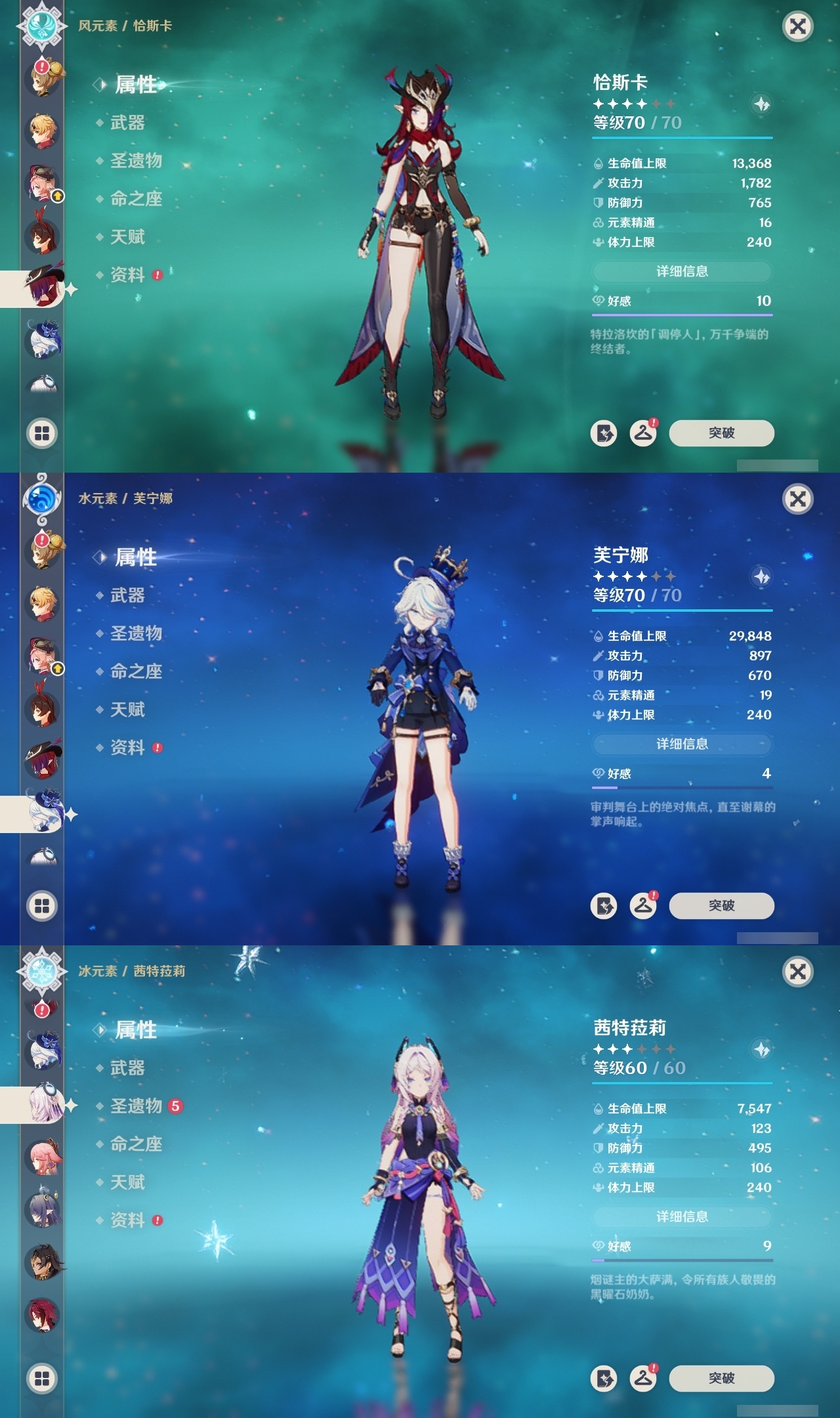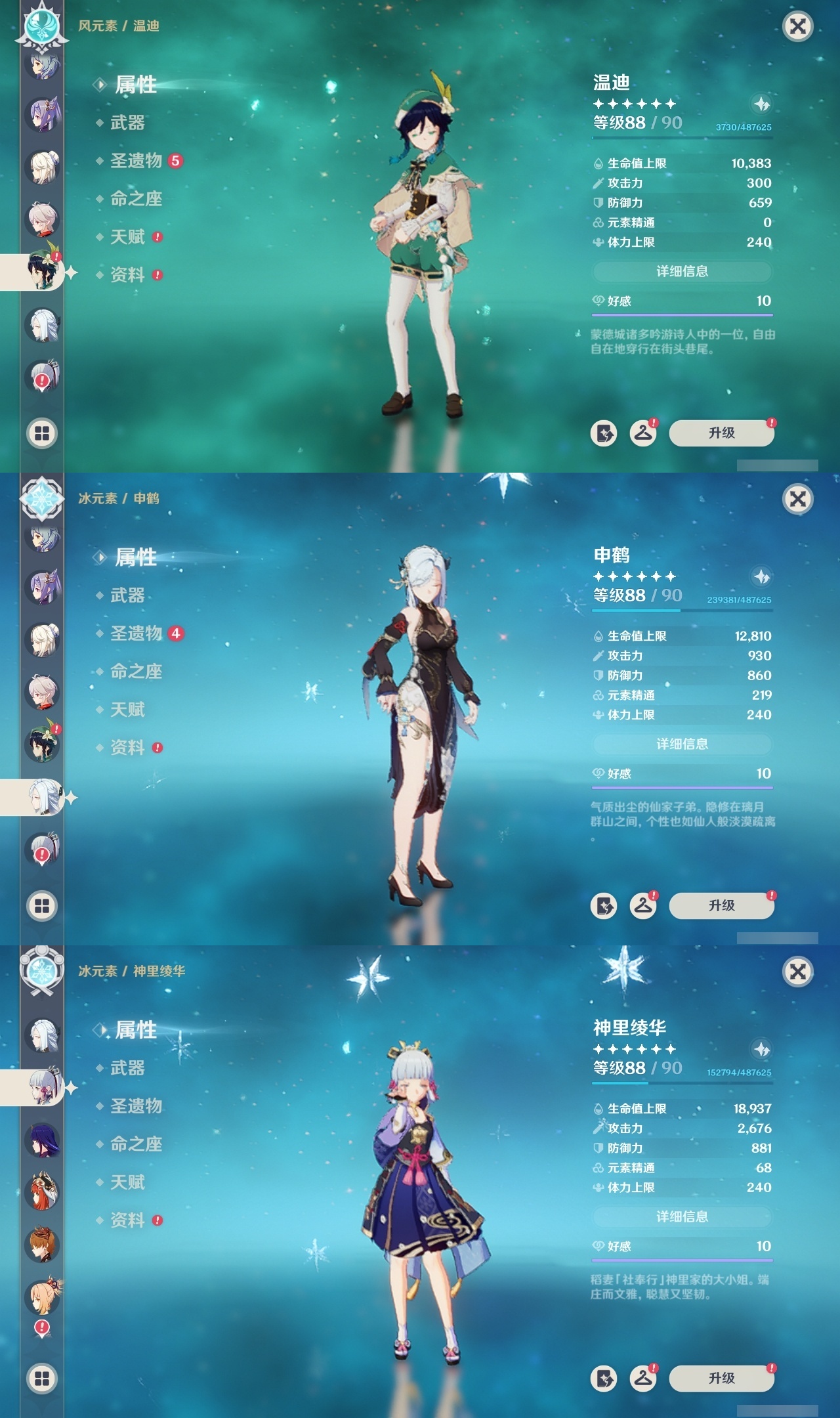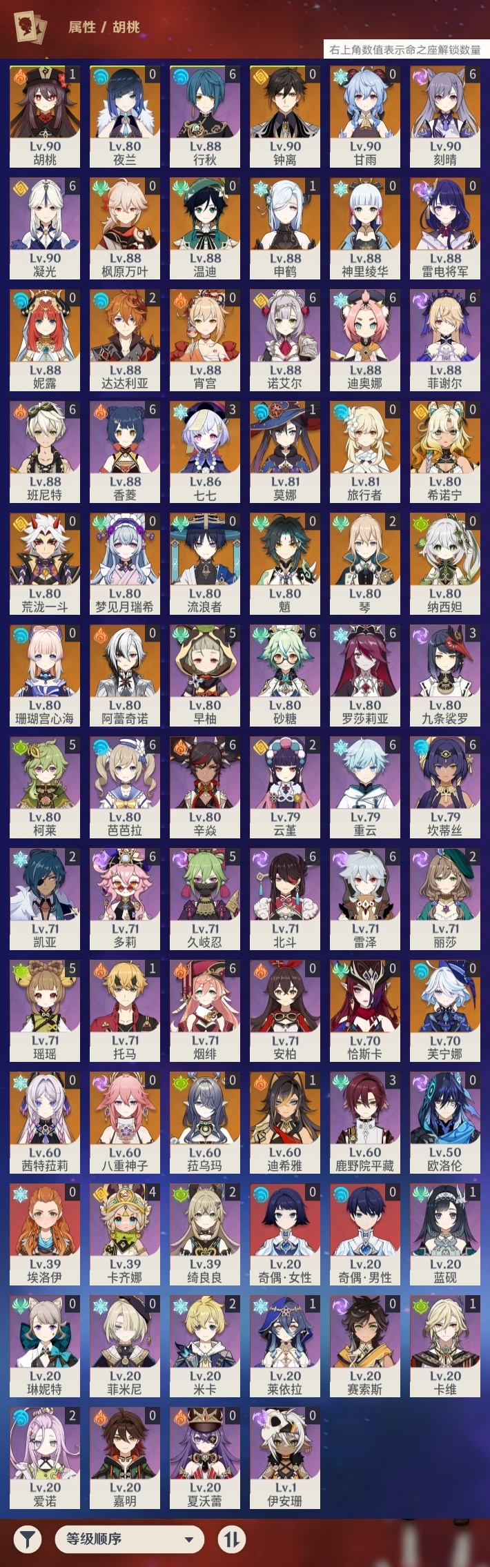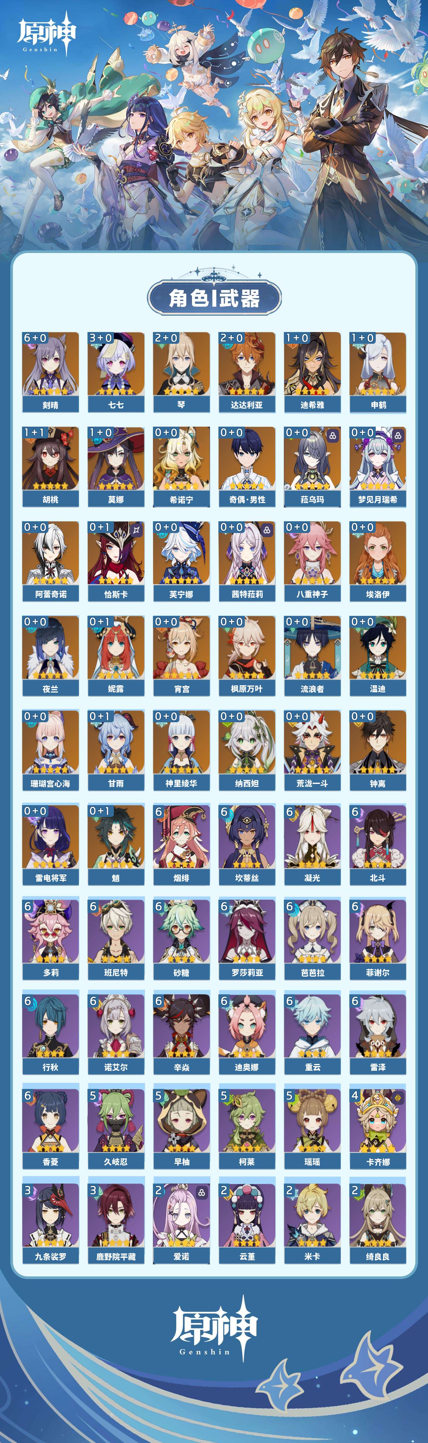 【原神】【lyys9969】冒险等级:60,五星数量:43,五星角色:刻晴 6命七七 3命达达利亚 2命琴 2命迪希雅 1命胡桃 1命莫娜 1命申鹤 1命珊瑚宫心海希诺宁神里绫华温迪恰斯卡茜特菈莉宵宫钟离荒泷一斗梦见月瑞希八重神子夜兰芙宁娜阿蕾奇诺妮露纳西妲菈乌玛流浪者枫原万叶甘雨魈雷电将军__五星武器:星鹫赤羽阿莫斯之弓风鹰剑和璞鸢护摩之杖四风原典天空之傲天空之刃天空之翼圣显之钥__四星角色:班尼特 6命行秋 6命香菱 6命凝光 6命迪奥娜 6命砂糖 6命坎蒂丝 6命多莉 6命芭芭拉 6命烟绯 6命重云 6命辛焱 6命诺艾尔 6命罗莎莉亚 6命雷泽 6命菲谢尔 6命北斗 6命久岐忍 5命瑶瑶 5命柯莱 5命早柚 5命卡齐娜 4命九条裟罗 3命鹿野院平藏 3命绮良良 2命米卡 2命云堇 2命爱诺 2命莱依拉 1命卡维 1命蓝砚 1命托马 1命埃洛伊奇偶·女性奇偶·男性欧洛伦菲米尼琳妮特夏沃蕾嘉明伊安珊赛索斯