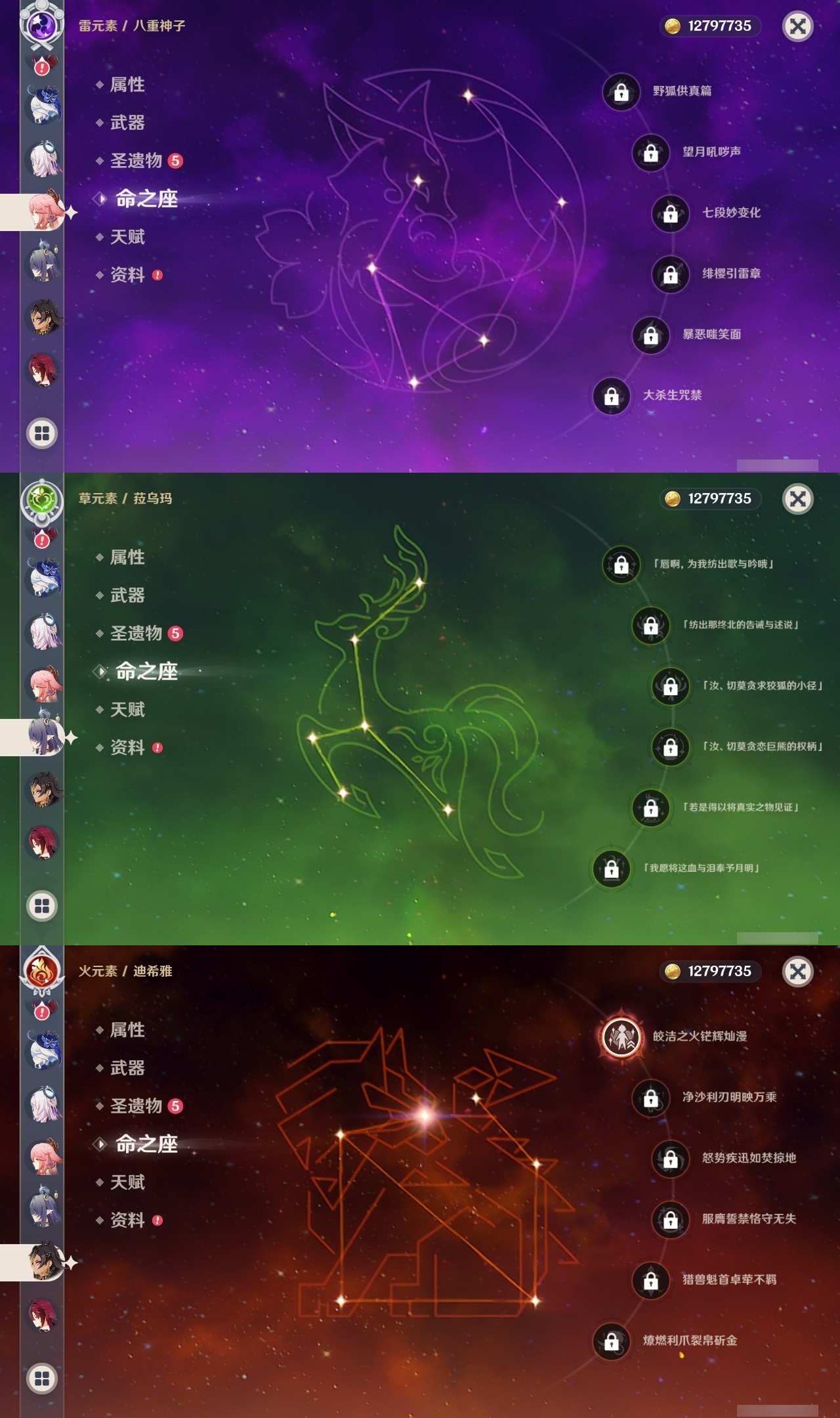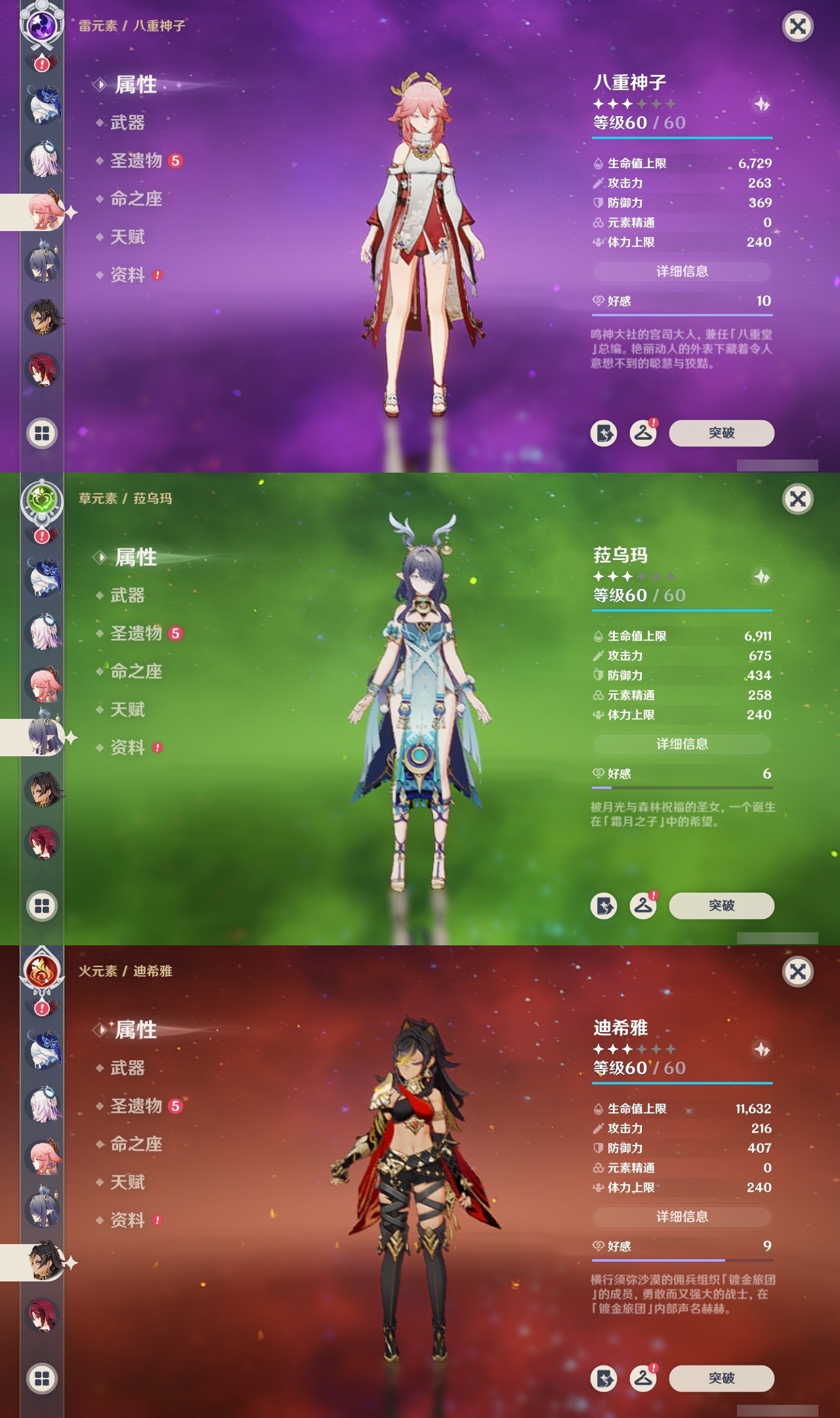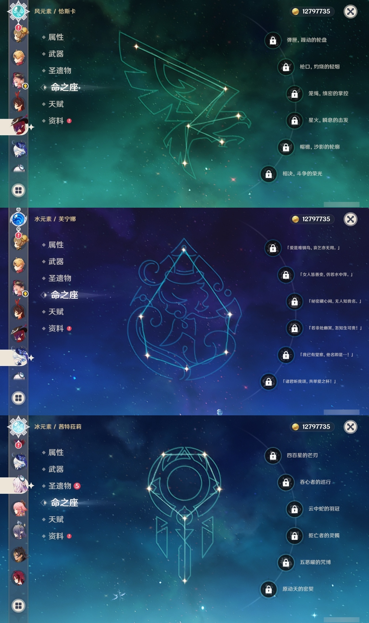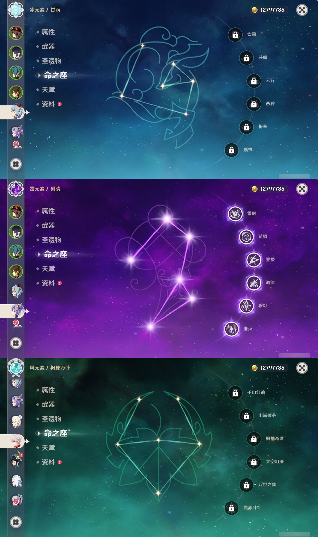 【原神】【lyys9969】冒险等级:60,五星数量:43,五星角色:刻晴 6命七七 3命达达利亚 2命琴 2命迪希雅 1命胡桃 1命莫娜 1命申鹤 1命珊瑚宫心海希诺宁神里绫华温迪恰斯卡茜特菈莉宵宫钟离荒泷一斗梦见月瑞希八重神子夜兰芙宁娜阿蕾奇诺妮露纳西妲菈乌玛流浪者枫原万叶甘雨魈雷电将军__五星武器:星鹫赤羽阿莫斯之弓风鹰剑和璞鸢护摩之杖四风原典天空之傲天空之刃天空之翼圣显之钥__四星角色:班尼特 6命行秋 6命香菱 6命凝光 6命迪奥娜 6命砂糖 6命坎蒂丝 6命多莉 6命芭芭拉 6命烟绯 6命重云 6命辛焱 6命诺艾尔 6命罗莎莉亚 6命雷泽 6命菲谢尔 6命北斗 6命久岐忍 5命瑶瑶 5命柯莱 5命早柚 5命卡齐娜 4命九条裟罗 3命鹿野院平藏 3命绮良良 2命米卡 2命云堇 2命爱诺 2命莱依拉 1命卡维 1命蓝砚 1命托马 1命埃洛伊奇偶·女性奇偶·男性欧洛伦菲米尼琳妮特夏沃蕾嘉明伊安珊赛索斯