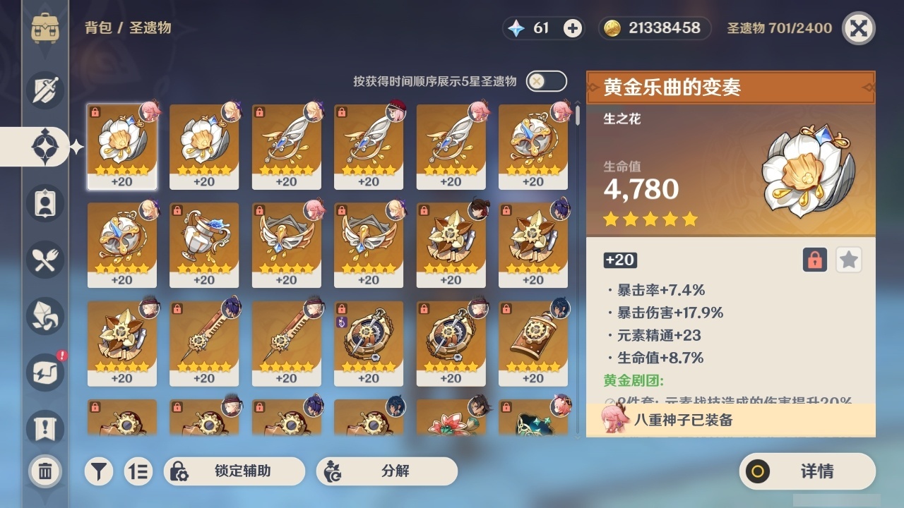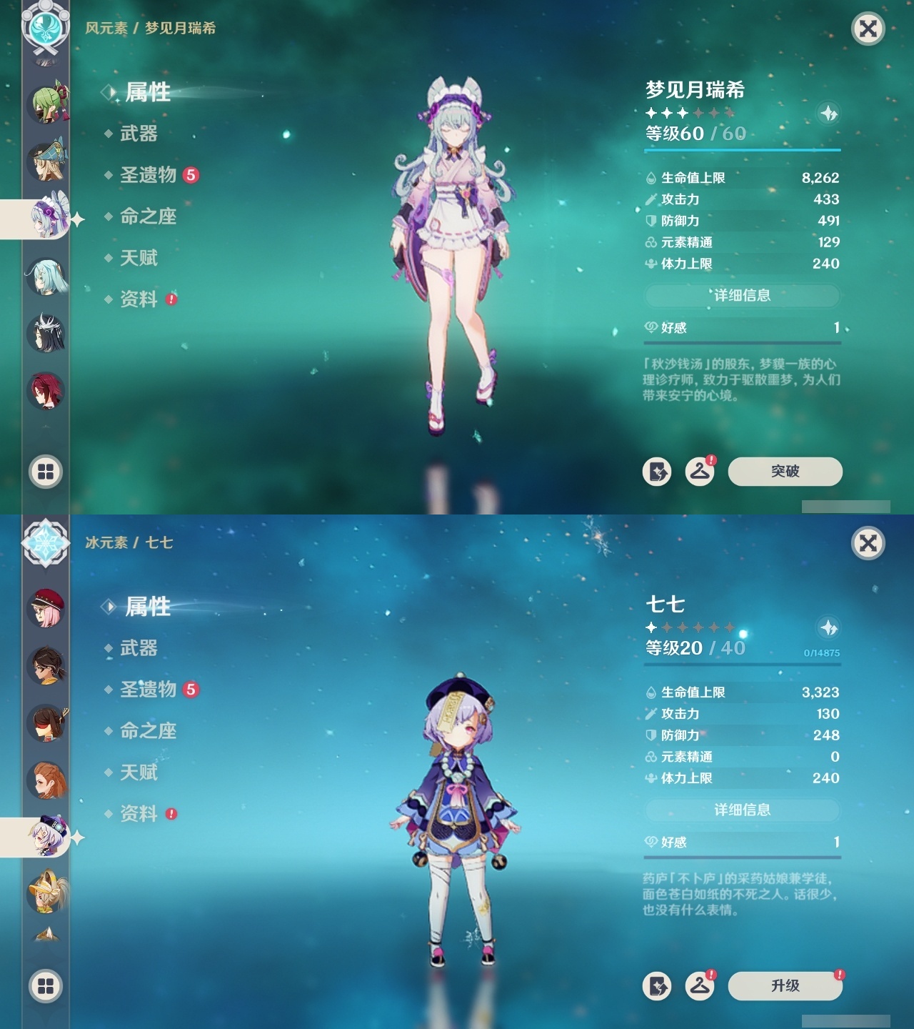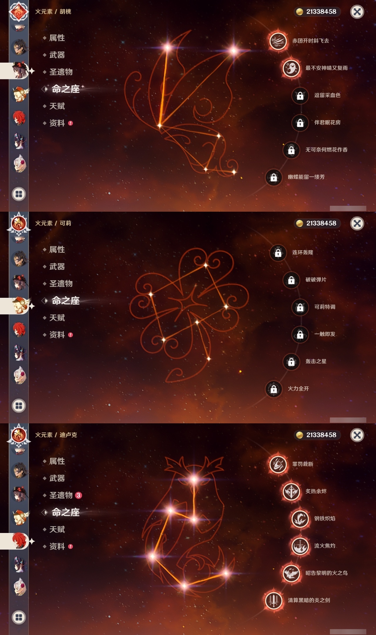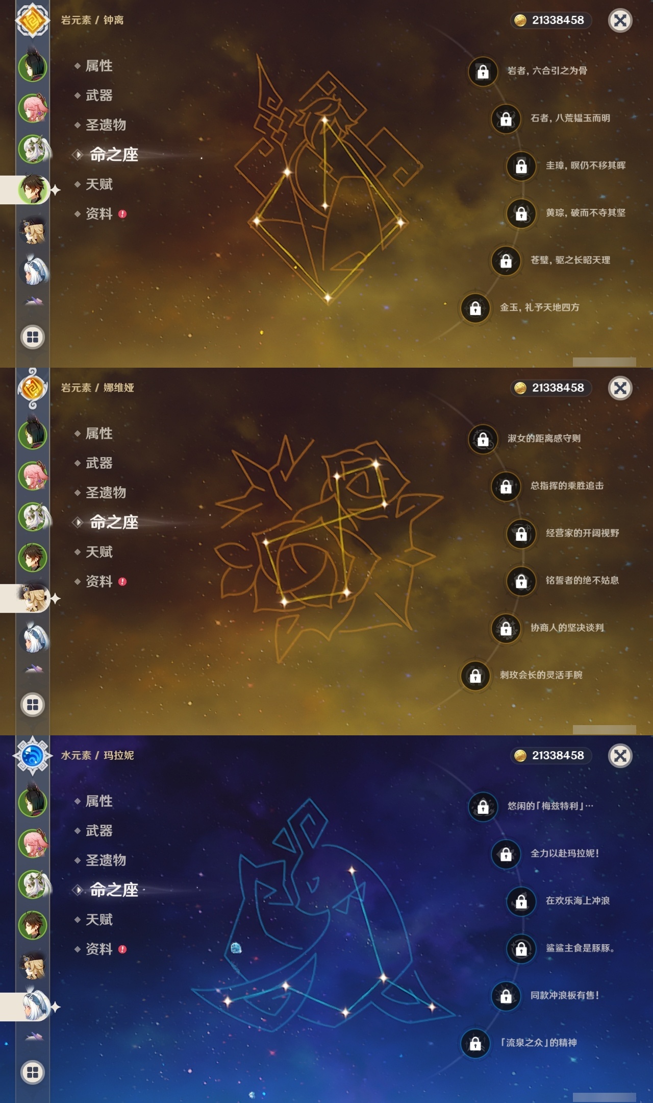 【原神】满命,冒险等级:60,五星数量:46,五星角色:林尼 6命迪卢克 6命八重神子 6命神里绫人 6命刻晴 5命七七 4命莫娜 3命胡桃 2命雷电将军 2命提纳里 2命迪希雅 1命枫原万叶 1命琴 1命珊瑚宫心海 1命玛拉妮温迪优菈钟离达达利亚梦见月瑞希夜兰娜维娅阿蕾奇诺纳西妲甘雨可莉__五星武器:风鹰剑 5精无工之剑 3精冬极白星 3精若水 3精四风原典 2精天空之脊 2精天空之卷 2精最初的大魔术阿莫斯之弓飞雷之弦振护摩之杖磐岩结绿天空之傲天空之翼雾切之回光薙草之稻光终末嗟叹之诗息灾神乐之真意__四星角色:班尼特 6命行秋 6命九条裟罗 6命香菱 6命久岐忍 6命鹿野院平藏 6命凝光 6命迪奥娜 6命砂糖 6命绮良良 6命莱依拉 6命多莉 6命芭芭拉 6命云堇 6命早柚 6命托马 6命烟绯 6命重云 6命辛焱 6命诺艾尔 6命罗莎莉亚 6命雷泽 6命菲谢尔 6命北斗 6命琳妮特 6命珐露珊 5命五郎 3命夏沃蕾 3命瑶瑶 2命坎蒂丝 2命卡维 2命菲米尼 2命柯莱 1命蓝砚 1命埃洛伊卡齐娜欧洛伦夏洛蒂嘉明伊法爱诺赛索斯