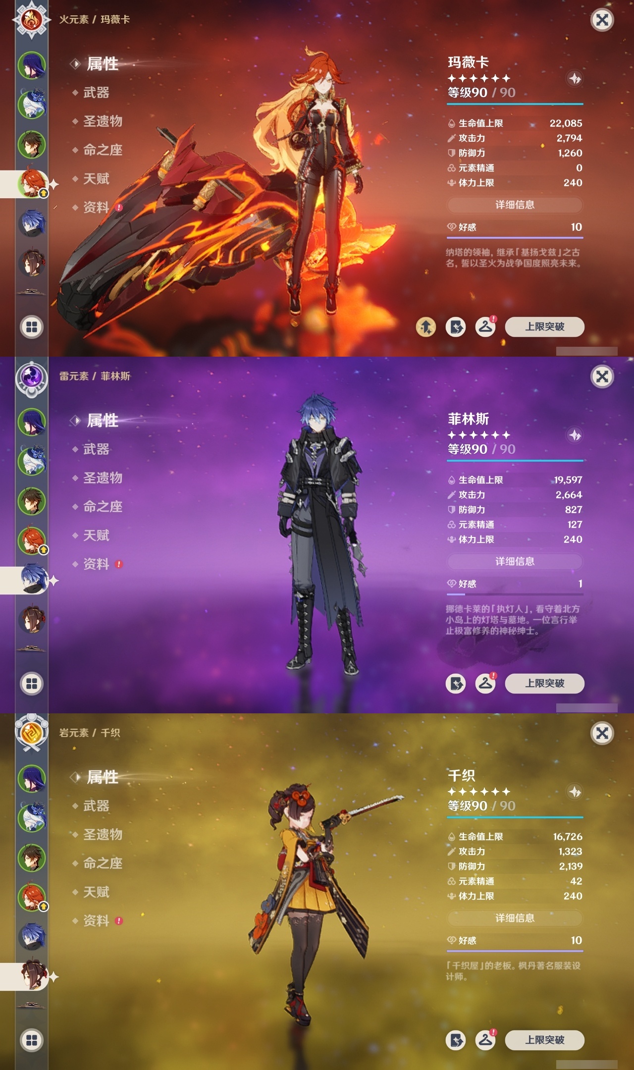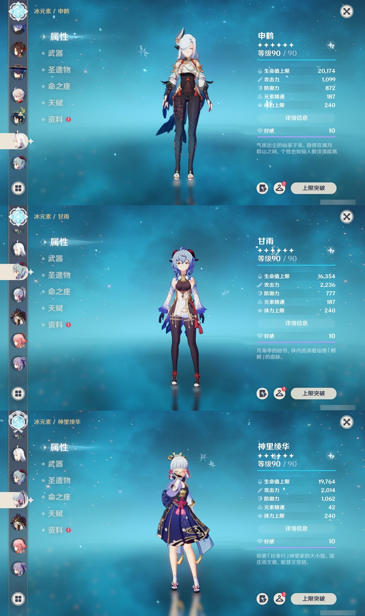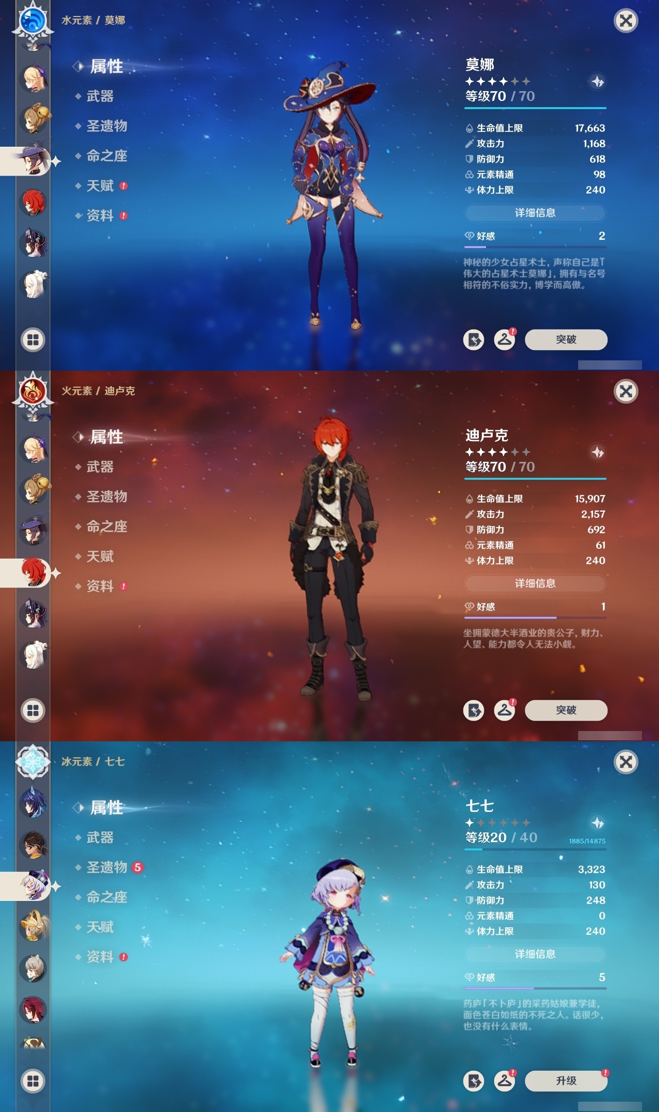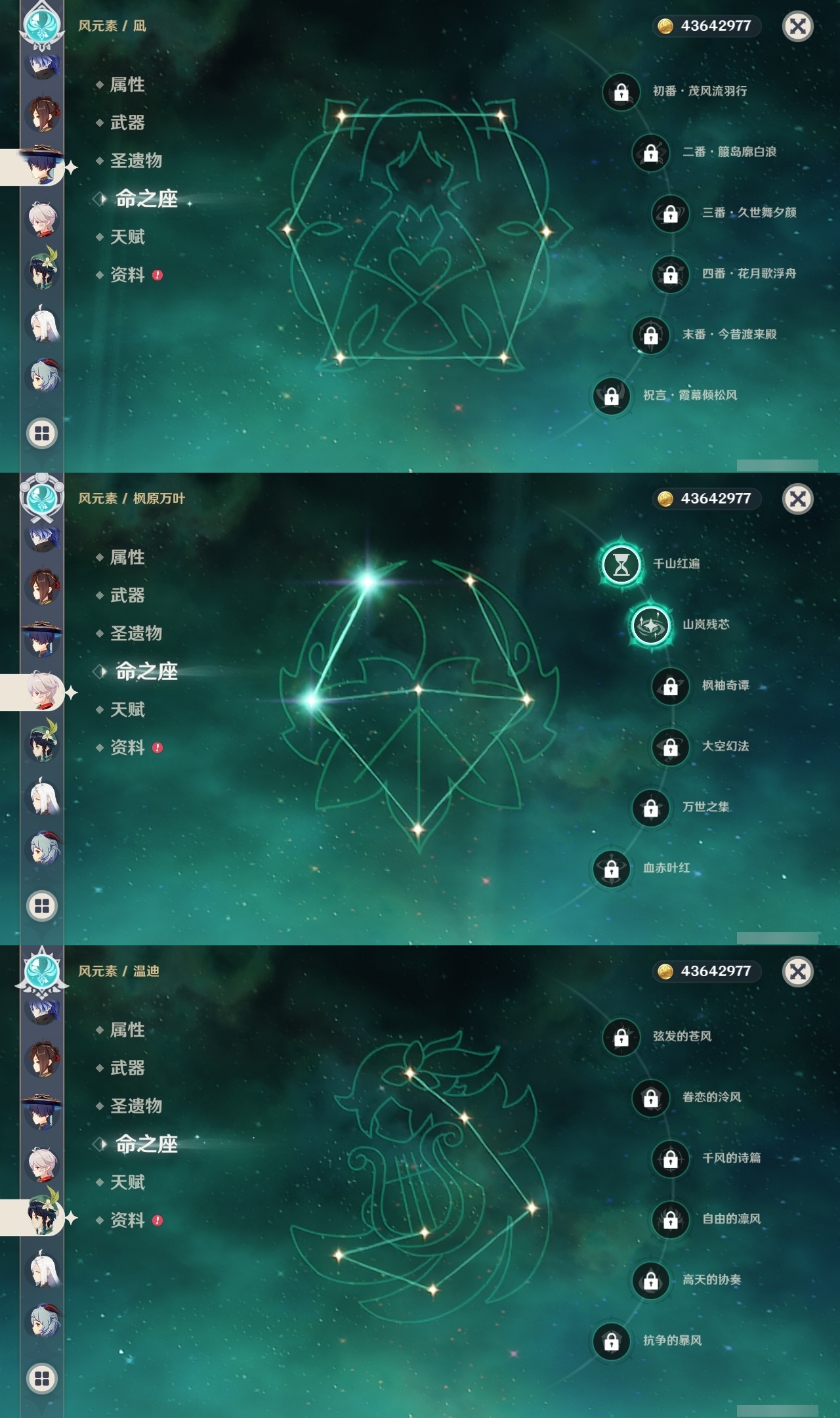 【原神】满命,冒险等级:60,五星数量:52,五星角色:芙宁娜 6命莫娜 6命八重神子 6命夜兰 6命赛诺 6命千织 5命琴 5命迪卢克 4命刻晴 4命提纳里 4命枫原万叶 2命雷电将军 2命七七 2命神里绫华 2命纳西妲 2命甘雨 1命珊瑚宫心海 1命艾尔海森 1命白术温迪玛薇卡迪希雅钟离申鹤菈乌玛菲林斯流浪者__五星武器:静水流涌之辉 5精终末嗟叹之诗 5精赤沙之杖 5精和璞鸢 3精阿莫斯之弓 2精风鹰剑 2精碧落之珑金流监督有乐御簾切不灭月华苍古自由之誓狼的末路四风原典天空之傲天空之脊天空之卷天空之刃天空之翼无工之剑雾切之回光薙草之稻光冬极白星神乐之真意若水千夜浮梦__四星角色:班尼特 6命行秋 6命九条裟罗 6命香菱 6命久岐忍 6命鹿野院平藏 6命凝光 6命迪奥娜 6命砂糖 6命瑶瑶 6命莱依拉 6命坎蒂丝 6命多莉 6命柯莱 6命芭芭拉 6命云堇 6命早柚 6命托马 6命五郎 6命烟绯 6命辛焱 6命诺艾尔 6命罗莎莉亚 6命雷泽 6命菲谢尔 6命北斗 6命夏洛蒂 6命嘉明 6命珐露珊 3命绮良良 3命卡齐娜 2命米卡 2命卡维 2命重云 2命菲米尼 2命爱诺 2命琳妮特 1命夏沃蕾 1命欧洛伦蓝砚伊安珊赛索斯