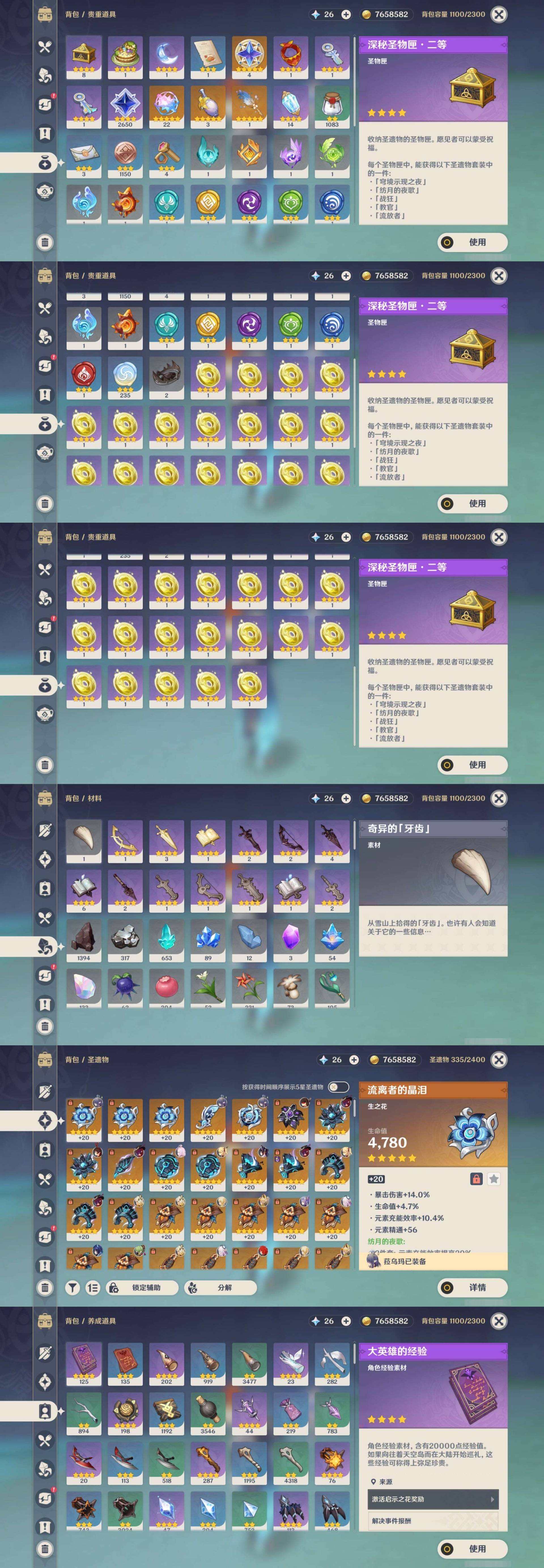 [15161811]44黄 风元素:0命枫原万叶 0命恰斯卡 火元素:0命胡桃 水元素:6命那维莱特 0命希格雯 雷元素:0命克洛琳德 冰元素:0命茜特菈莉 岩元素:6命希诺宁 草元素:0命菈乌玛 【常驻五星角色及命座】 风元素:2命琴 火元素:2命迪希雅 0命迪卢克 水元素:1命莫娜 雷元素:2命刻晴 冰元素:1命七七 单手剑:精2岩峰巡歌 精1有乐御簾切 精1赦罪 双手剑:精1狼的末路 长柄武器:精1护摩之杖 法器:精1万世流涌大典 弓:精1星鹫赤羽 精1阿莫斯之弓 【角色皮肤】 四星角色:绮良良-倩影游侠 行秋-雨化竹身 香菱-岁夜欢哗
