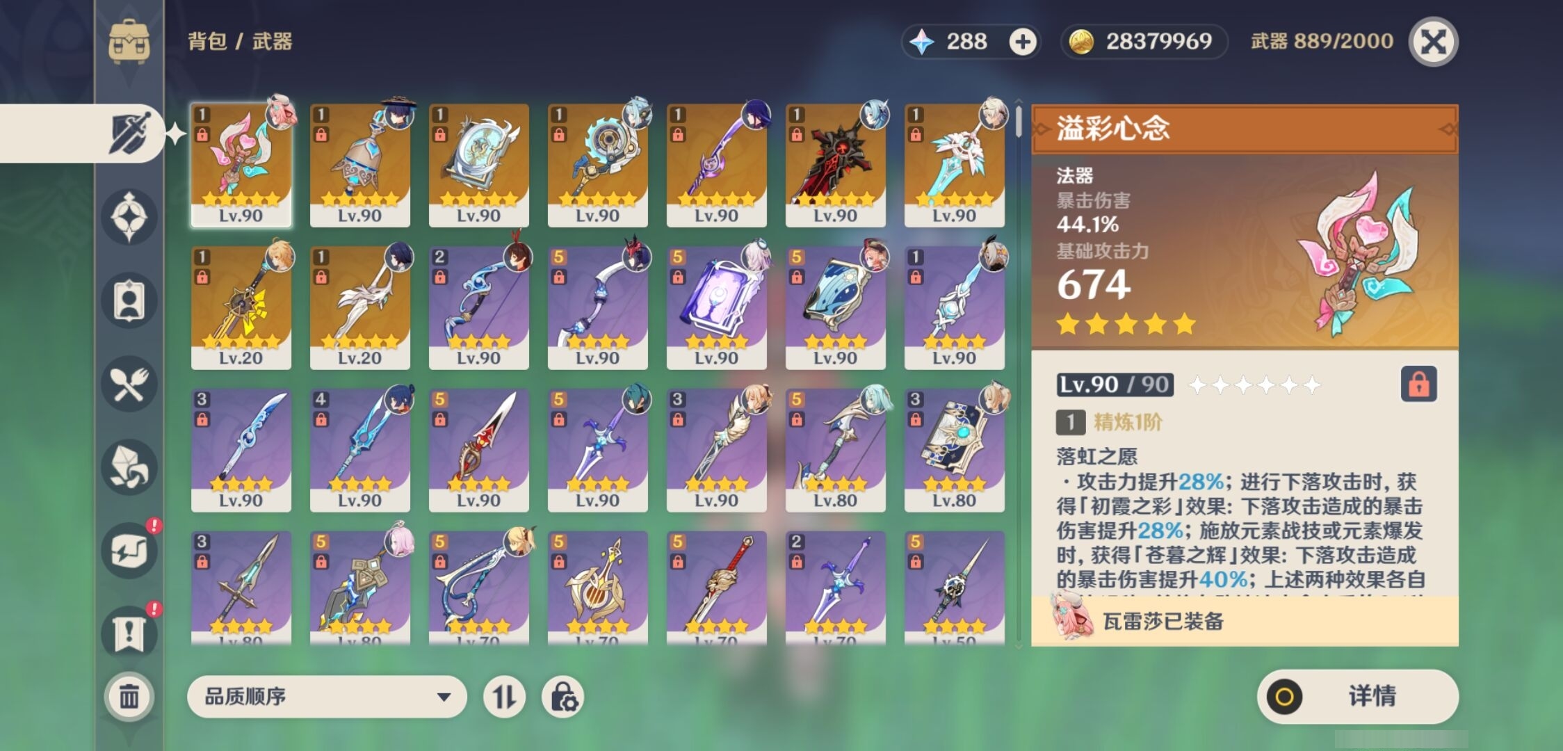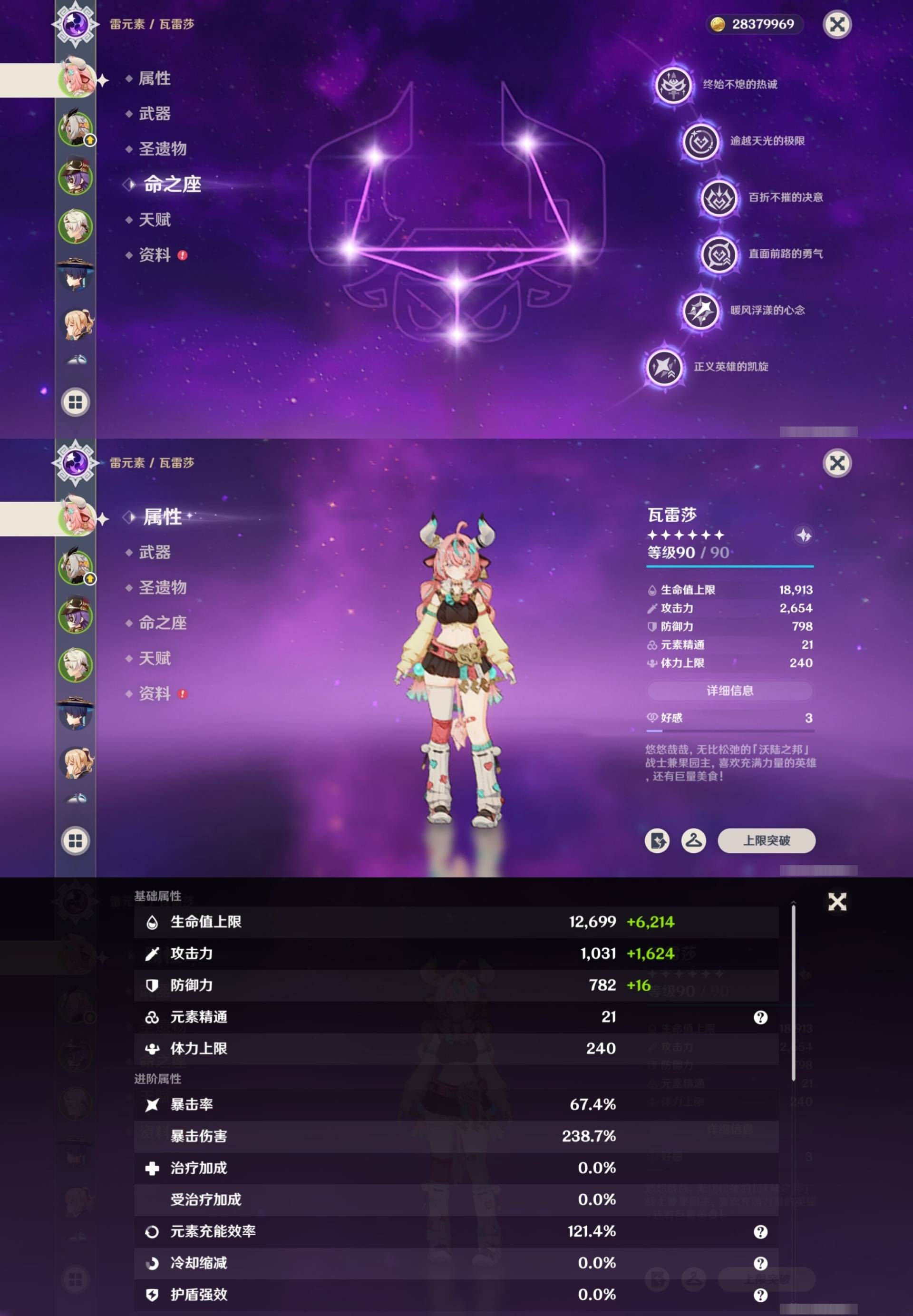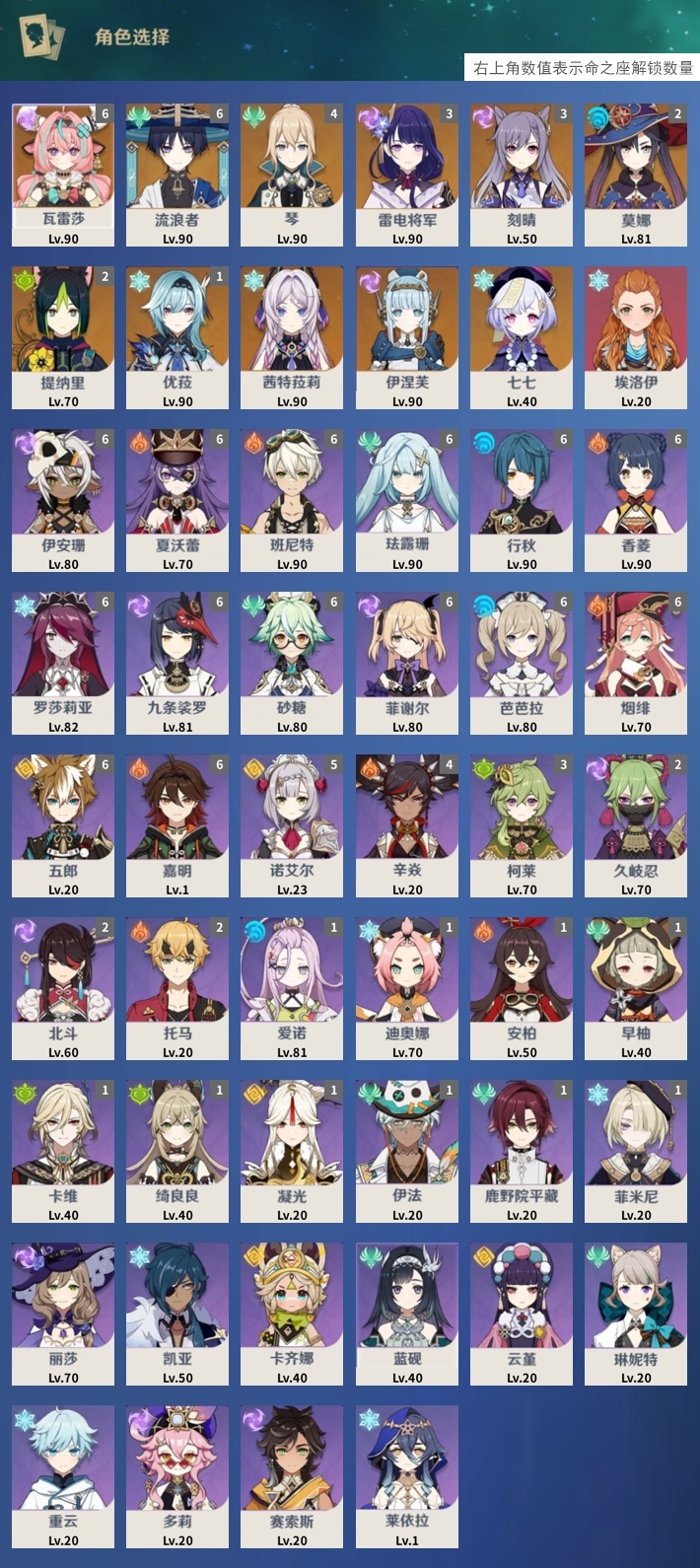 [15162004]48黄 风元素:6命流浪者 雷元素:6命瓦雷莎 0命伊涅芙 3命雷电将军 冰元素:0命茜特菈莉 1命优菈 0命埃洛伊 【常驻五星角色及命座】 风元素:4命琴 水元素:2命莫娜 雷元素:3命刻晴 冰元素:0命七七 草元素:2命提纳里 单手剑:精1天空之刃 精1岩峰巡歌 精1风鹰剑 双手剑:精1狼的末路 长柄武器:精1支离轮光 精1薙草之稻光 法器:精1四风原典 精1图莱杜拉的回忆 精1溢彩心念 【角色皮肤】 四星角色:丽莎-叶隐芳名 班尼特-炽绘奇旅